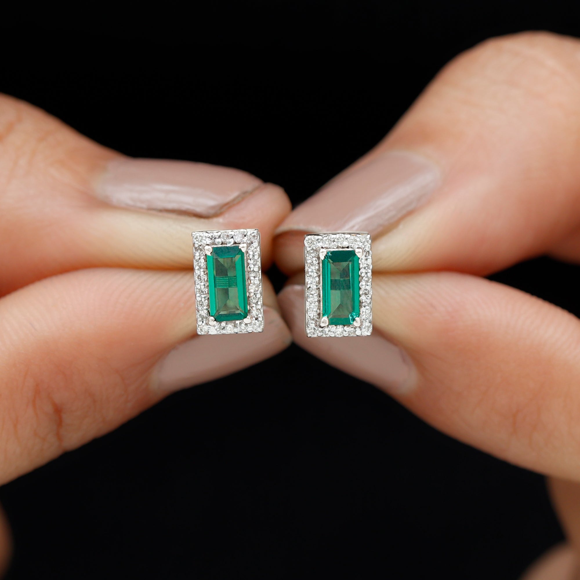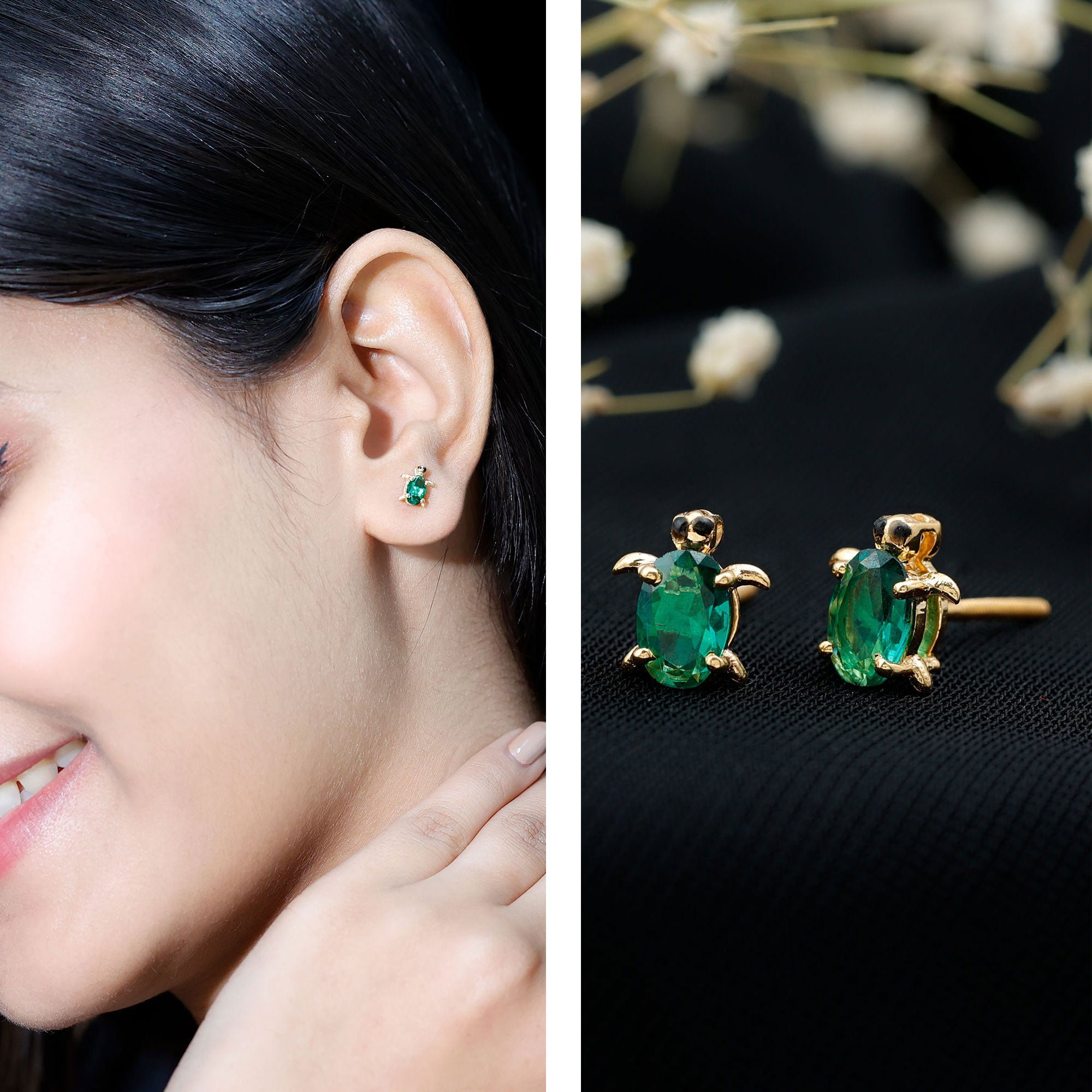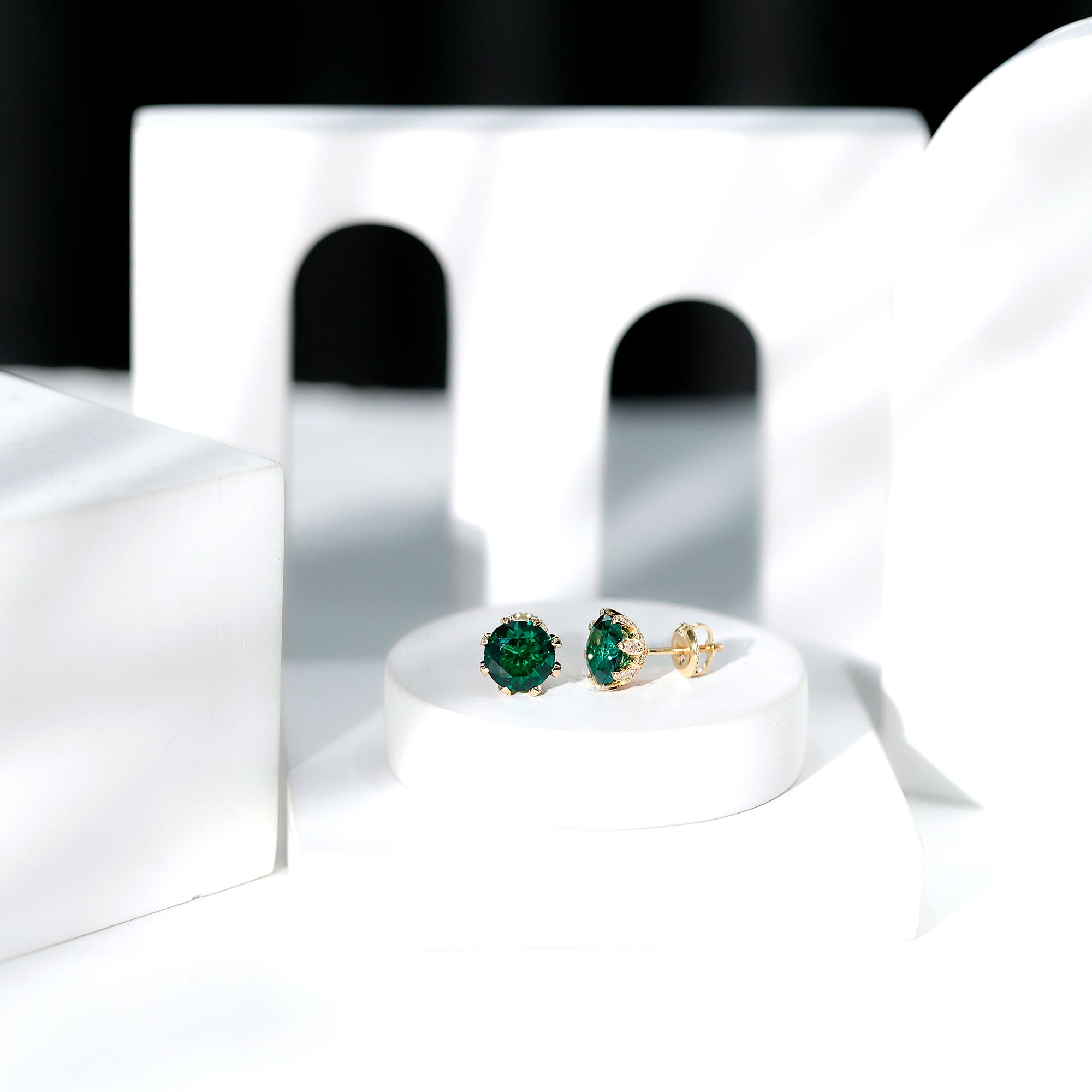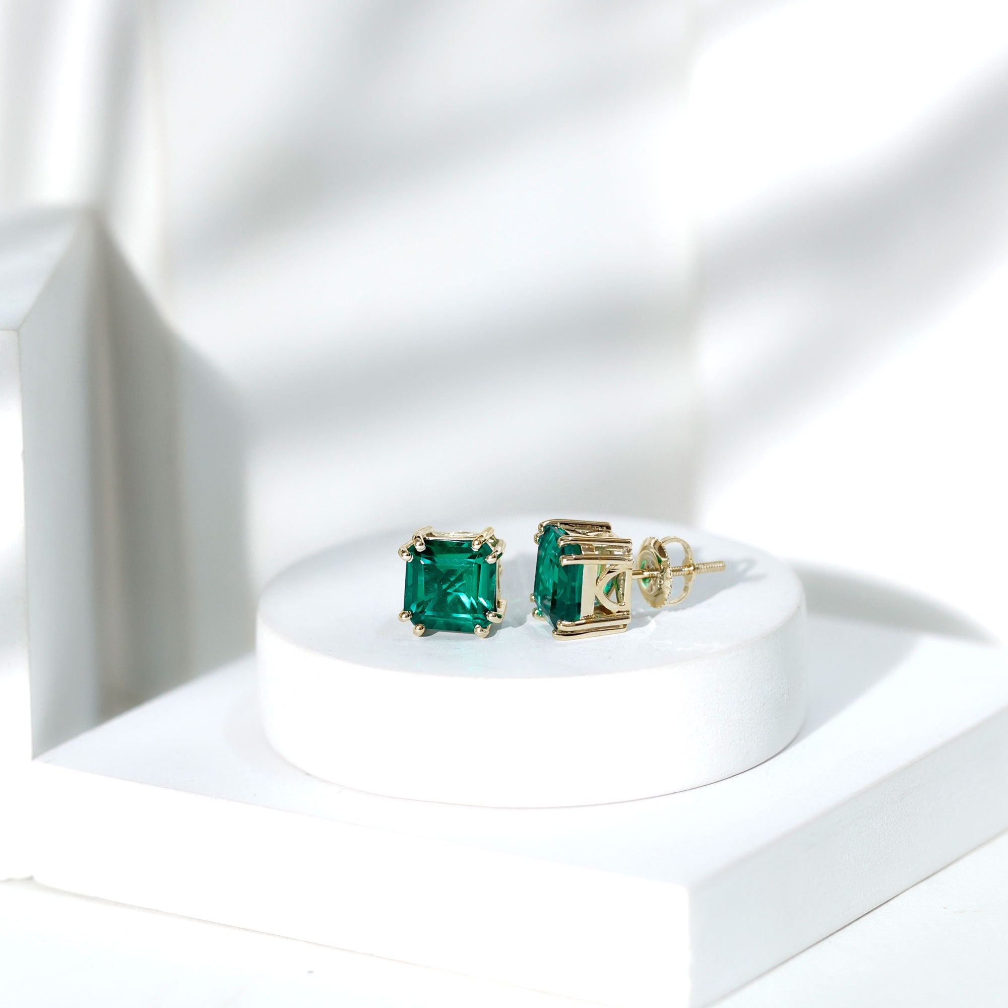 Lab created emerald stud earrings are the first choice of classic elegance lovers. A pop of color, whether a small or large emerald gemstone makes them an ideal option for everyday as well as special occasional wear.