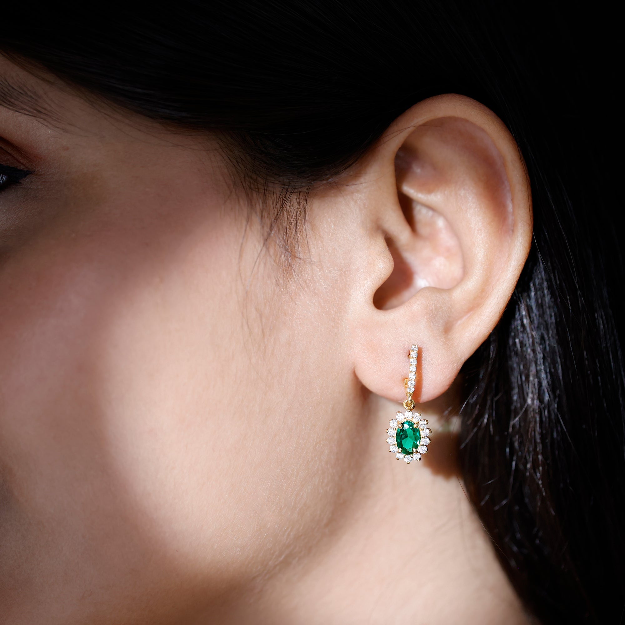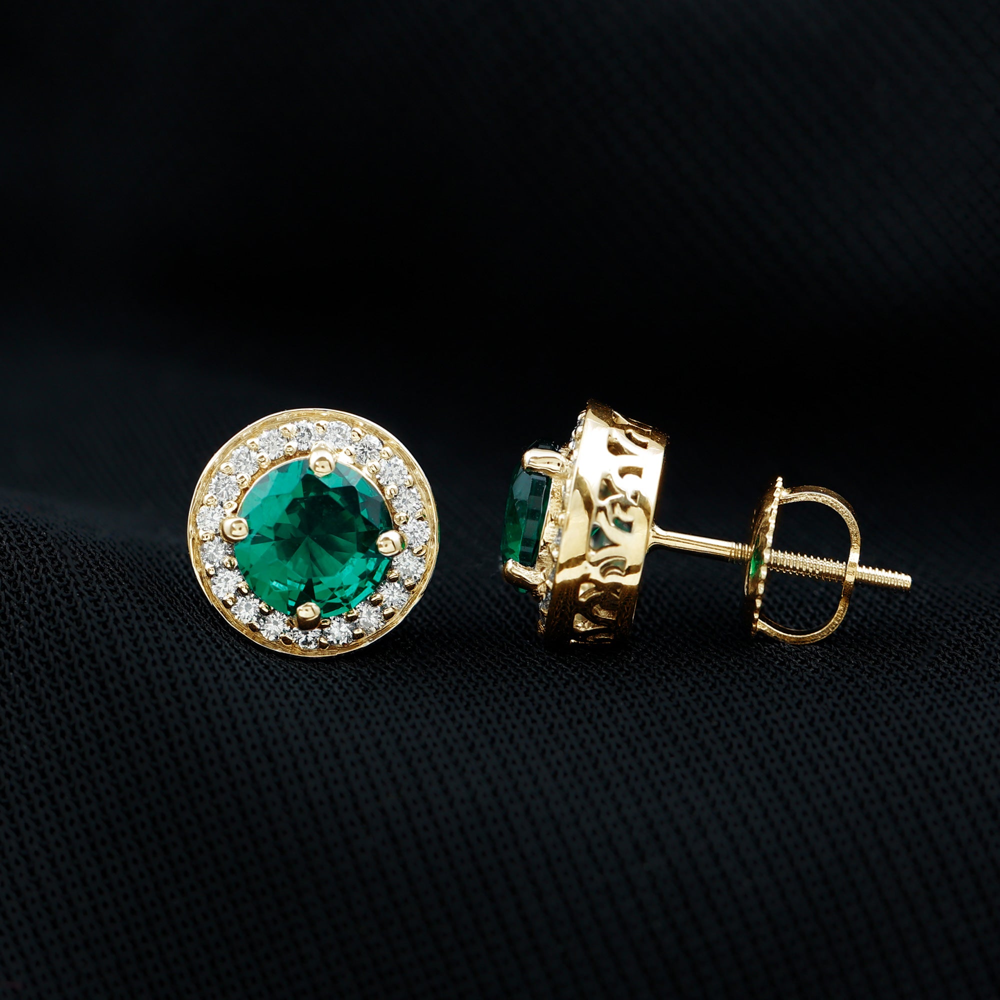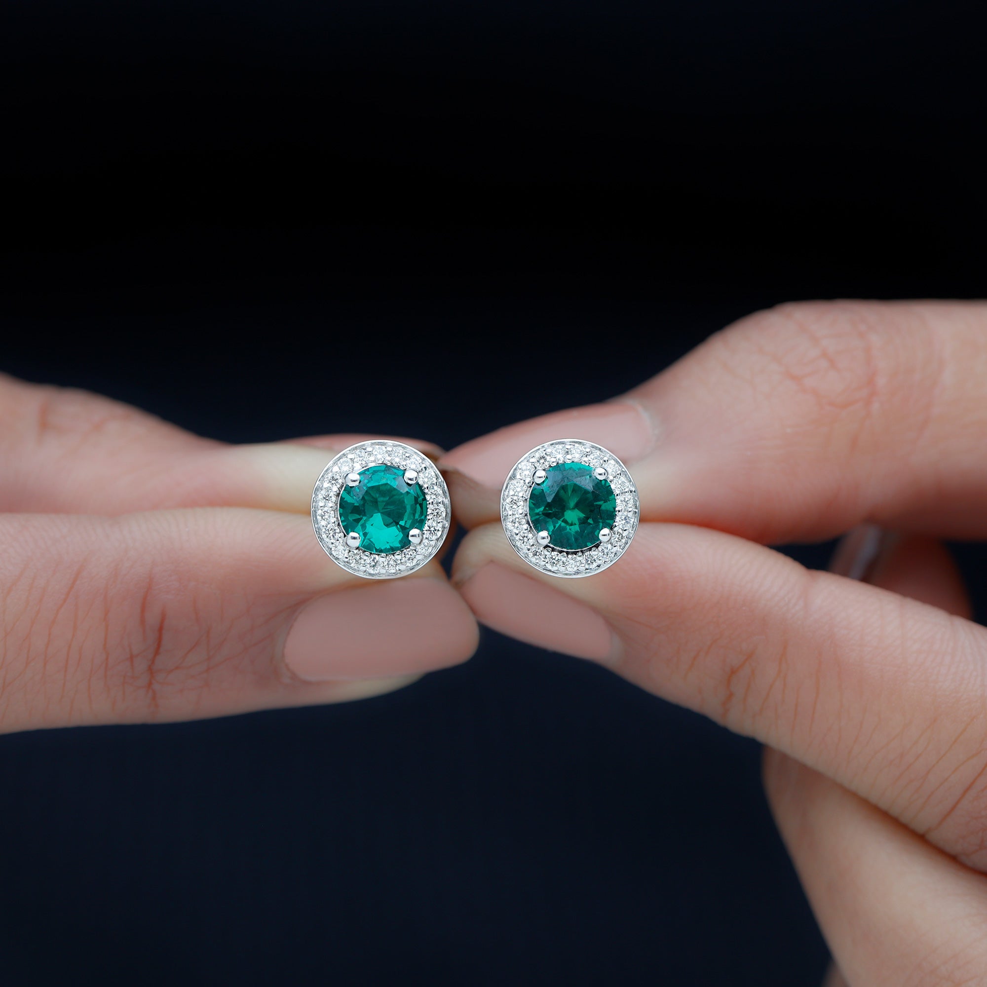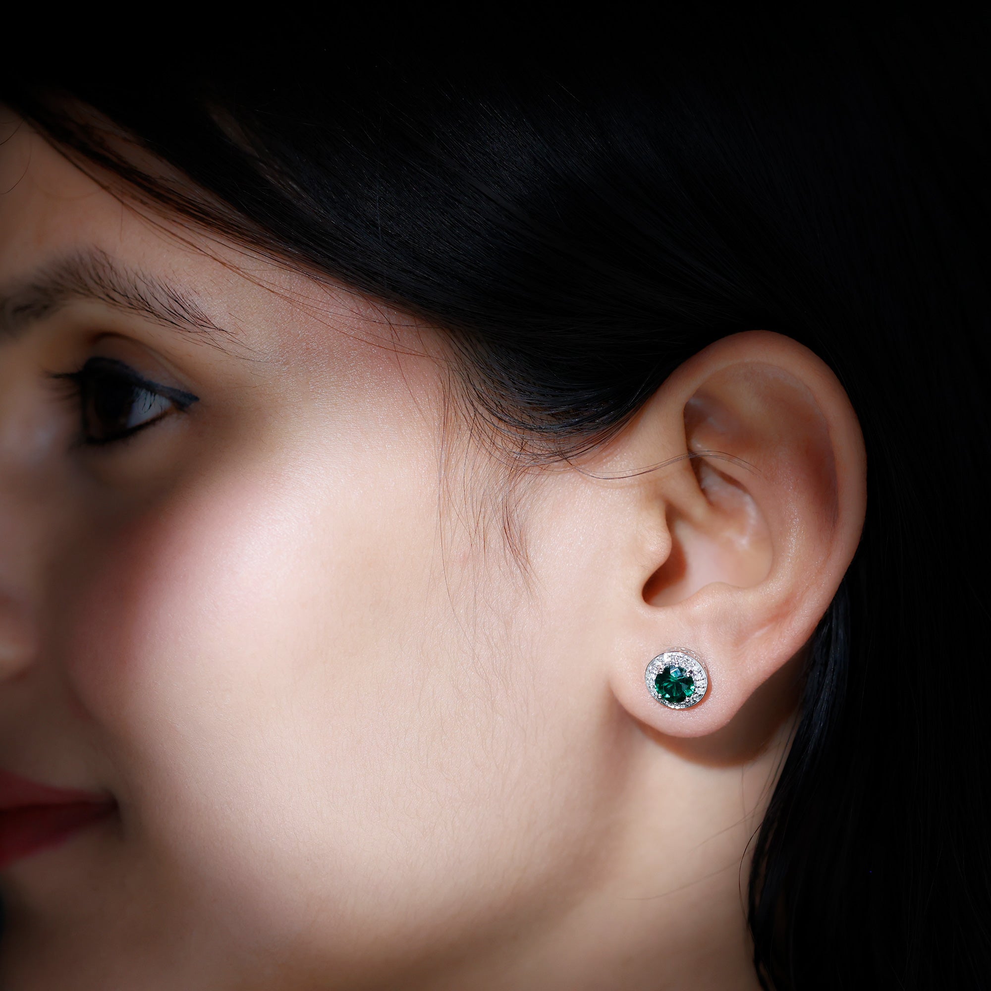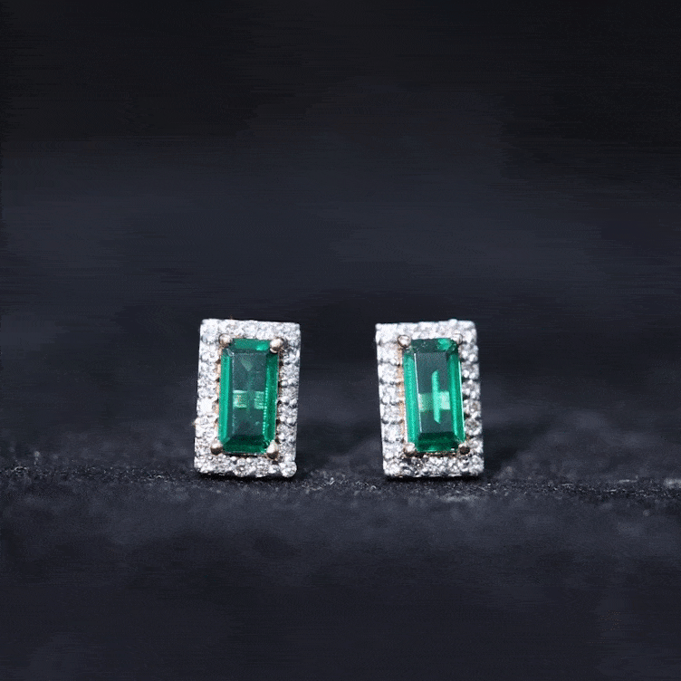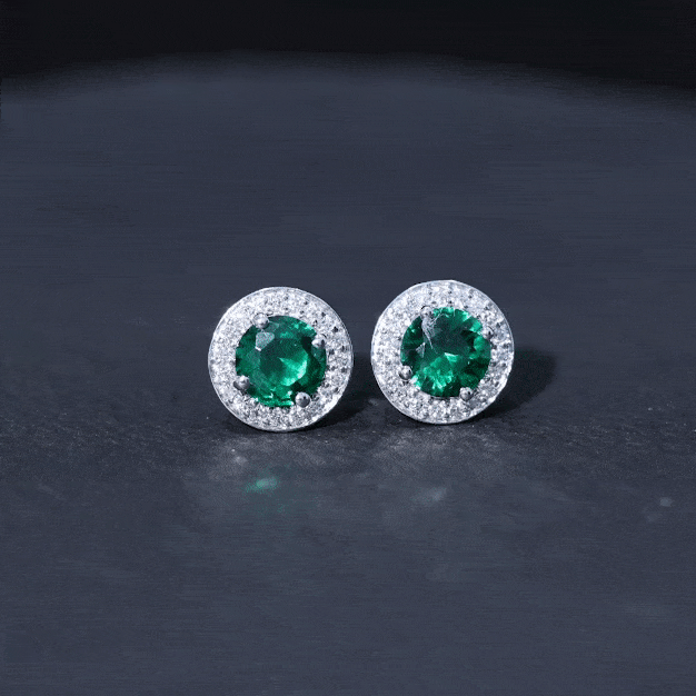 Lab emerald halo earrings feature an emerald stone in the center, surrounded by shining or other vibrant gemstones accent. Whenever you want to extra sparkle along with a vibrant green hue, emerald halo earrings are a great pick.