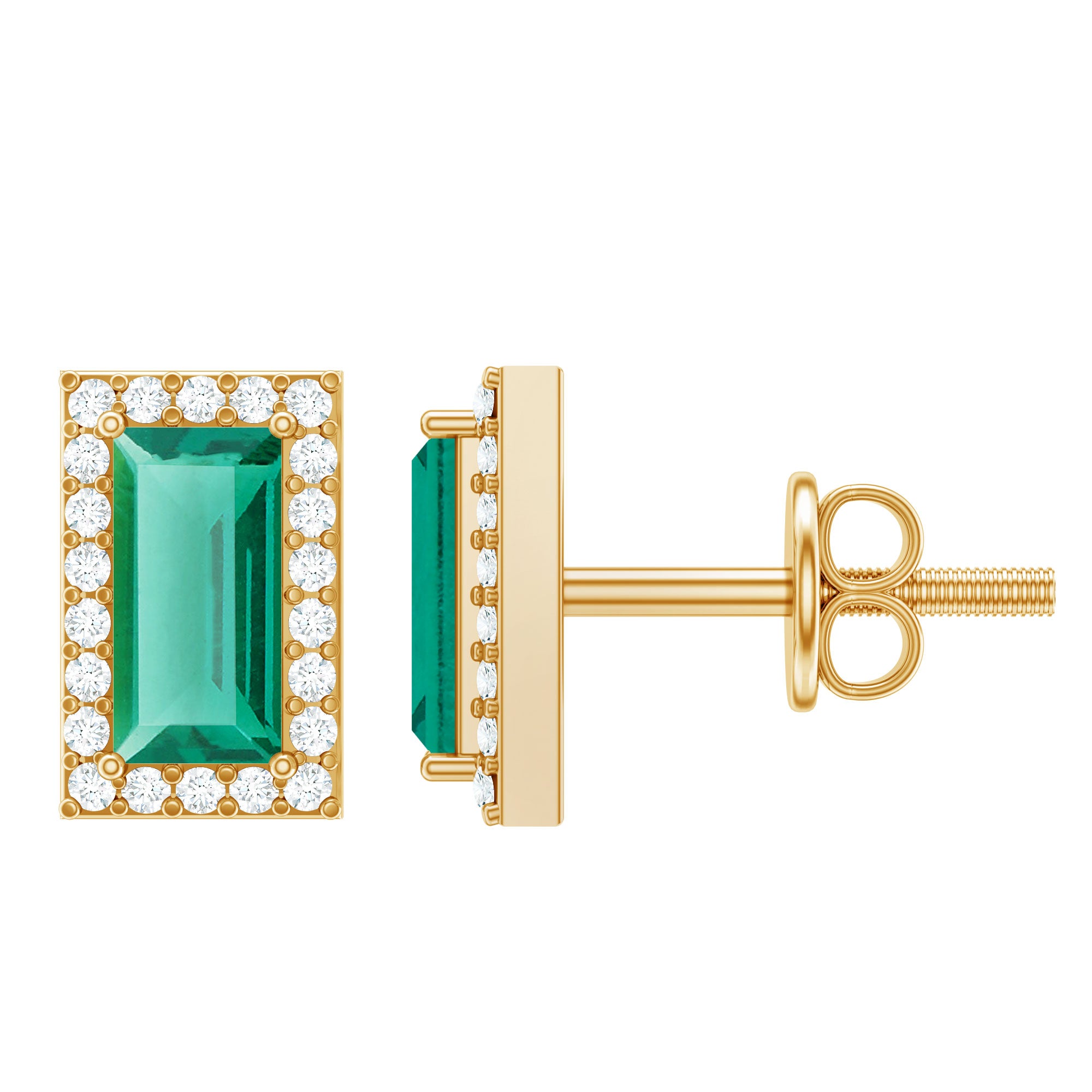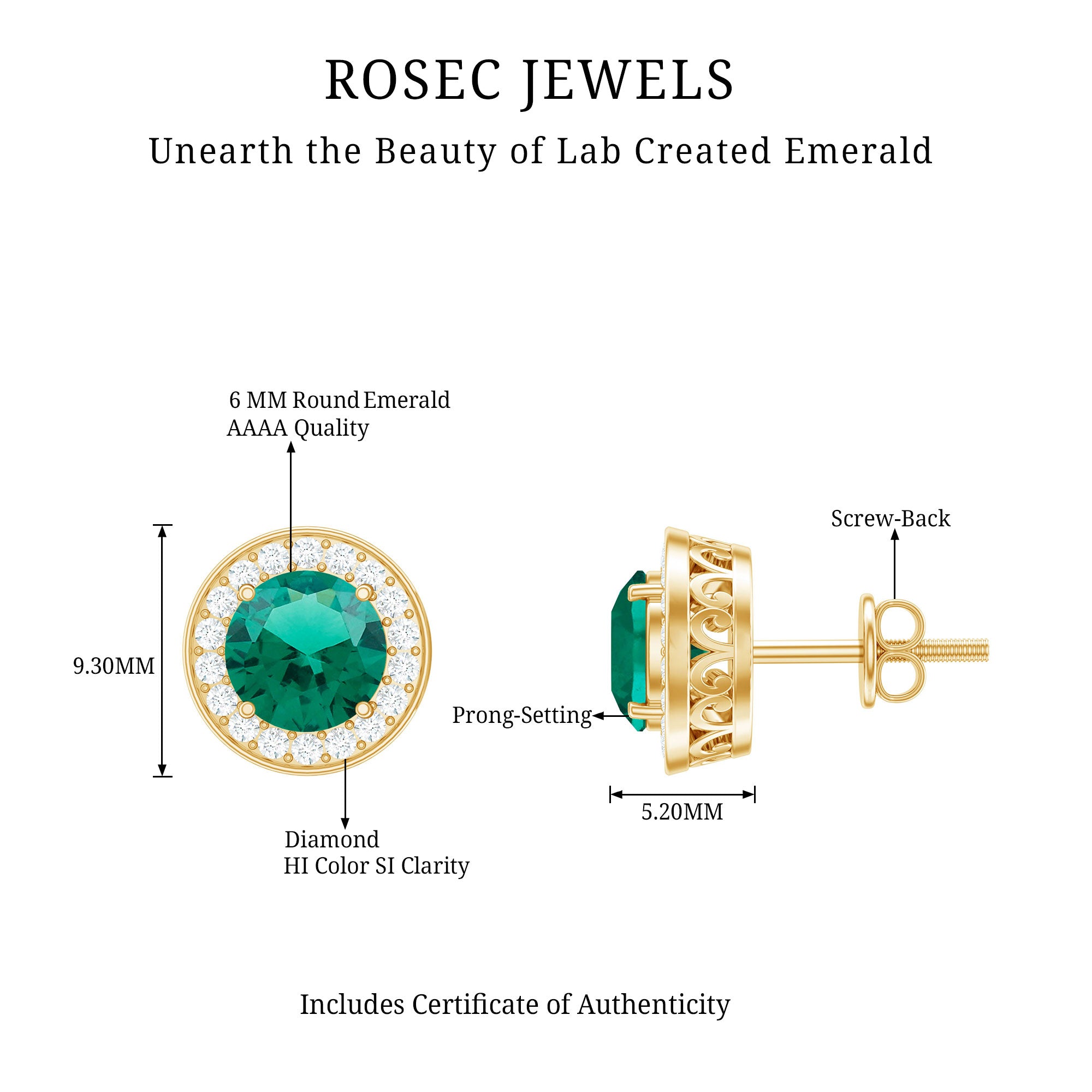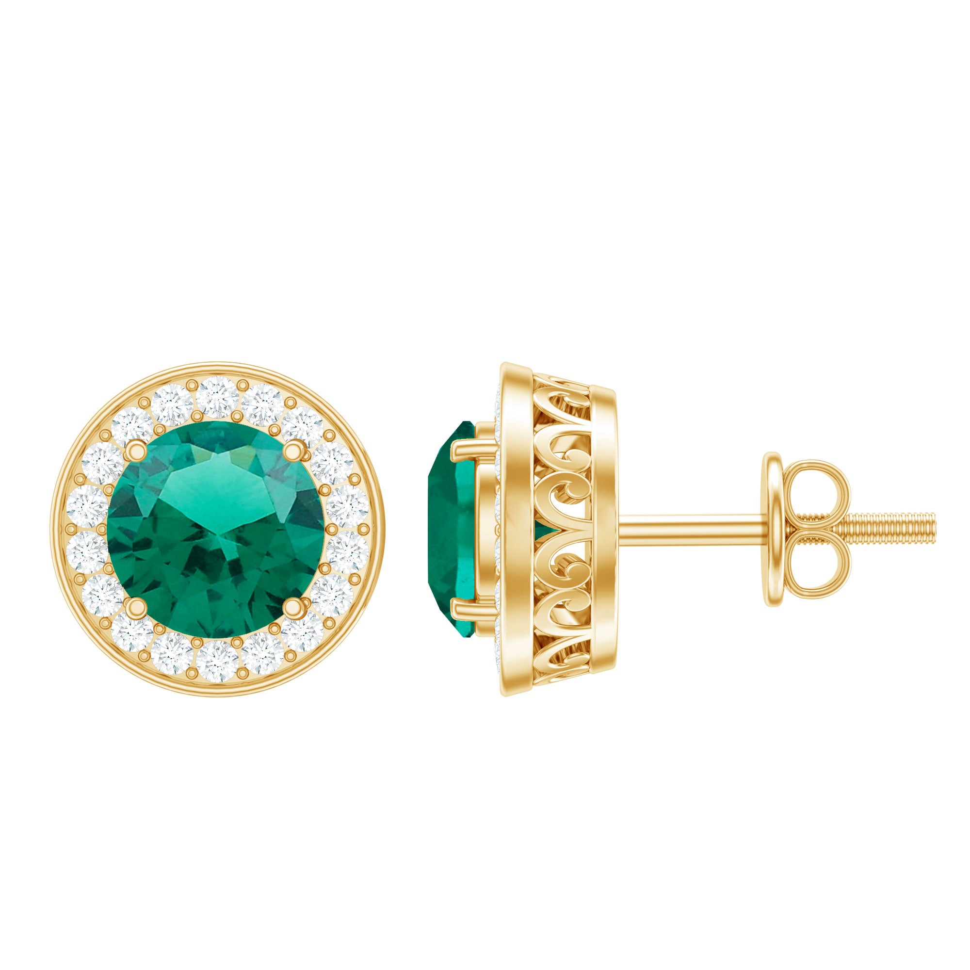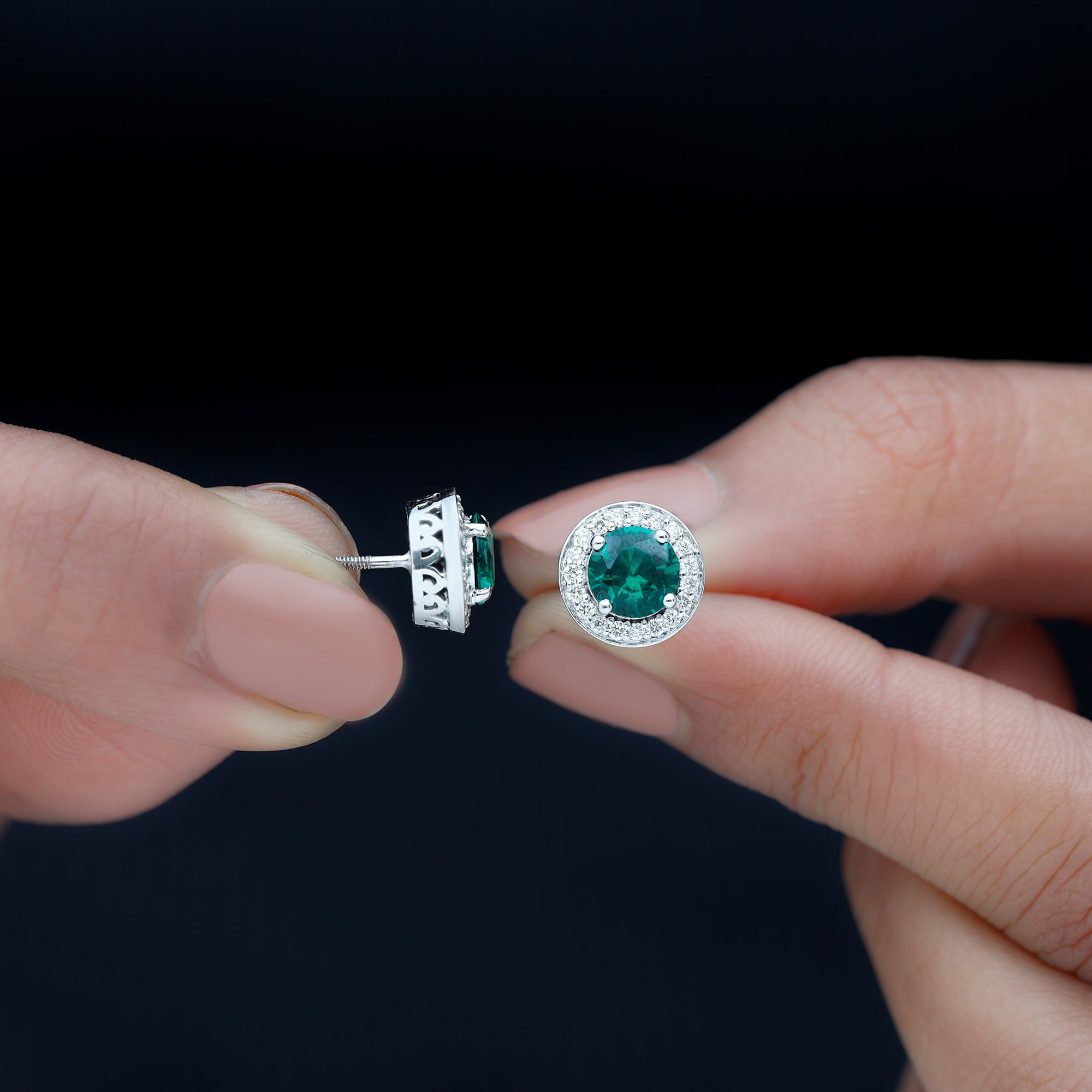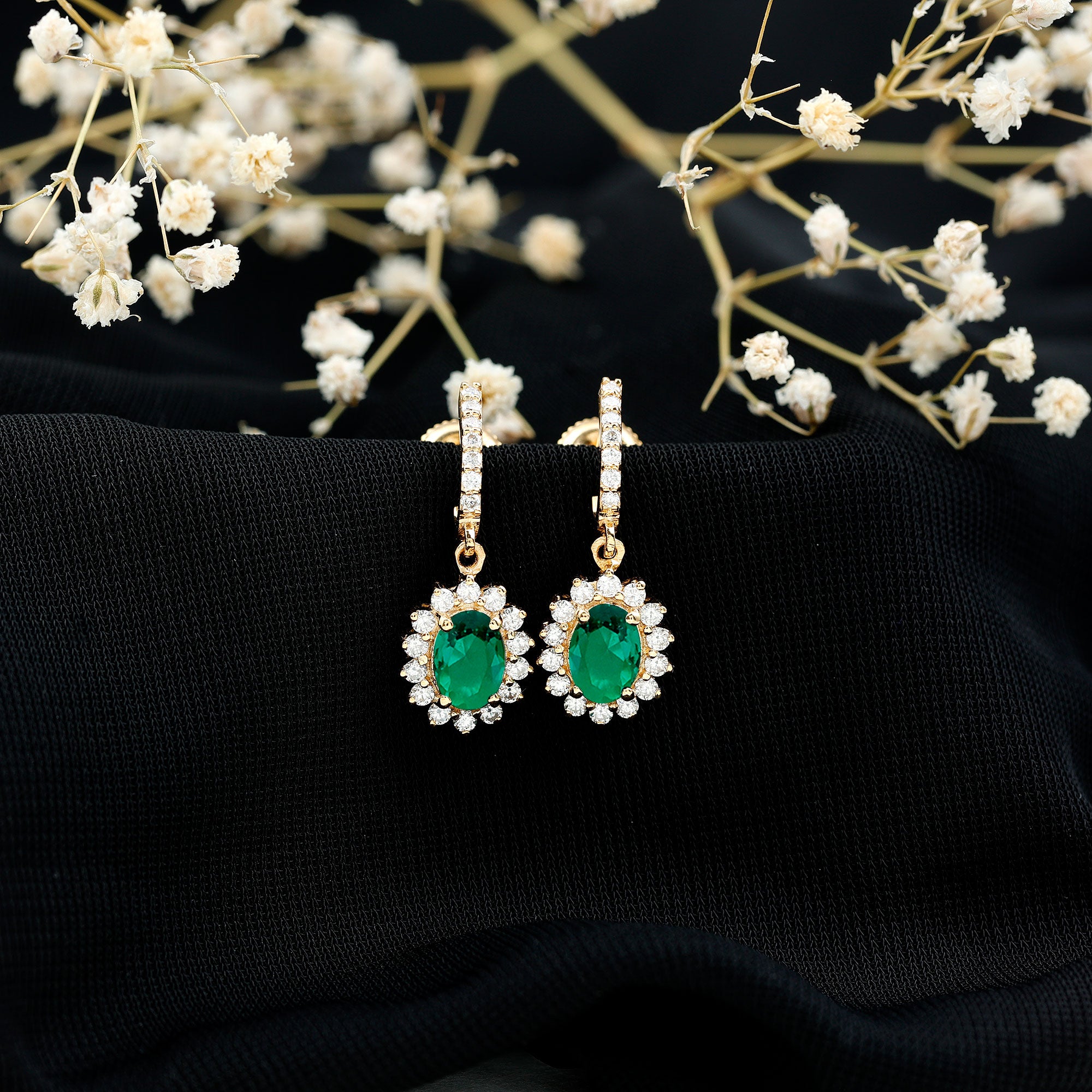 Lab emerald halo earrings feature an emerald stone in the center, surrounded by shining or other vibrant gemstones accent. Whenever you want to extra sparkle along with a vibrant green hue, emerald halo earrings are a great pick.