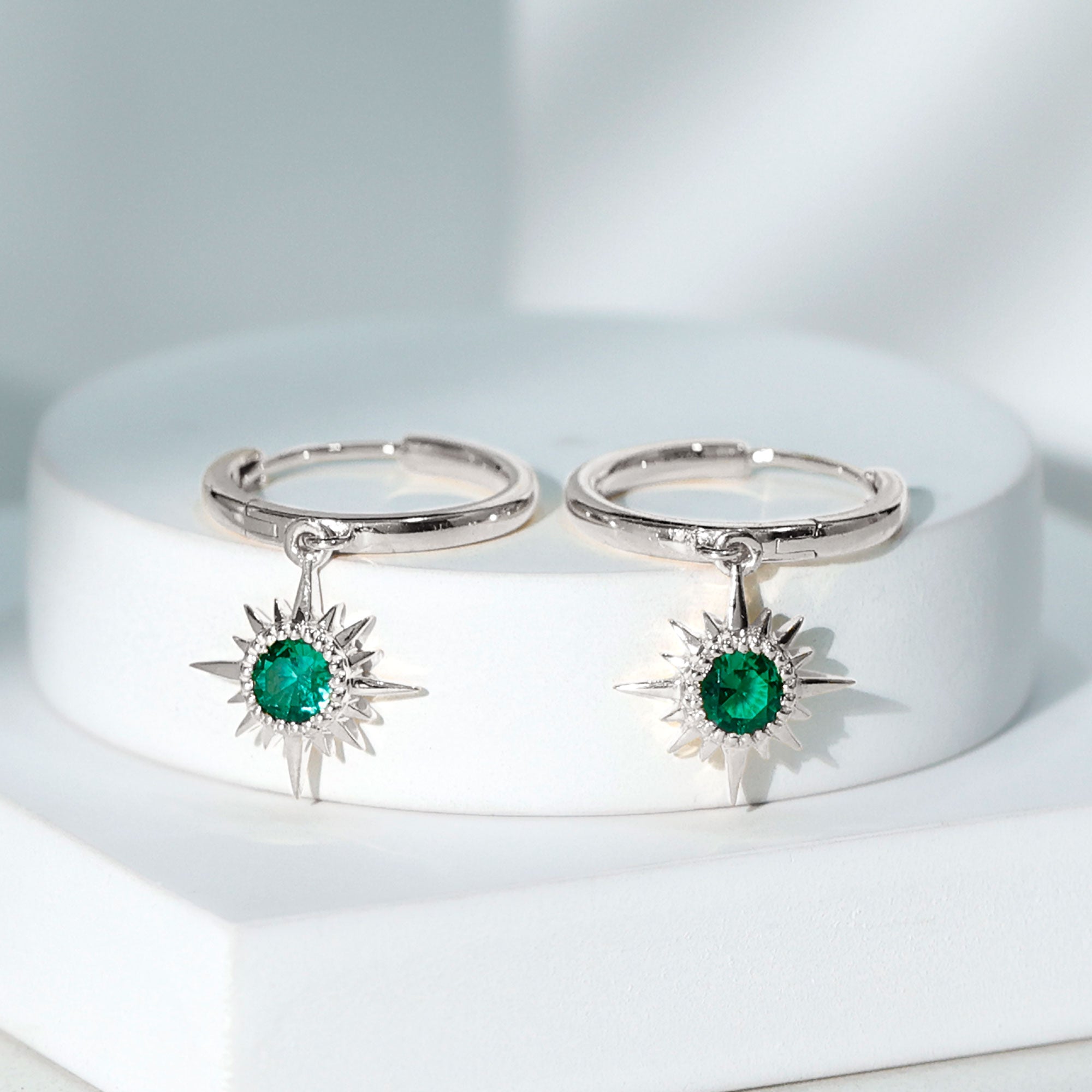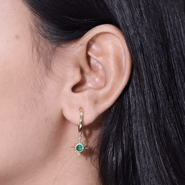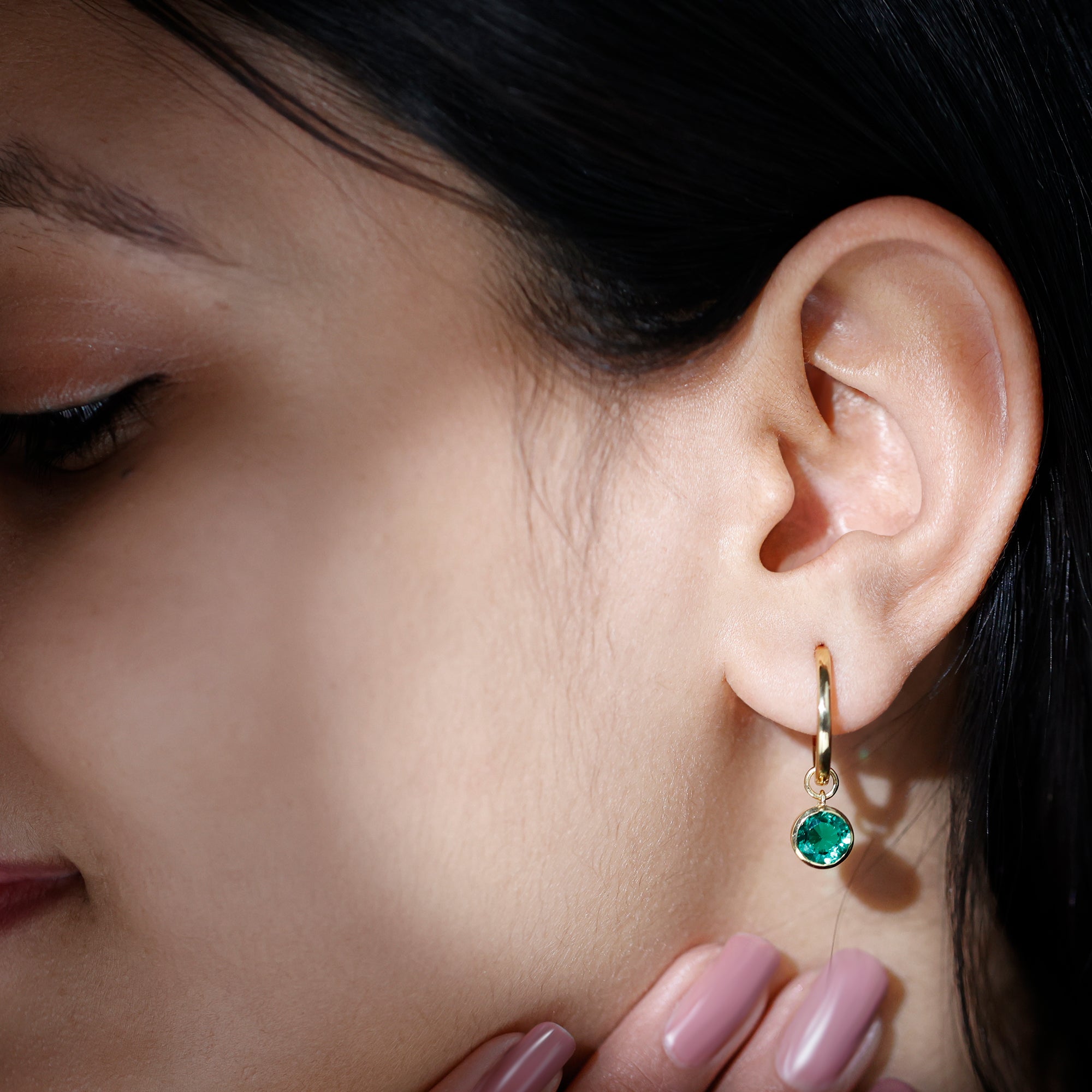 Emerald hoops are circular metallic frames adorned with dainty lab emeralds and other shining gemstones. These can be mini hoops for your daily casuals or statement hoops for your cocktail gowns.