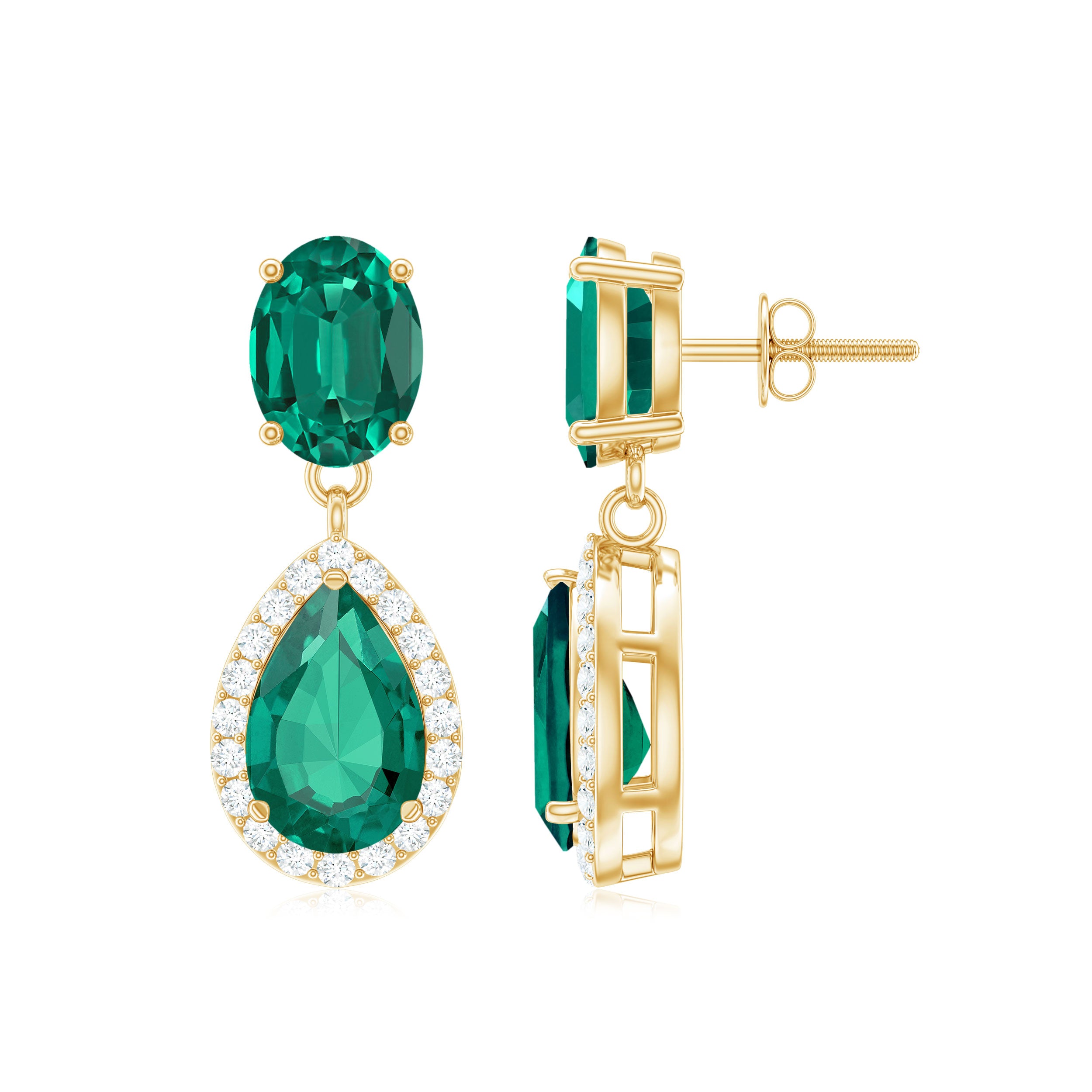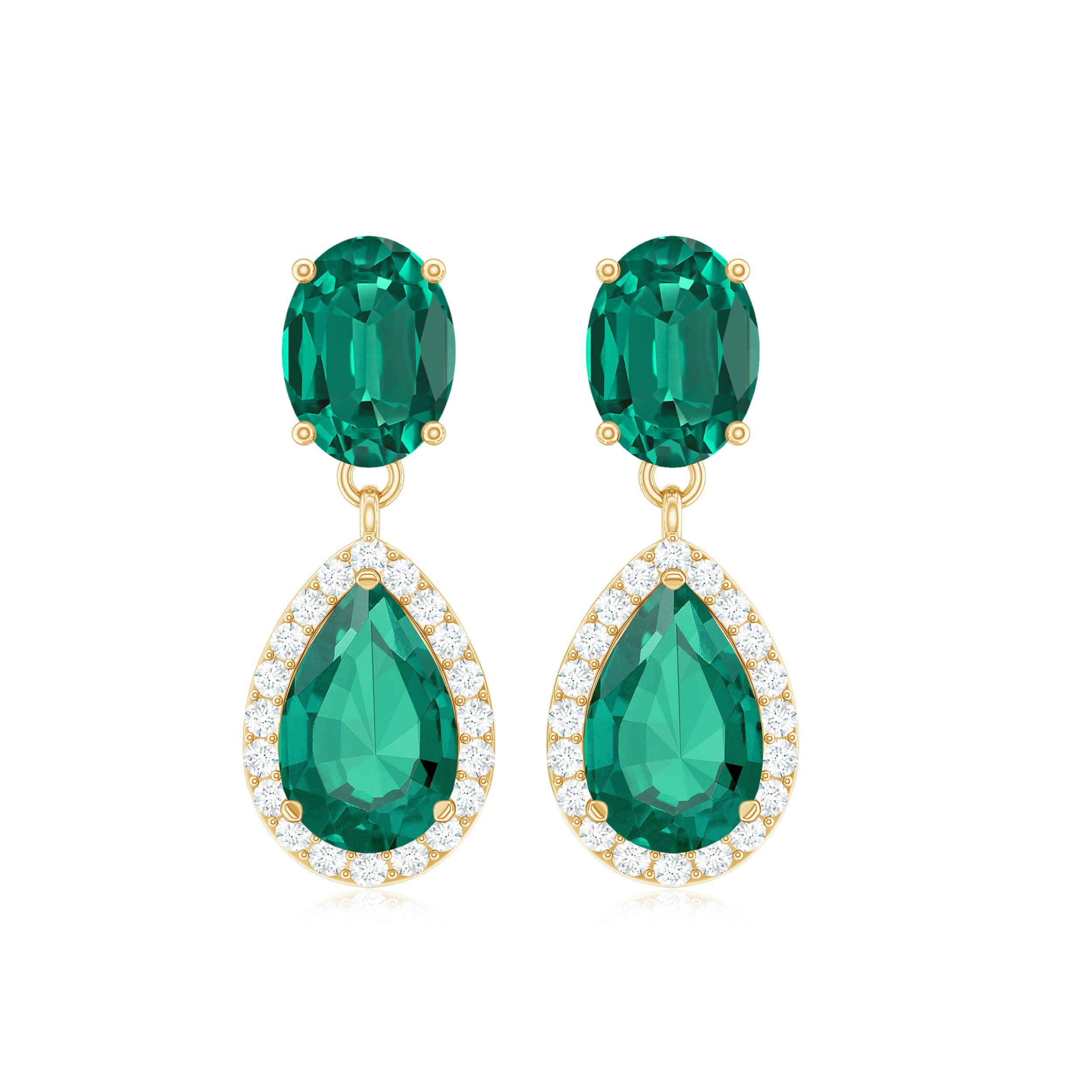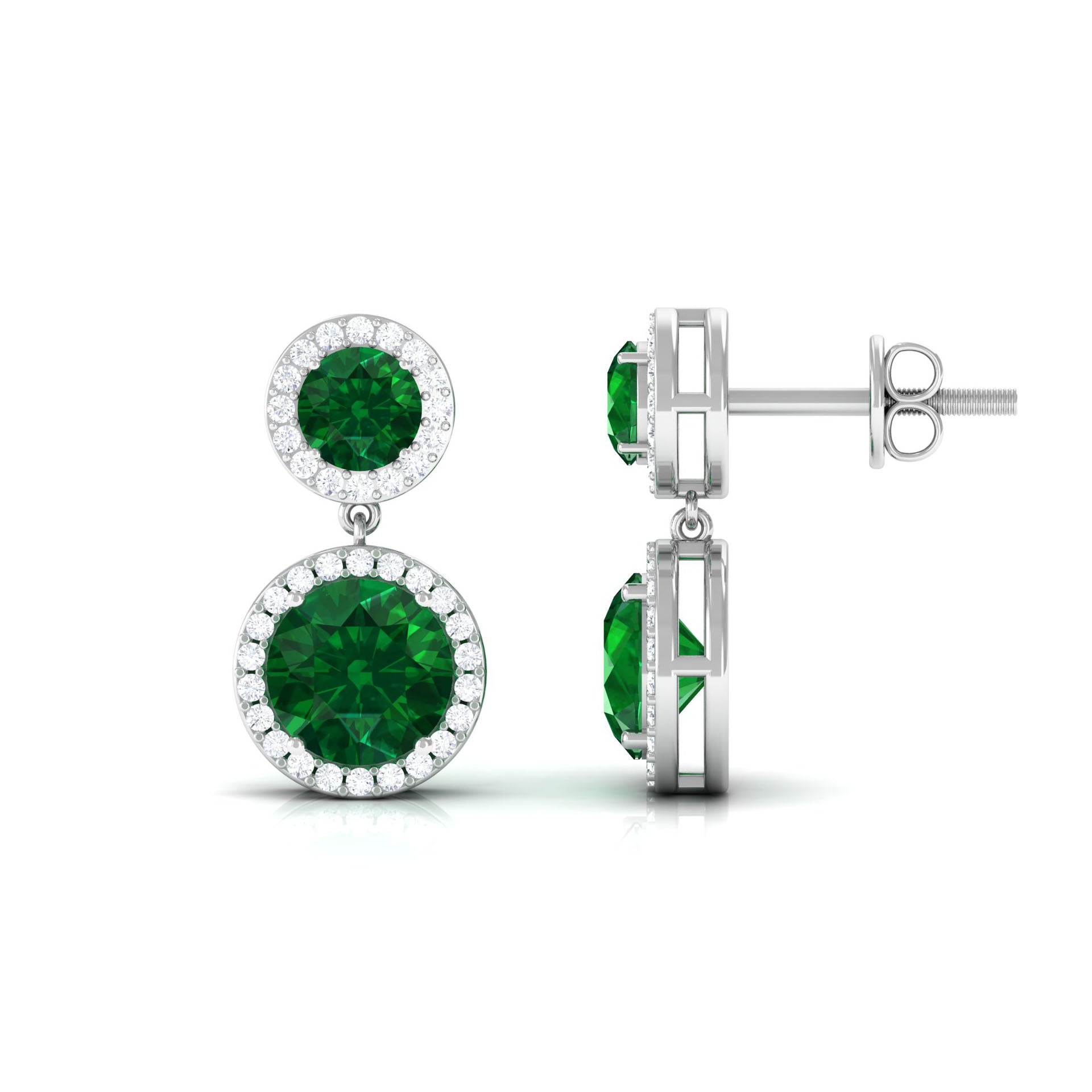 Lab emerald halo earrings feature an emerald stone in the center, surrounded by shining or other vibrant gemstones accent. Whenever you want to extra sparkle along with a vibrant green hue, emerald halo earrings are a great pick.
