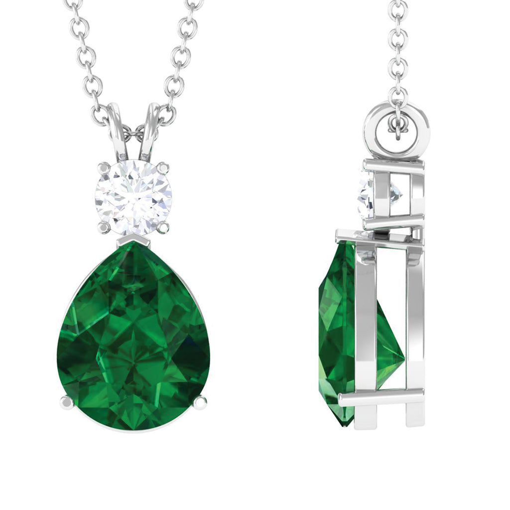 Emerald hanging from a chain shines as a drop in different shapes like pear, round and more in a lab created emerald pendant. While the dangle design fixed for to and fro motion draws attention with emeralds green hue. Dainty to large gemstones make this style perfect for special evenings and casual mornings.