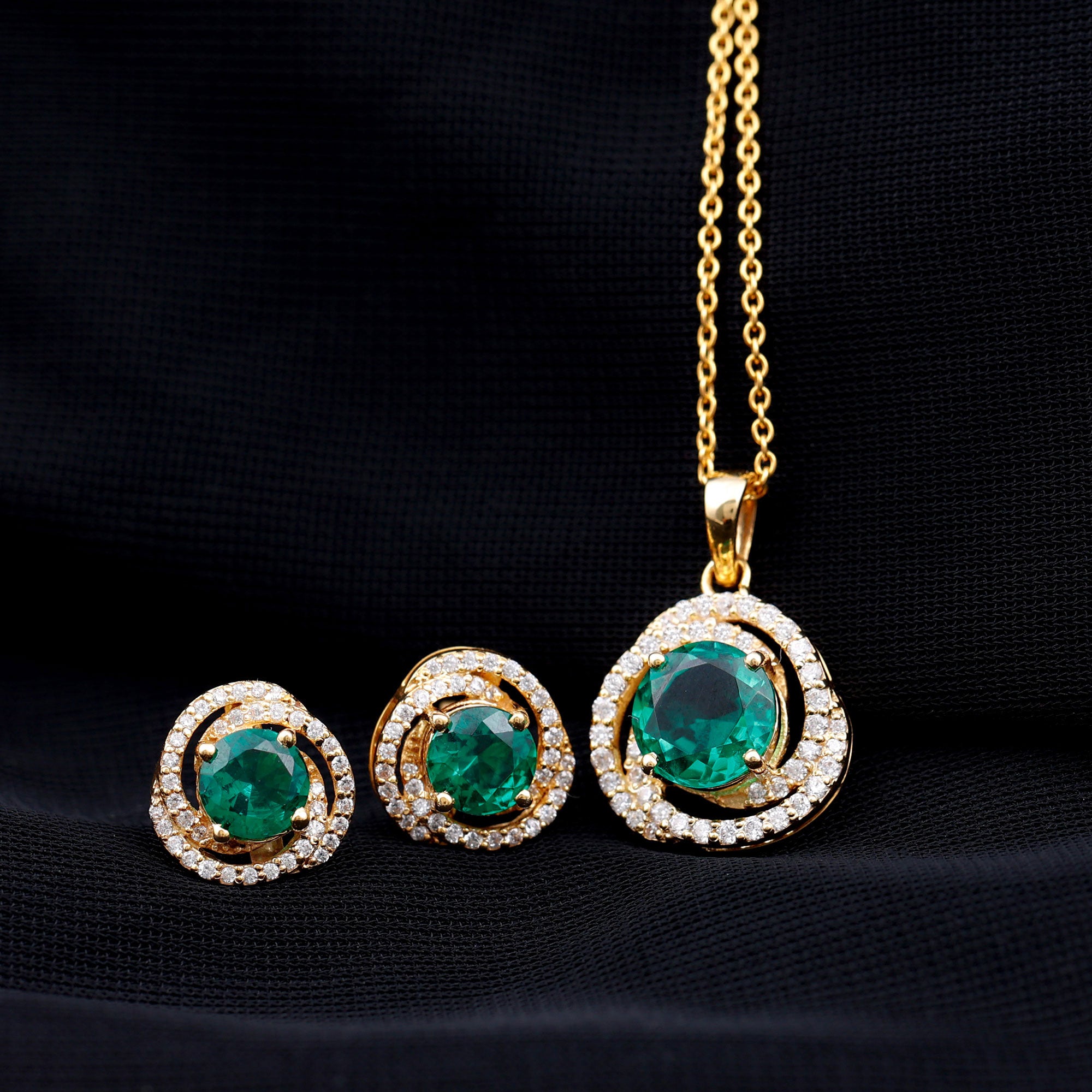 Symbolizing endless love, eternity lab emerald necklaces are timeless and meaningful jewel pieces. This elegant design features continuous gemstones on a circular metallic frame.