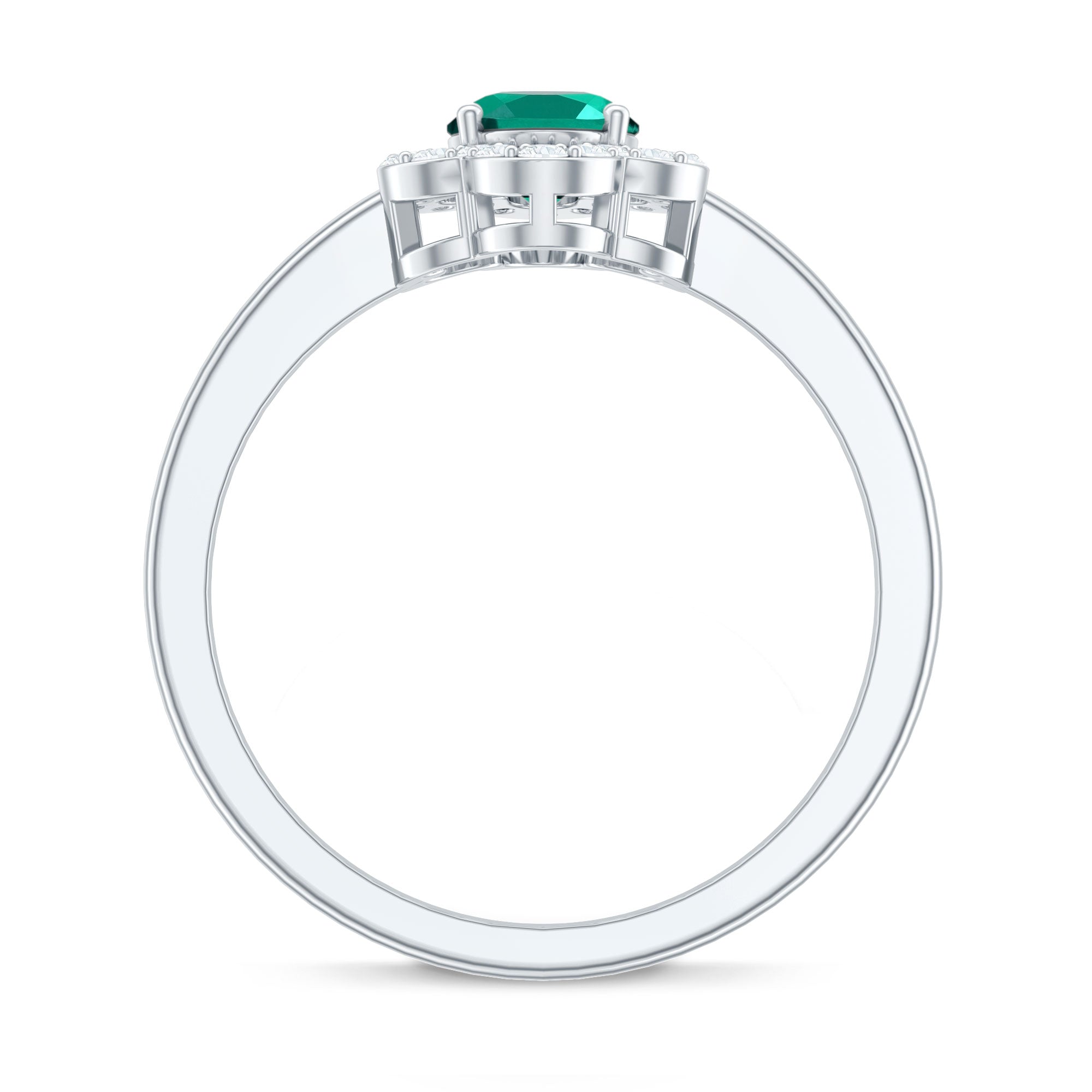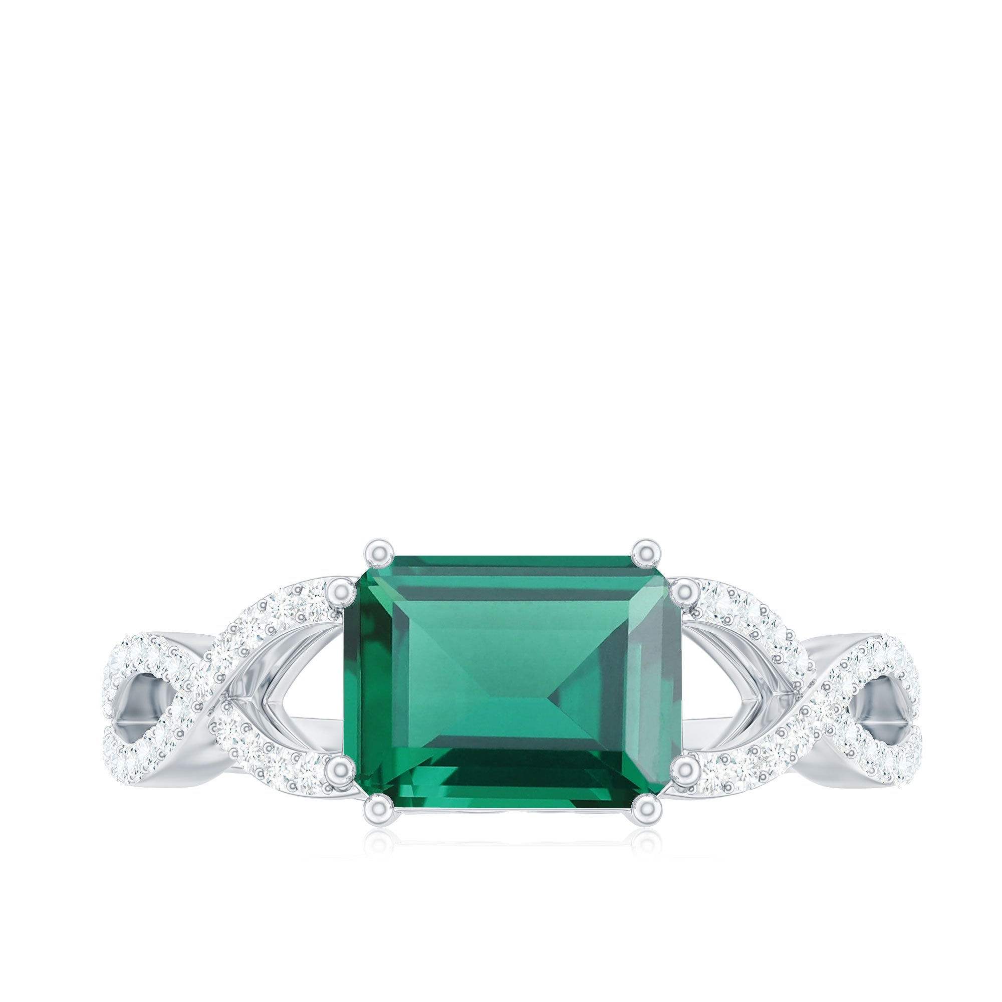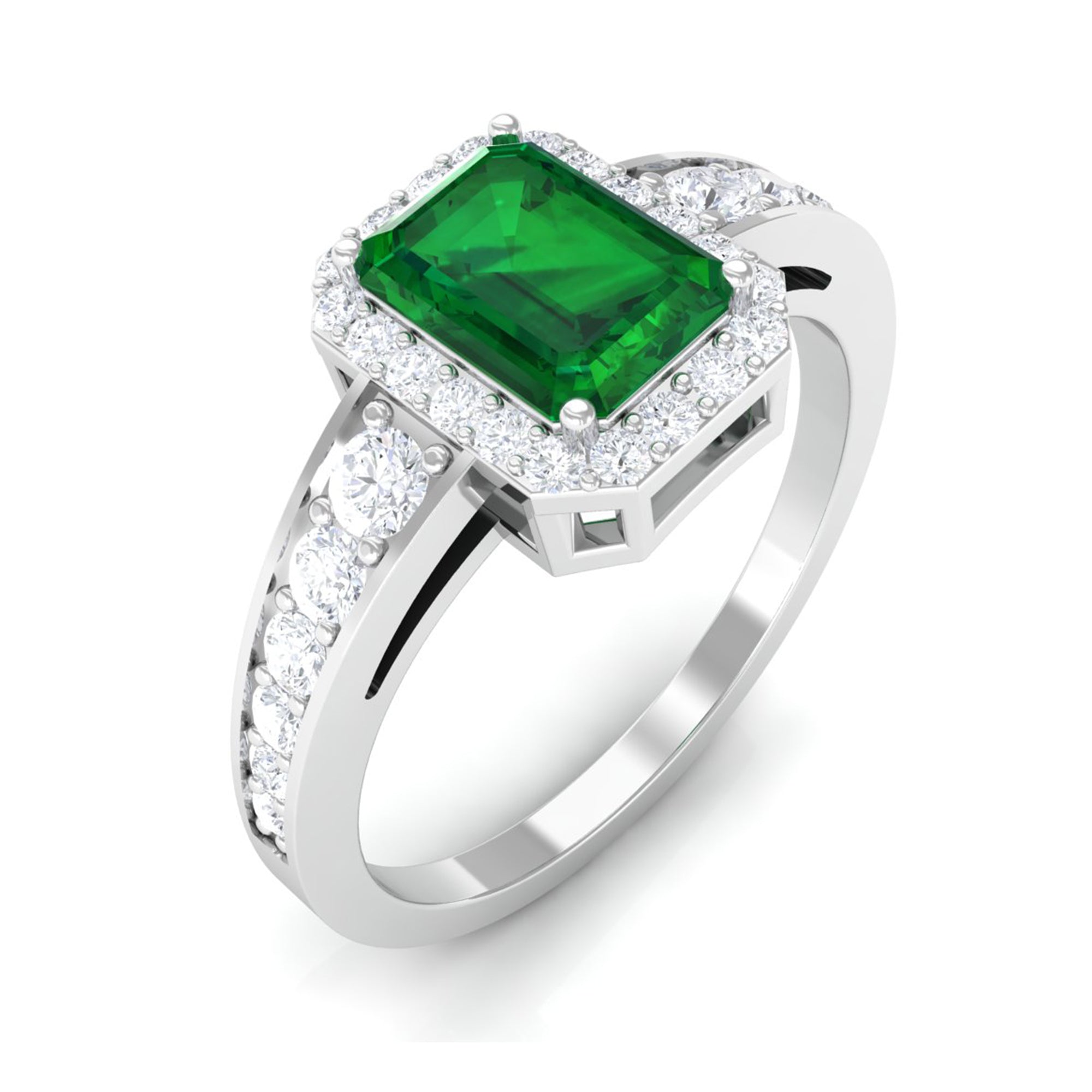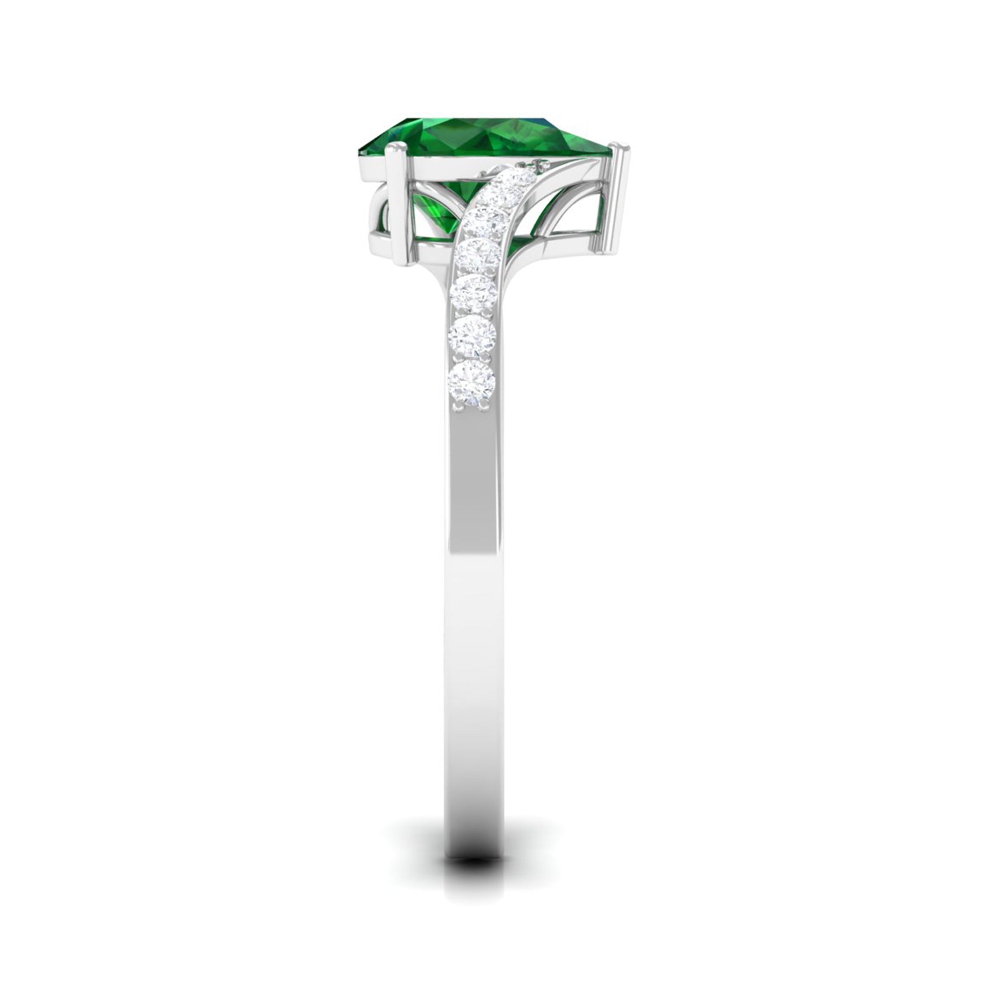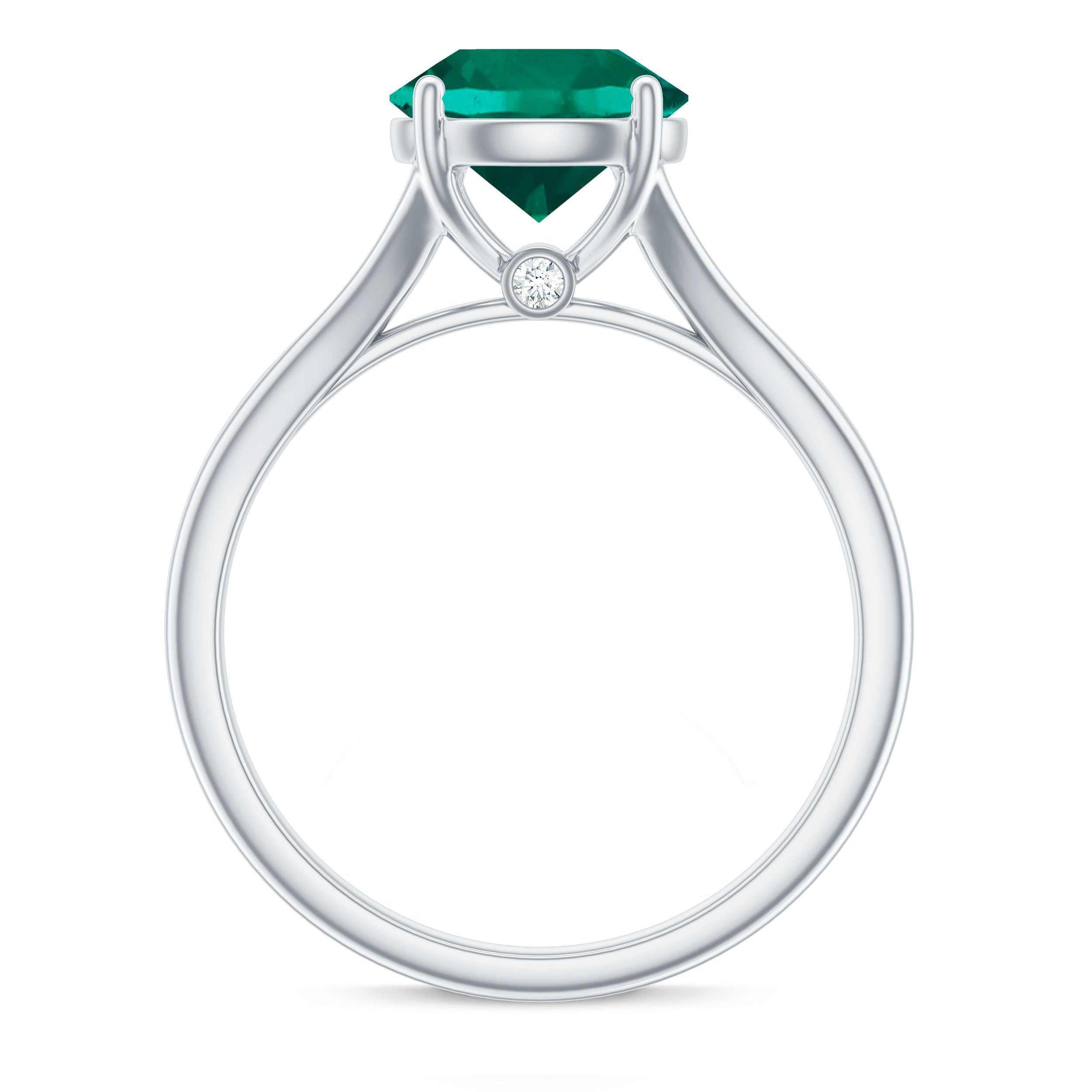 Lab Grown Emerald Rings when set in yellow gold metal, give a luxurious appearance. This metal type is extremely beautiful and gives a classic charm, ideal for any piece of jewelry. This warm metal type brings out the best vibrant green hue of the lab grown emerald.Lab Created Emerald Ring White Gold: