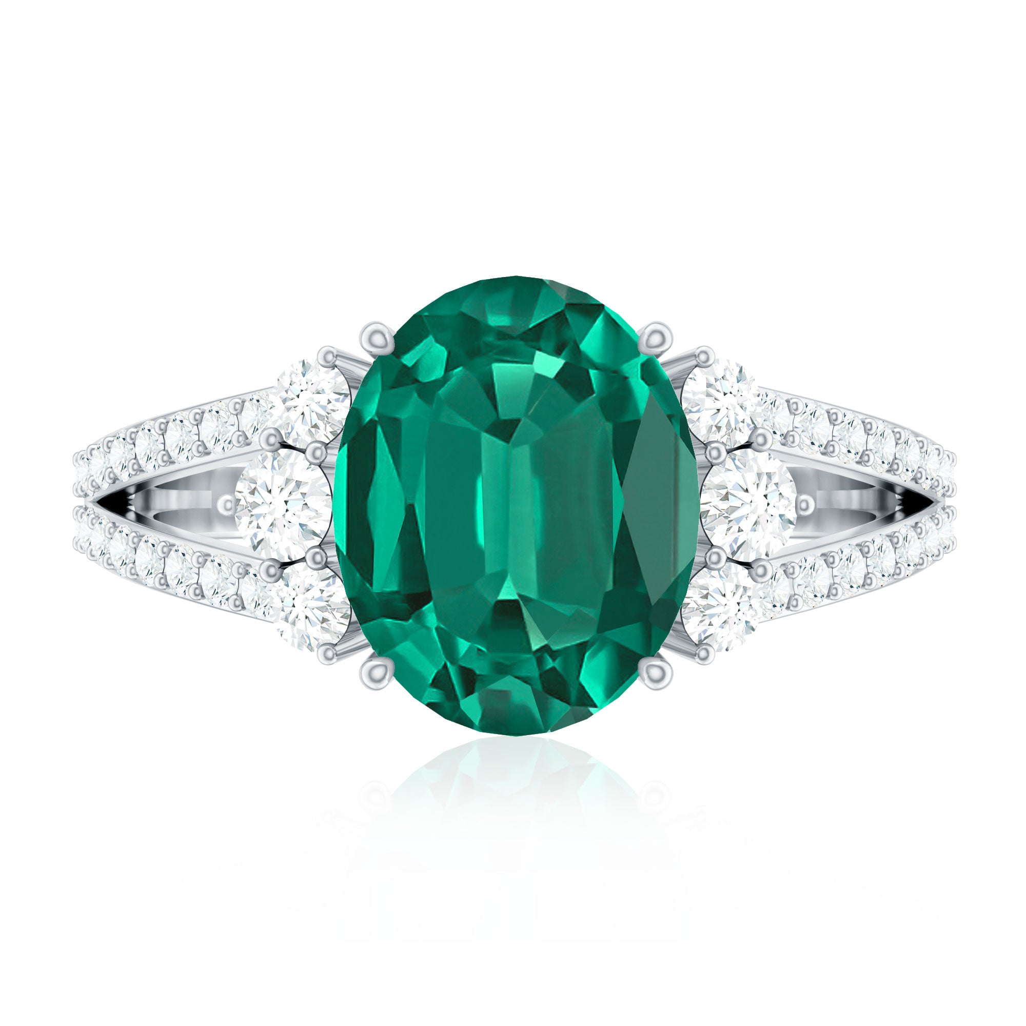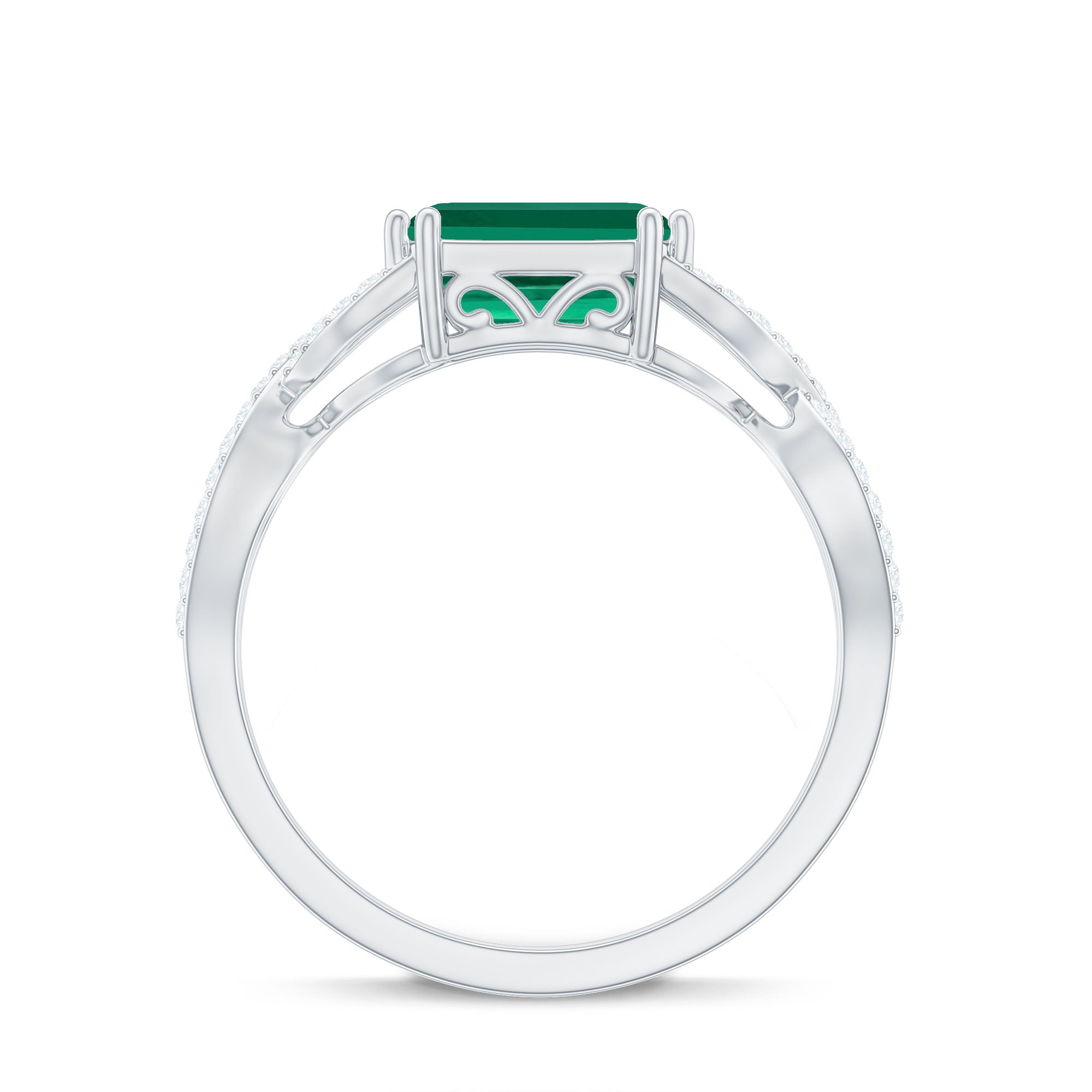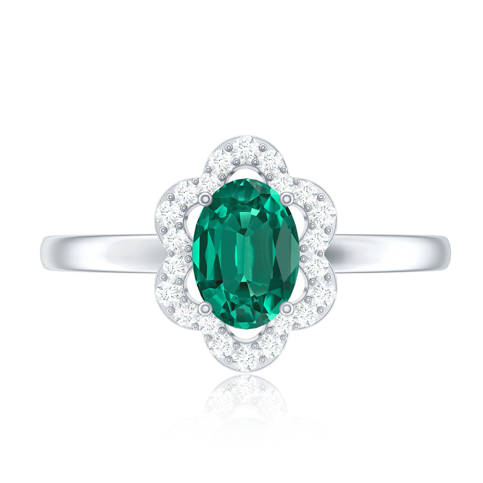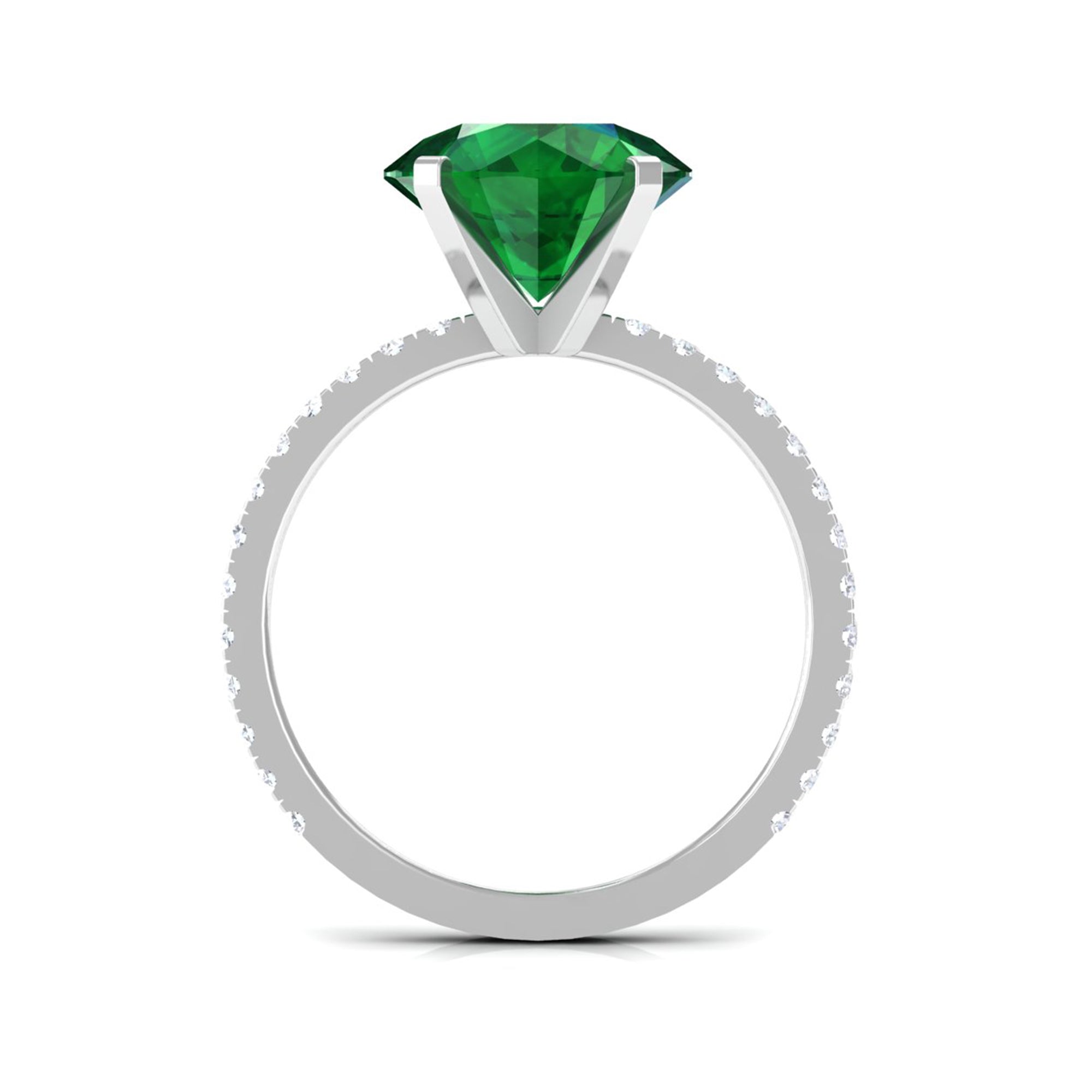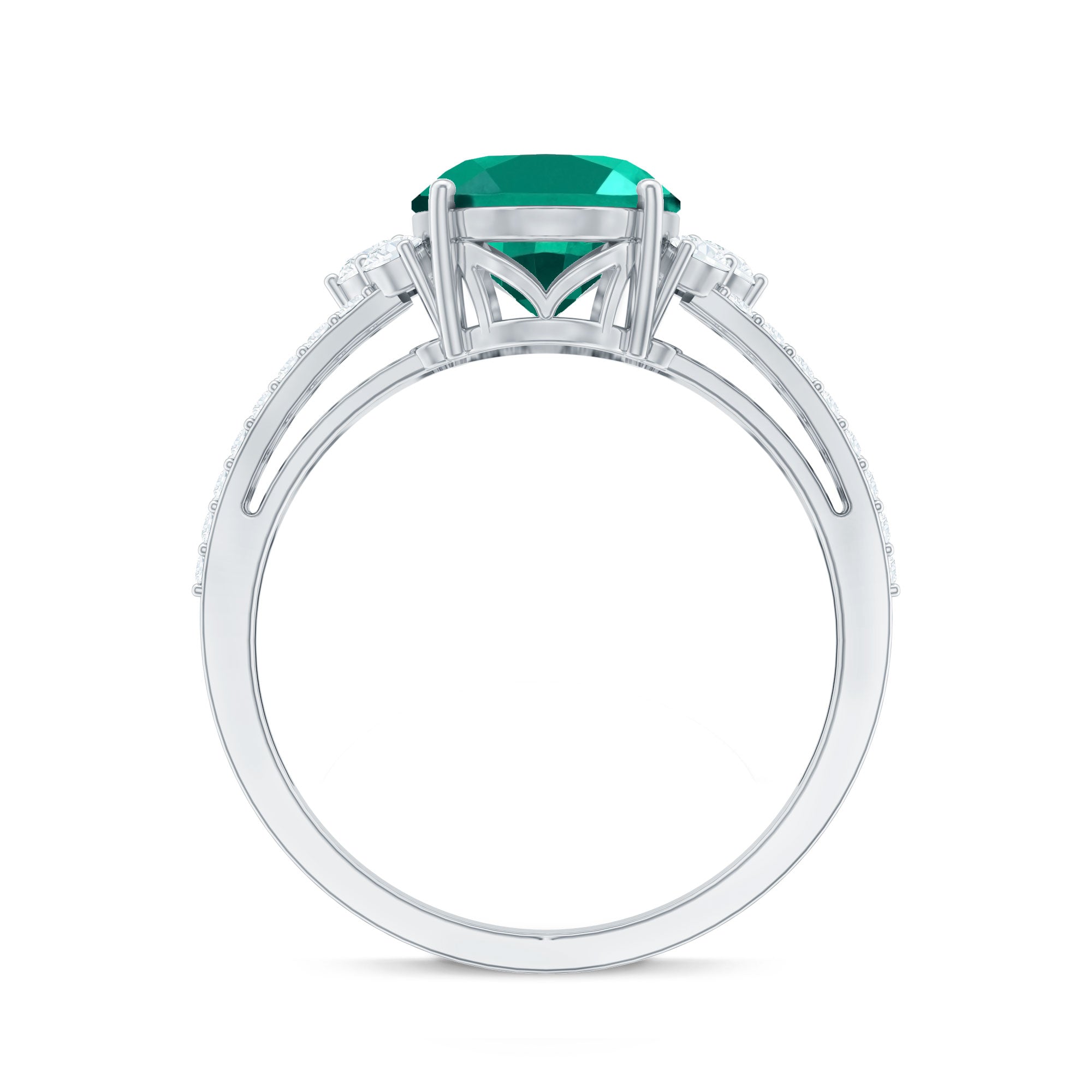 Lab Grown Emerald Rings when set in yellow gold metal, give a luxurious appearance. This metal type is extremely beautiful and gives a classic charm, ideal for any piece of jewelry. This warm metal type brings out the best vibrant green hue of the lab grown emerald.Lab Created Emerald Ring White Gold: