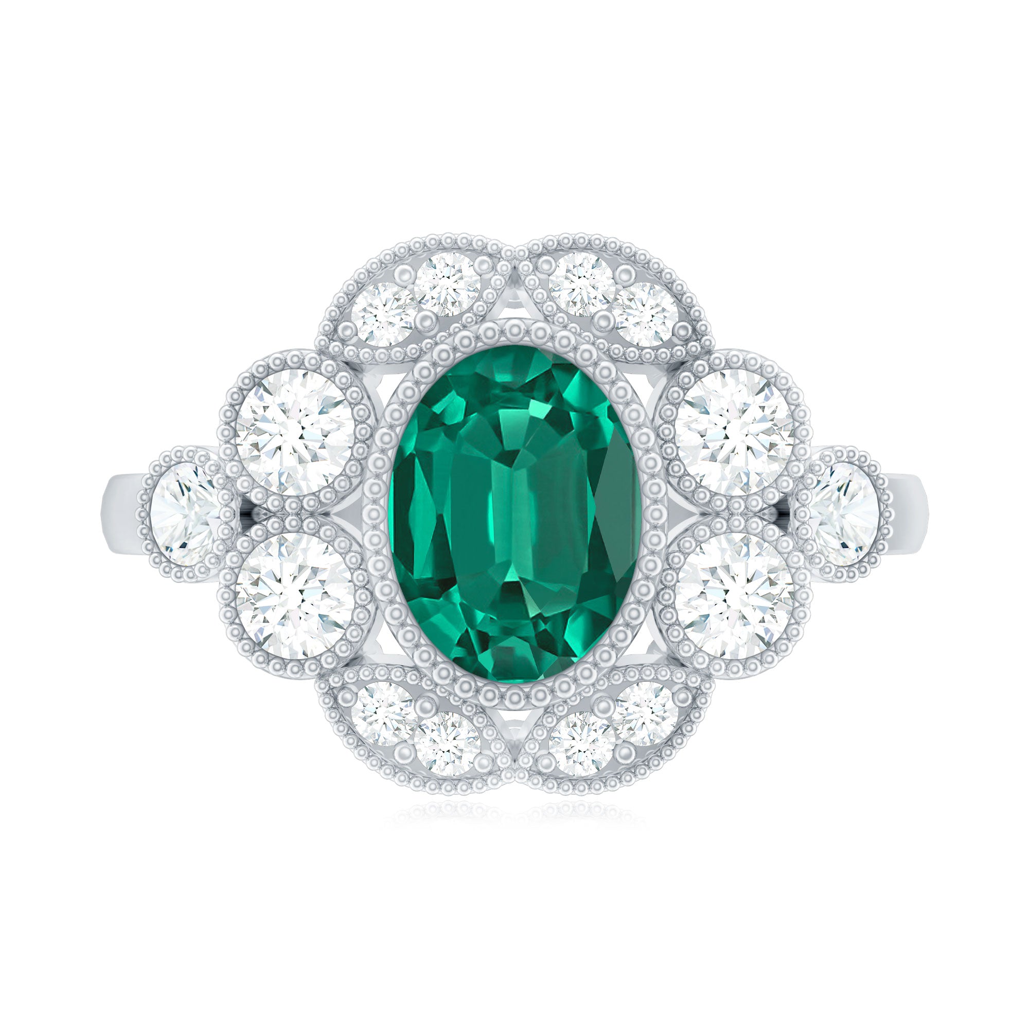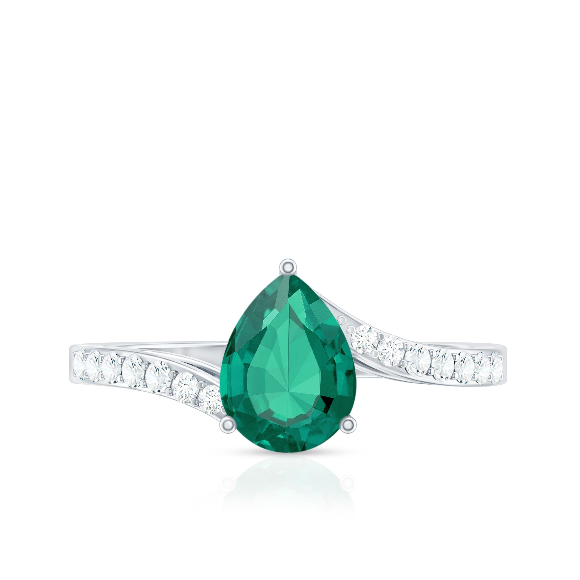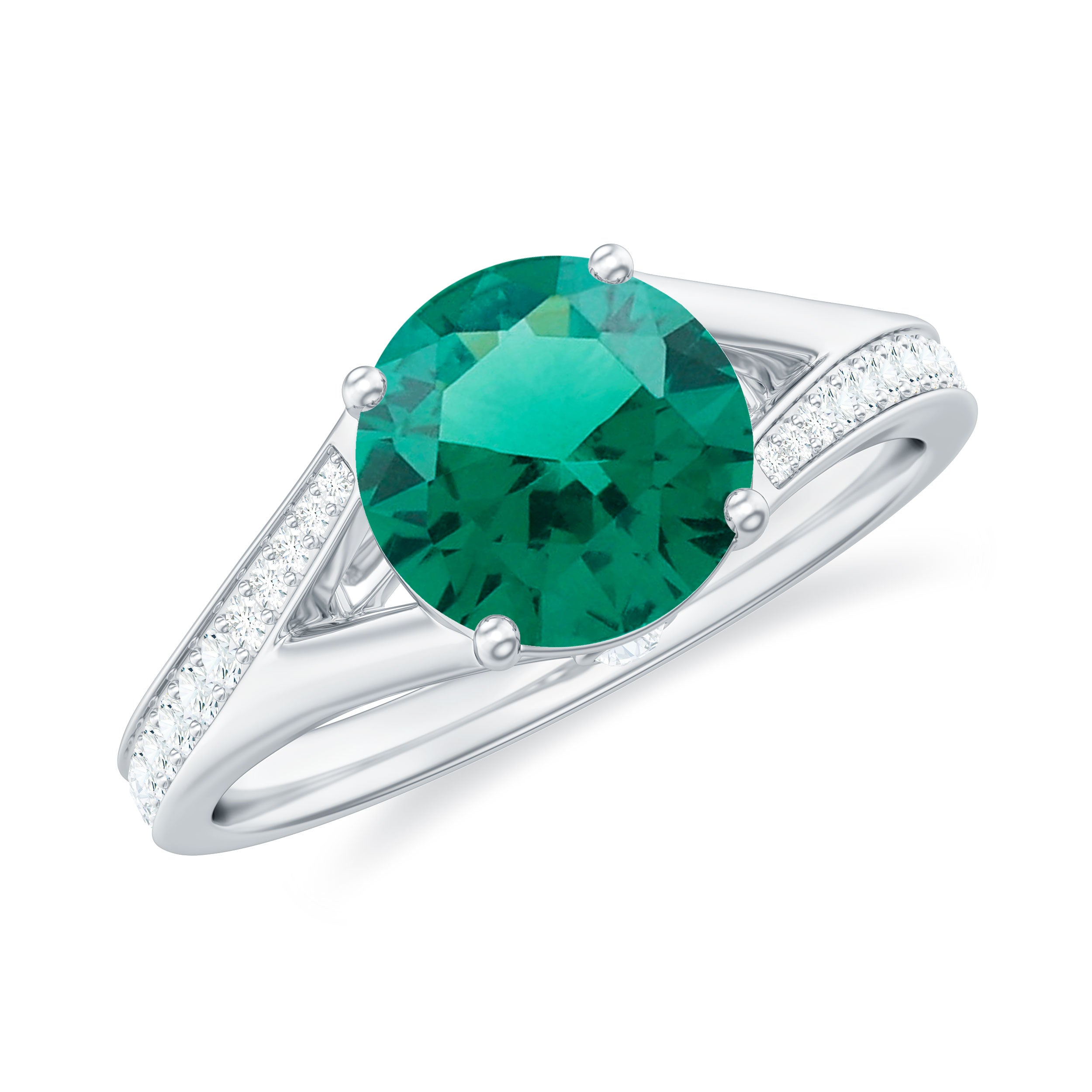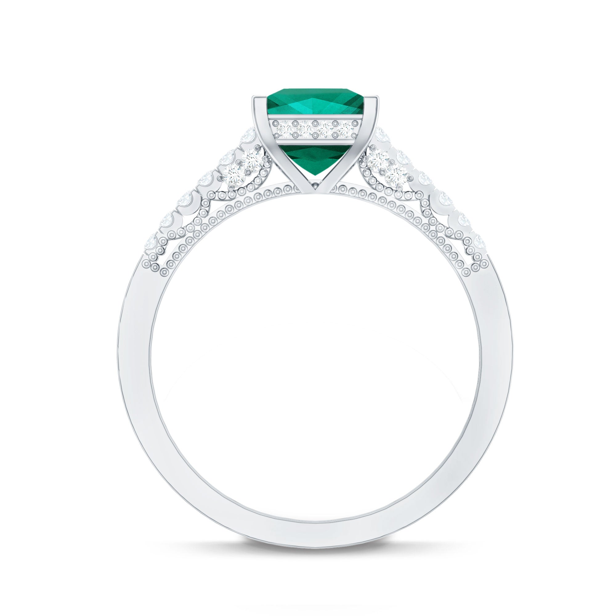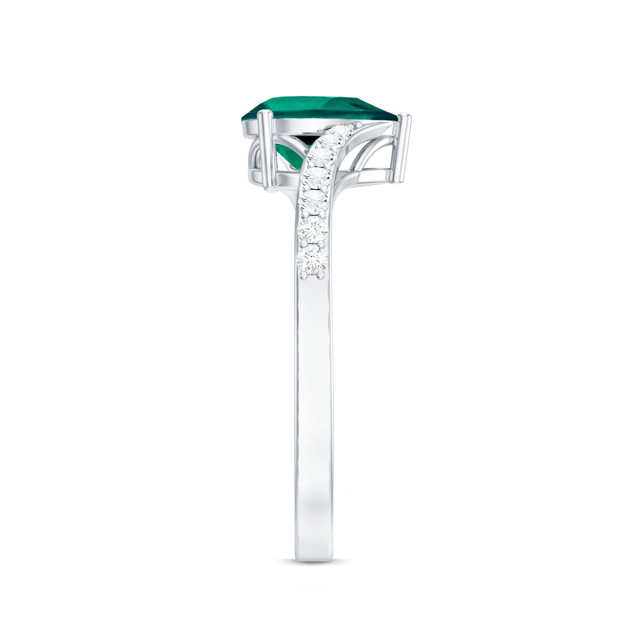 Lab Grown Emerald Rings when set in yellow gold metal, give a luxurious appearance. This metal type is extremely beautiful and gives a classic charm, ideal for any piece of jewelry. This warm metal type brings out the best vibrant green hue of the lab grown emerald.Lab Created Emerald Ring White Gold: