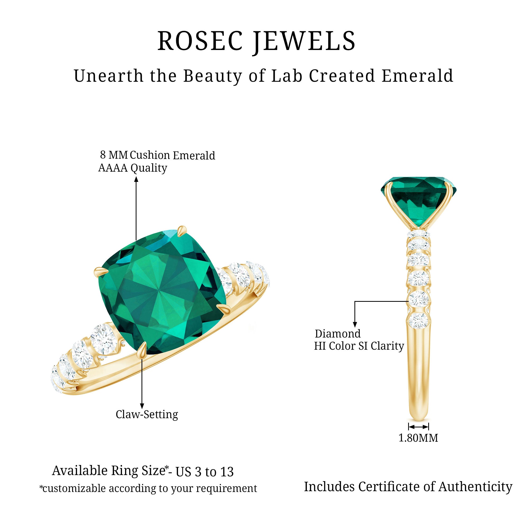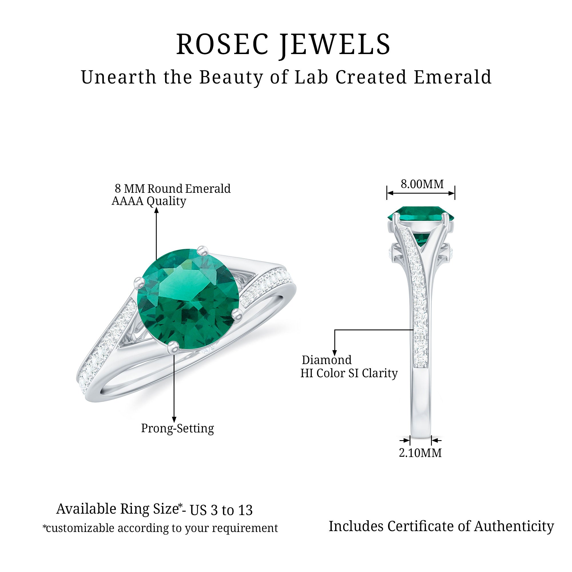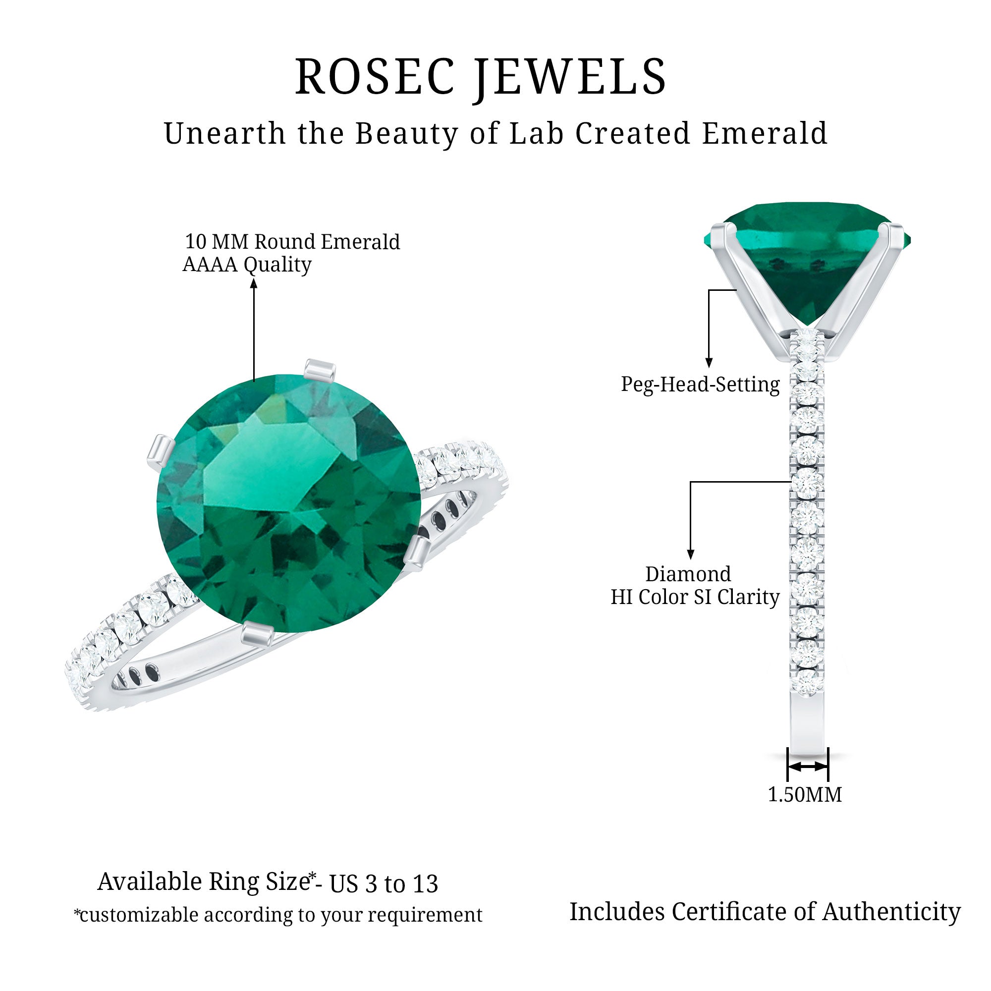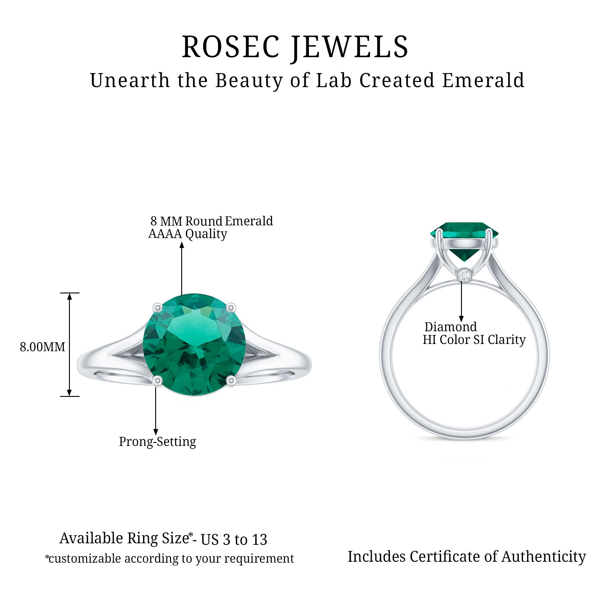 At Rosec Jewels, we have top quality AAAA quality Lab Grown Emeralds, to serve you nothing less than the best.