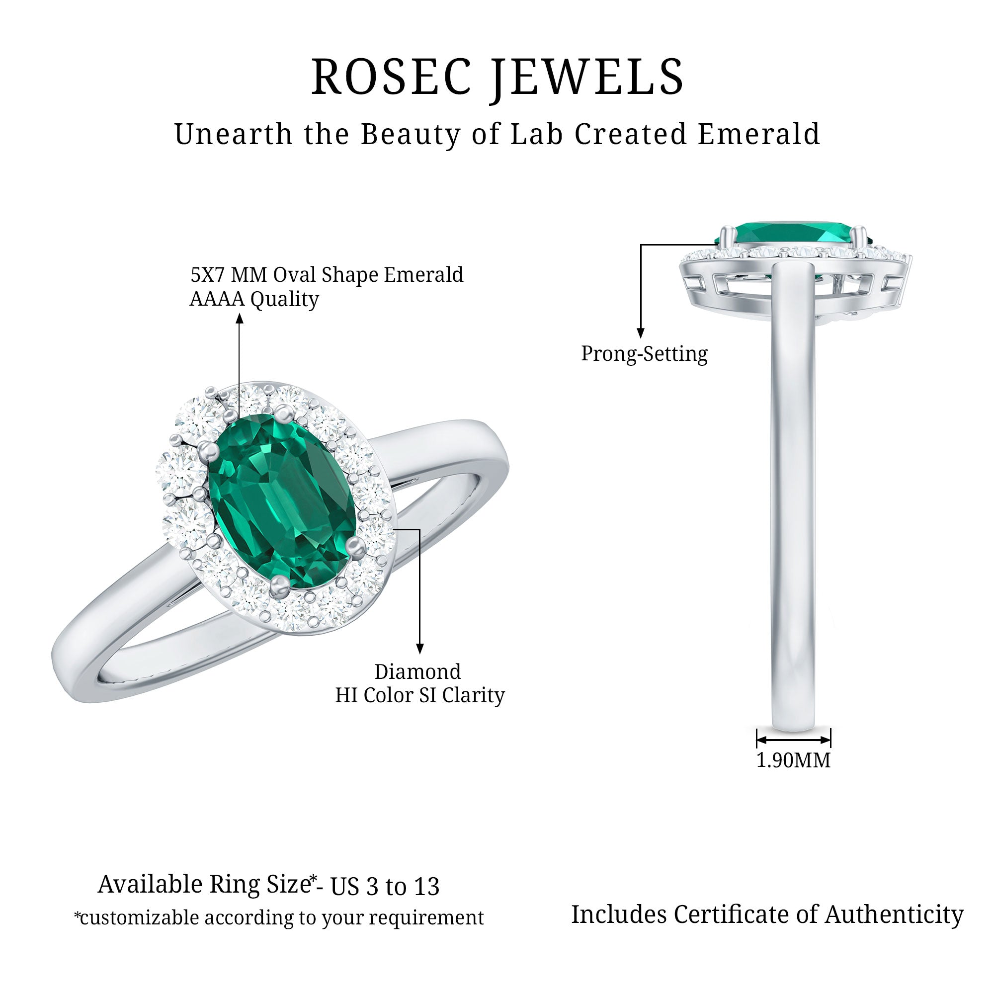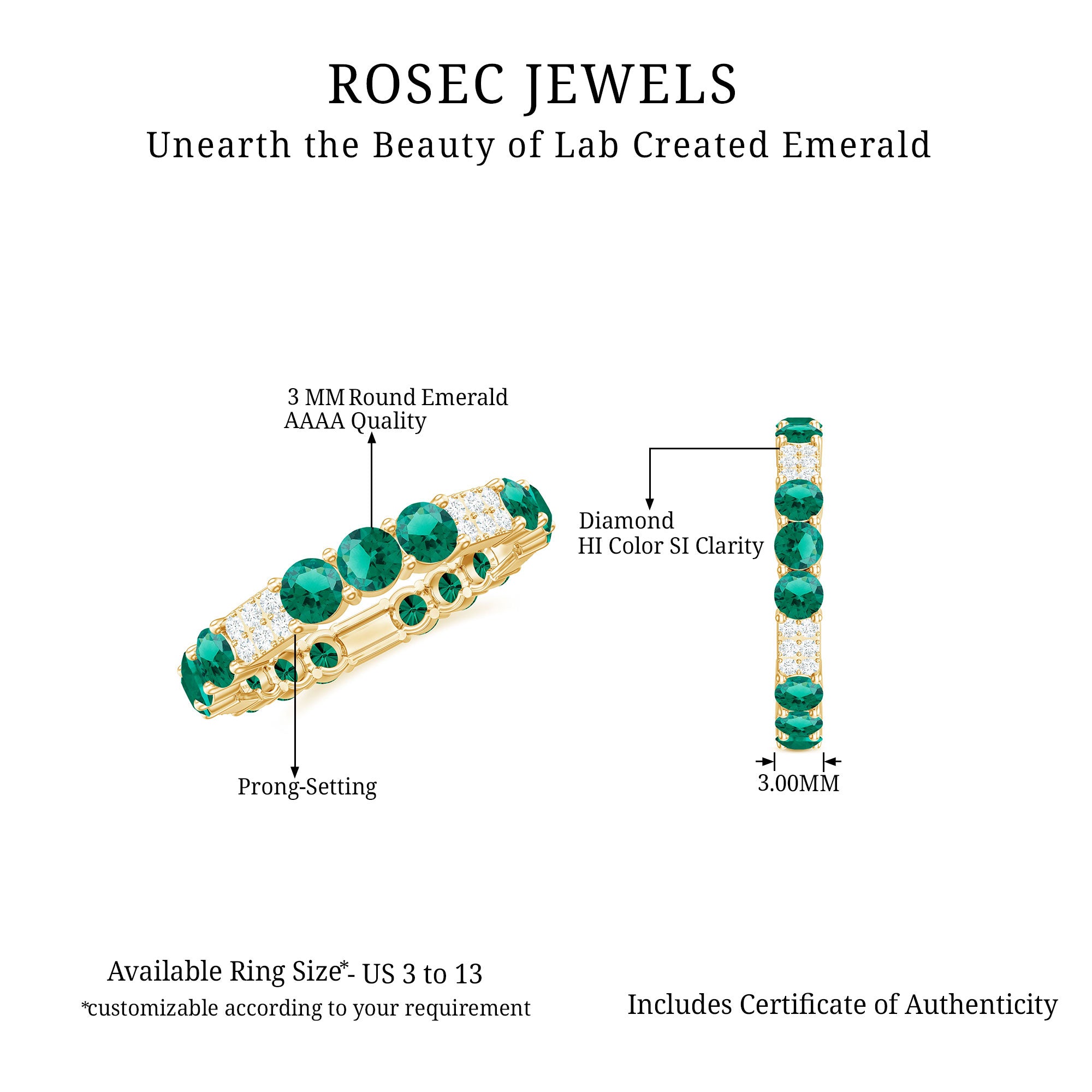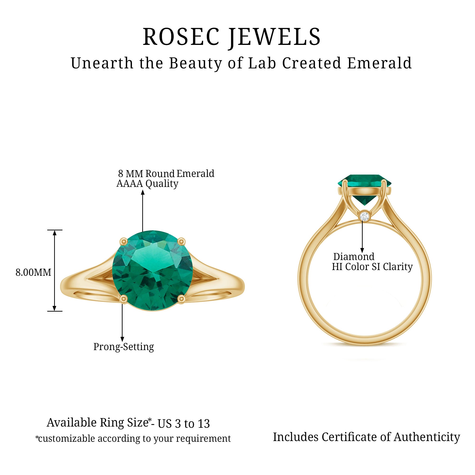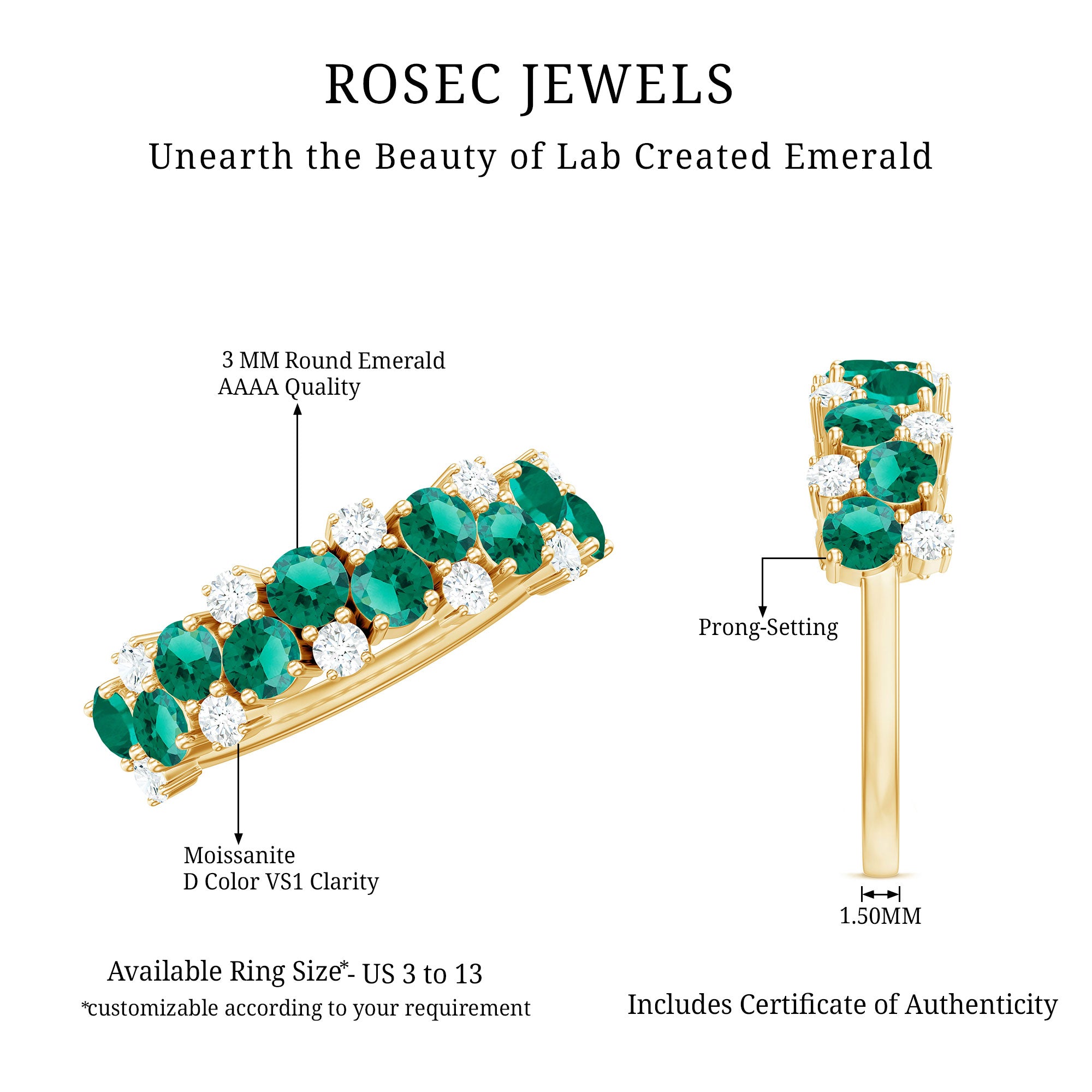 At Rosec Jewels, we have top quality AAAA quality Lab Grown Emeralds, to serve you nothing less than the best.