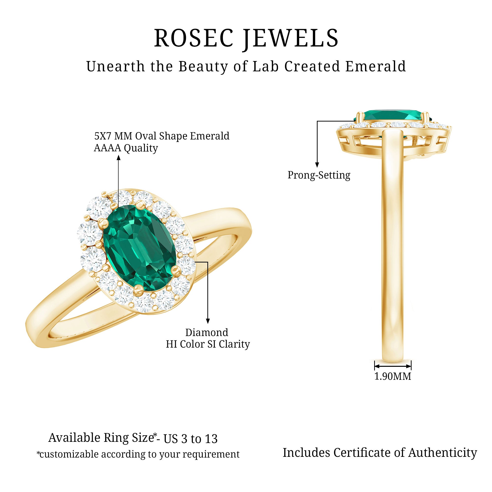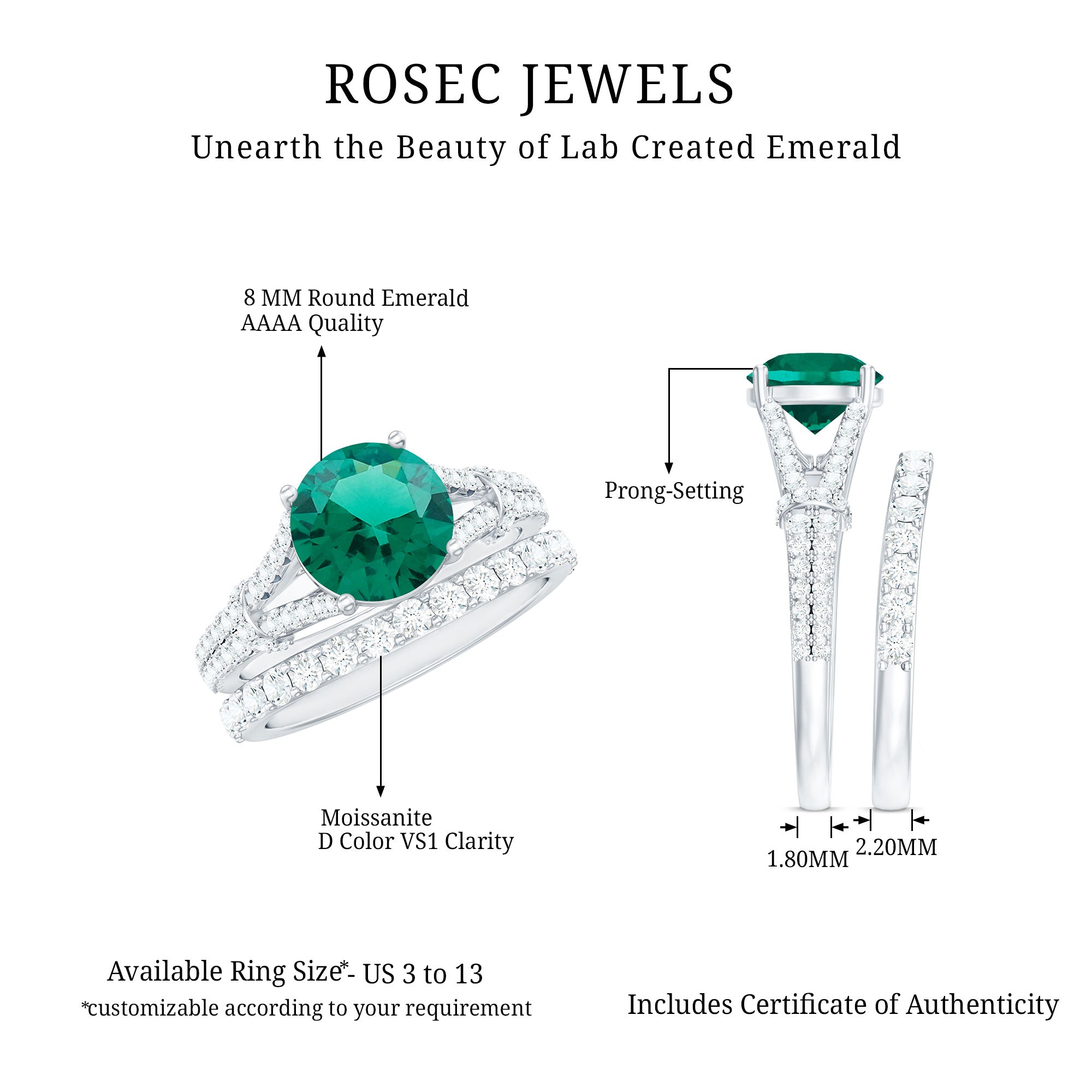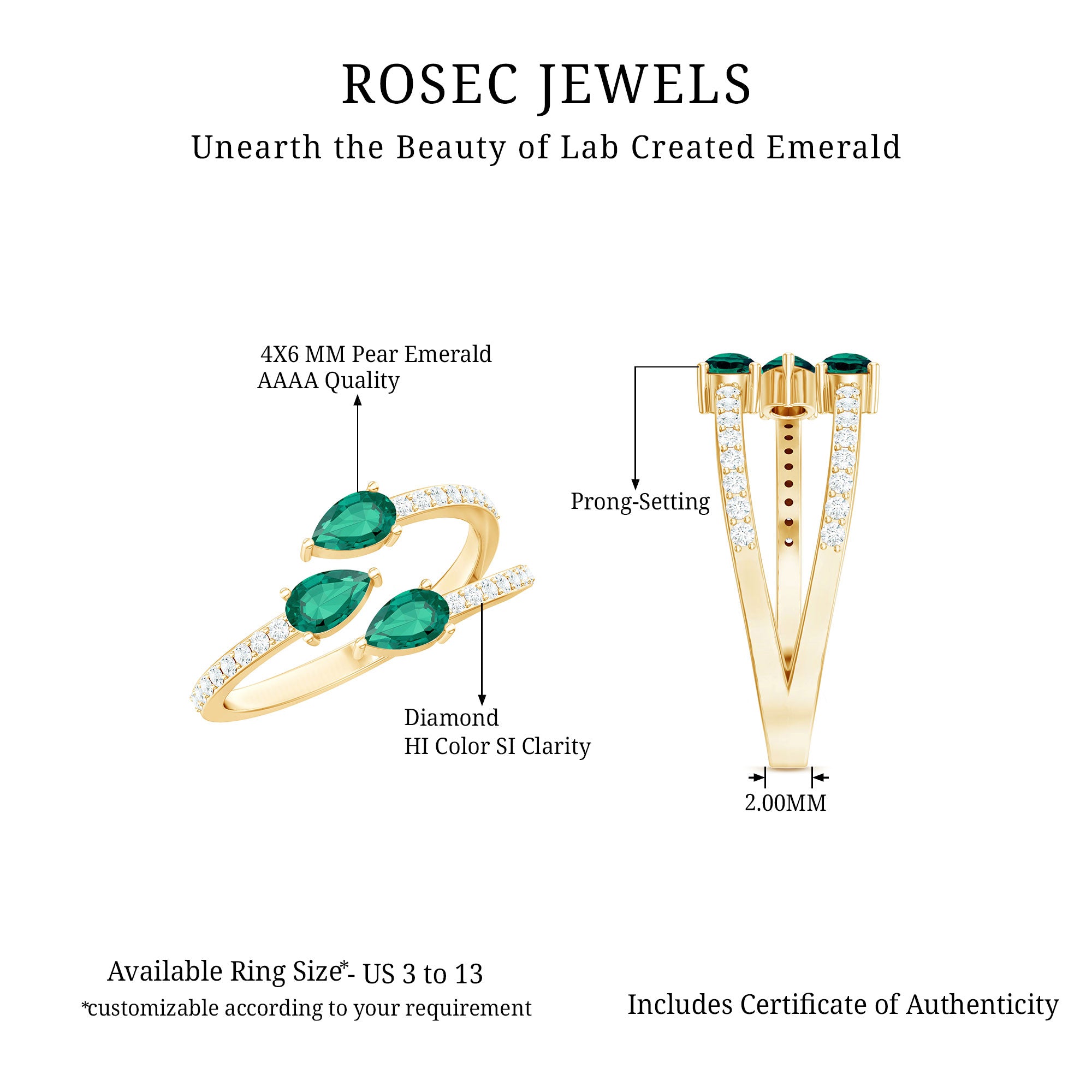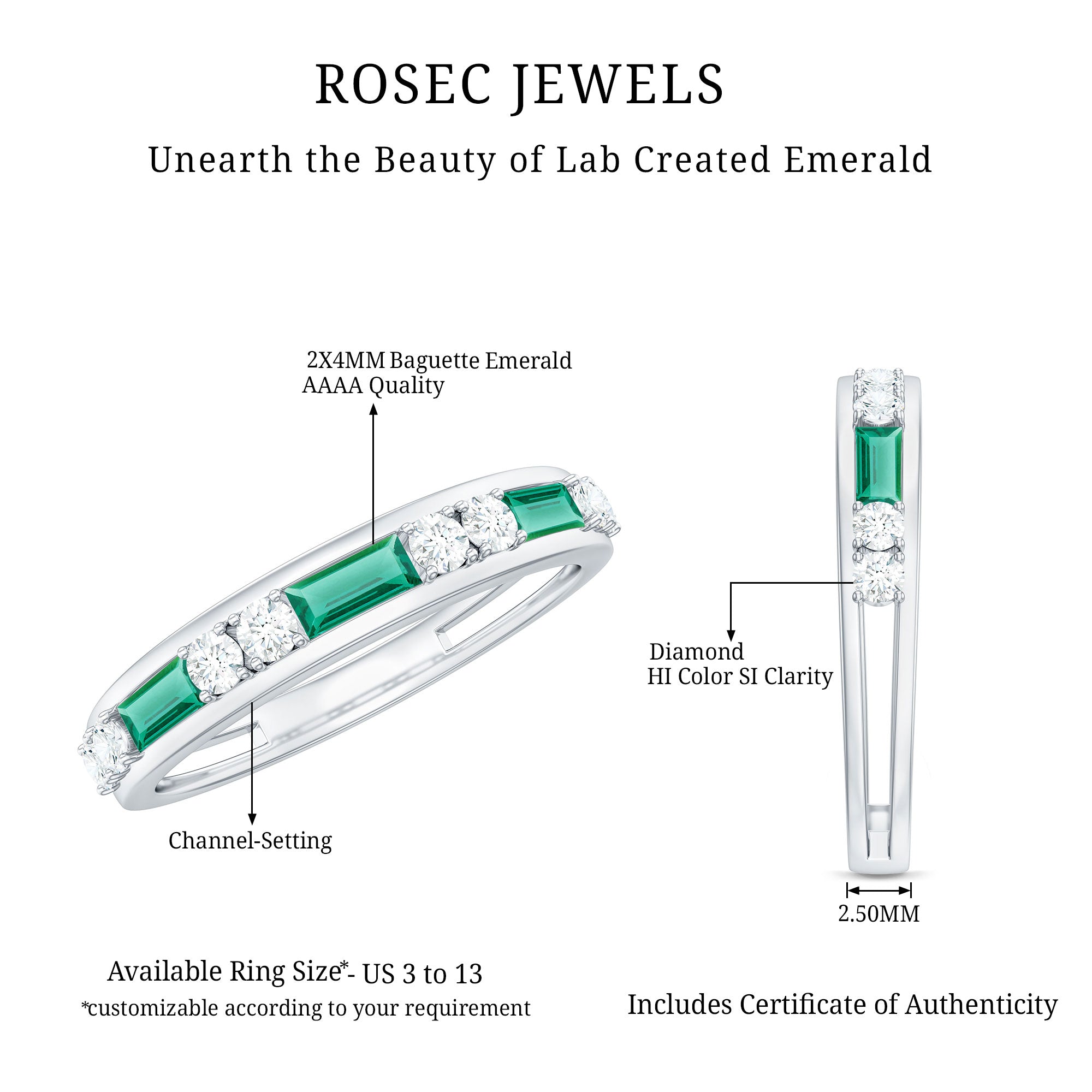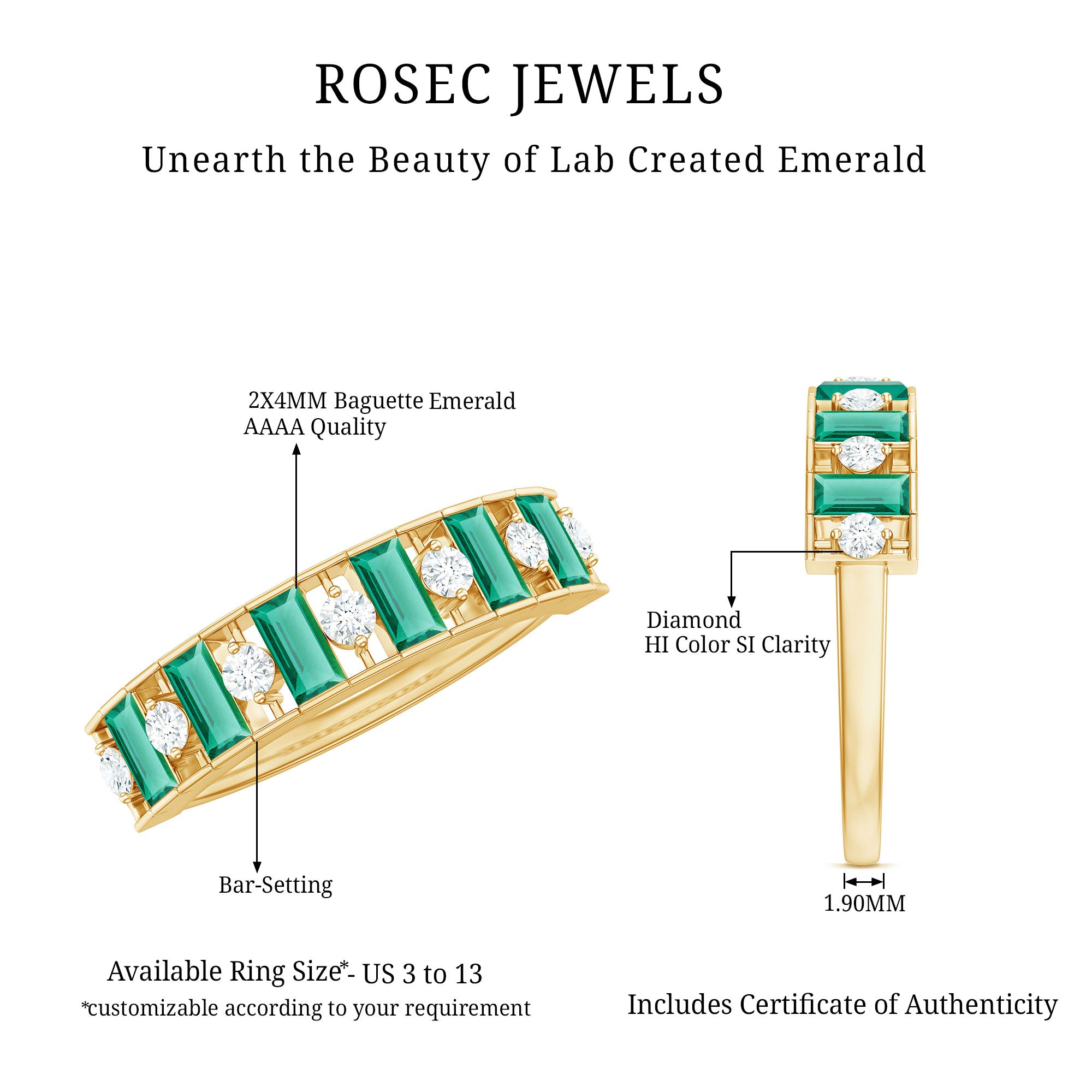 At Rosec Jewels, we have top quality AAAA quality Lab Grown Emeralds, to serve you nothing less than the best.