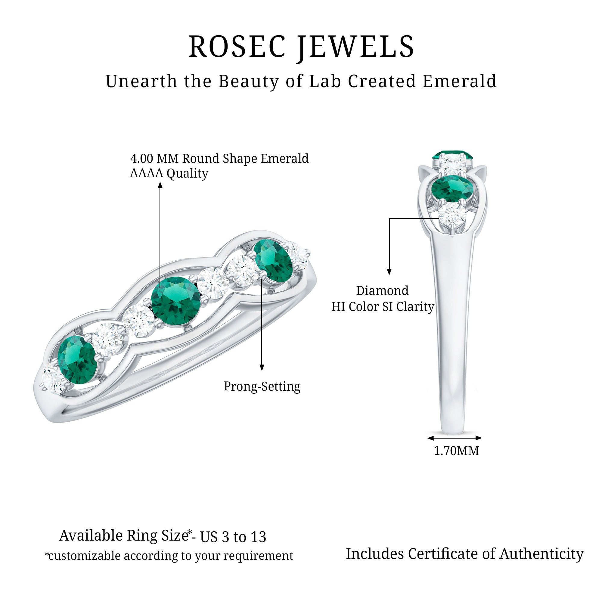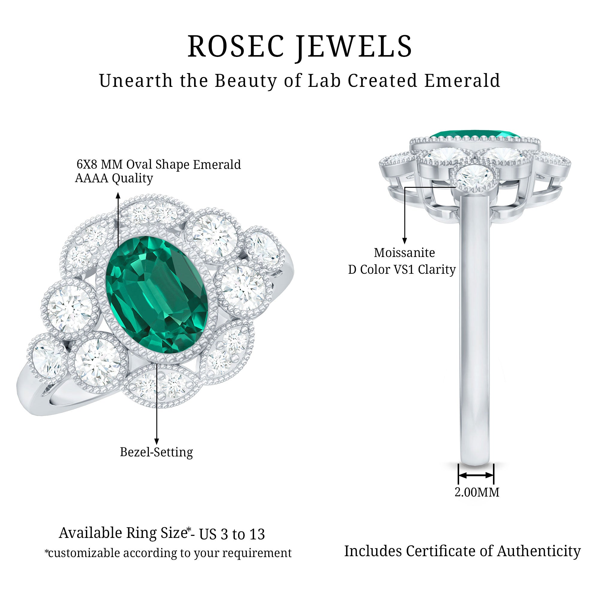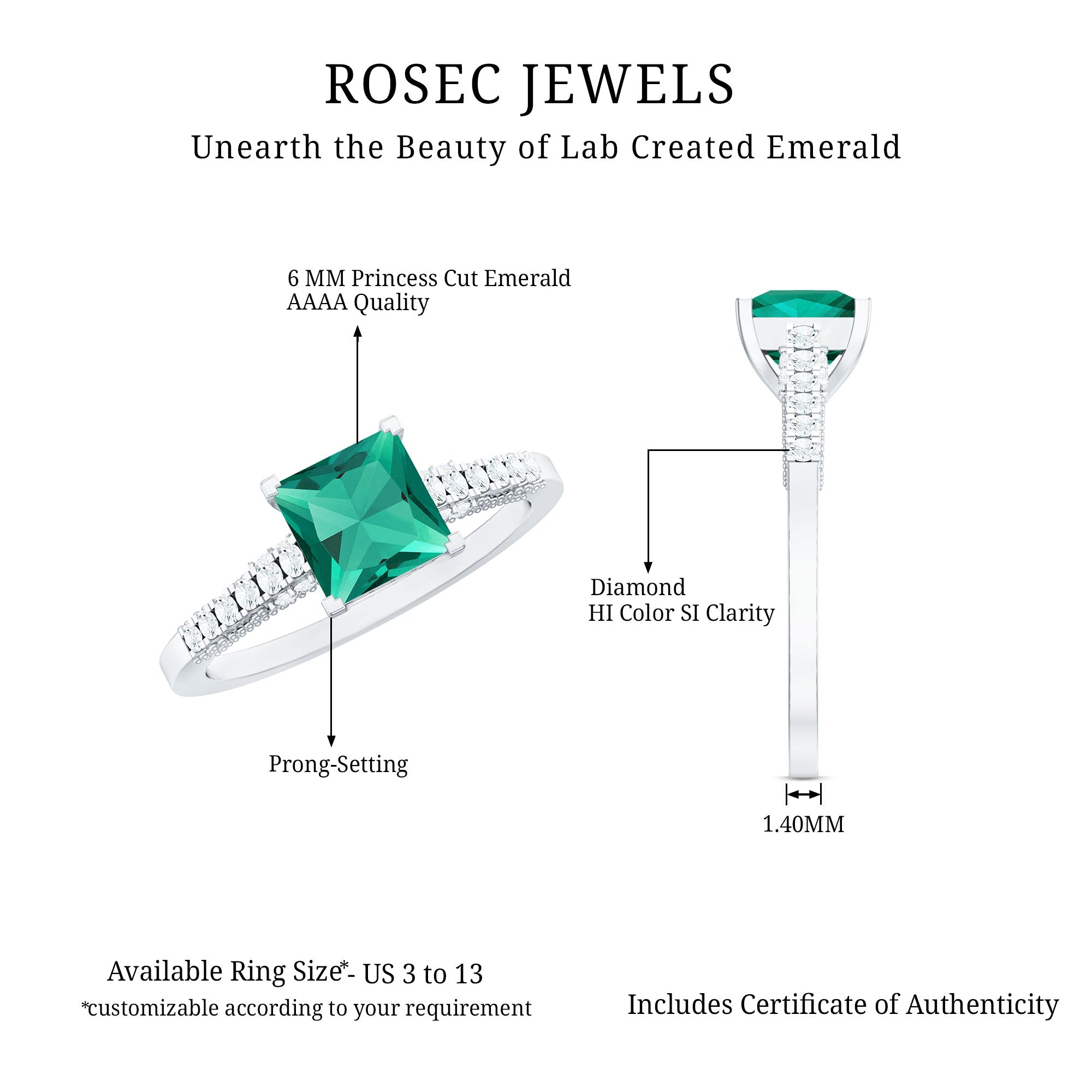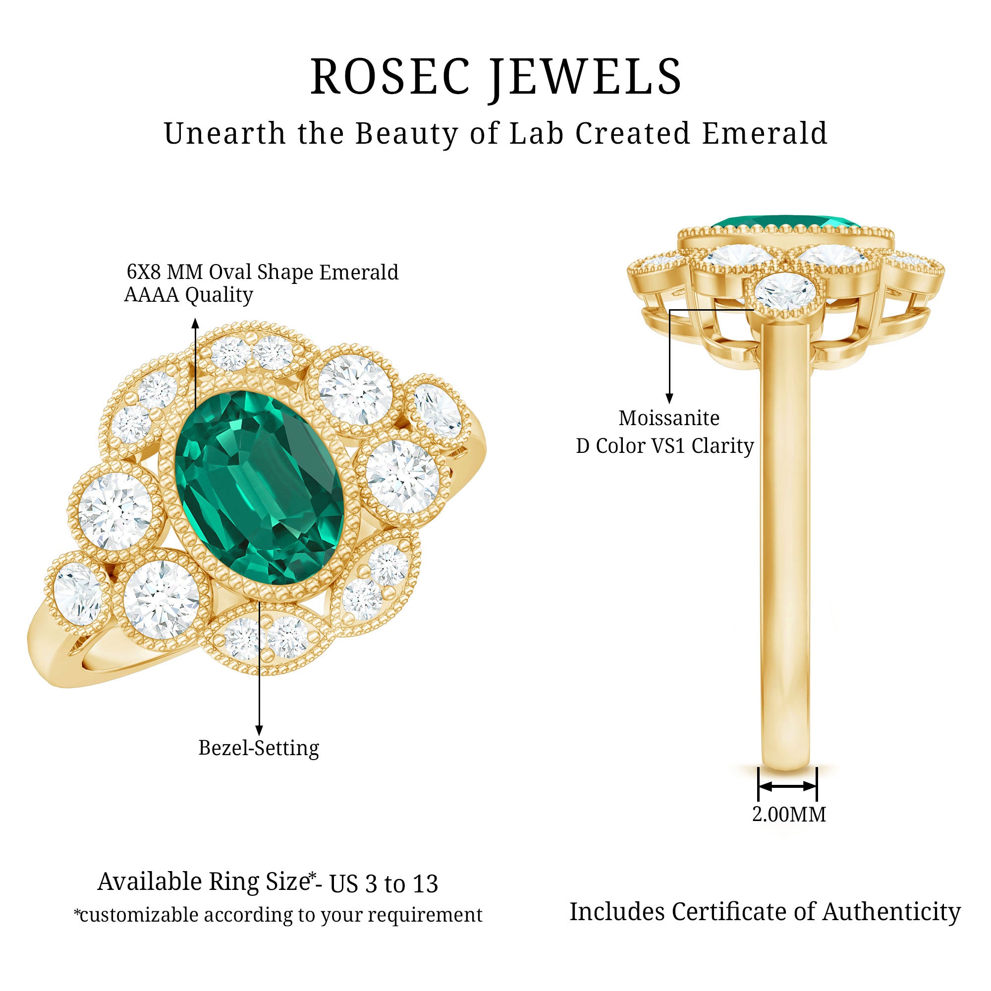At Rosec Jewels, we have top quality AAAA quality Lab Grown Emeralds, to serve you nothing less than the best.