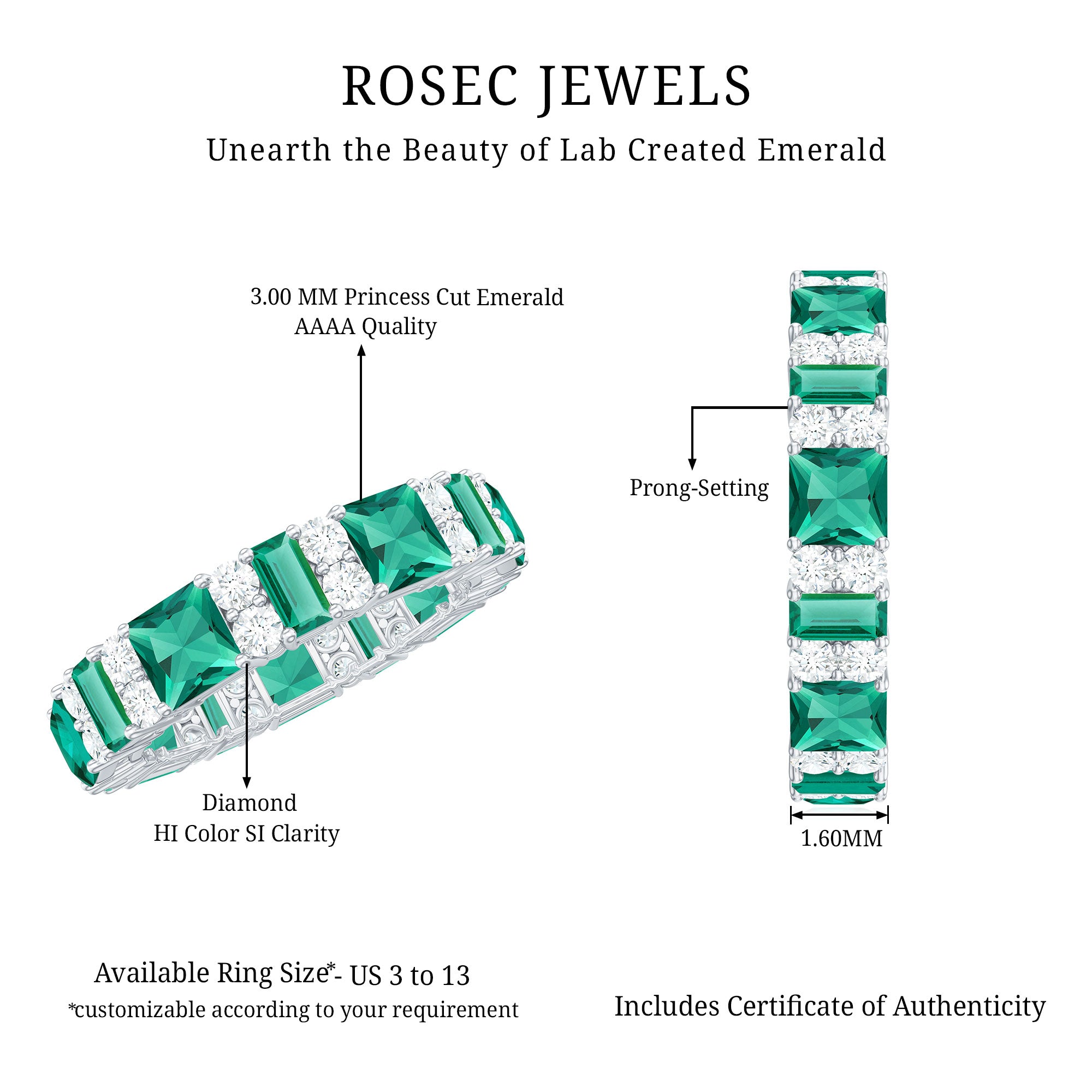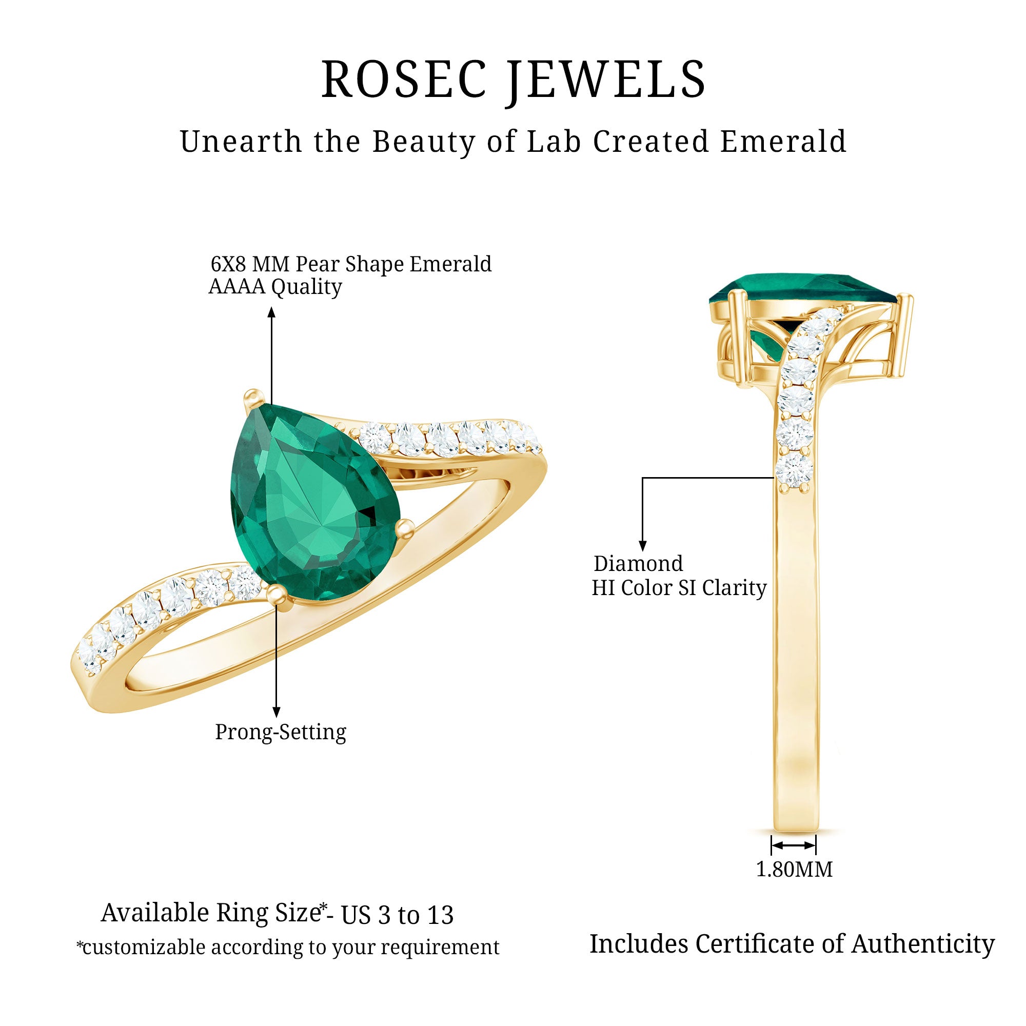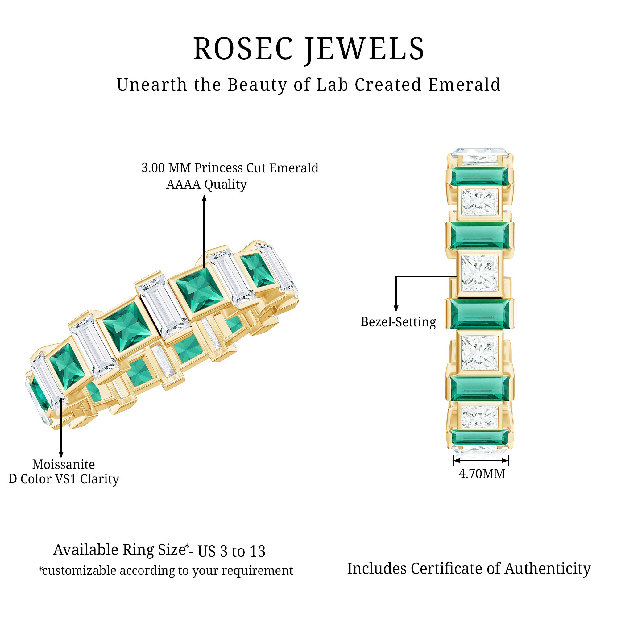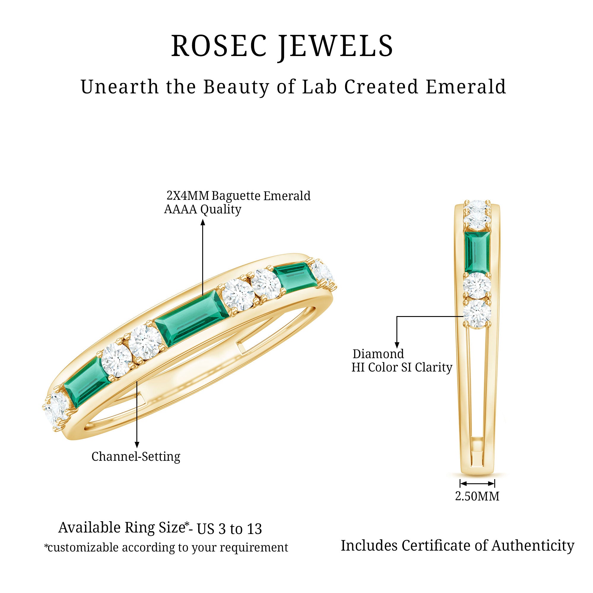 At Rosec Jewels, we have top quality AAAA quality Lab Grown Emeralds, to serve you nothing less than the best.