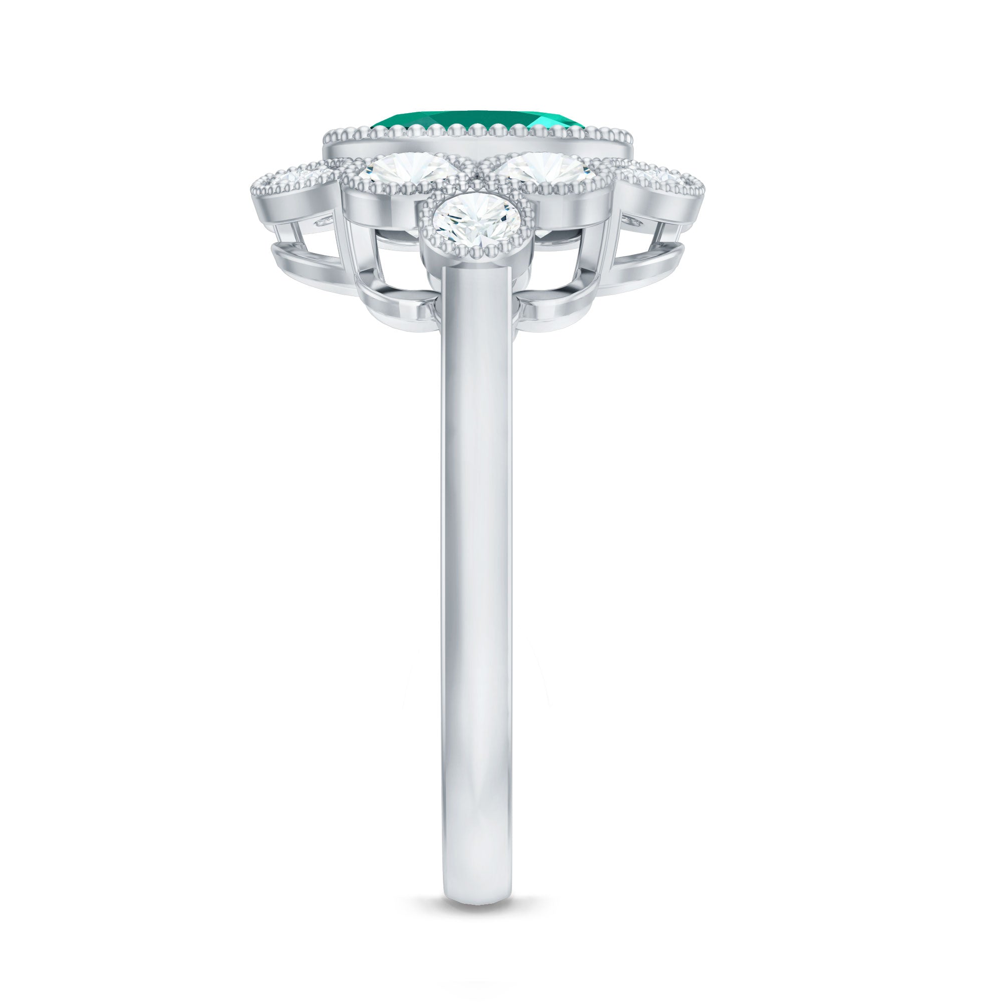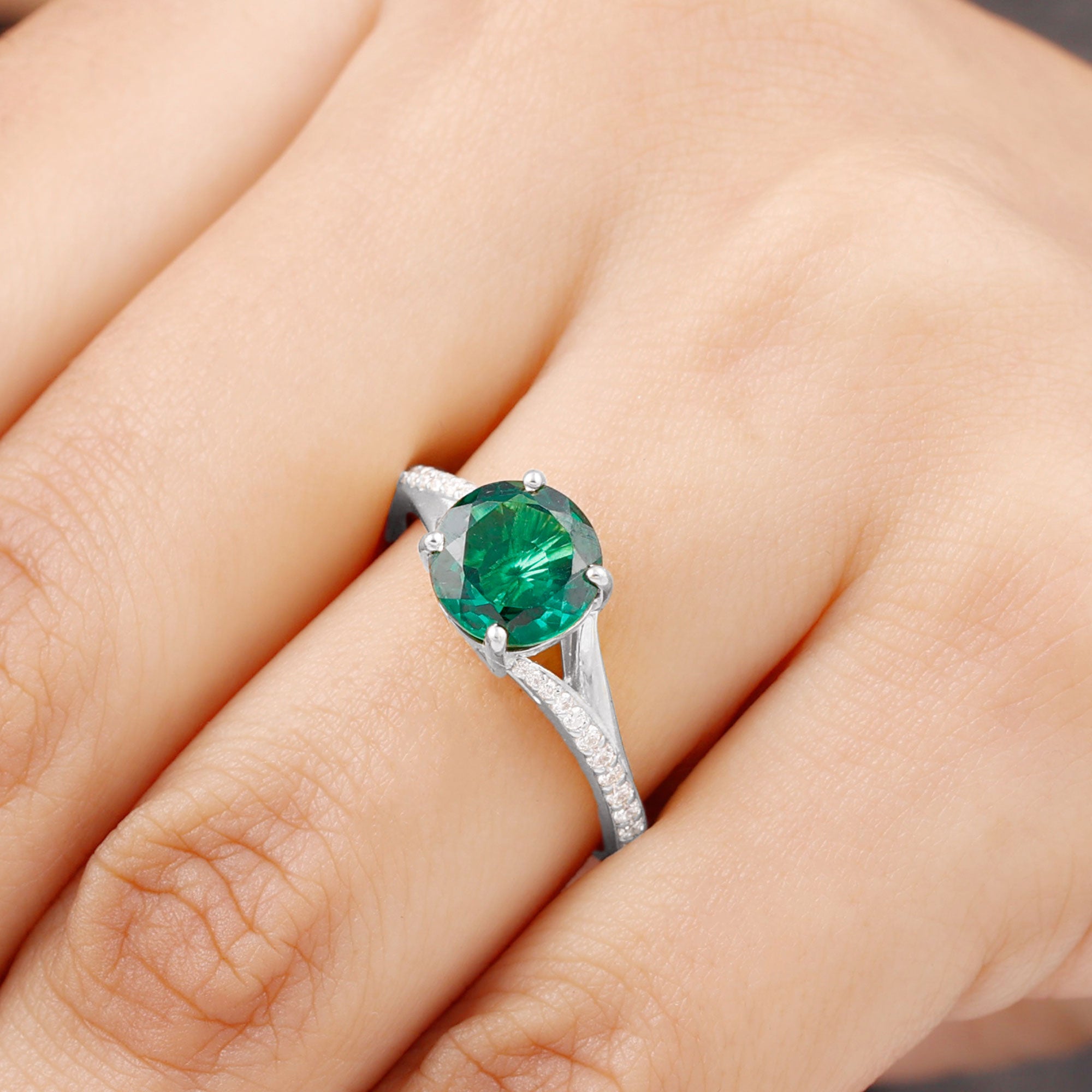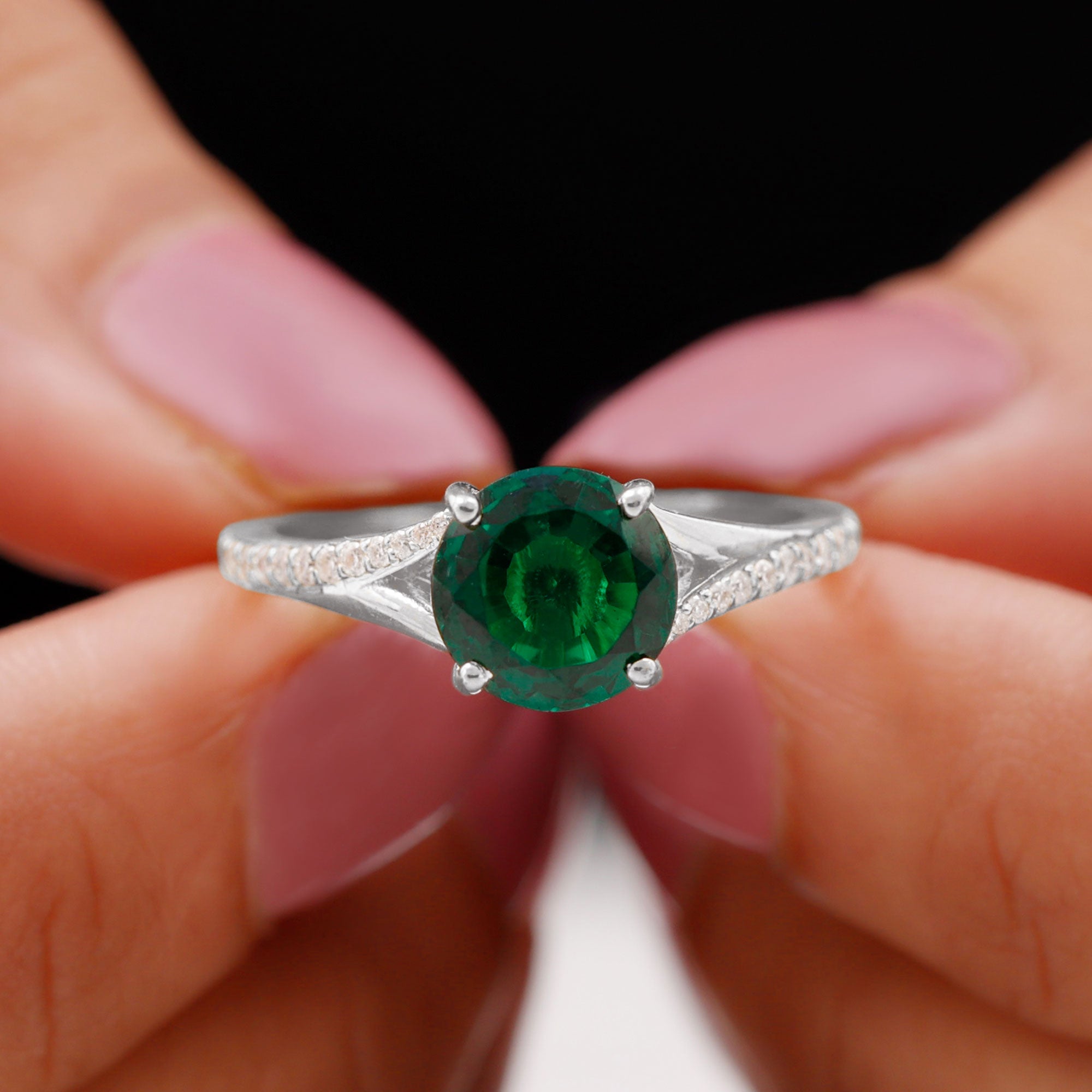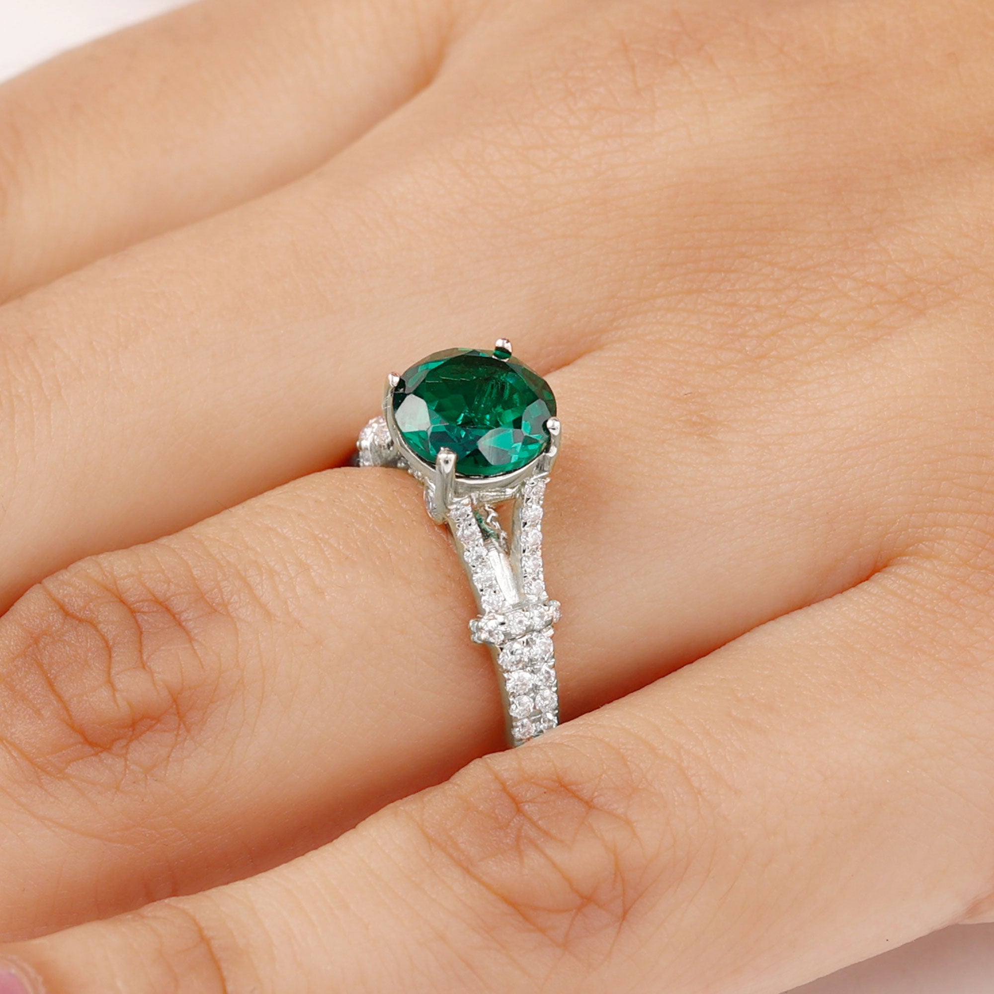 White gold metal is a versatile choice for any piece of jewelry. It’s one of the popular choices for lab grown emerald rings. It provides a modern contrast to the deep green hue of the gemstone. It’s also considered a great choice for those who are likely to have sensitive skin, as it’s nonallergic.Lab Created Emerald Ring Silver: