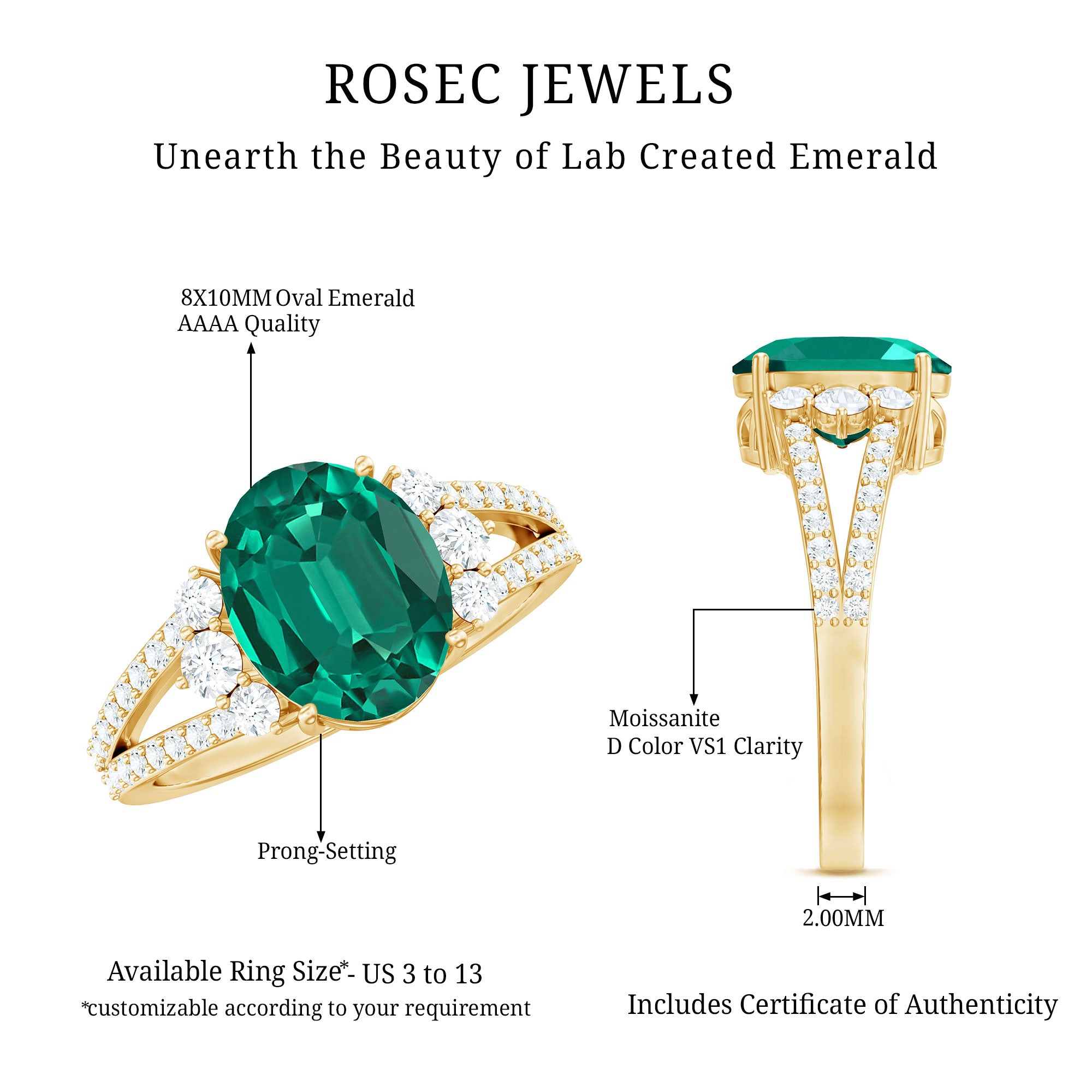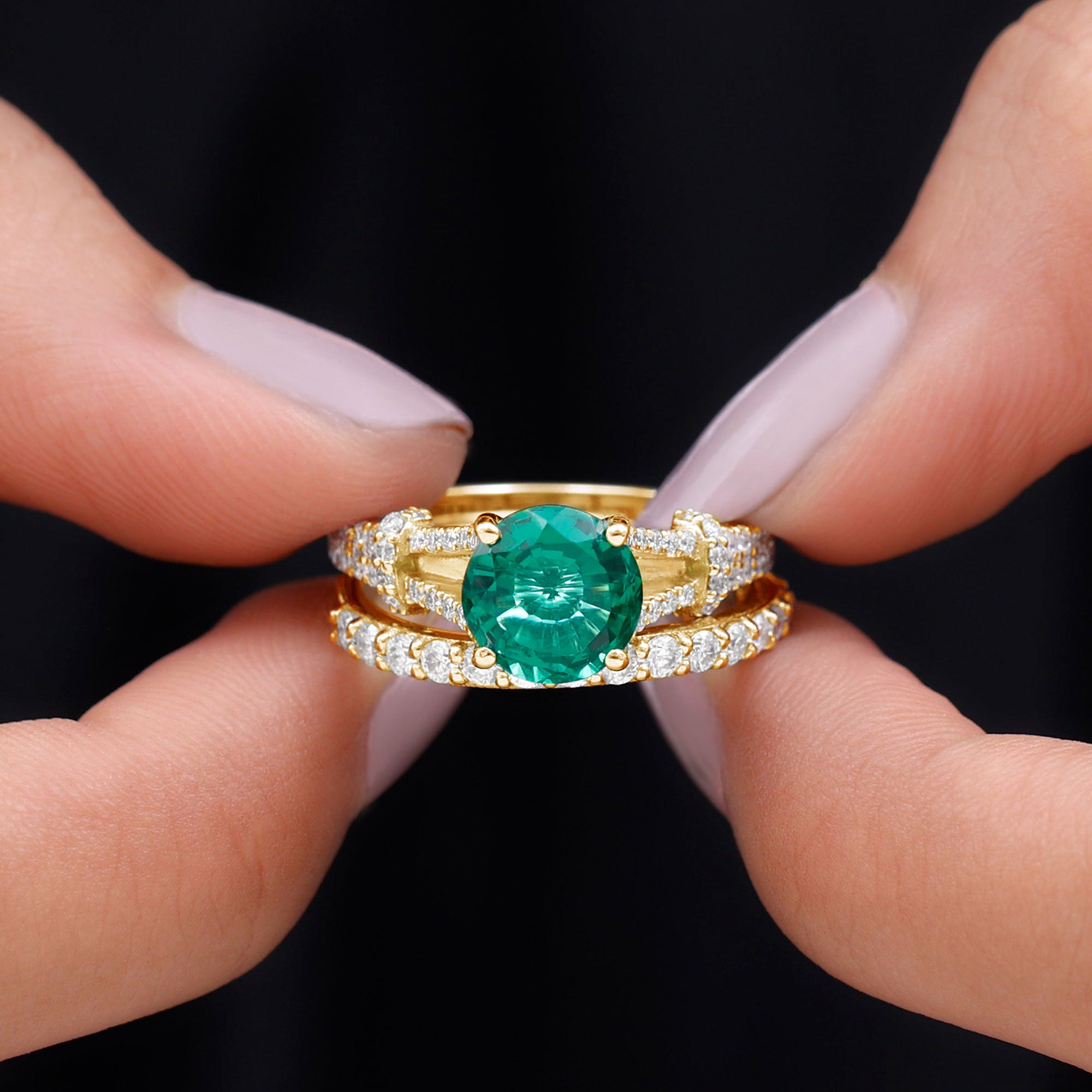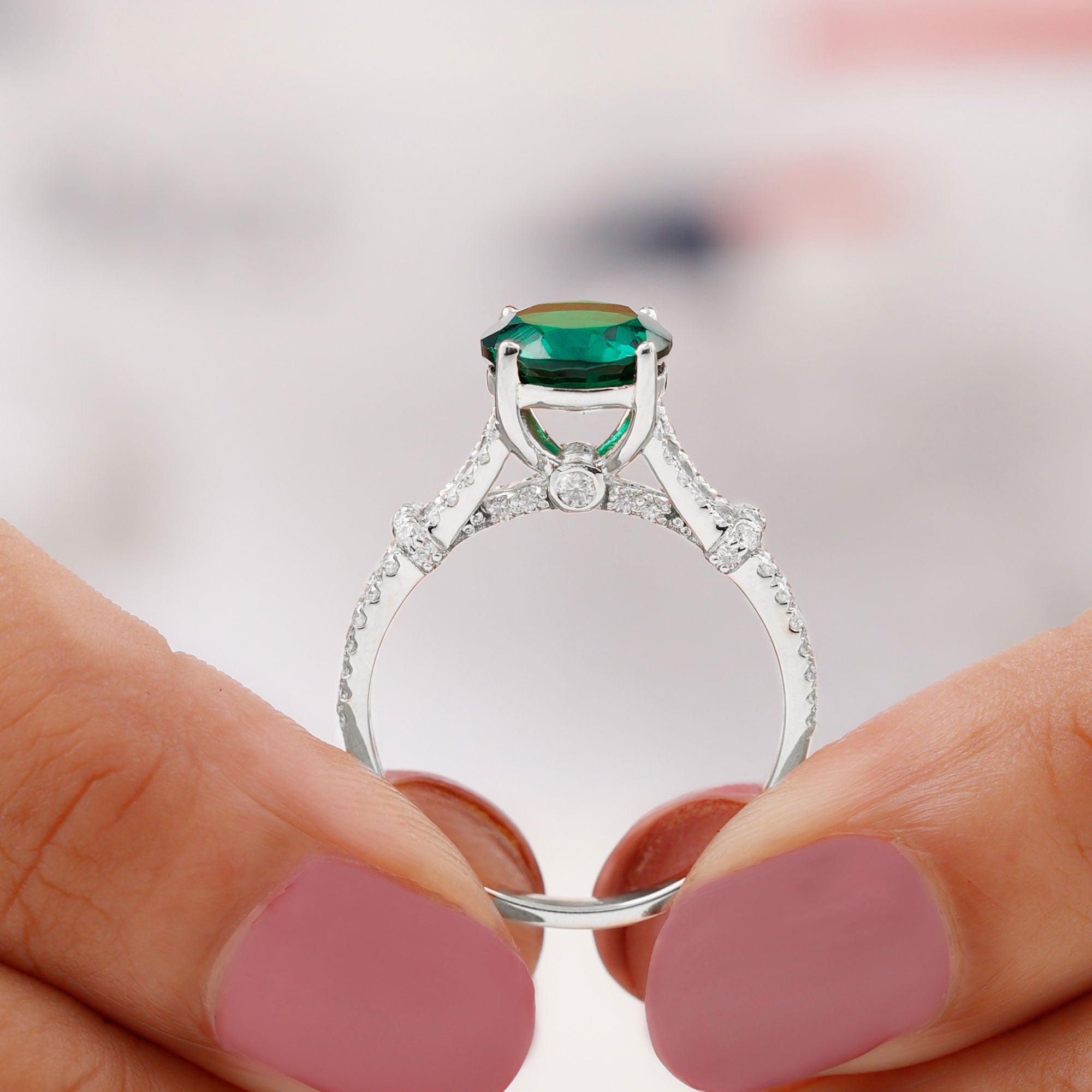 Lab created emeralds showcase a superior color and clarity. While lacking the historical allure of natural emeralds, they offer exceptional beauty at an affordable price. The charm of these lab created emerald rings isn’t just beauty but also it's a sustainable and eco-friendly choice,
