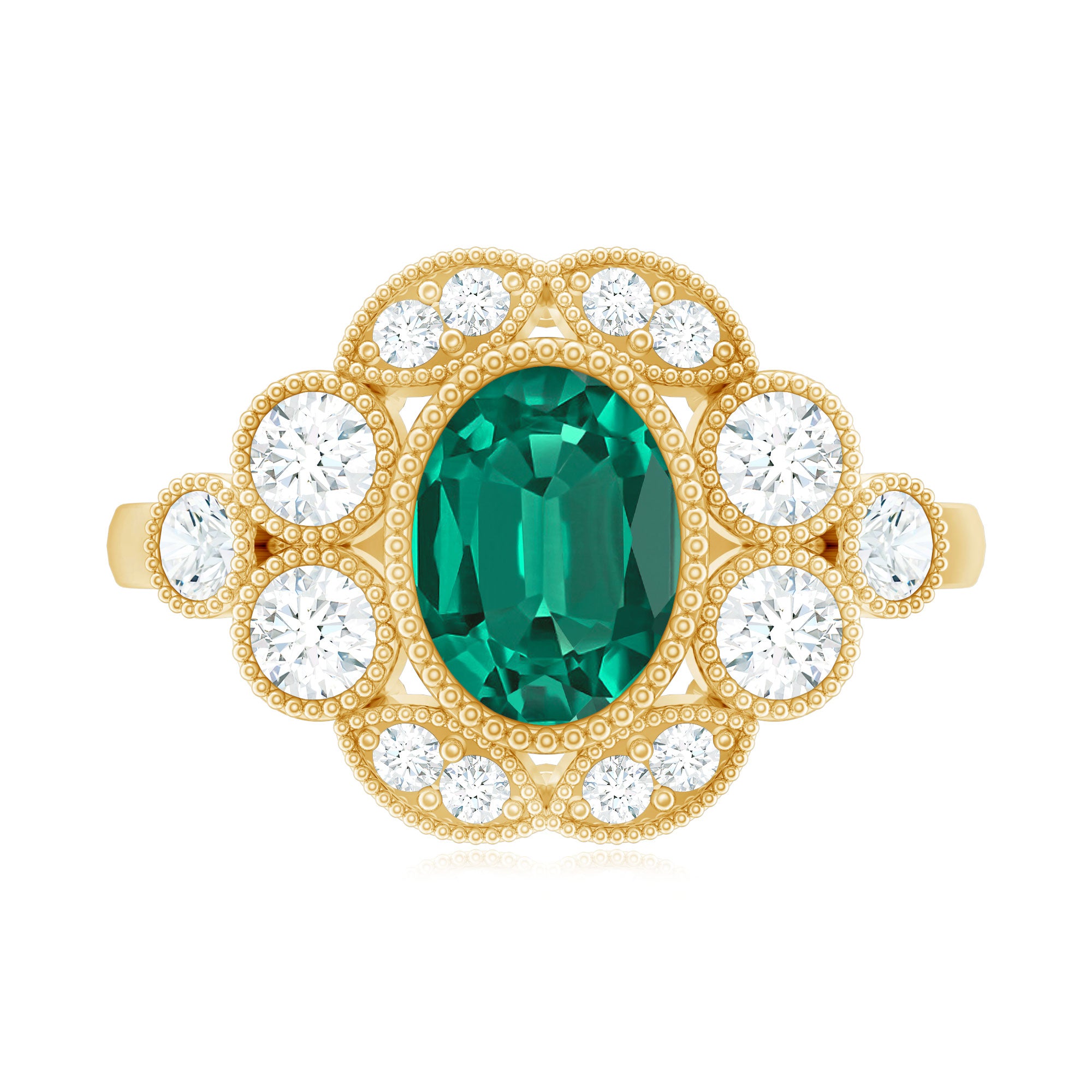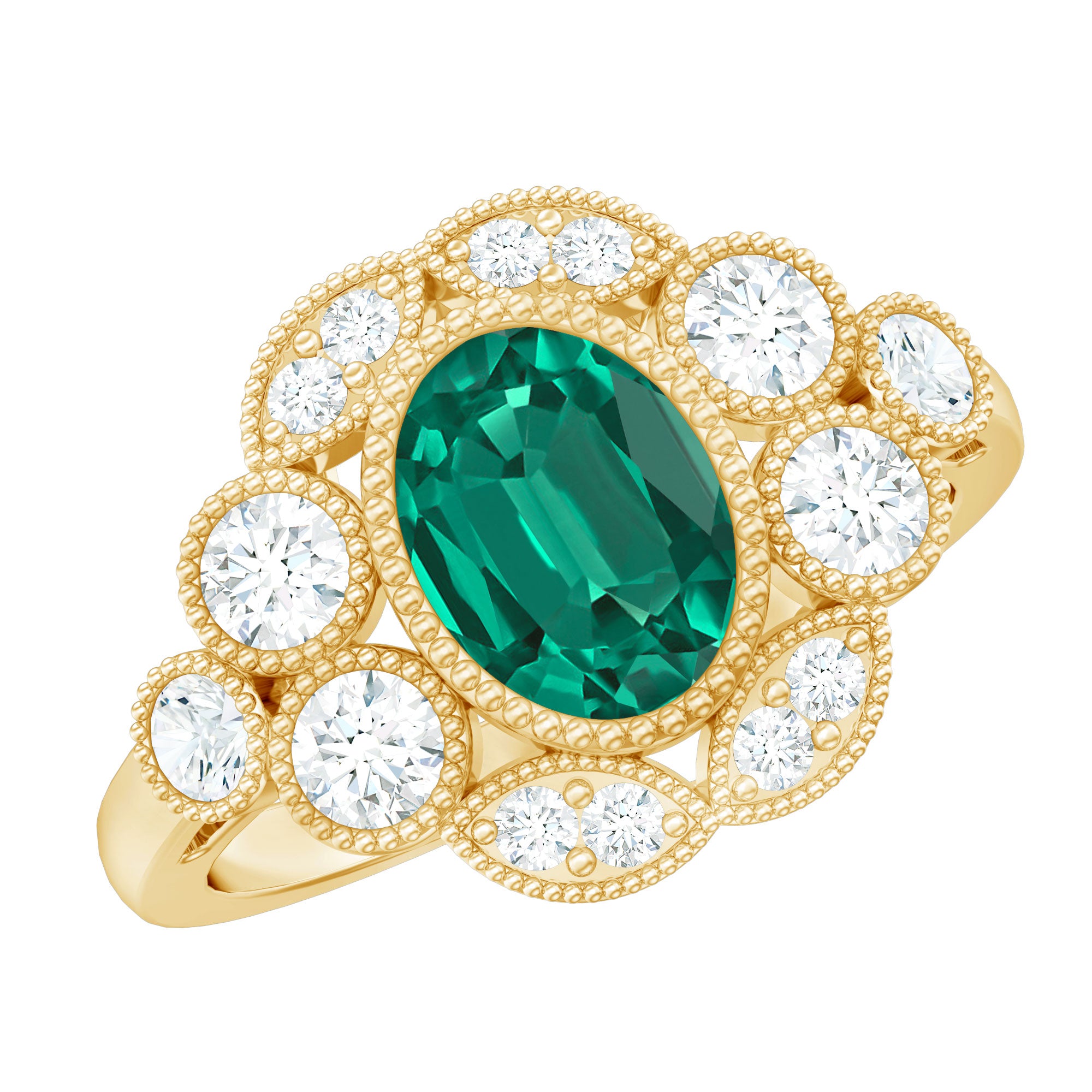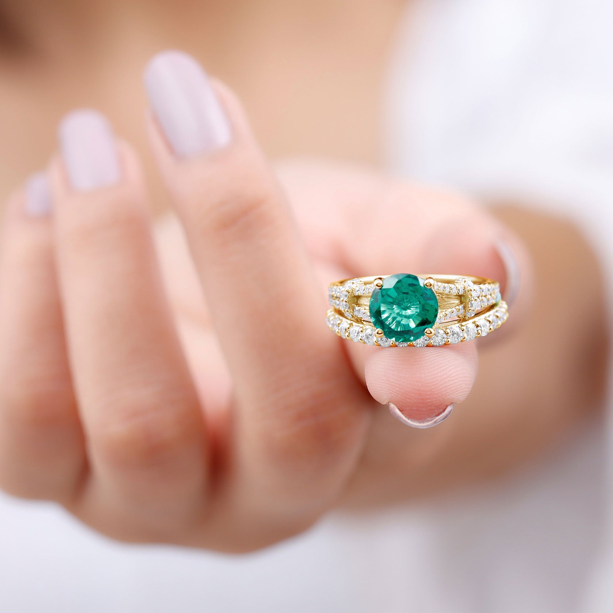 Lab created emeralds showcase a superior color and clarity. While lacking the historical allure of natural emeralds, they offer exceptional beauty at an affordable price. The charm of these lab created emerald rings isn’t just beauty but also it's a sustainable and eco-friendly choice,