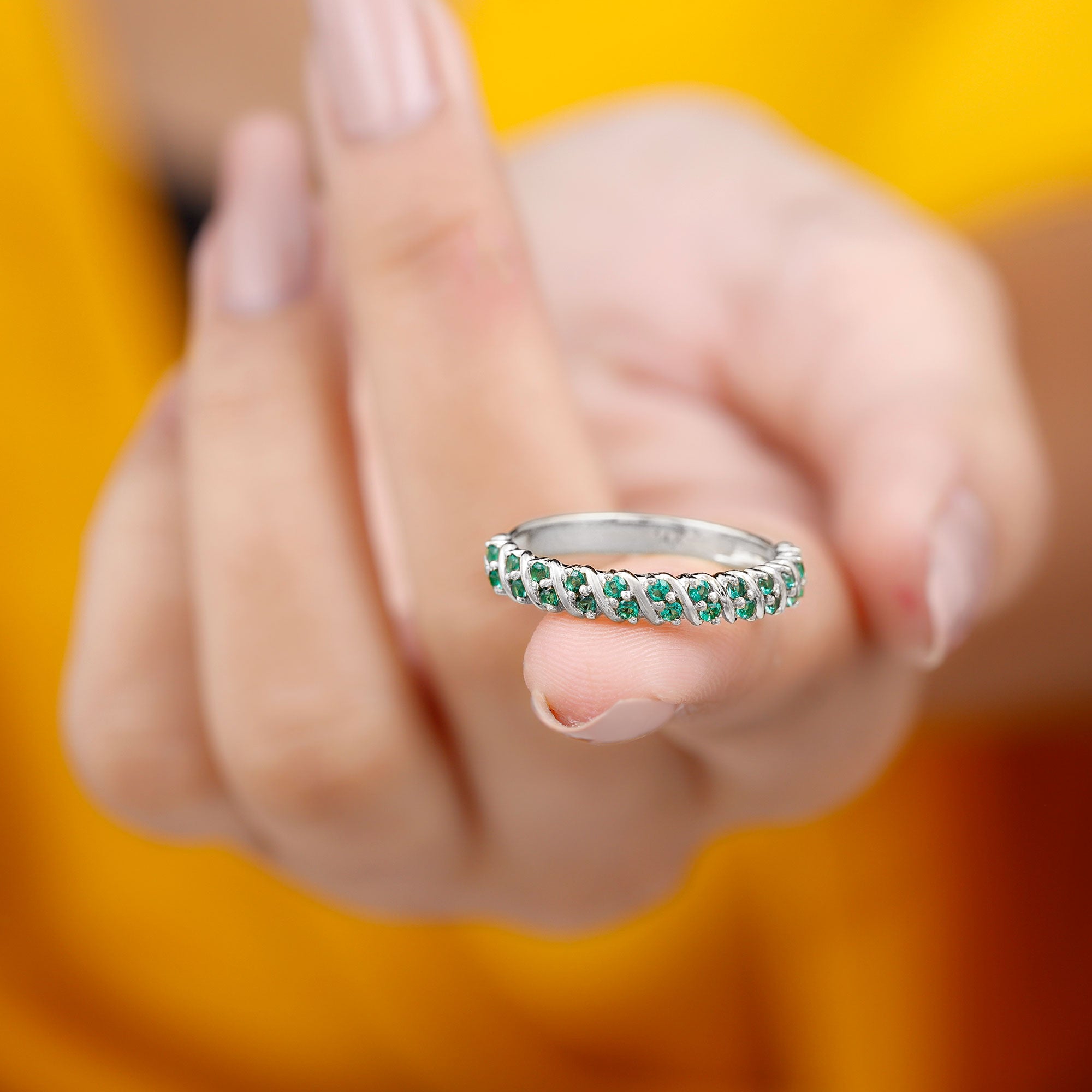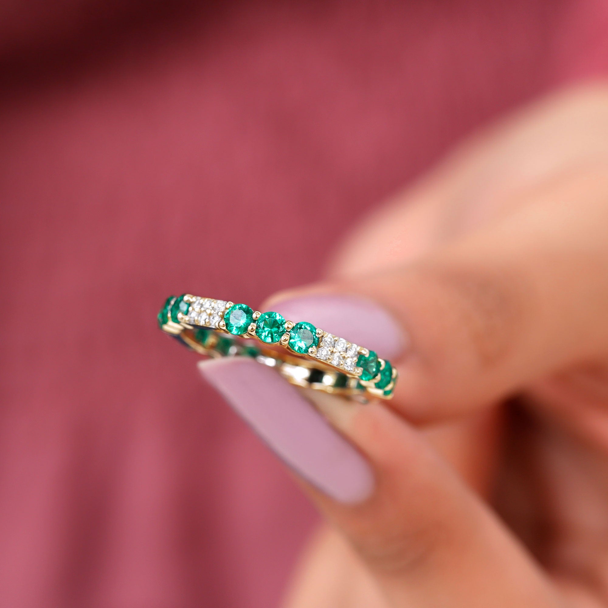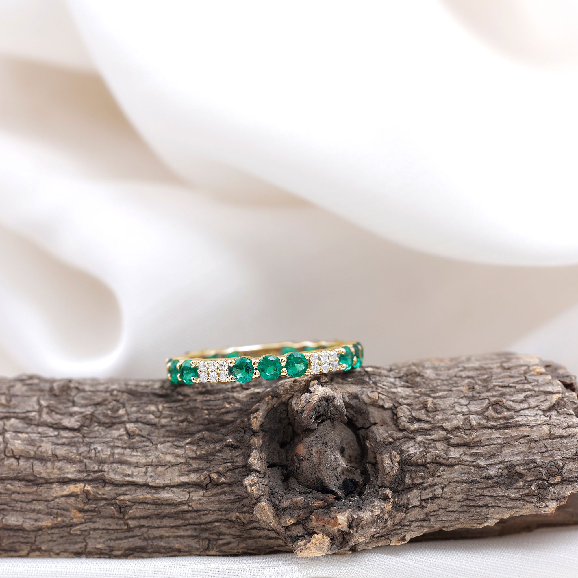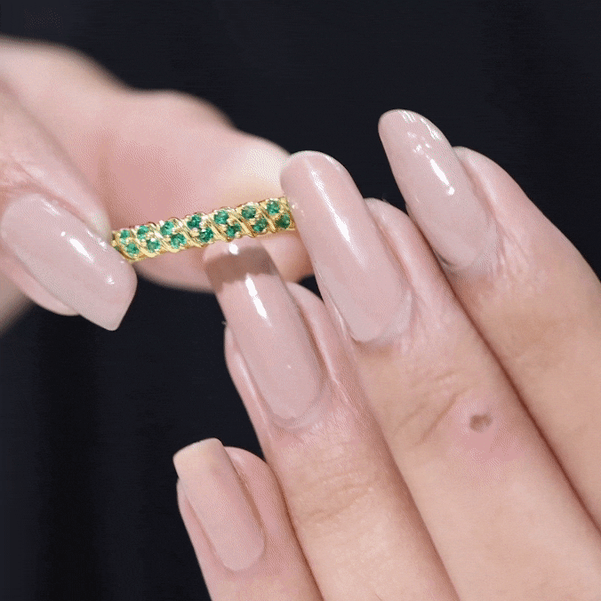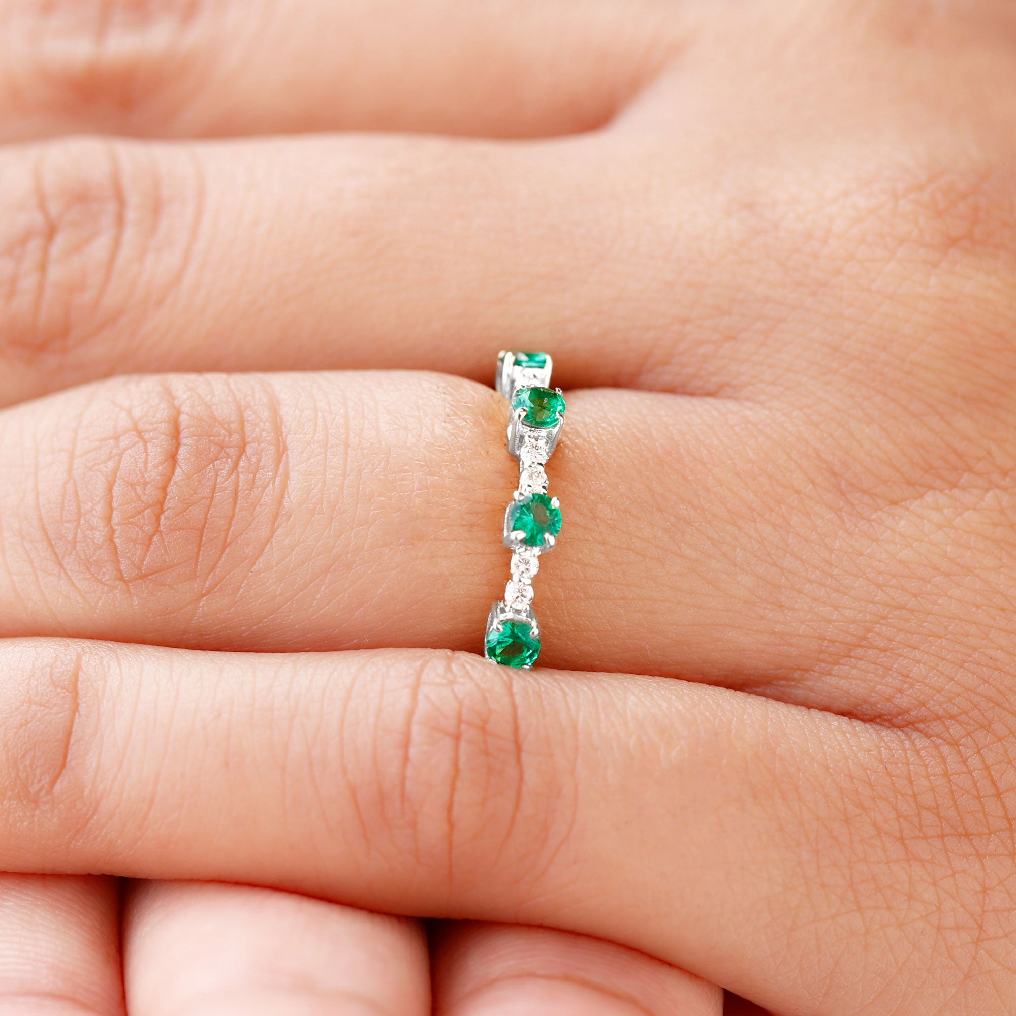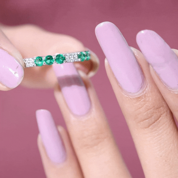 Embrace the allure of the natural world with this heartwarming Eternity Ring. This captivating ring captures the delicate beauty of eternal love, with lab grown emeralds encircling the entire band. The eternity design symbolizes the everlasting love of you two. Meticulously crafted with high-quality lab-grown emeralds, these rings are perfect for styling and represent everlasting love. You can wear it on your own or stack it with an engagement ring.