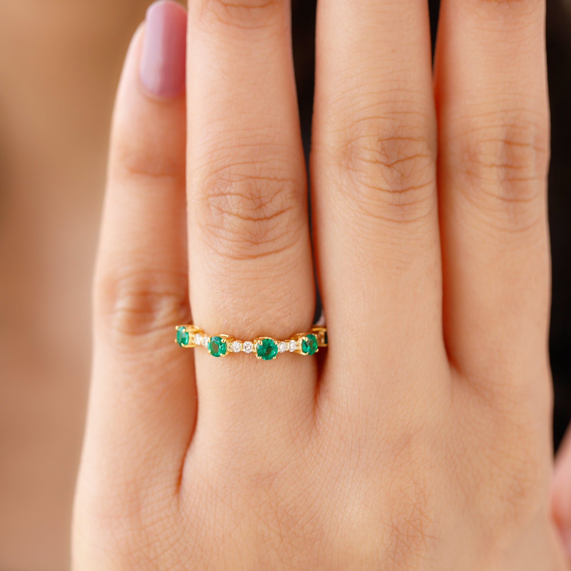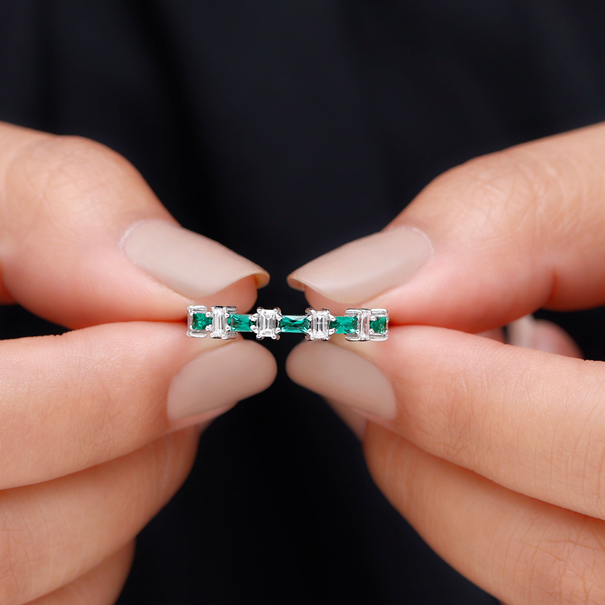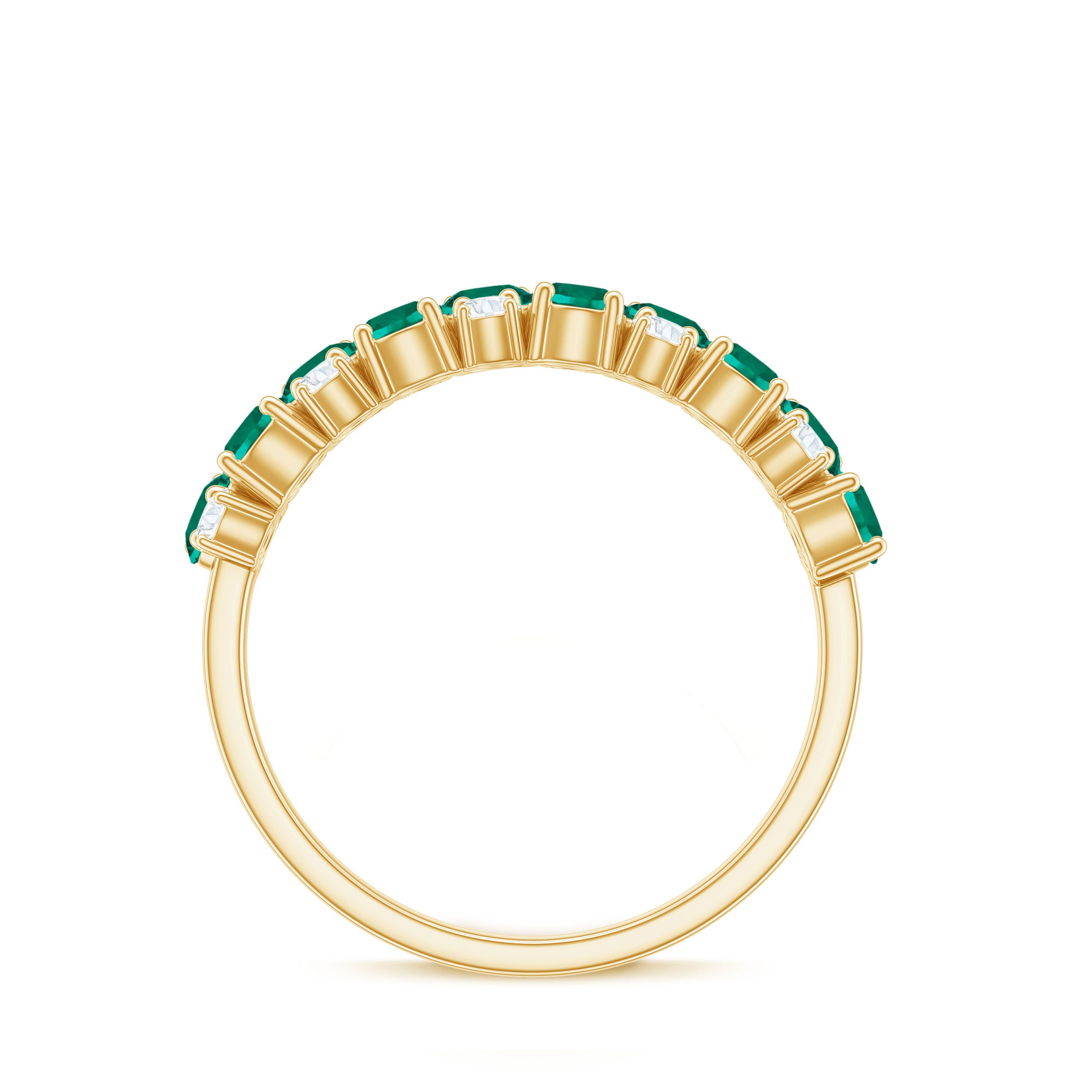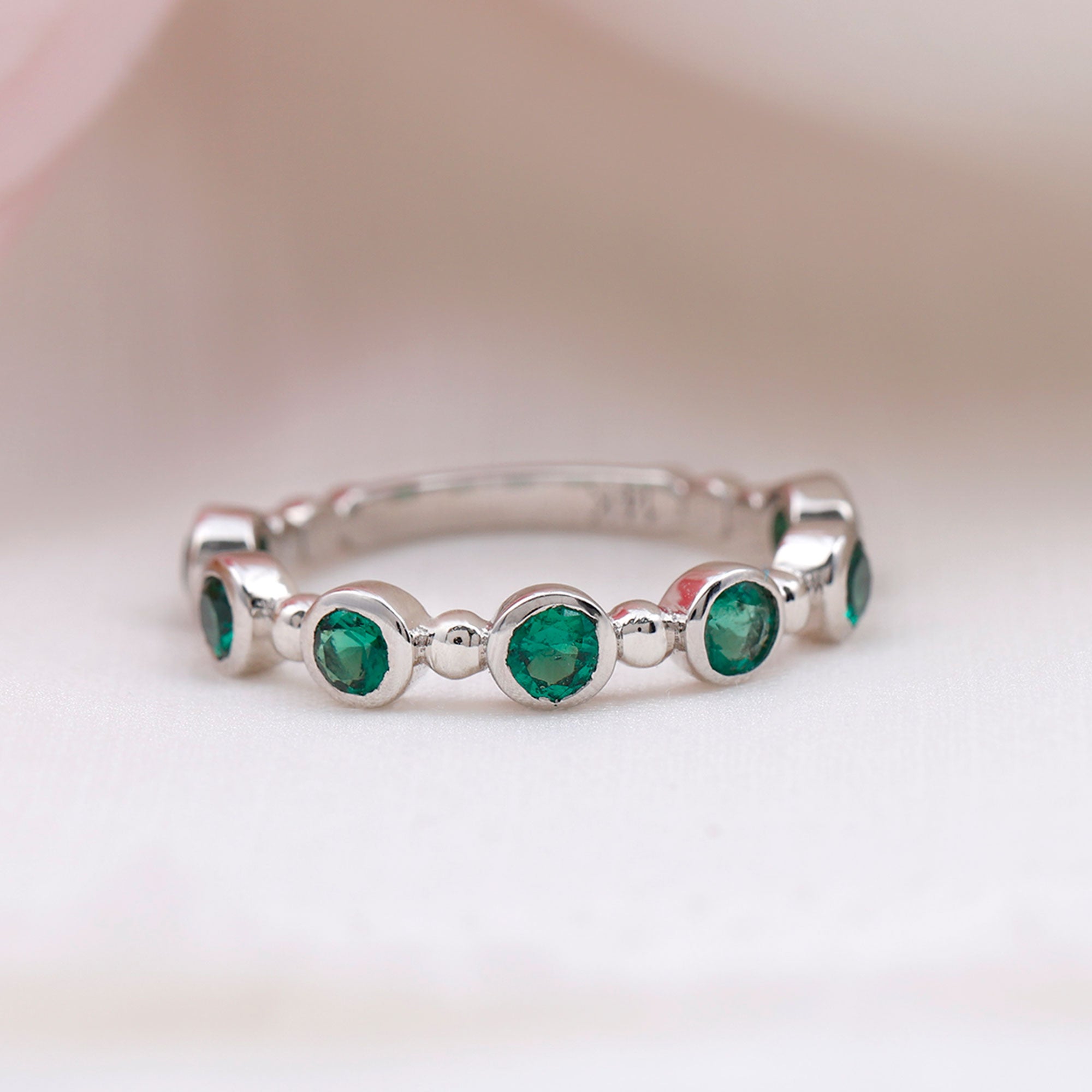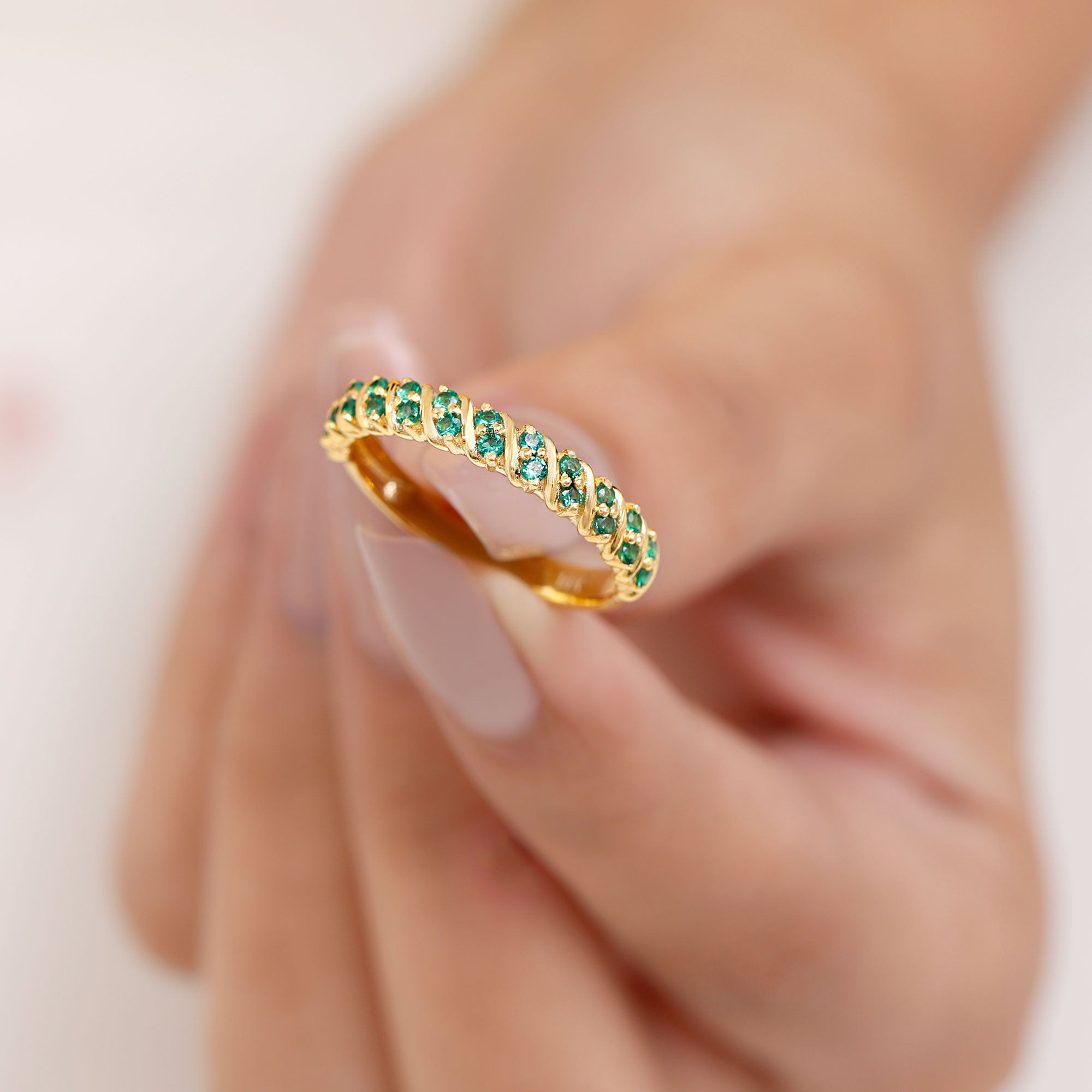 Embrace the allure of the natural world with this heartwarming Eternity Ring. This captivating ring captures the delicate beauty of eternal love, with lab grown emeralds encircling the entire band. The eternity design symbolizes the everlasting love of you two. Meticulously crafted with high-quality lab-grown emeralds, these rings are perfect for styling and represent everlasting love. You can wear it on your own or stack it with an engagement ring.
