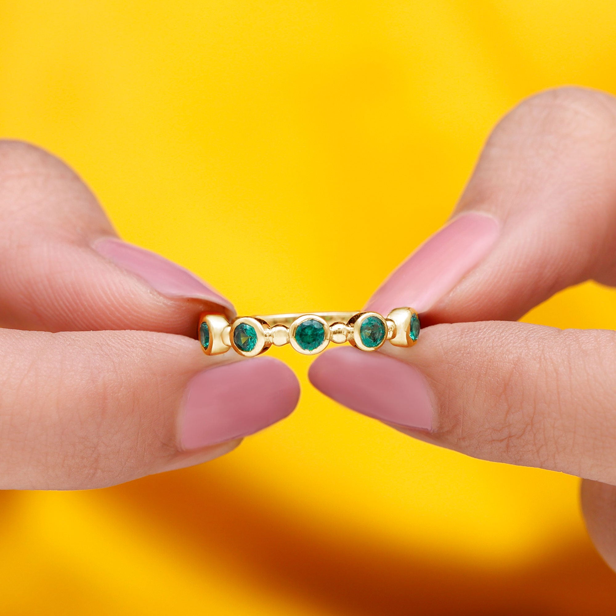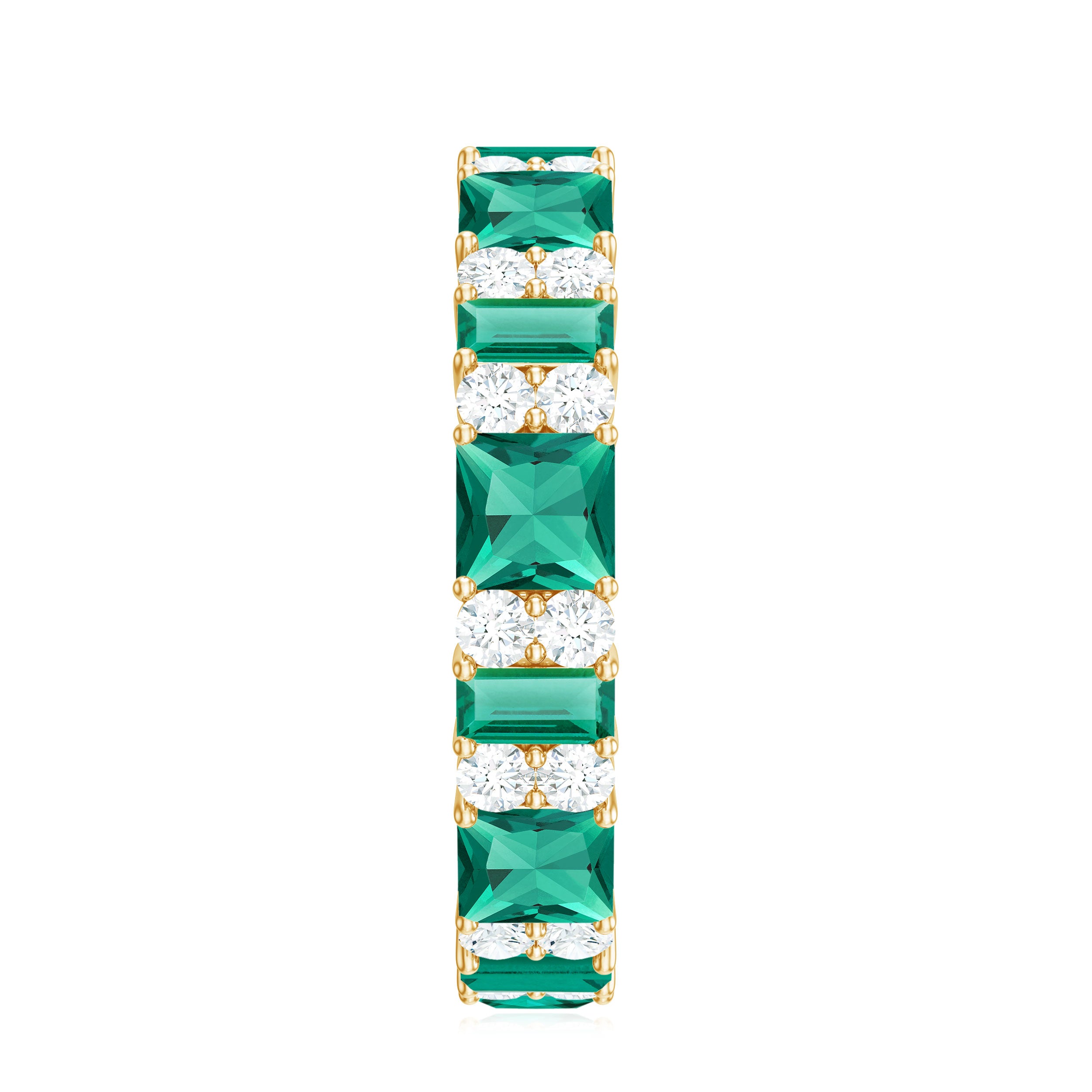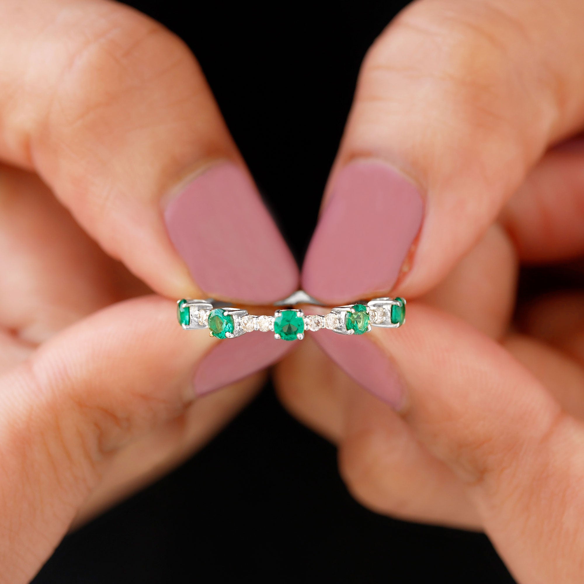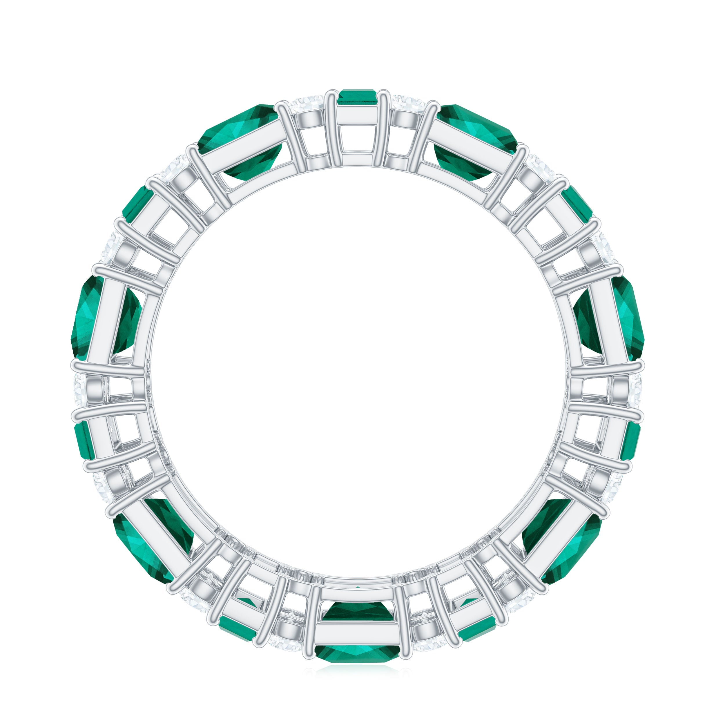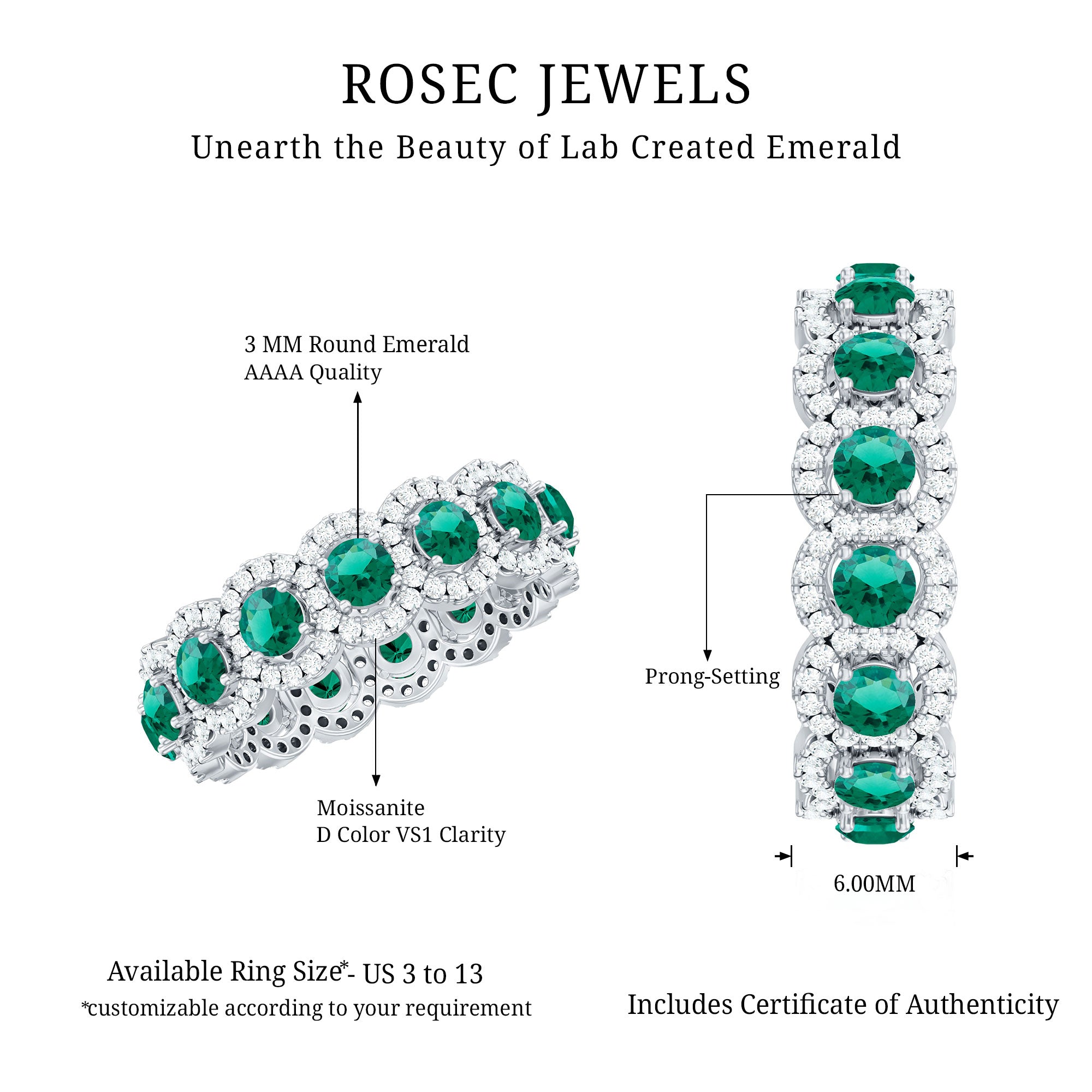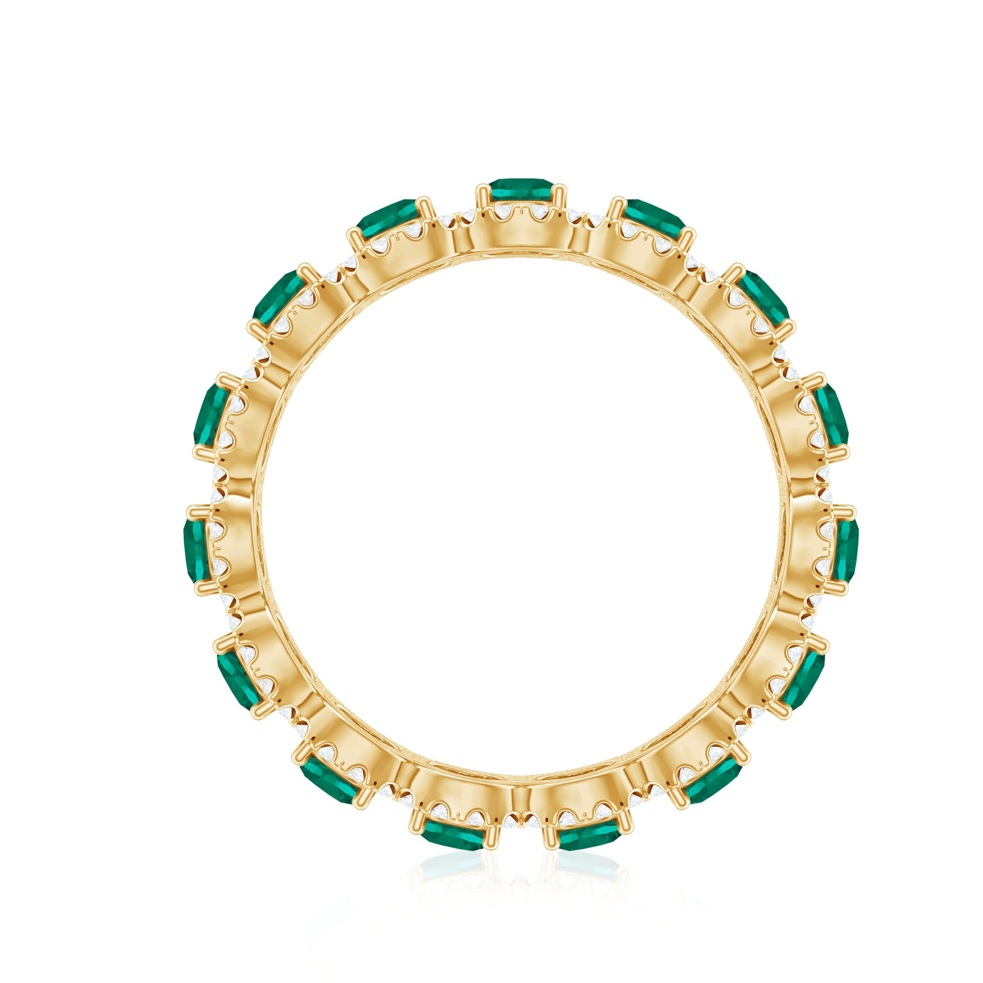 Embrace the allure of the natural world with this heartwarming Eternity Ring. This captivating ring captures the delicate beauty of eternal love, with lab grown emeralds encircling the entire band. The eternity design symbolizes the everlasting love of you two. Meticulously crafted with high-quality lab-grown emeralds, these rings are perfect for styling and represent everlasting love. You can wear it on your own or stack it with an engagement ring.