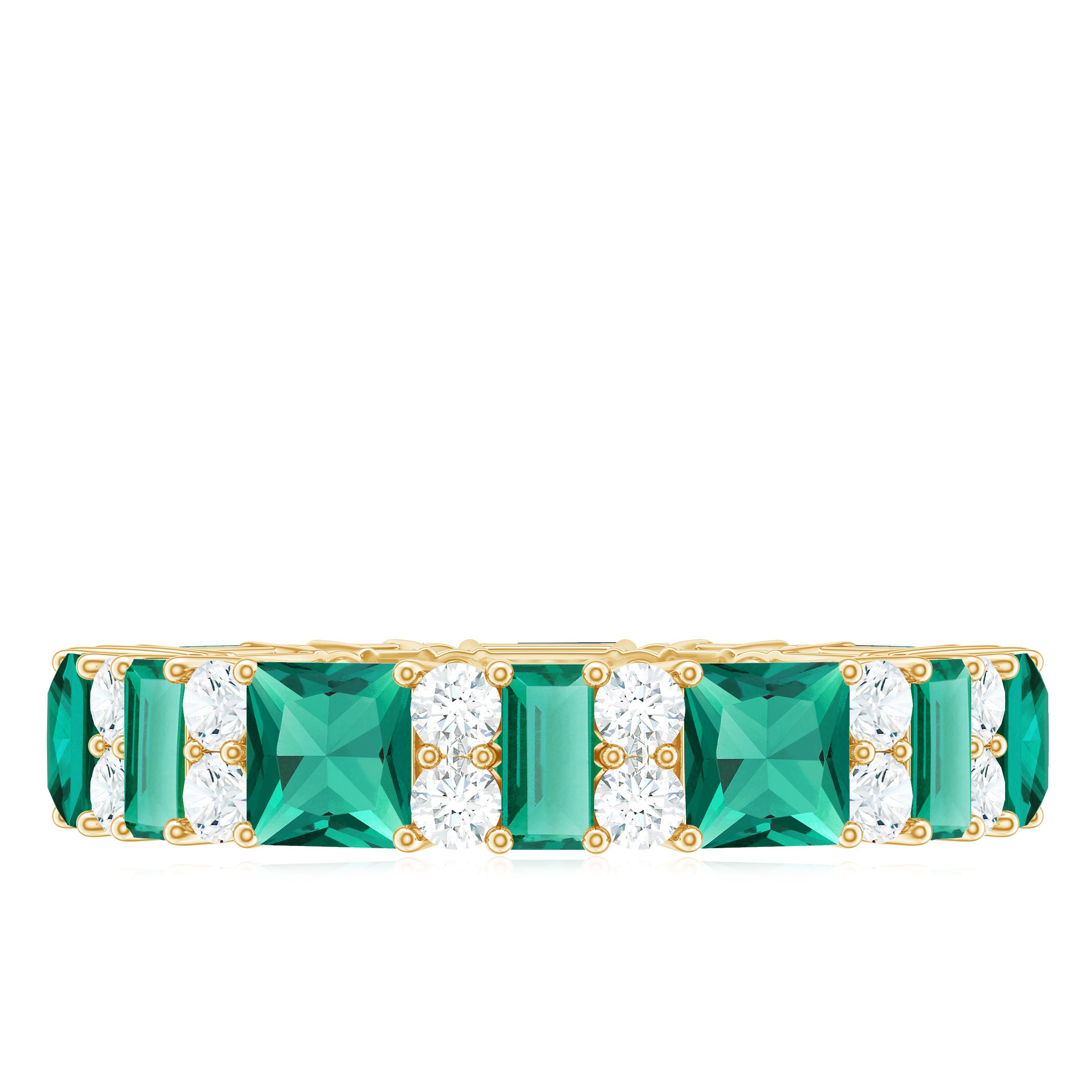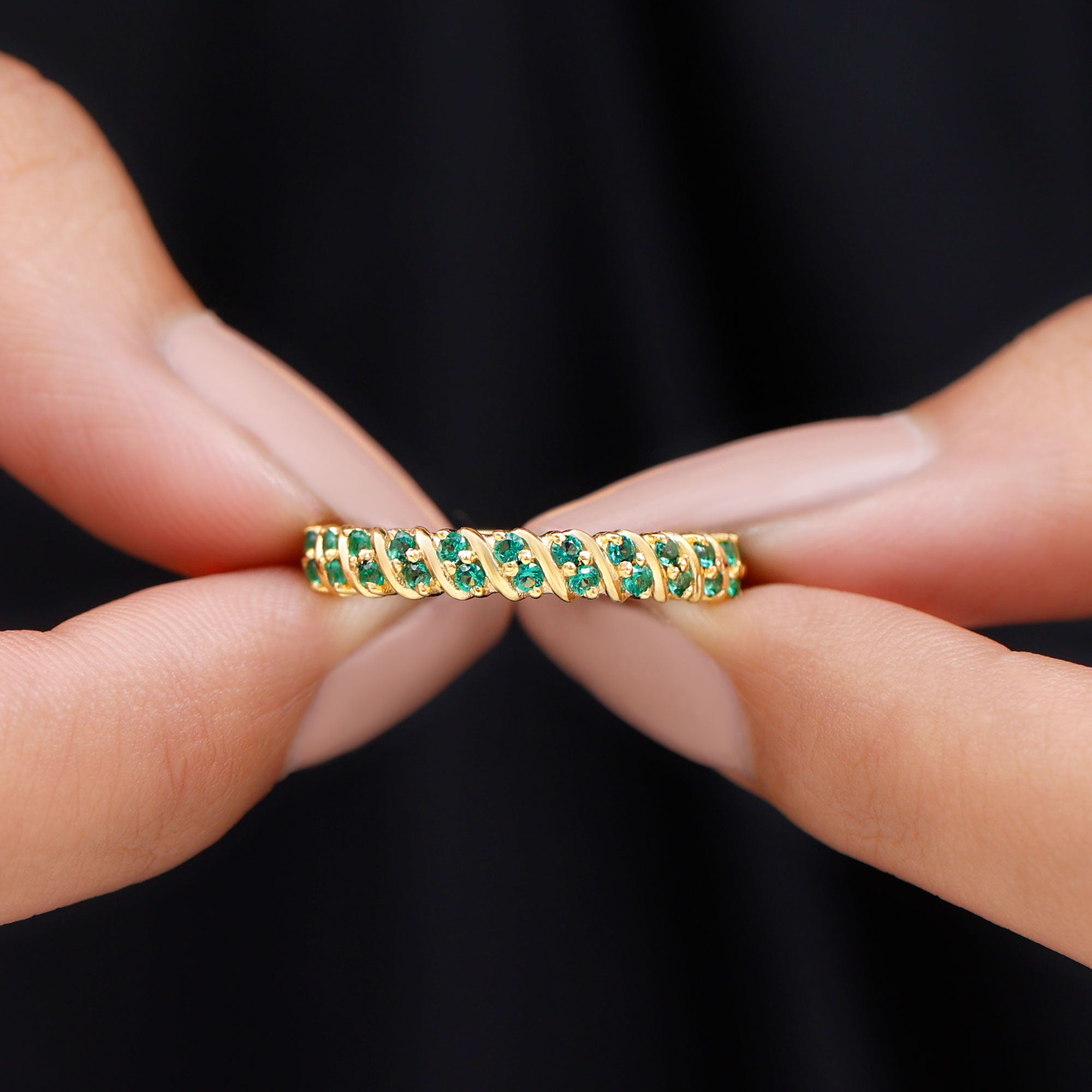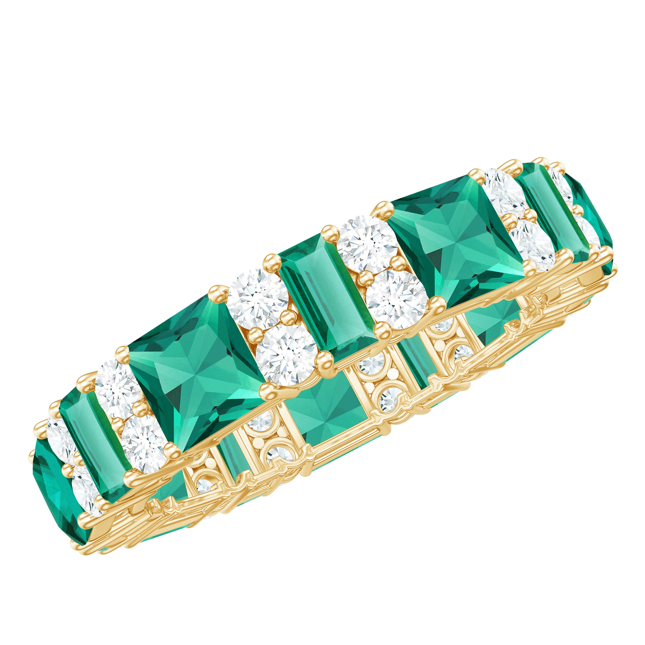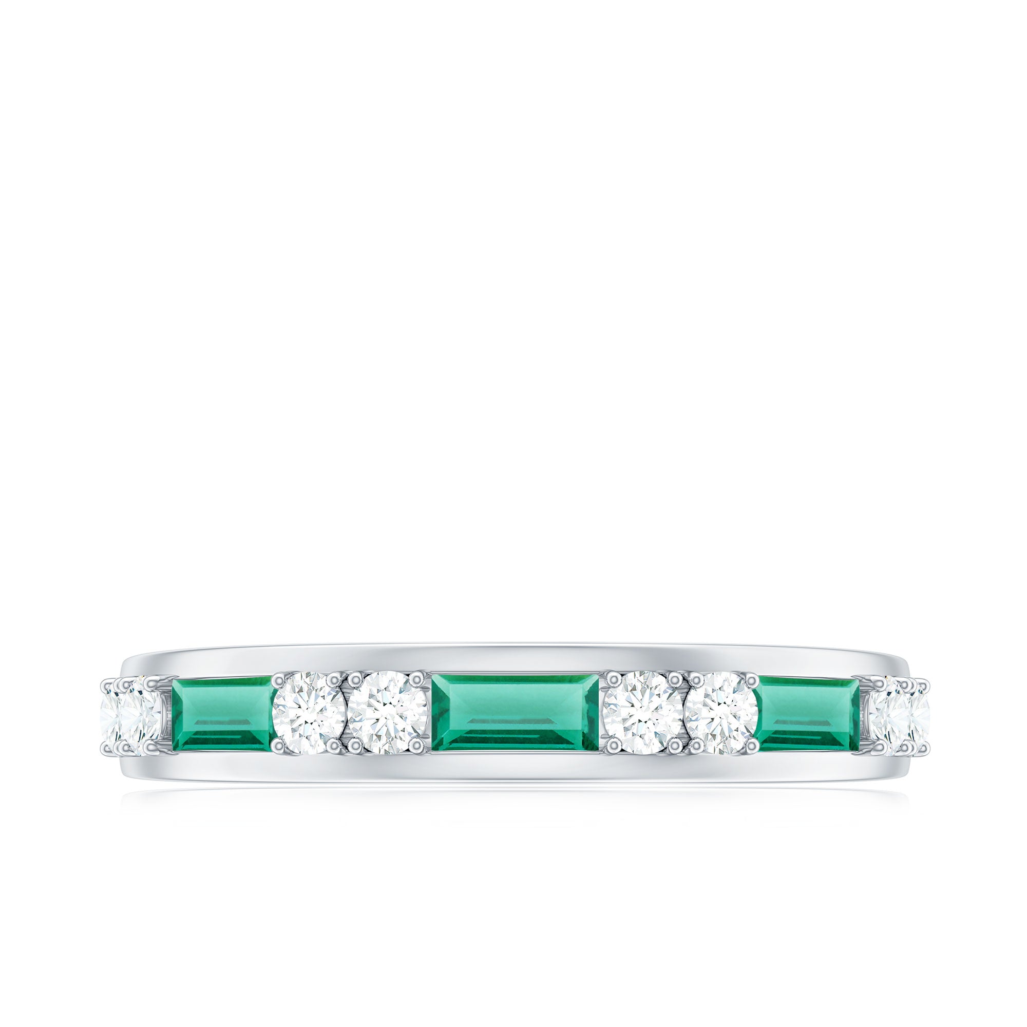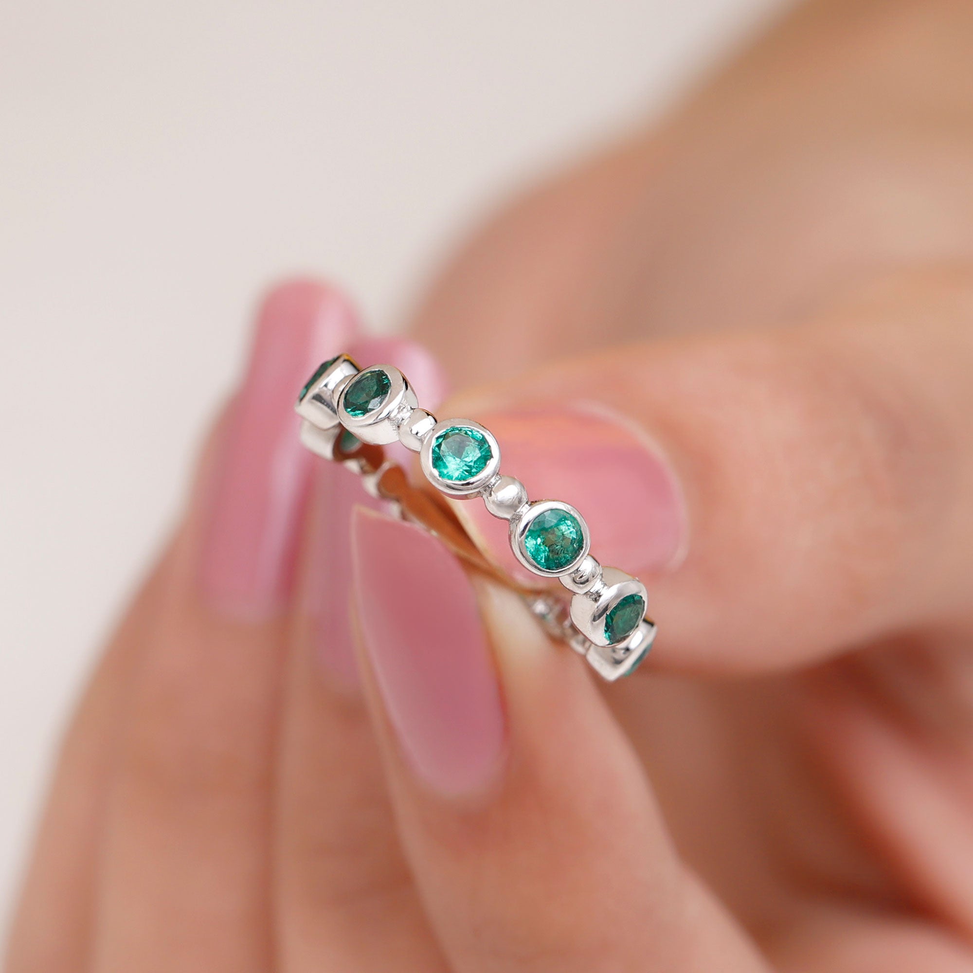 Embrace the allure of the natural world with this heartwarming Eternity Ring. This captivating ring captures the delicate beauty of eternal love, with lab grown emeralds encircling the entire band. The eternity design symbolizes the everlasting love of you two. Meticulously crafted with high-quality lab-grown emeralds, these rings are perfect for styling and represent everlasting love. You can wear it on your own or stack it with an engagement ring.