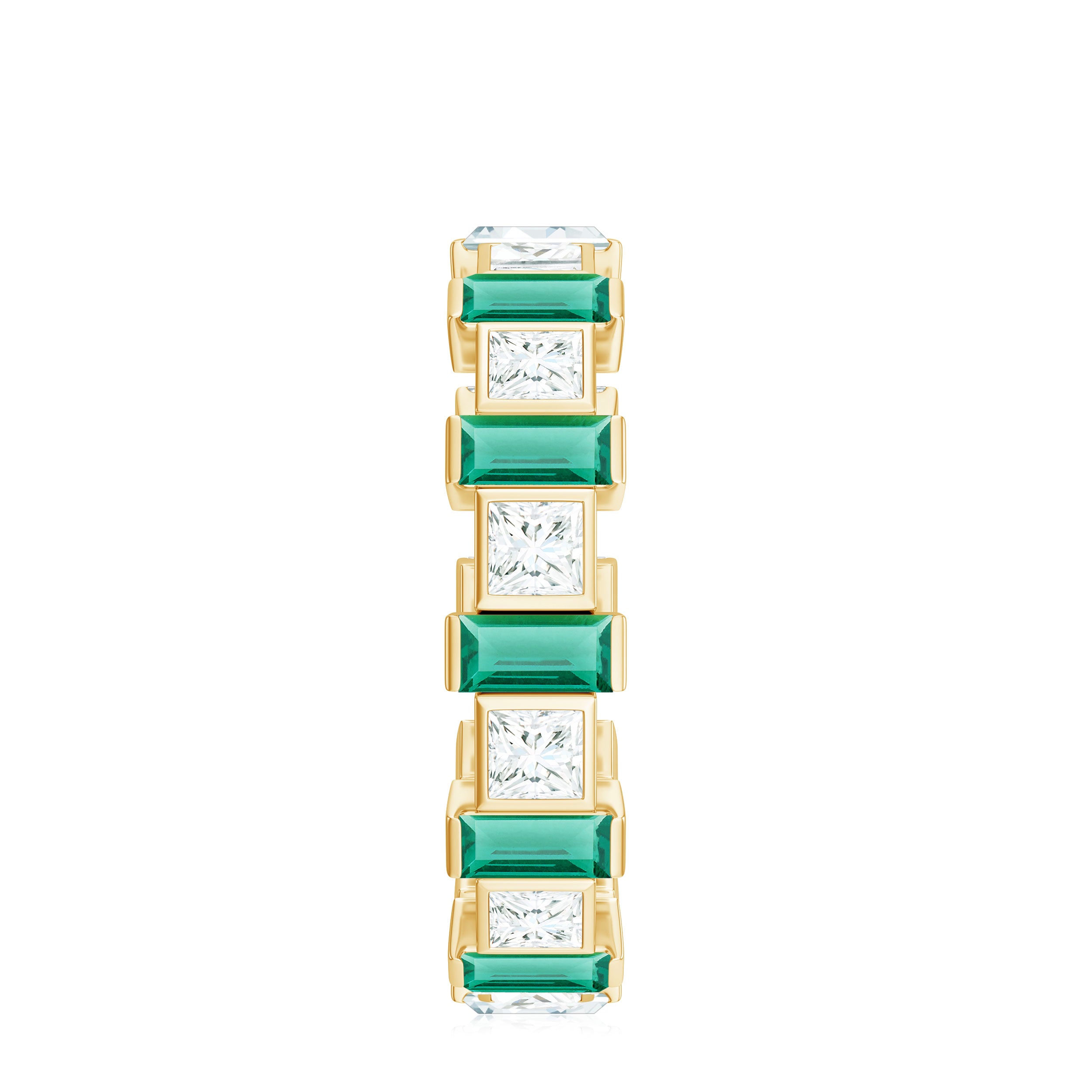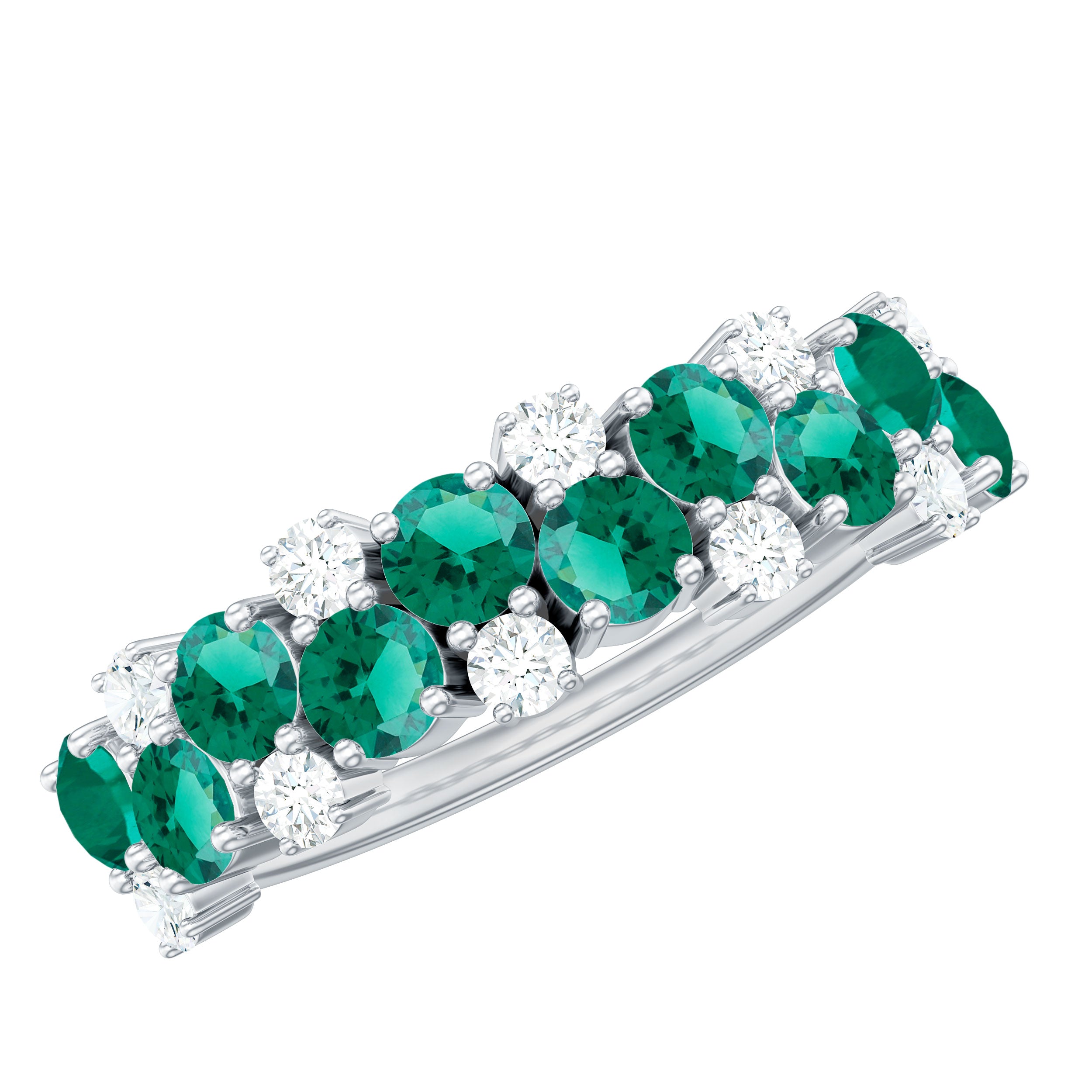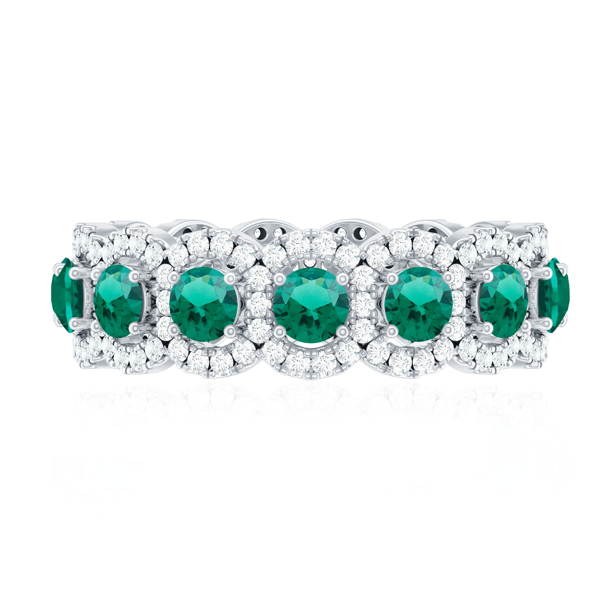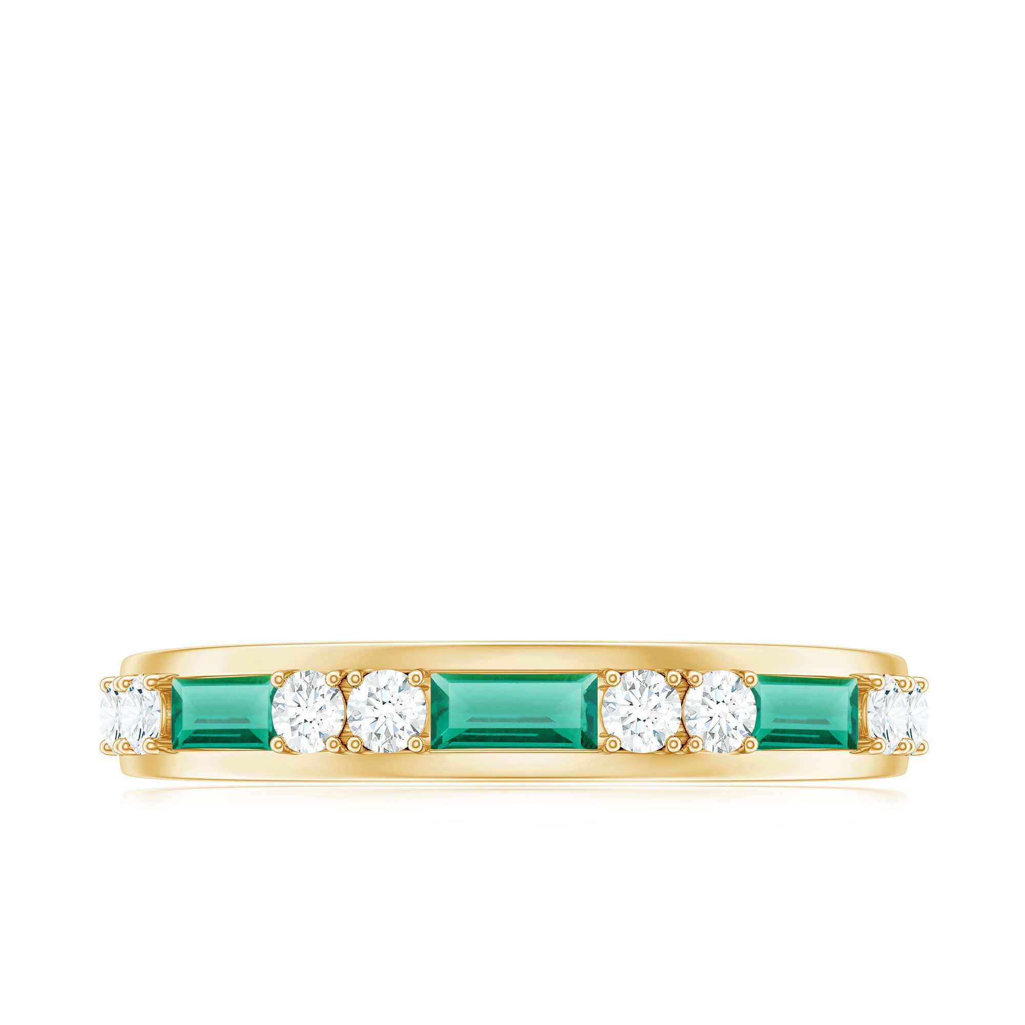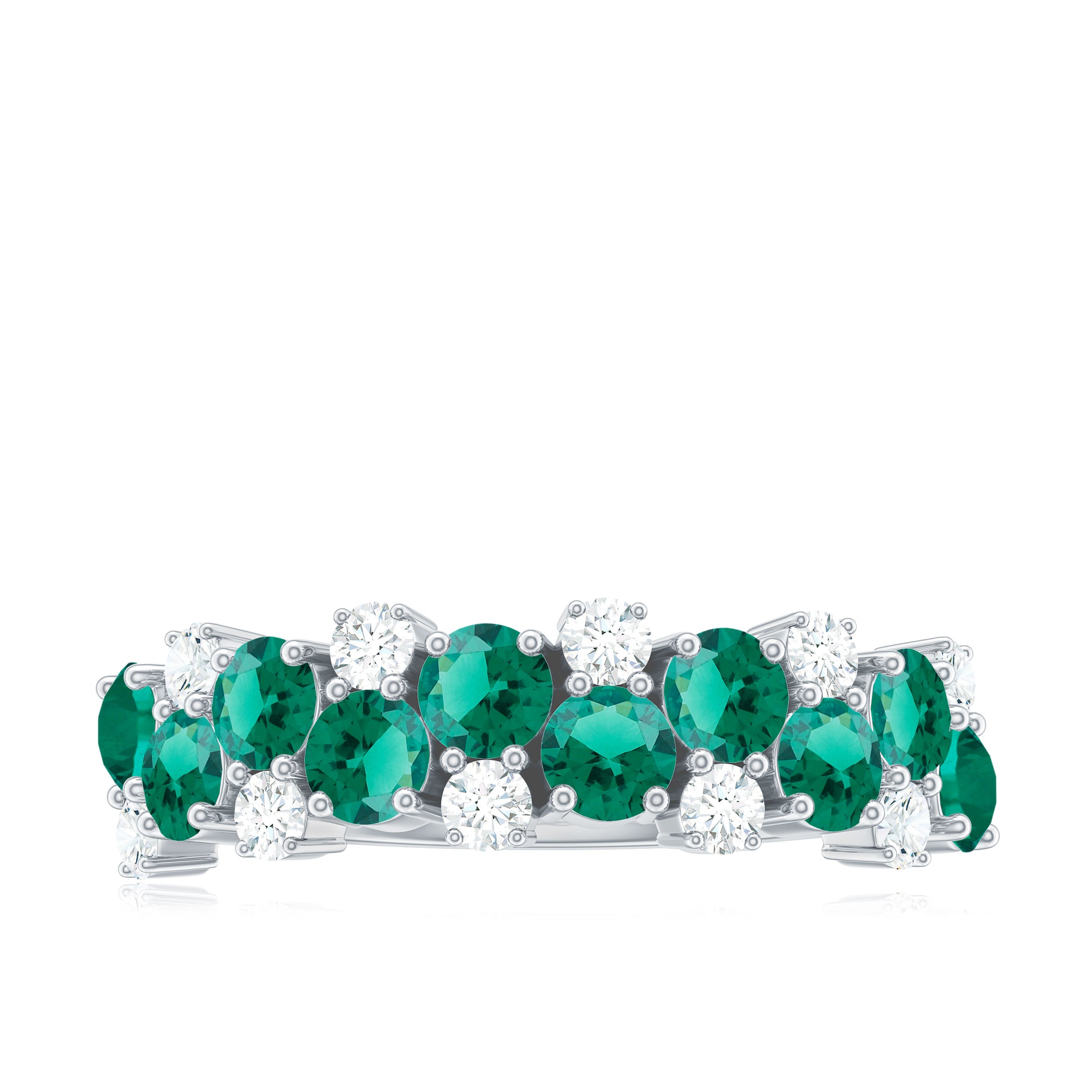 Embrace the allure of the natural world with this heartwarming Eternity Ring. This captivating ring captures the delicate beauty of eternal love, with lab grown emeralds encircling the entire band. The eternity design symbolizes the everlasting love of you two. Meticulously crafted with high-quality lab-grown emeralds, these rings are perfect for styling and represent everlasting love. You can wear it on your own or stack it with an engagement ring.