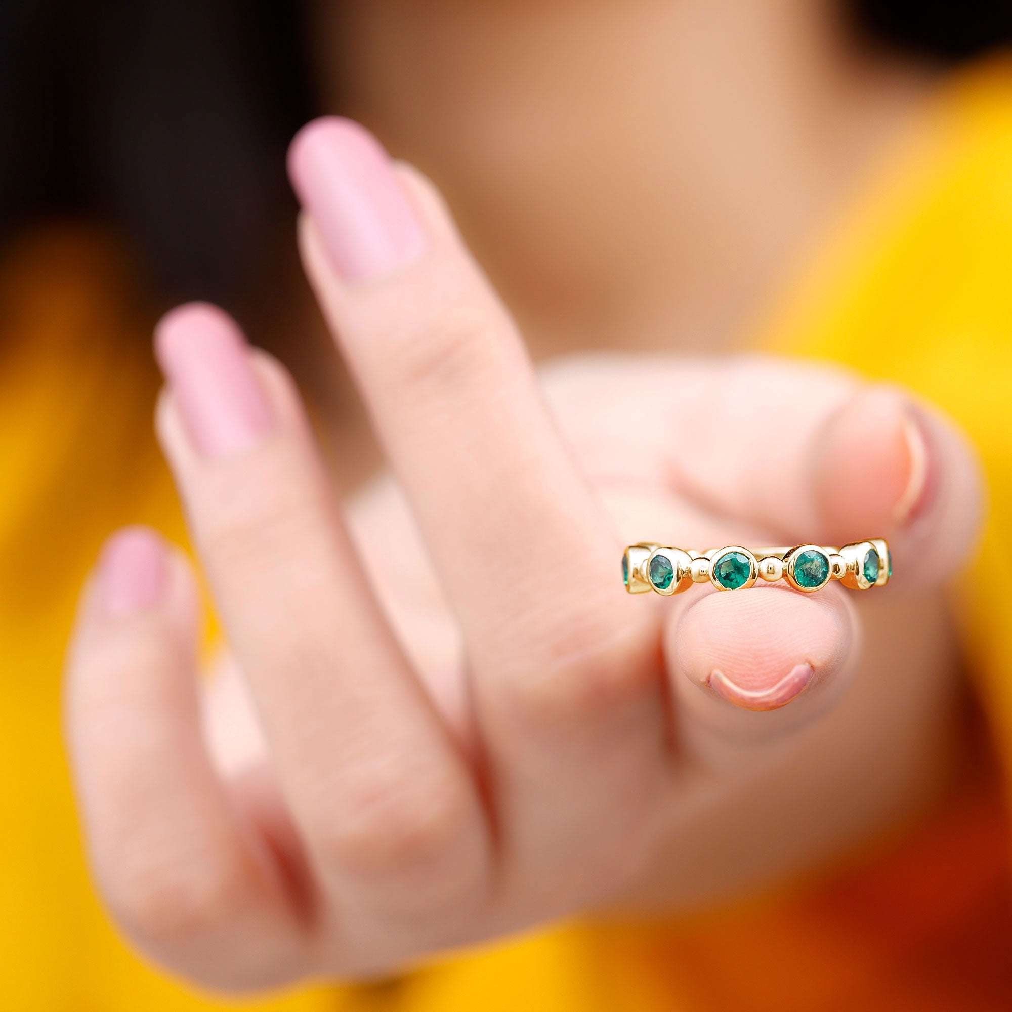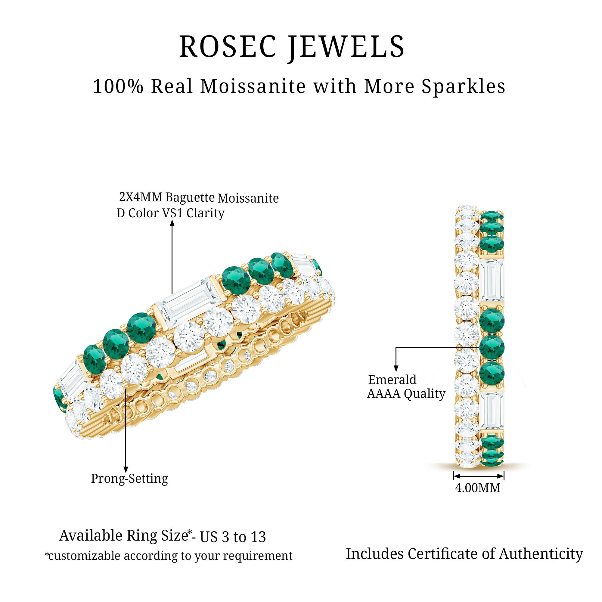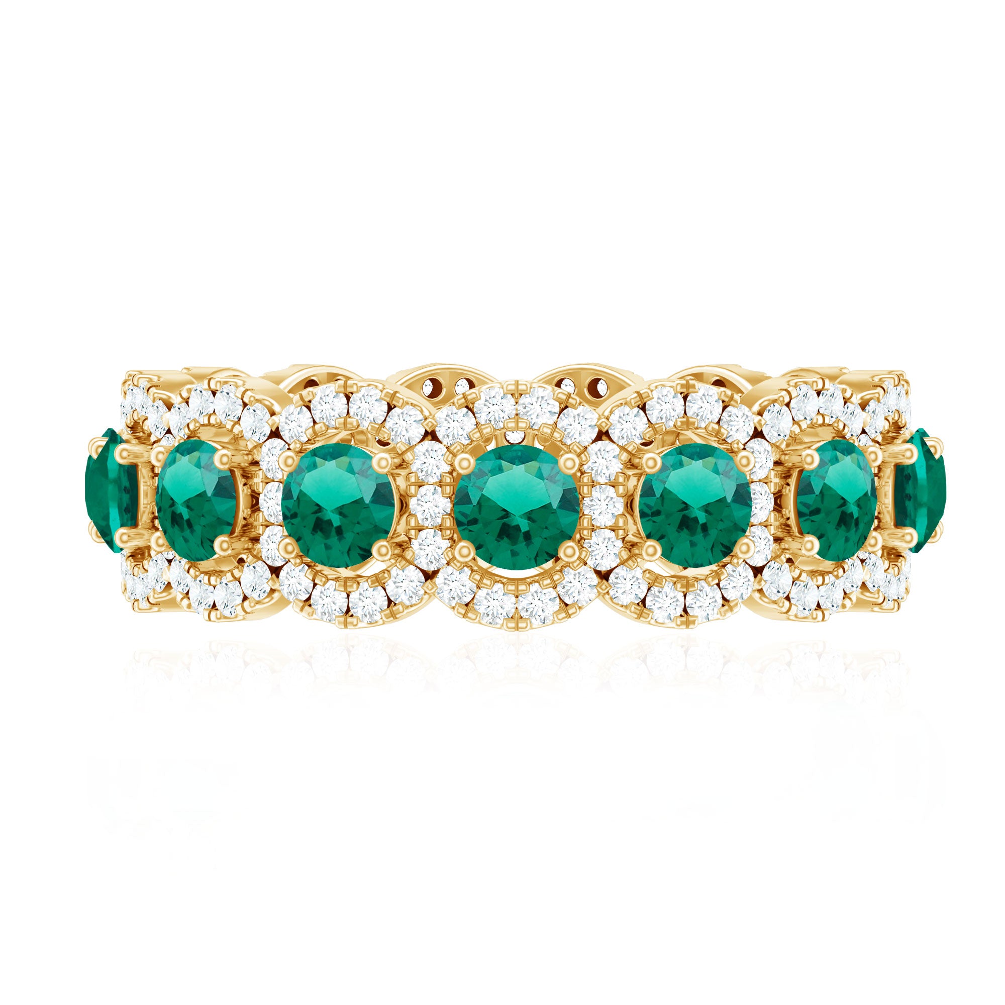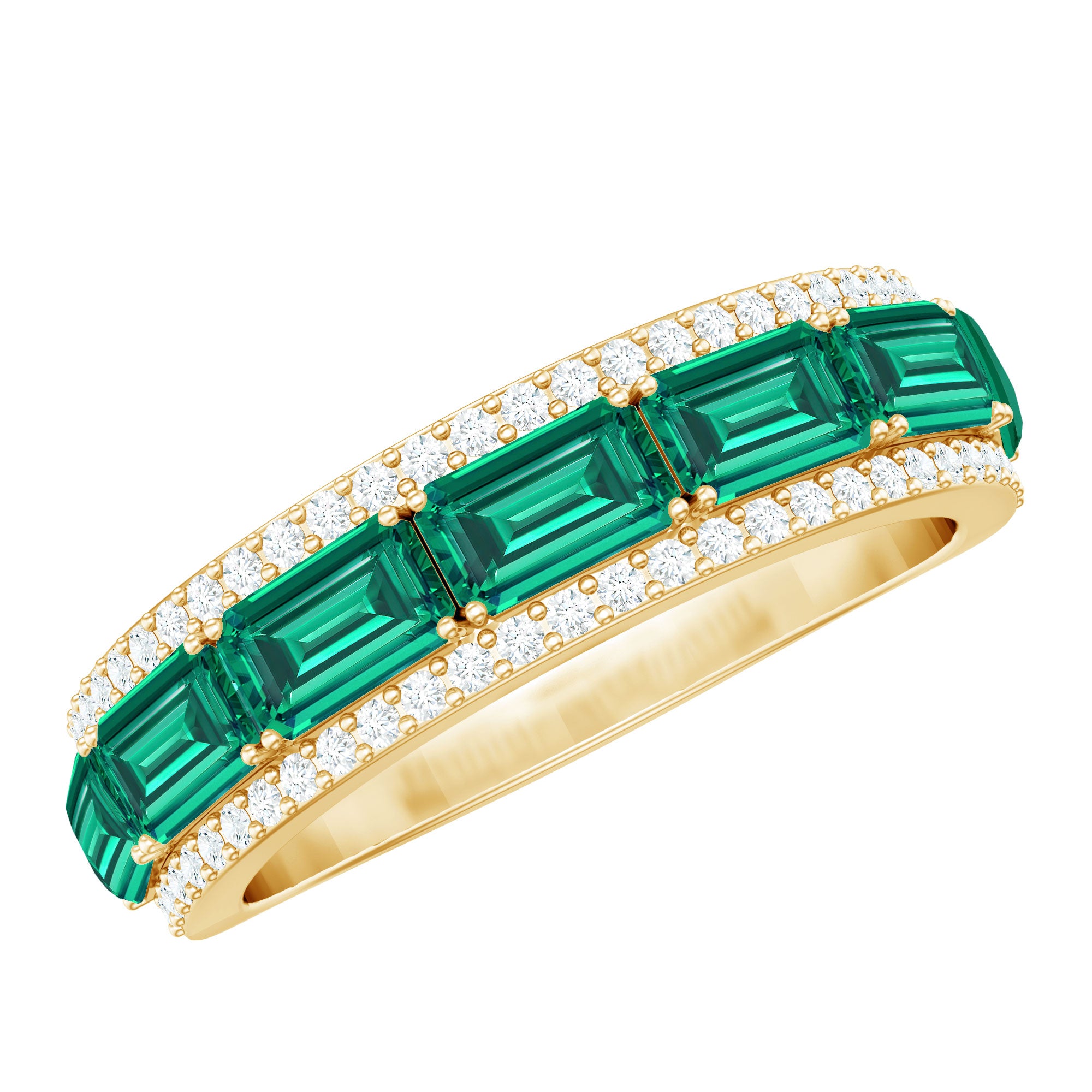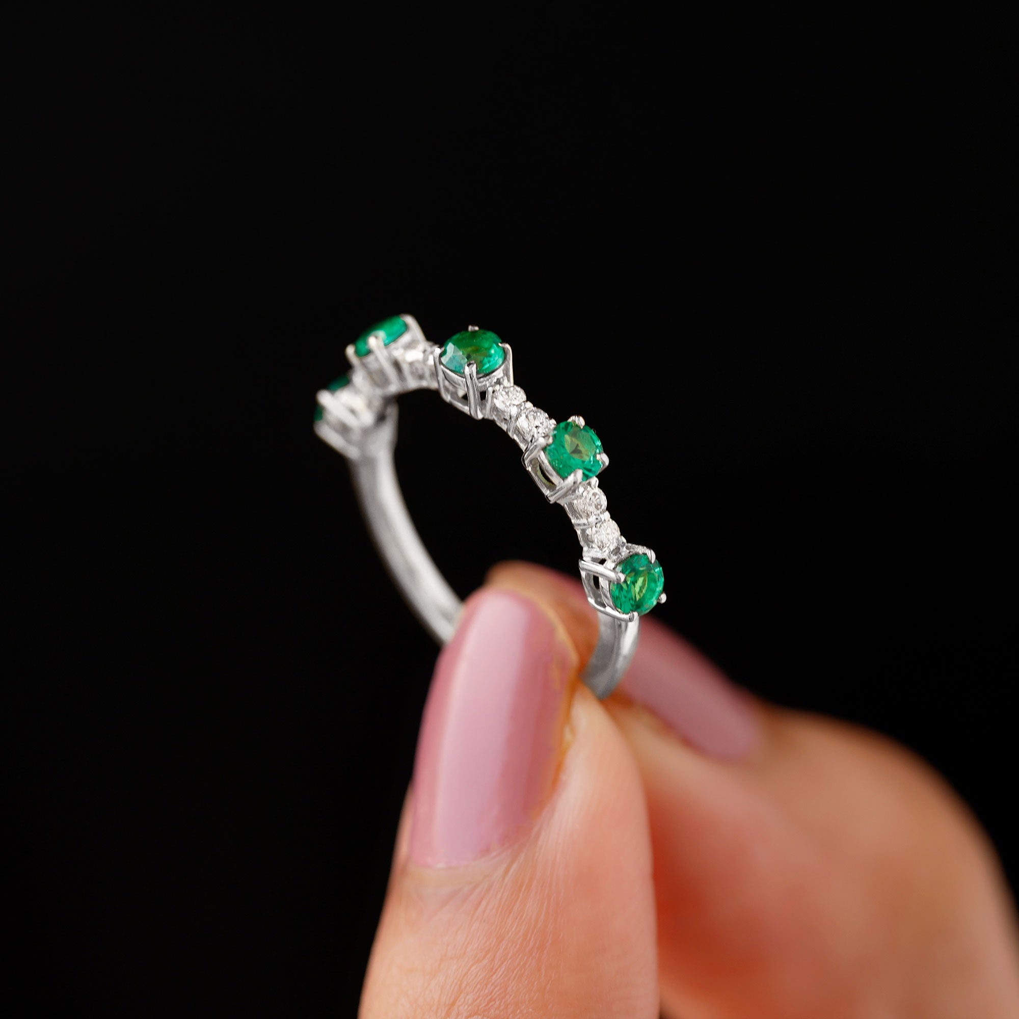 Embrace the allure of the natural world with this heartwarming Eternity Ring. This captivating ring captures the delicate beauty of eternal love, with lab grown emeralds encircling the entire band. The eternity design symbolizes the everlasting love of you two. Meticulously crafted with high-quality lab-grown emeralds, these rings are perfect for styling and represent everlasting love. You can wear it on your own or stack it with an engagement ring.
