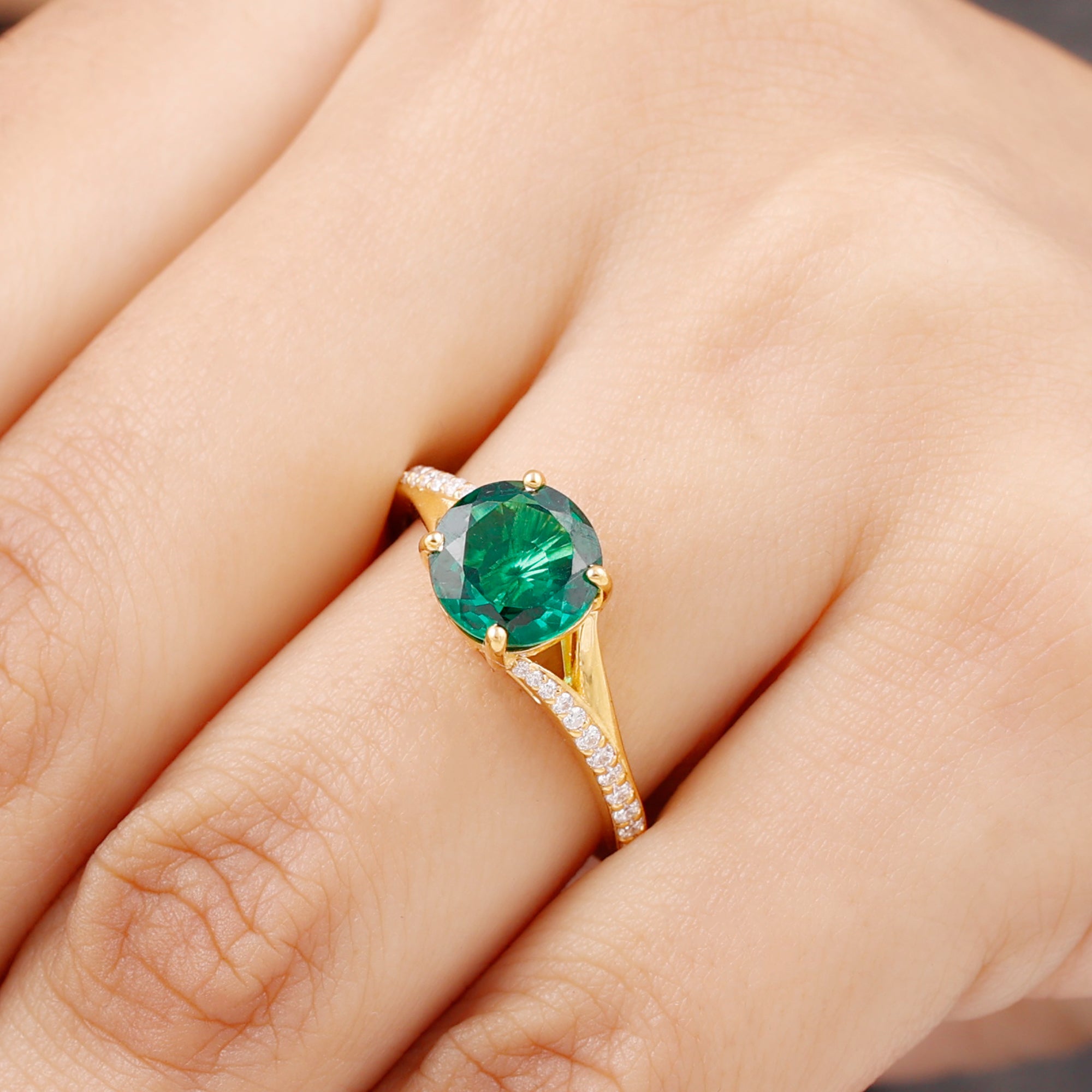 Lab Created Emerald Ring Yellow Gold: