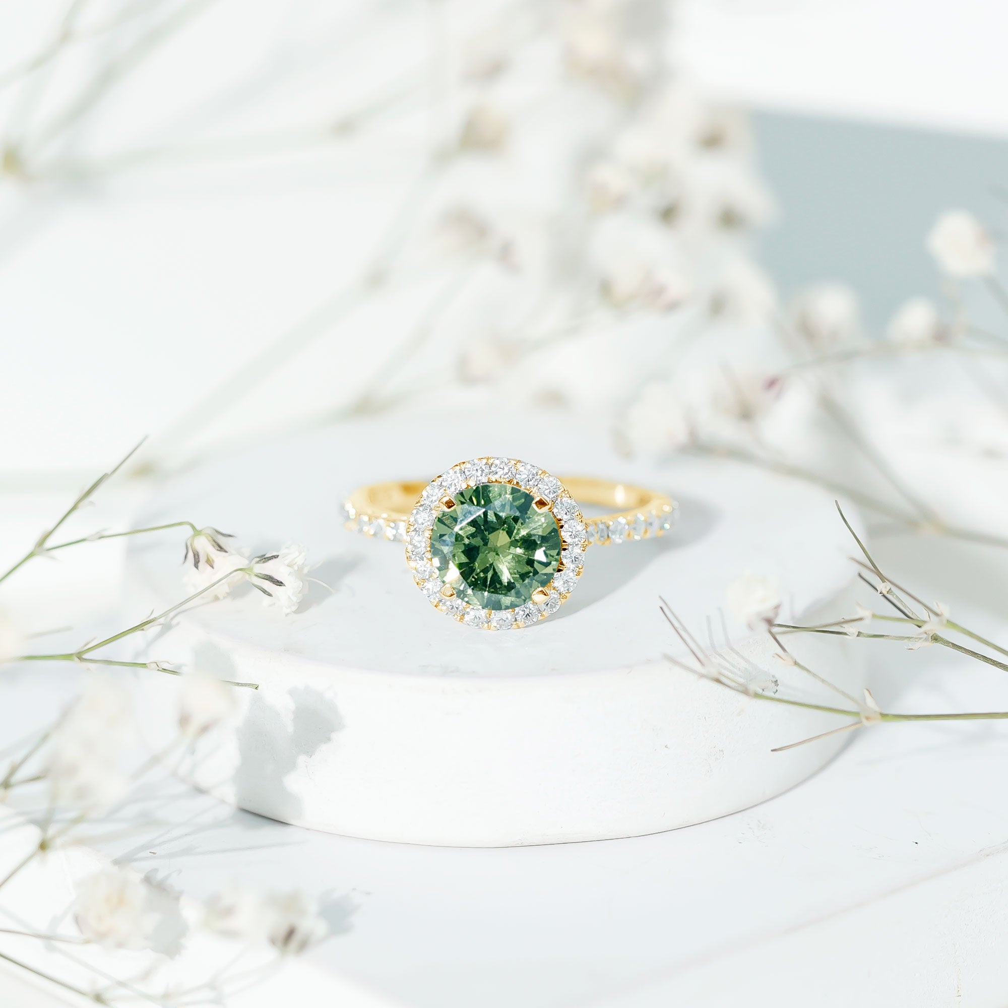 Lab created green sapphire gemstone over a traditional diamond can reflect your unique, distinctive and eco-friendly choice. These man made gems are not only affordable, but ethical and sustainable too.