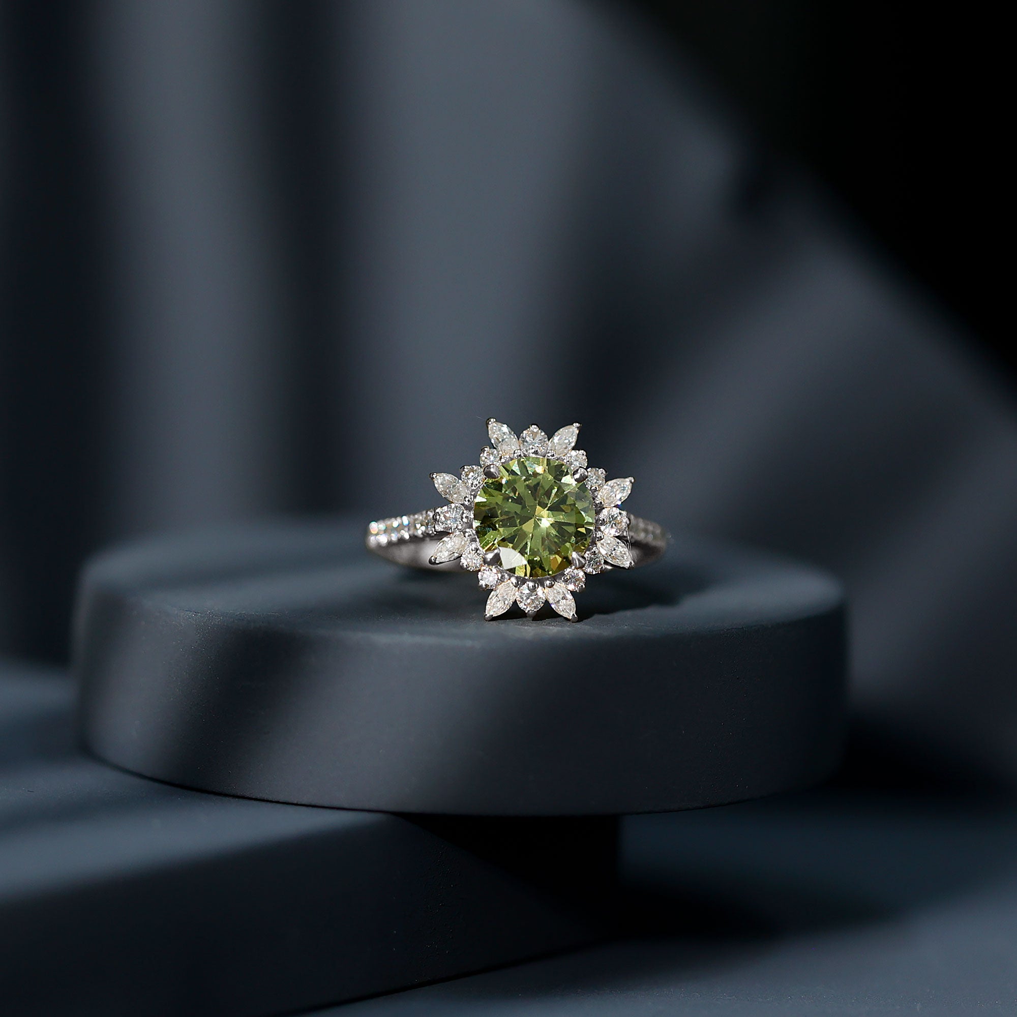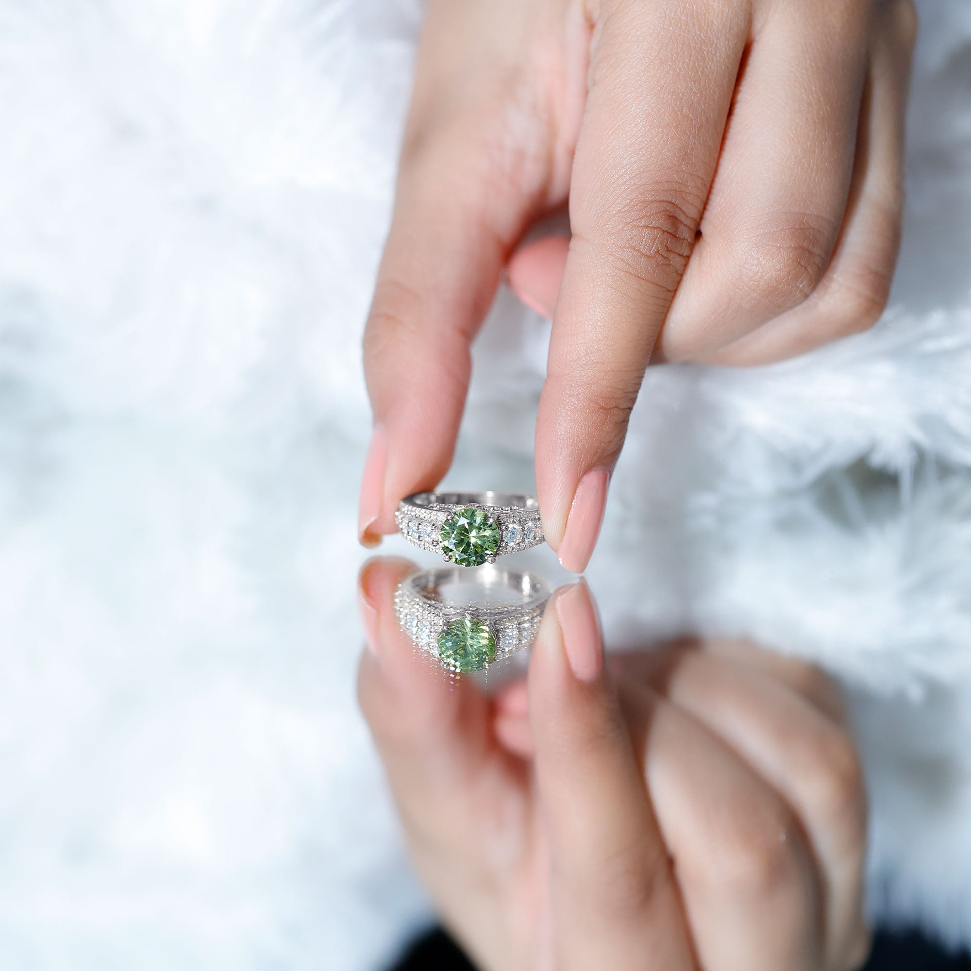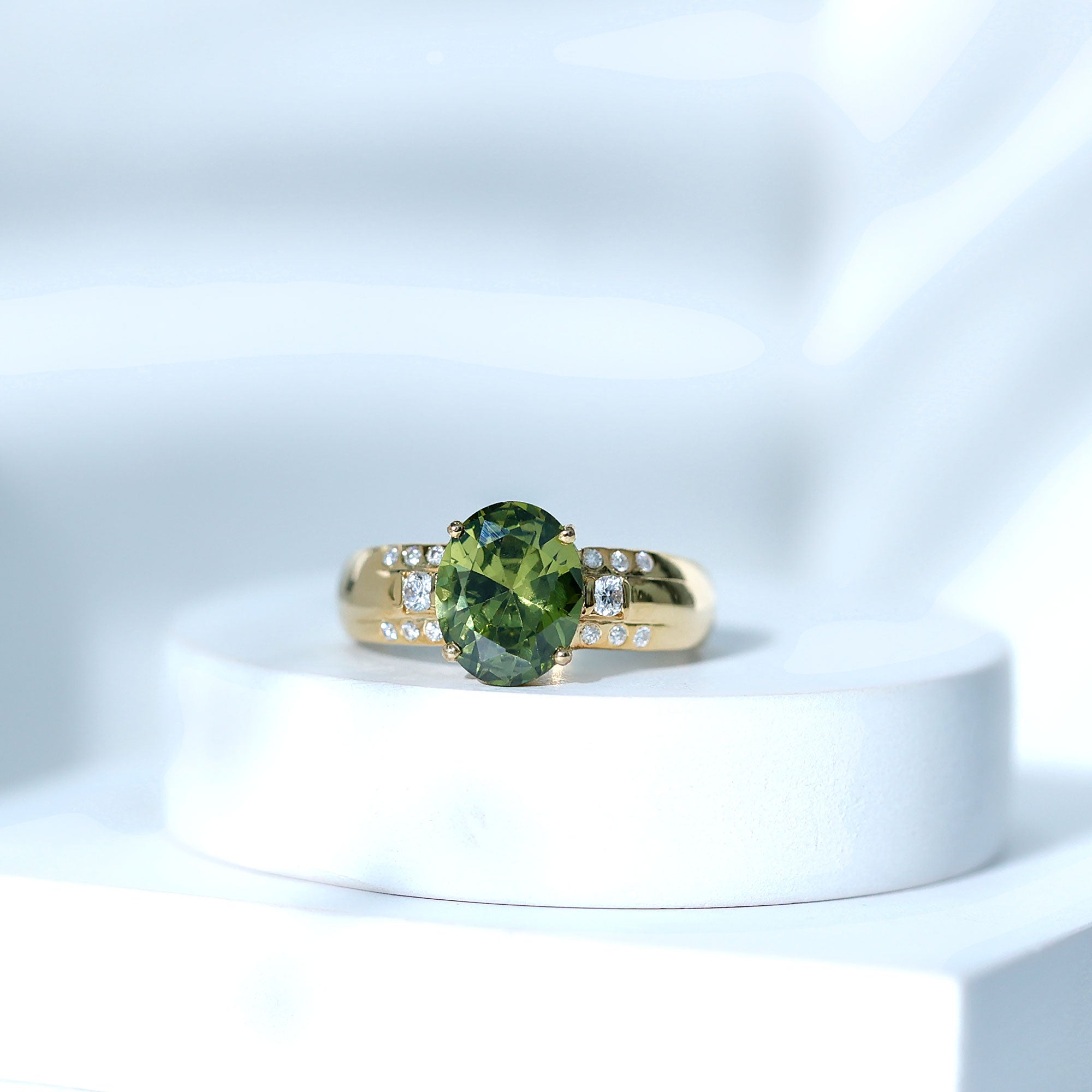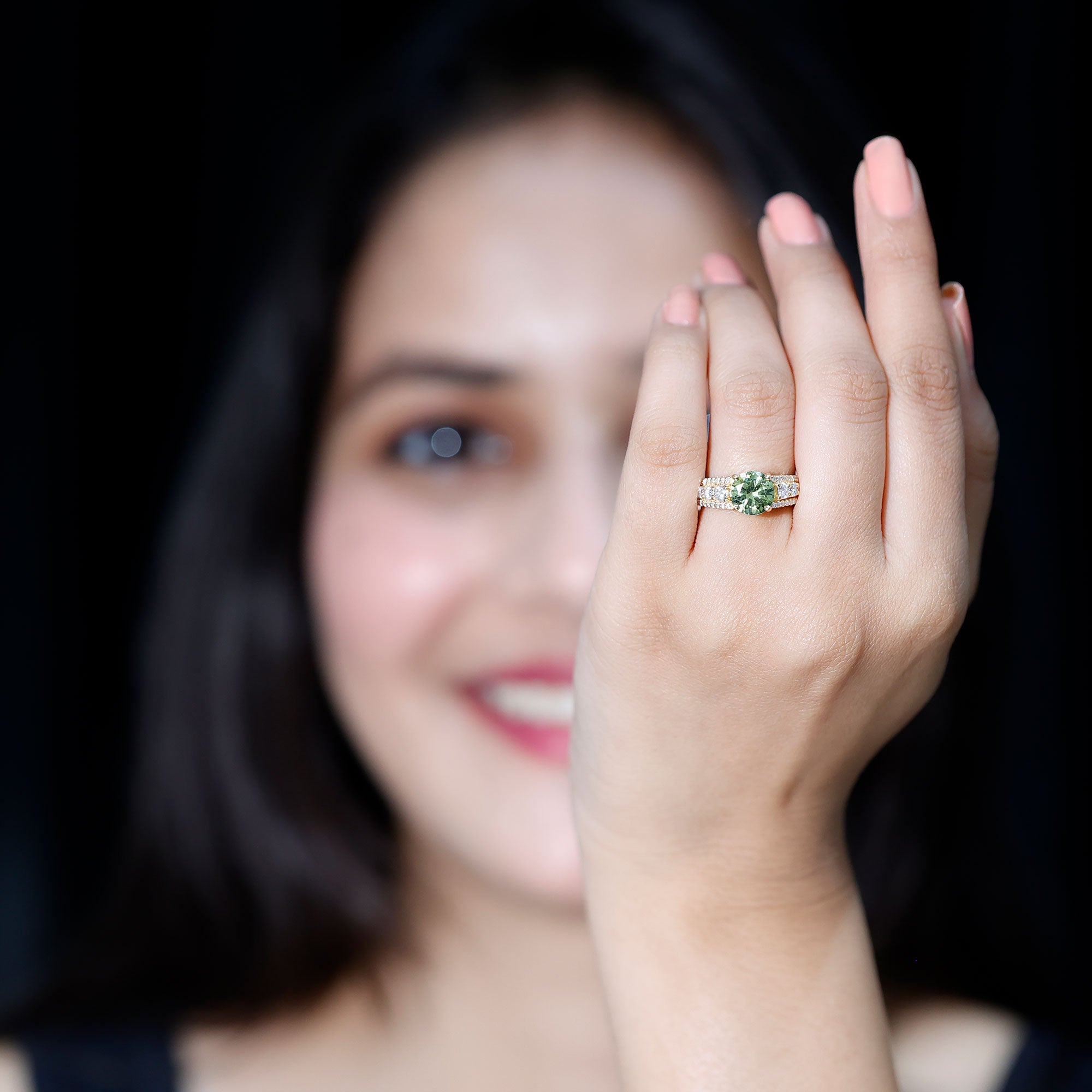 Statement Rings: Statement rings usually feature large lab created green sapphire adorned with smaller stones or intricate patterns for a bold, standout look.
