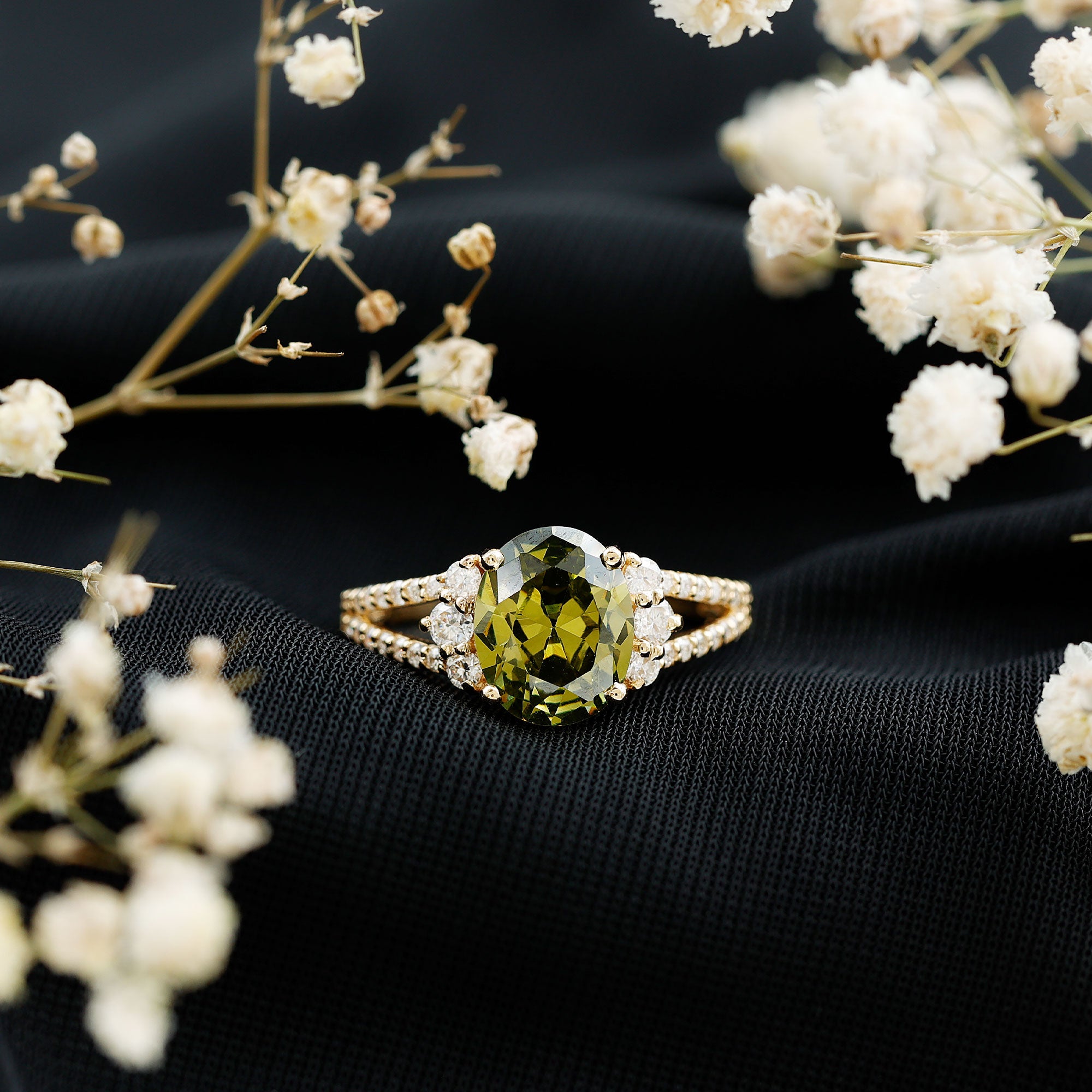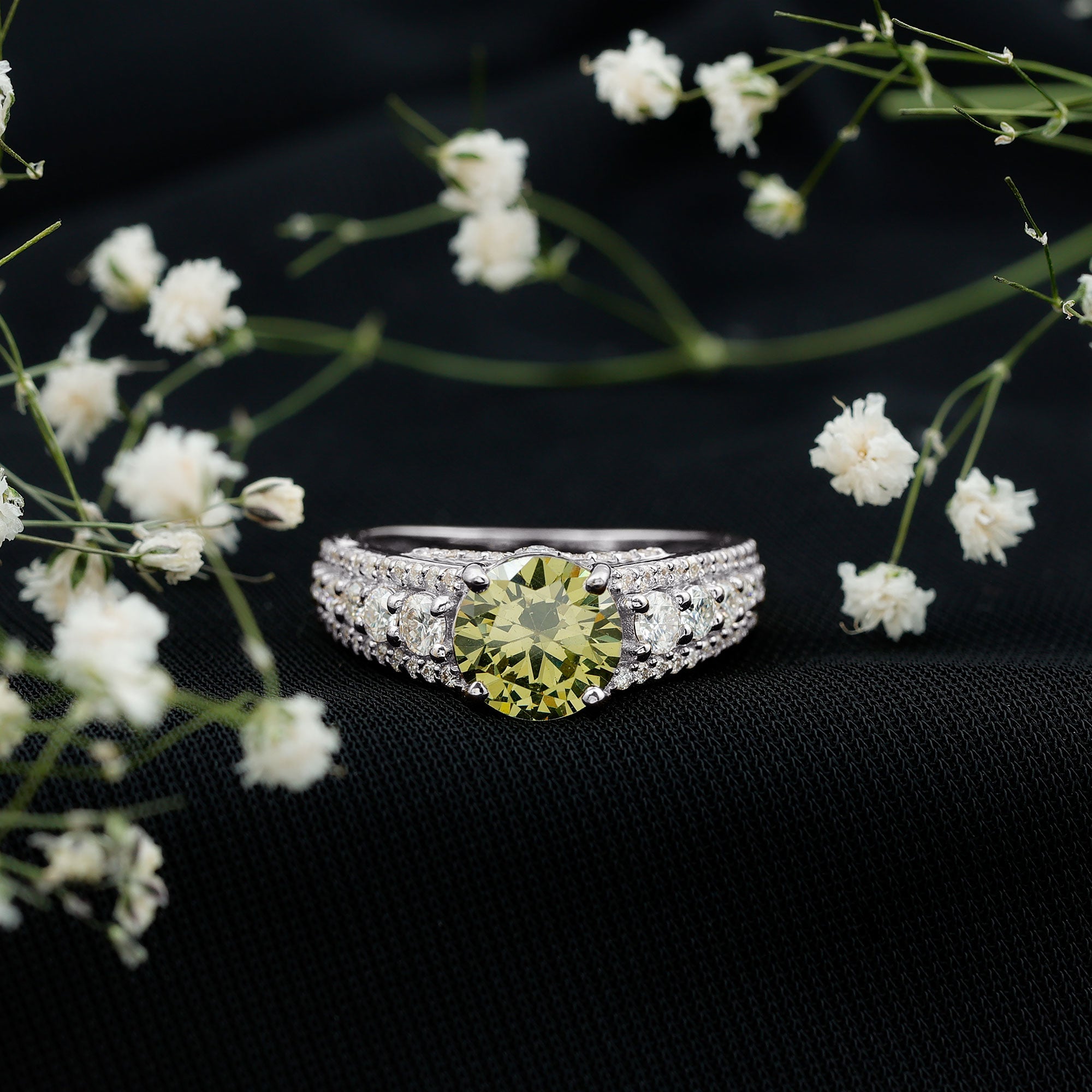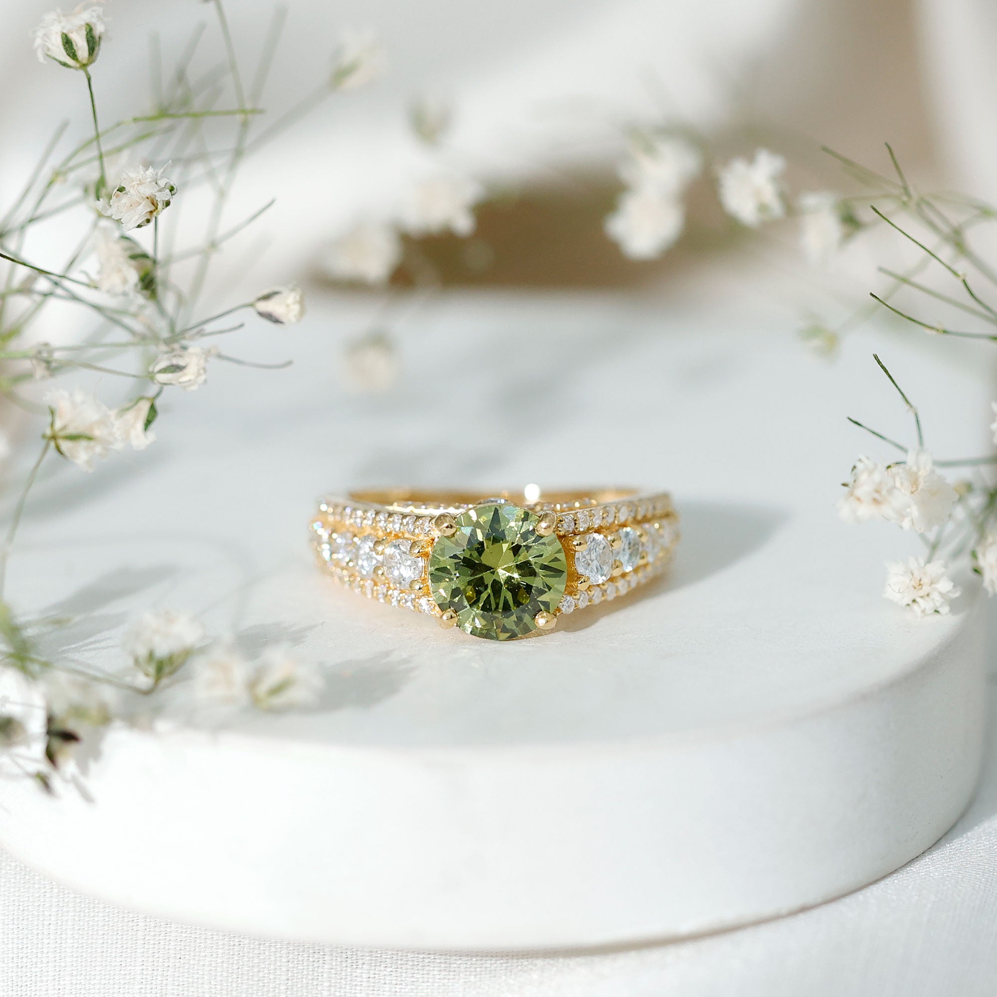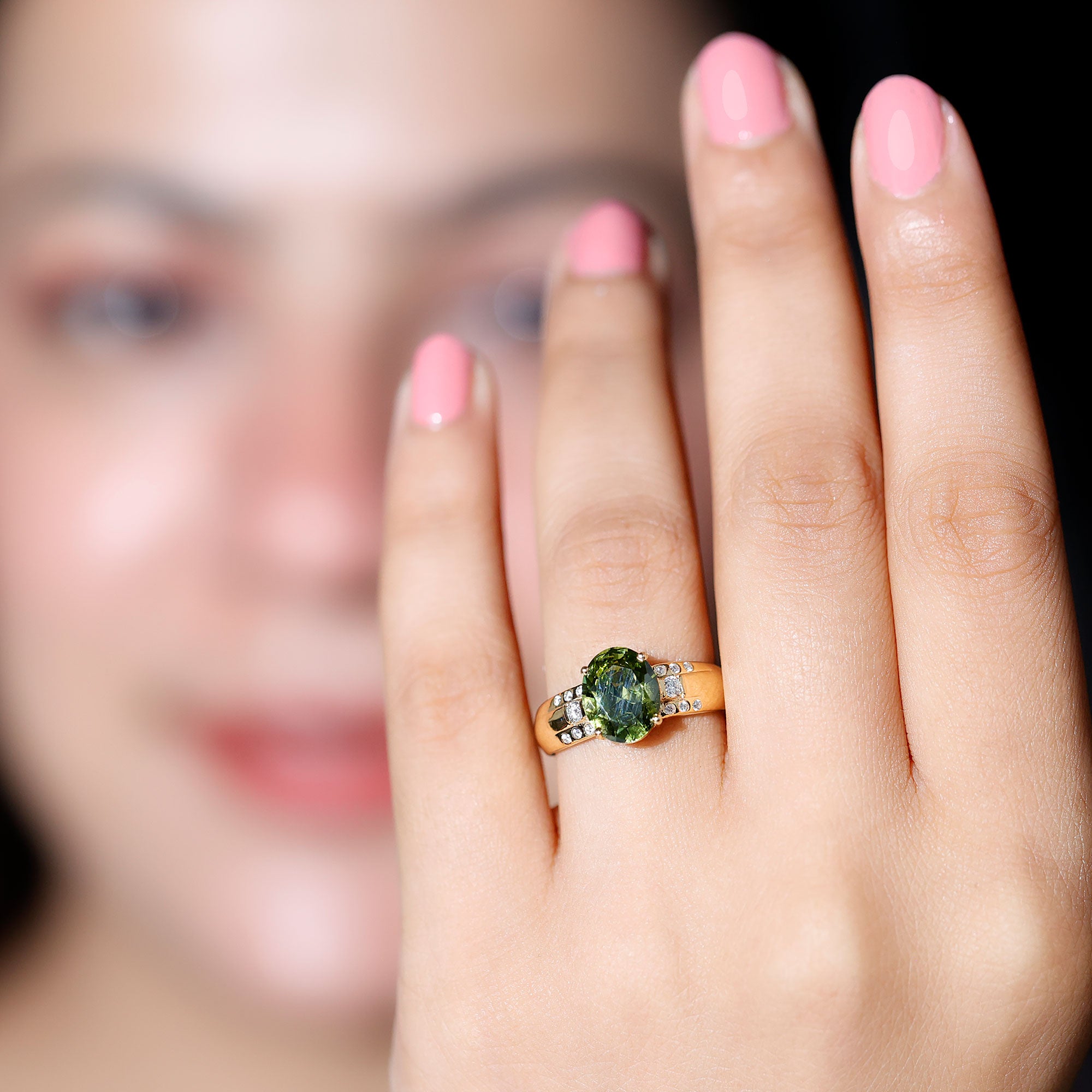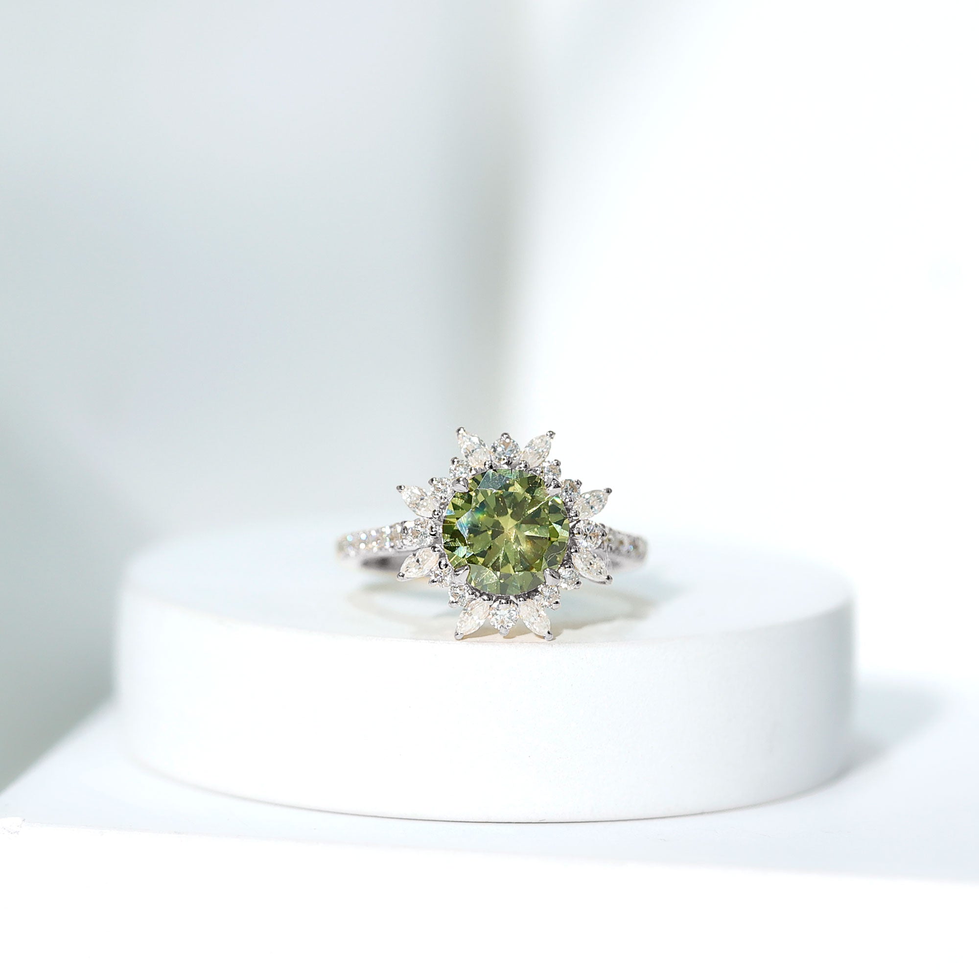 Statement Rings: Statement rings usually feature large lab created green sapphire adorned with smaller stones or intricate patterns for a bold, standout look.