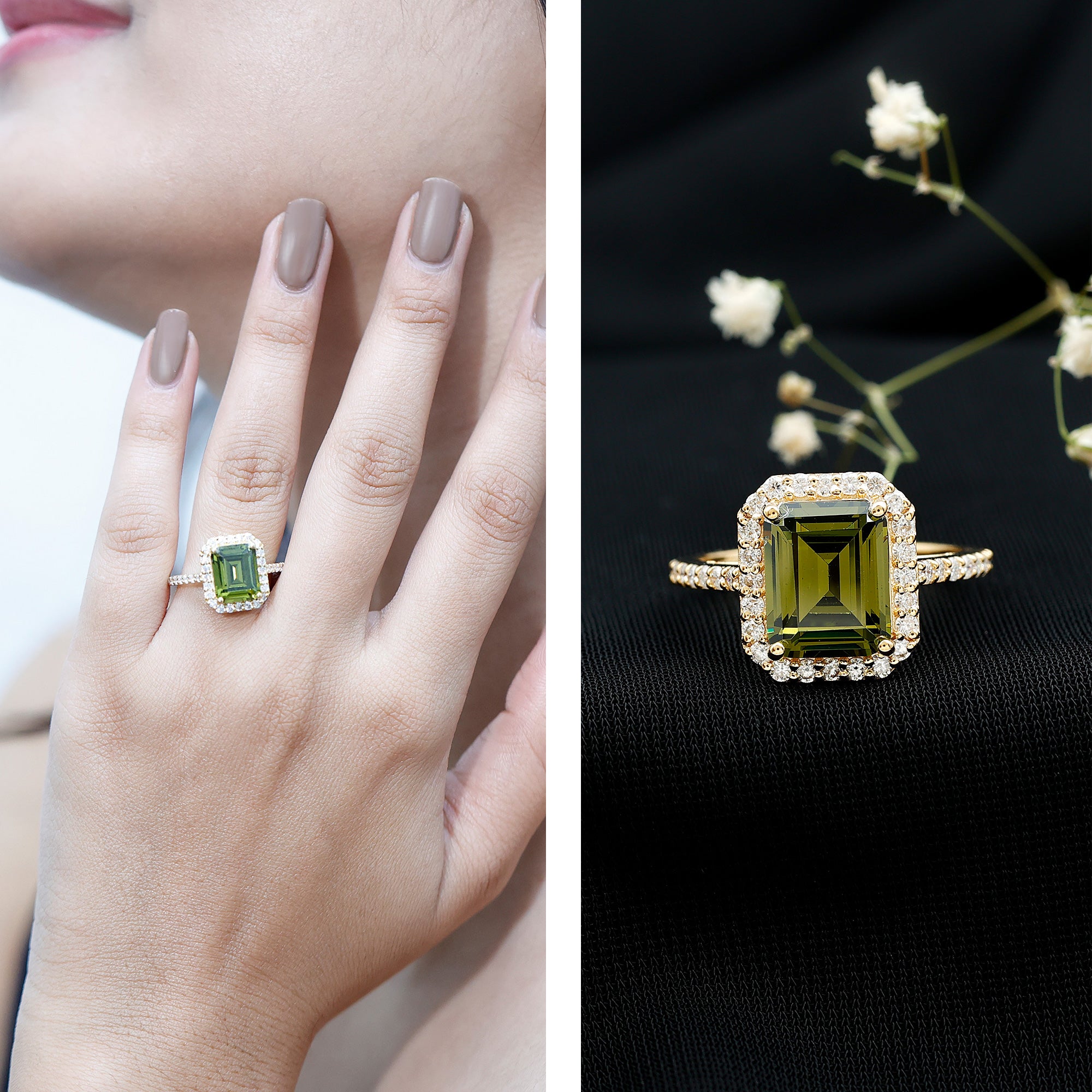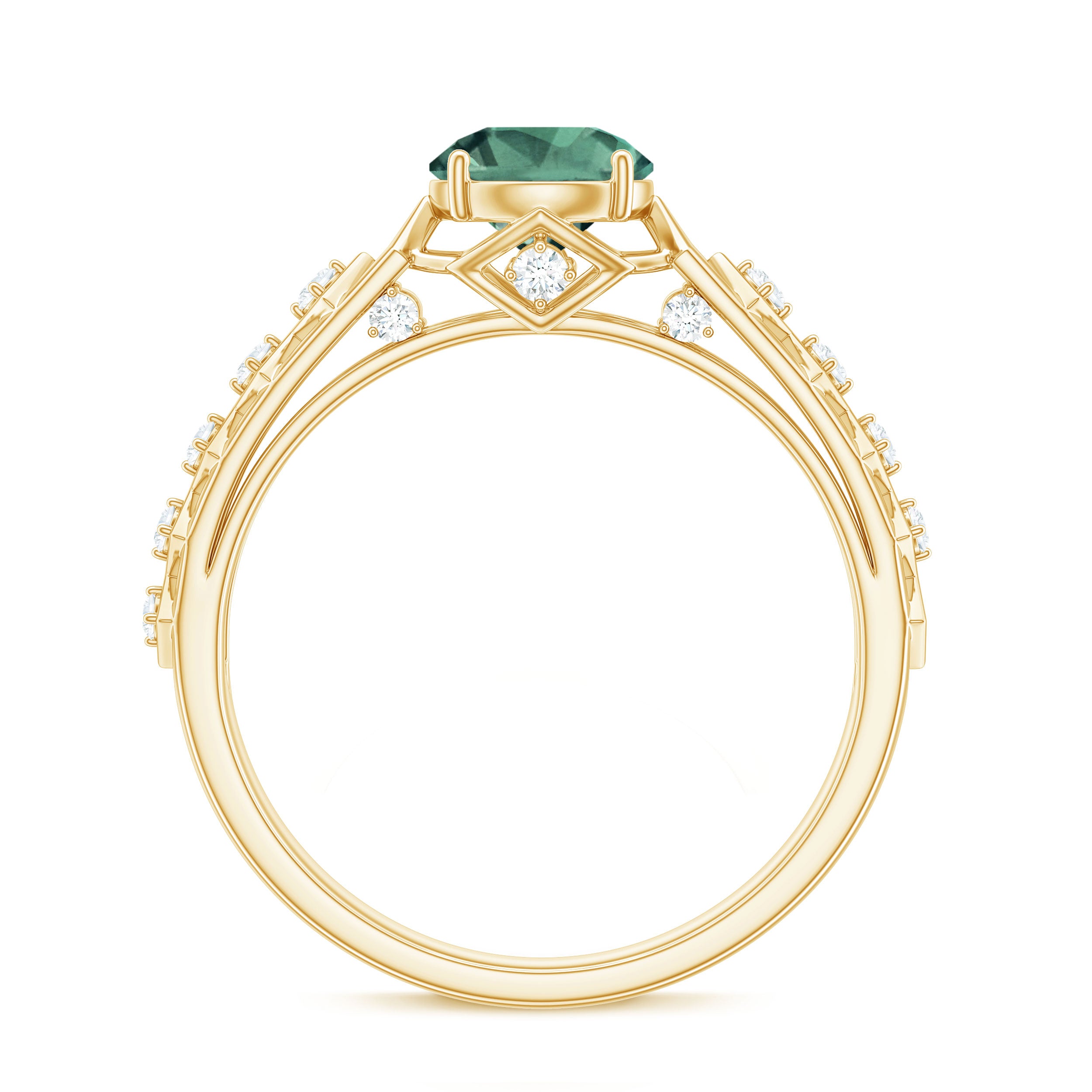 Metal options available:Yellow Gold: Classic glow of yellow gold, can be the choice of traditional warmth lovers. It is known to enhance the rich tones of green gemstone.