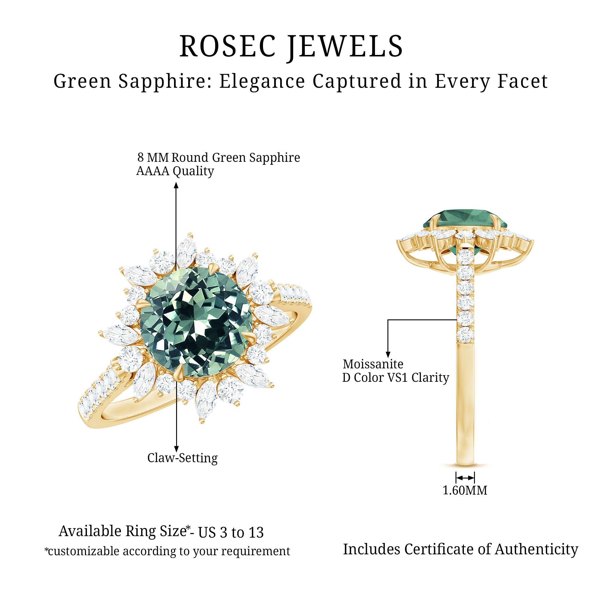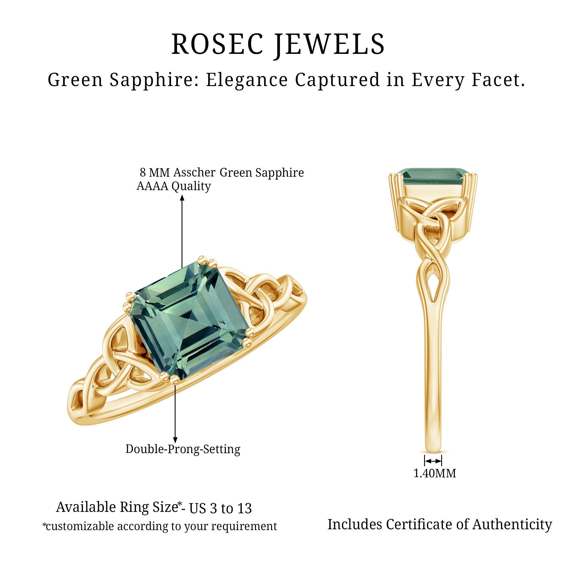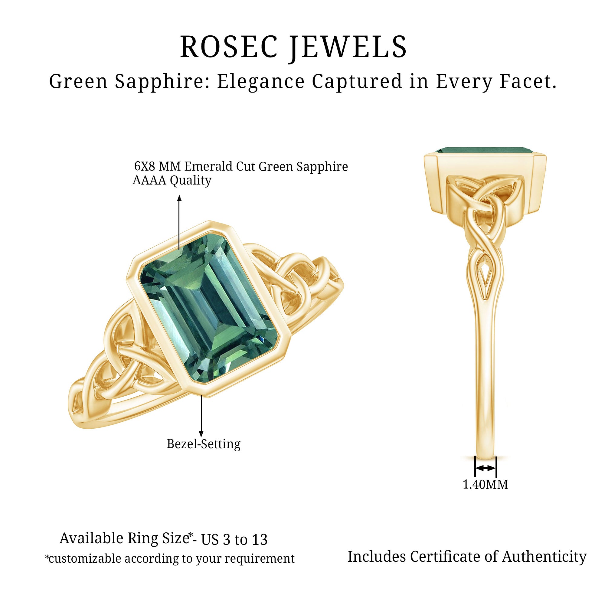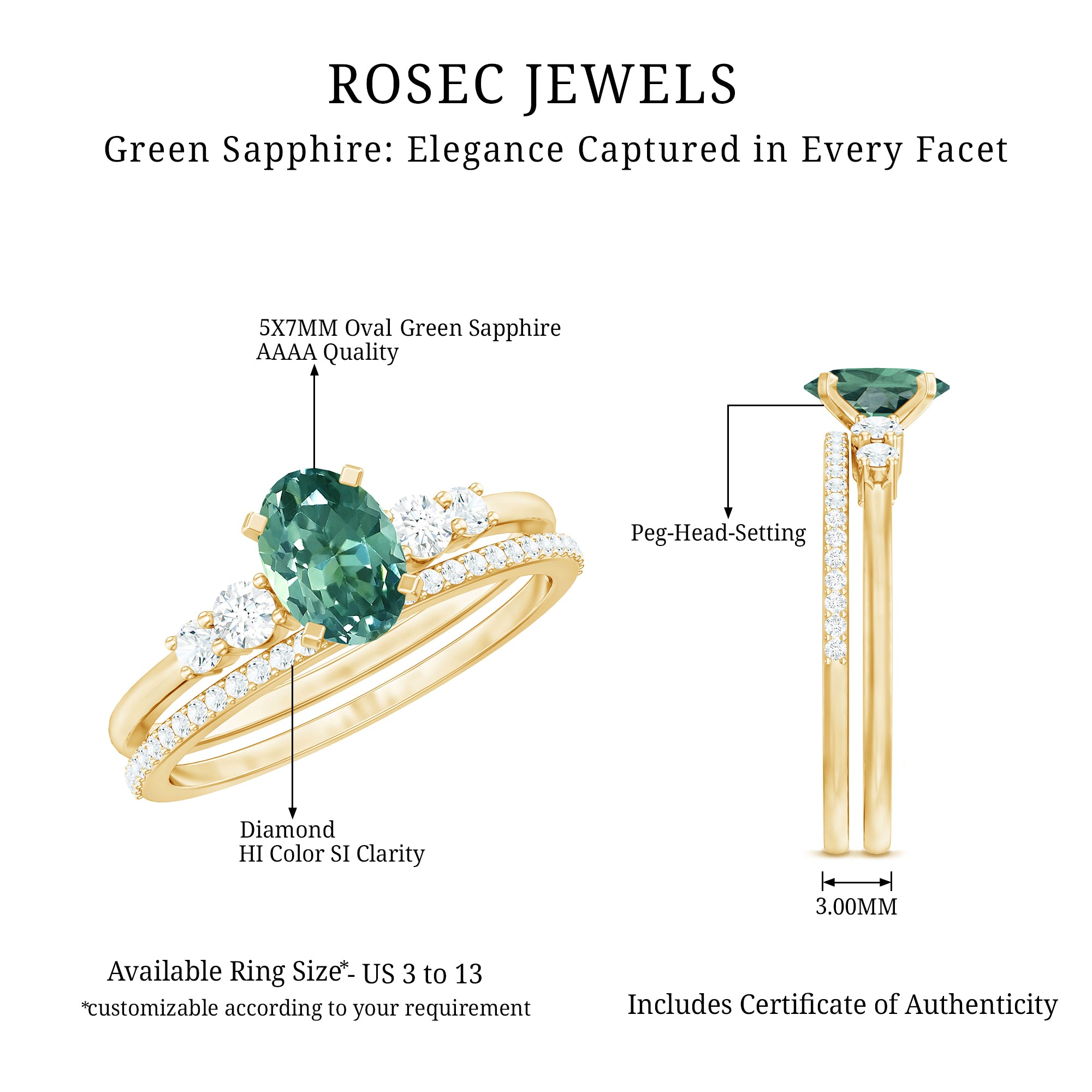 Exceptional Quality: Our Lab created green sapphire rings are crafted using high quality certified gemstones set in hallmarked metals. Each piece is handcrafted with precision to every finest detail.