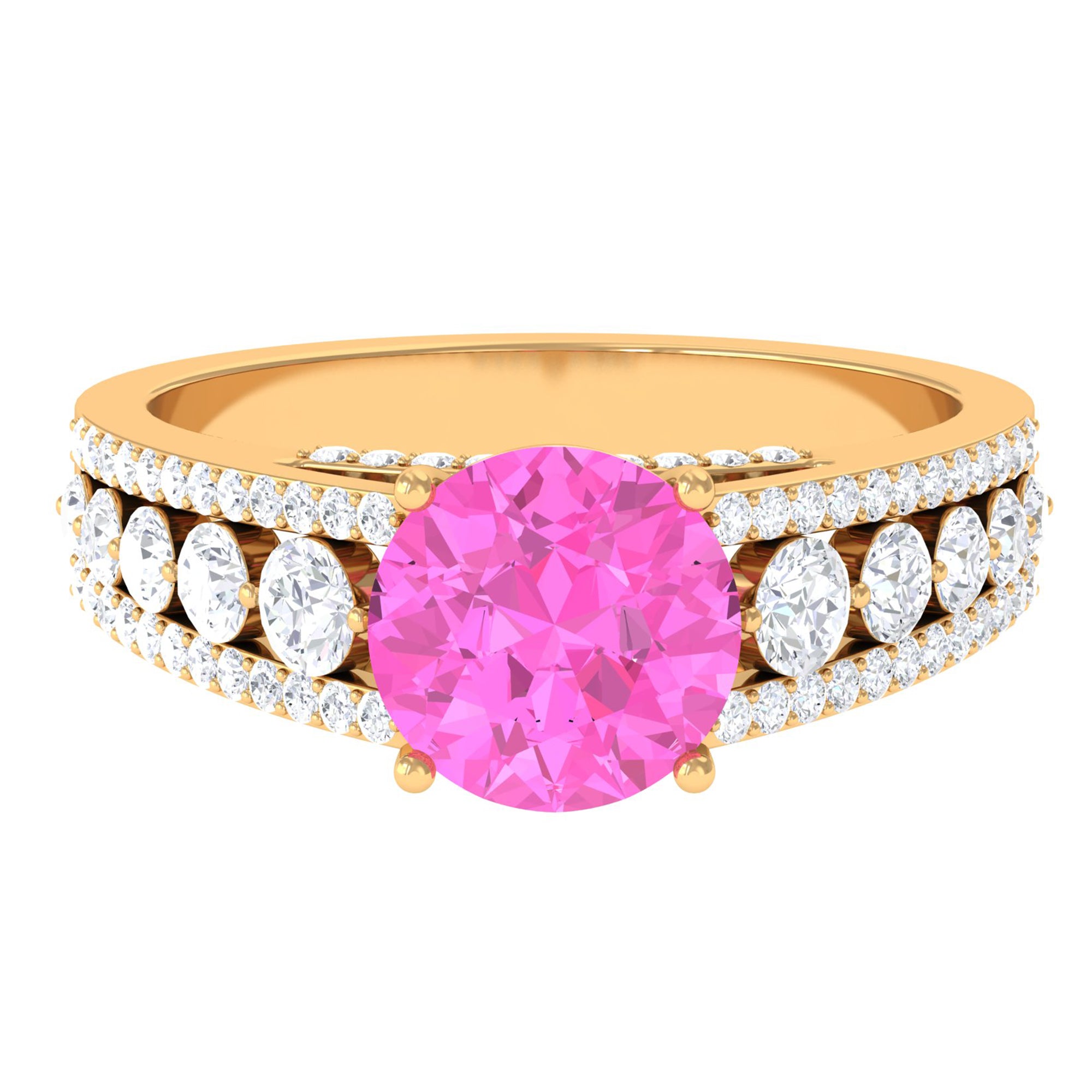 Lab created pink sapphire rings feature eco-friendly pink sapphire gems in different shapes and styles, making the heart of the design. These man made gemstones in the ring’s center are ethically sourced and identical to natural pink sapphire gemstones in every aspect, be it chemical, physical, or optical.