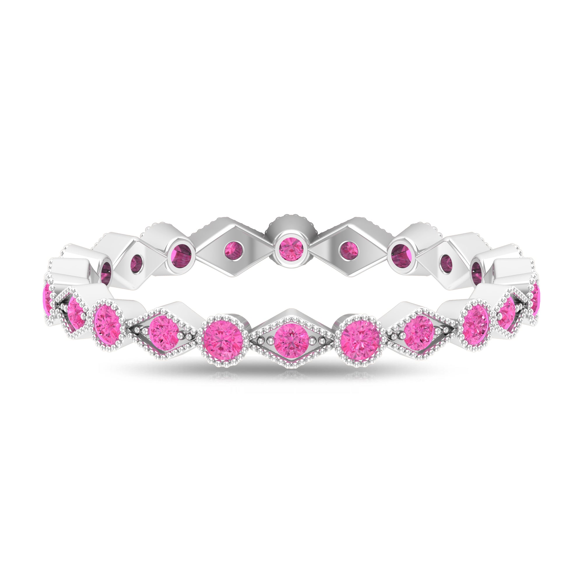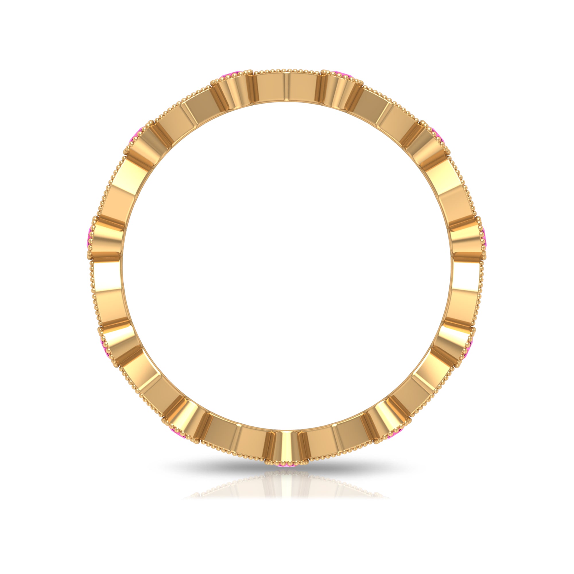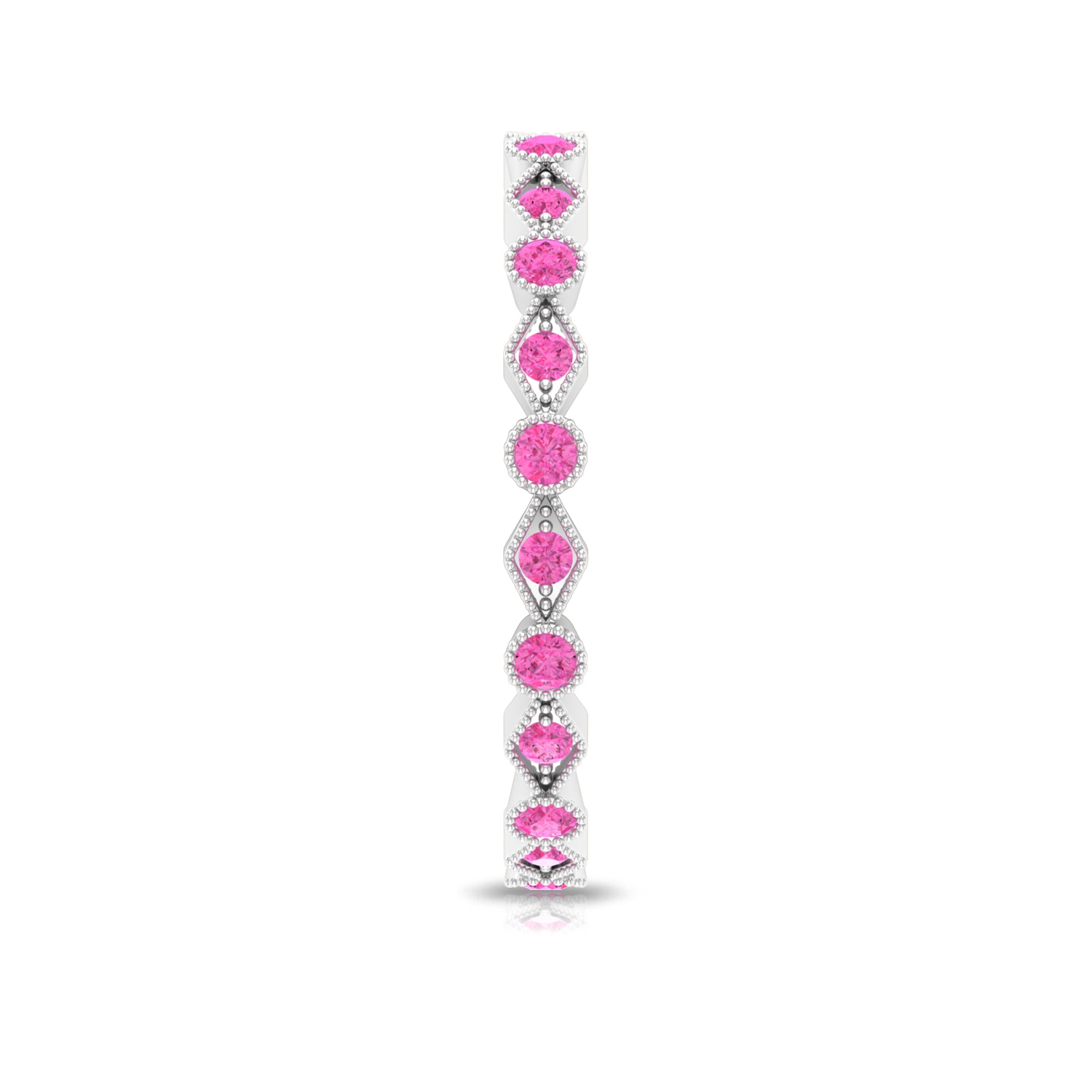 Beautiful lab pink sapphire gemstone with its soft and romantic color, offers a lovely touch to the ring. The delicate pink hue of these gems in various settings makes them a perfect gift for someone special.