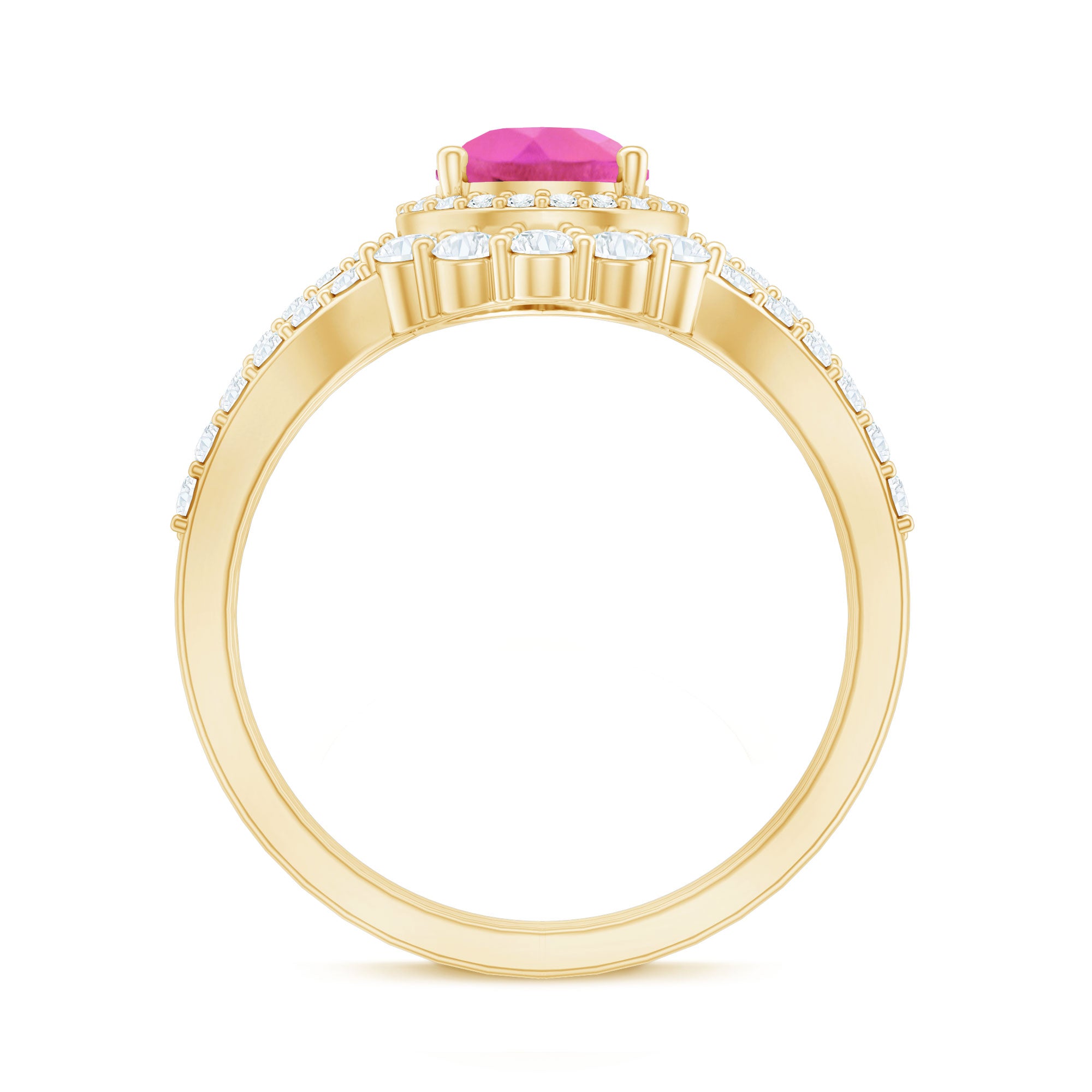 If you love classic ring pieces with a stylish touch then you must check our vintage inspired lab created pink sapphire rings in solitaire and halo styles. Different gemstone shapes and metal settings give each piece a unique story to tell.