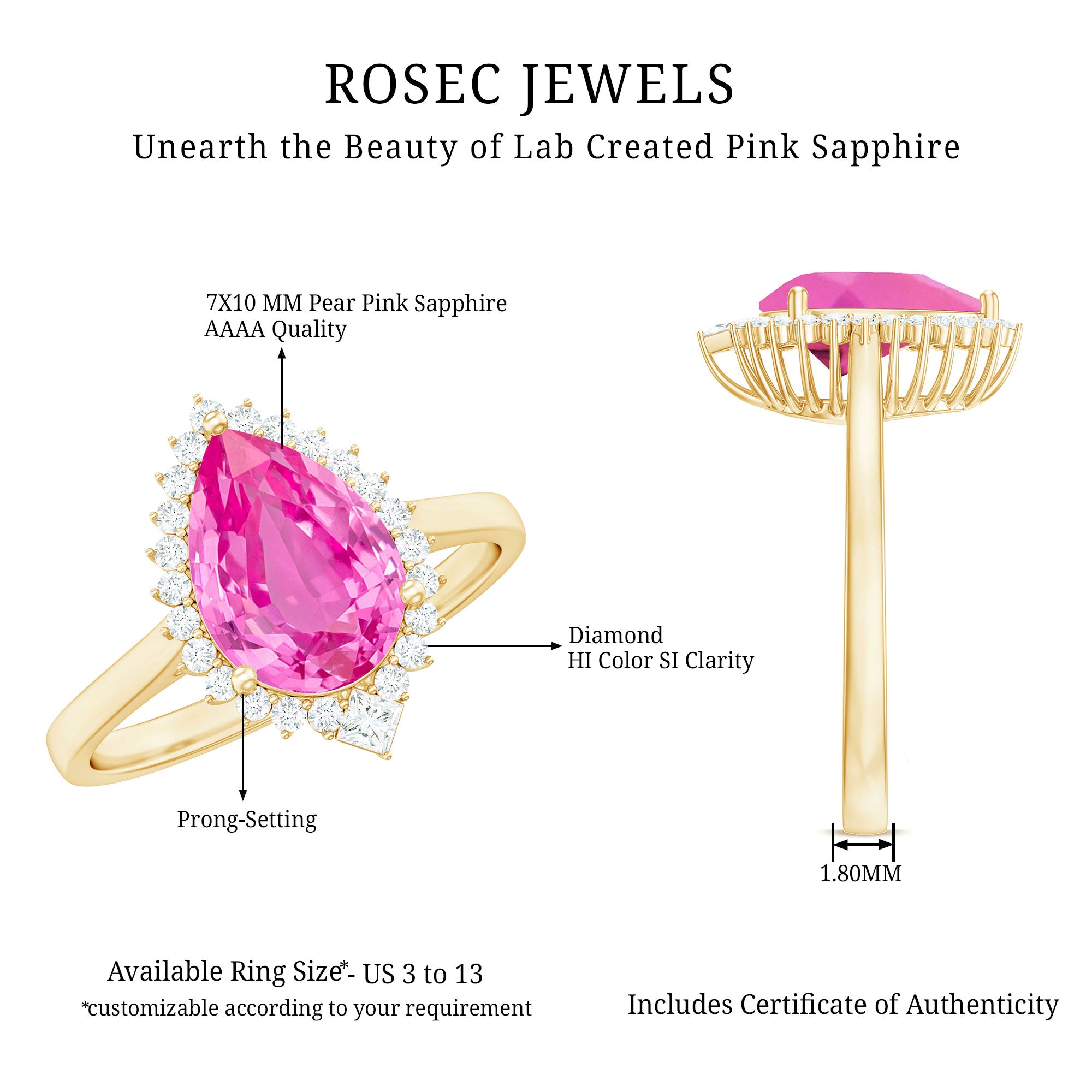 Lab created pink sapphire engagement rings and wedding rings are special jewel pieces that allow you to embrace luxury without compromising. Trending gemstone shapes are accentuated with other precious or semi-precious stones, transforming these designs into future heirloom jewels.