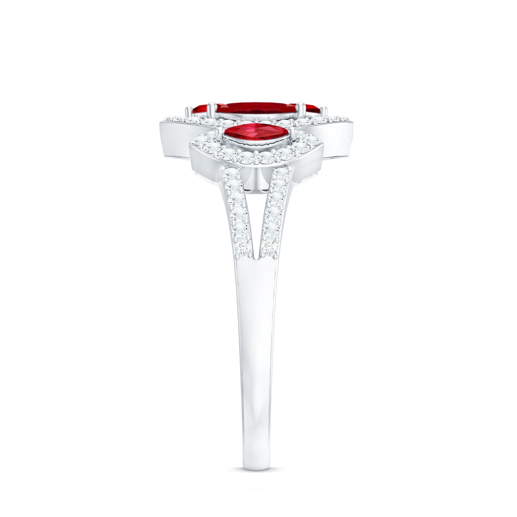 Use this page for bridal/proposal designs. For everyday ruby rings, promise rings, or stacking bands, shop our main ruby rings hub for the broadest selection.
