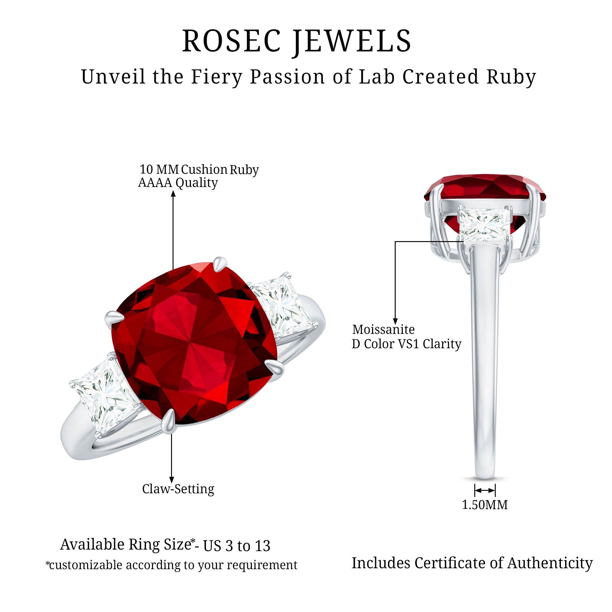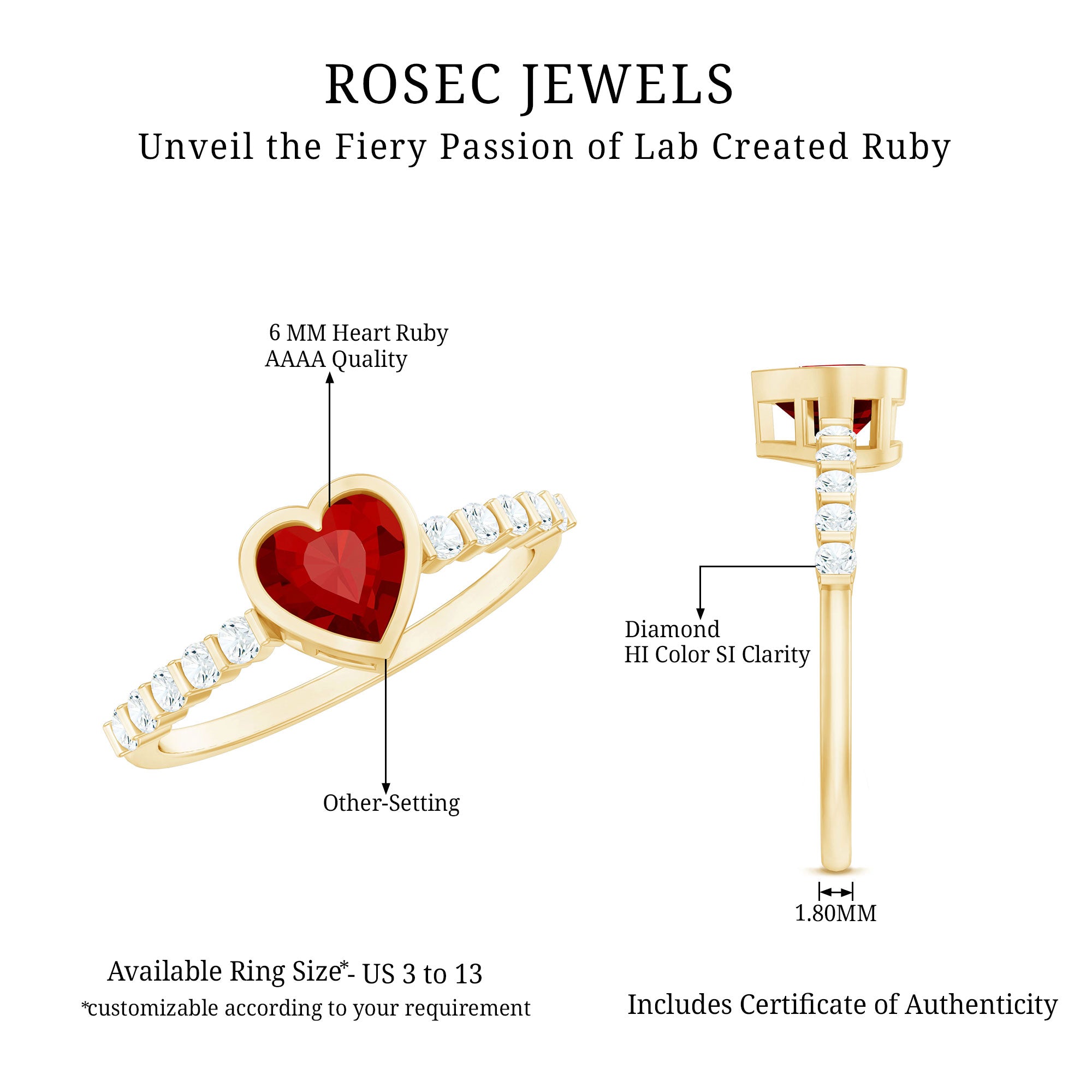 - Daily-wear durability: Ruby ranks 9 on the Mohs scale (excellent for engagement rings).