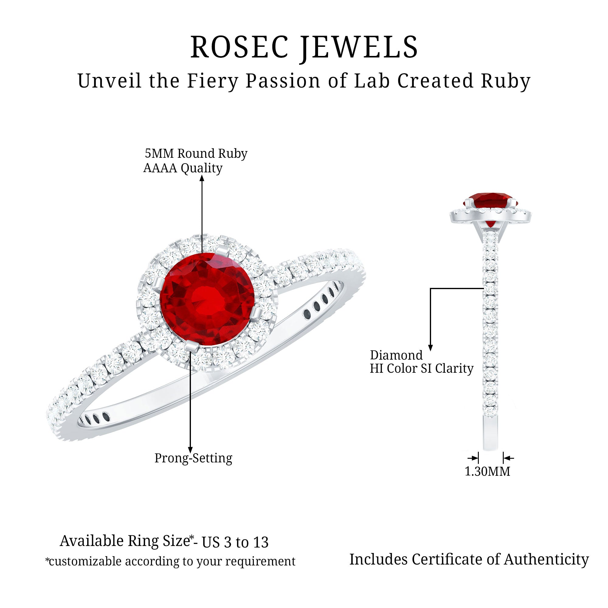 • Daily-wear durability: Ruby ranks 9 on the Mohs scale (excellent for engagement rings).
