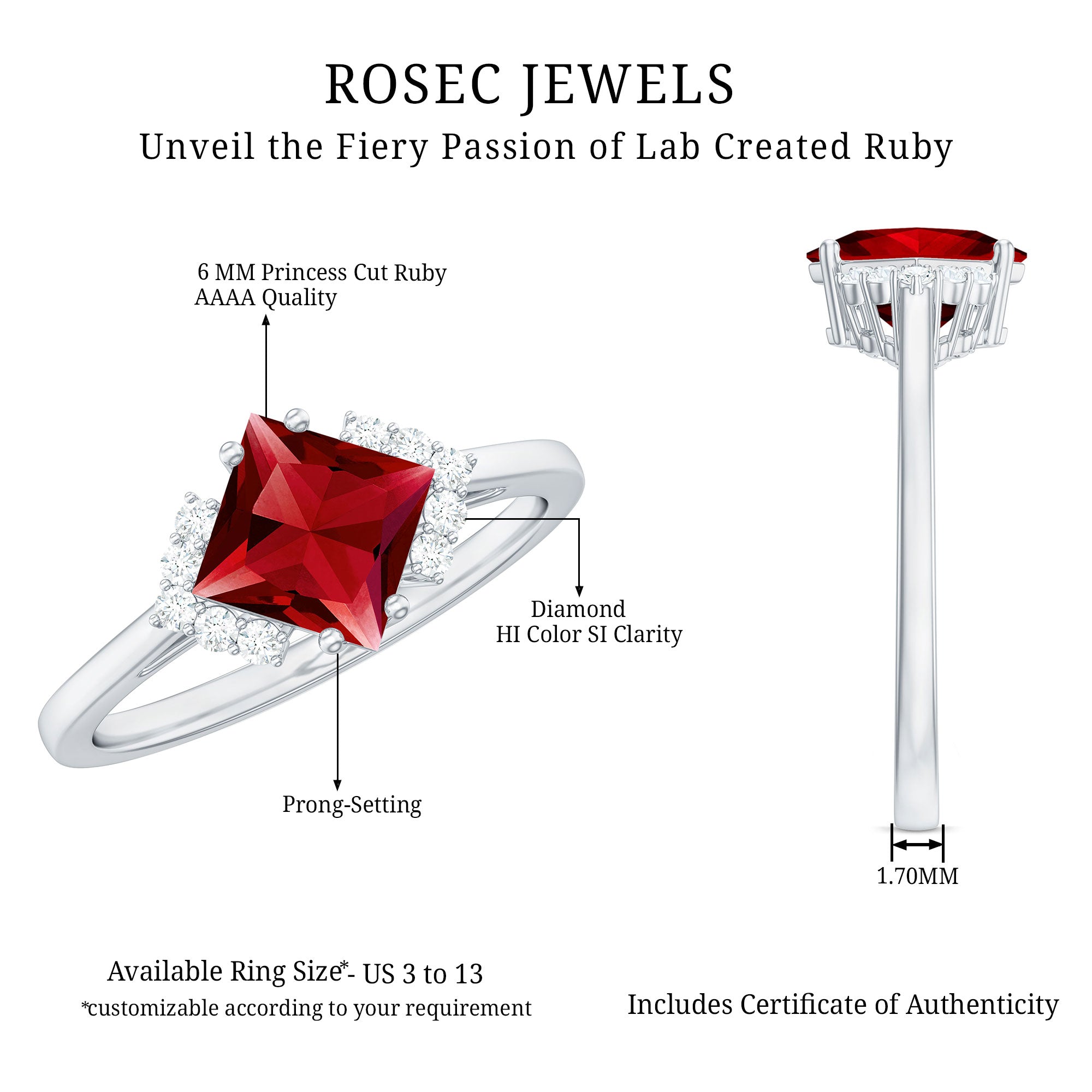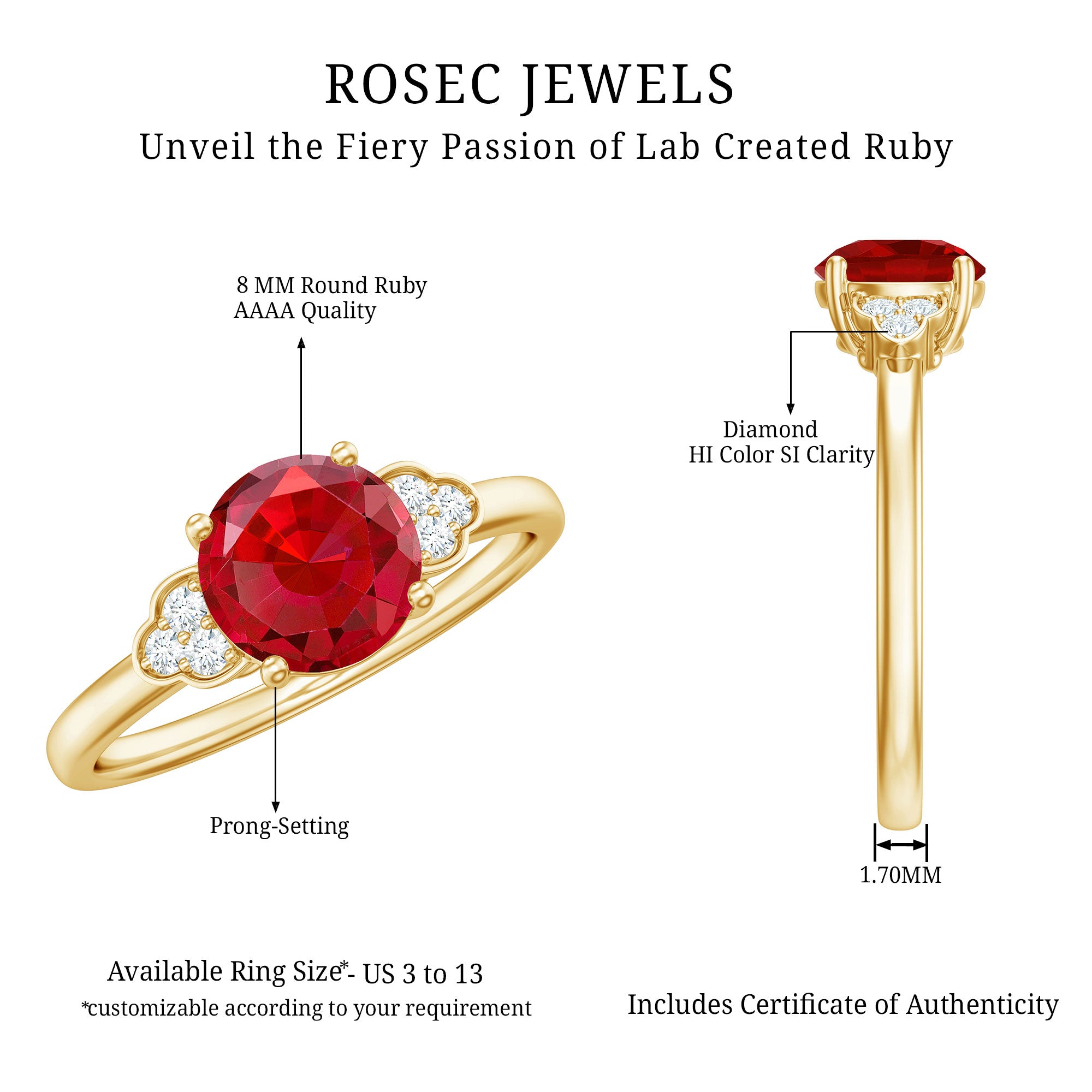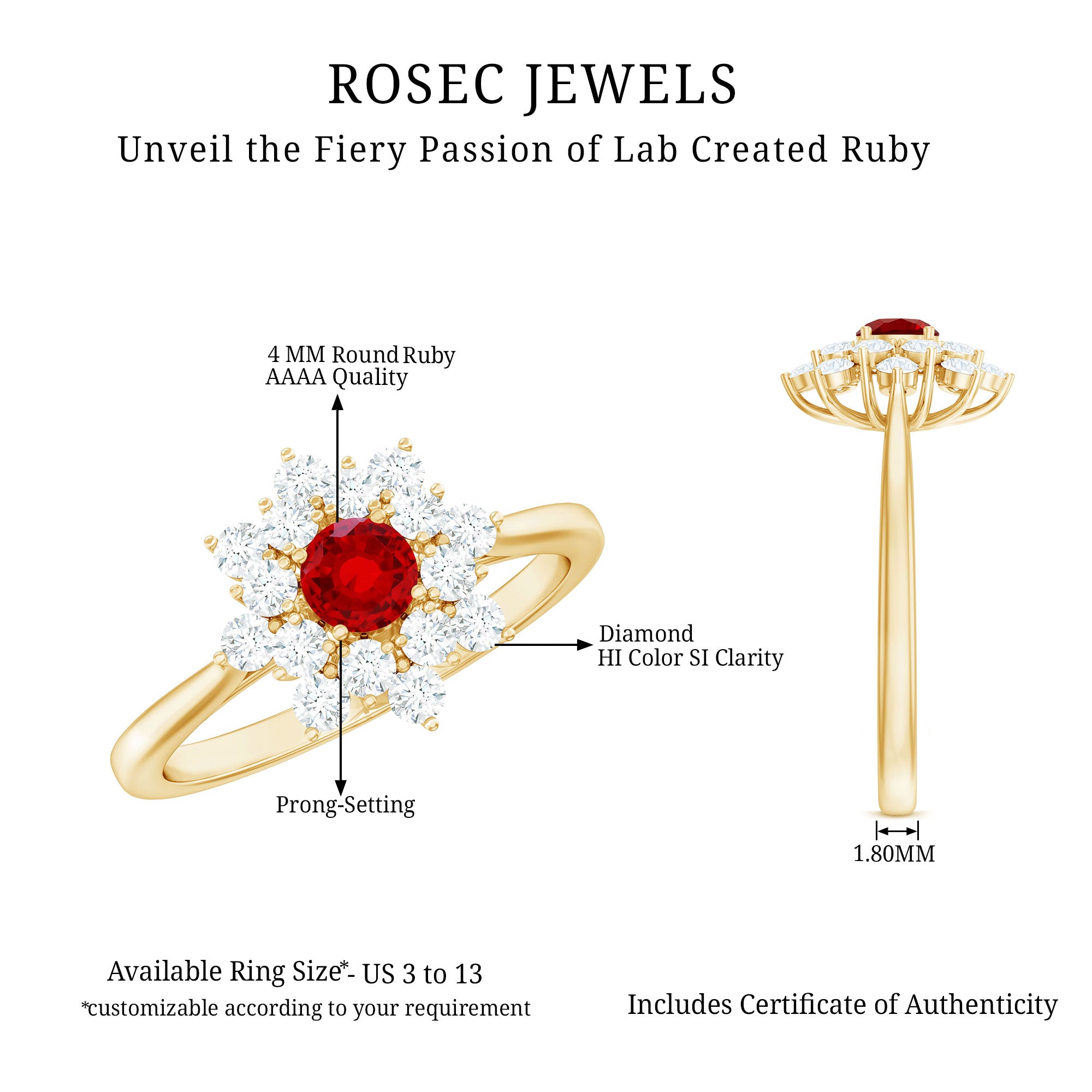 - Daily-wear durability: Ruby ranks 9 on the Mohs scale (excellent for engagement rings).