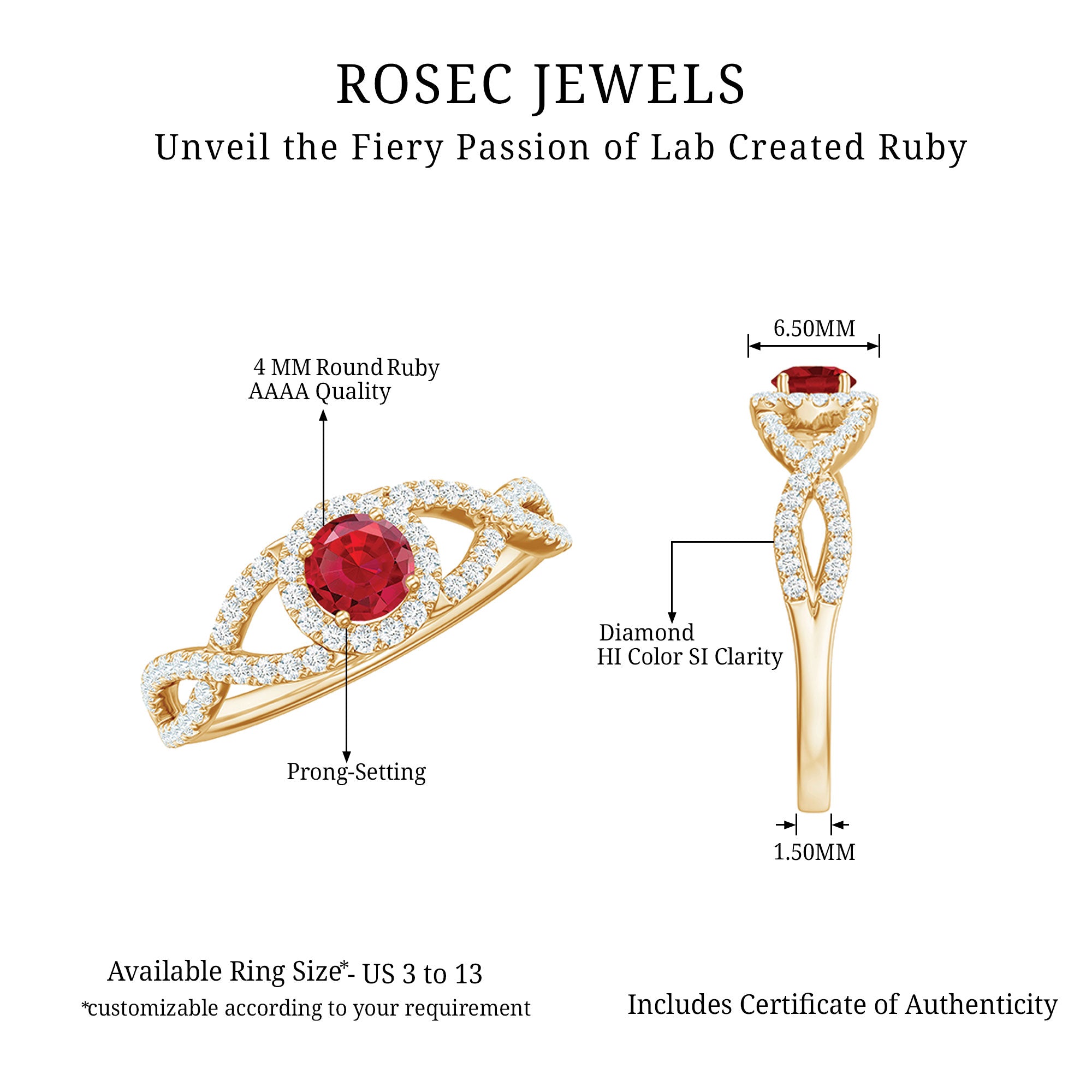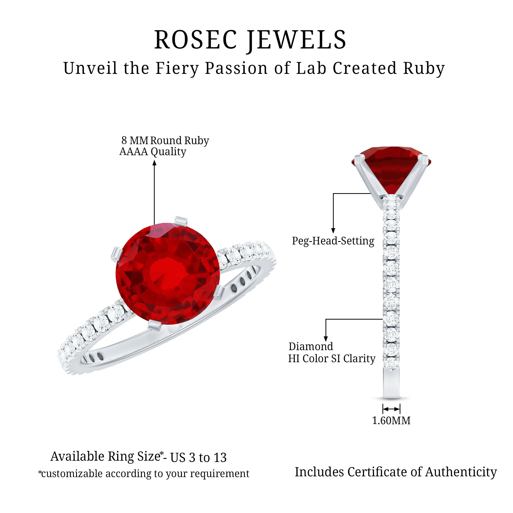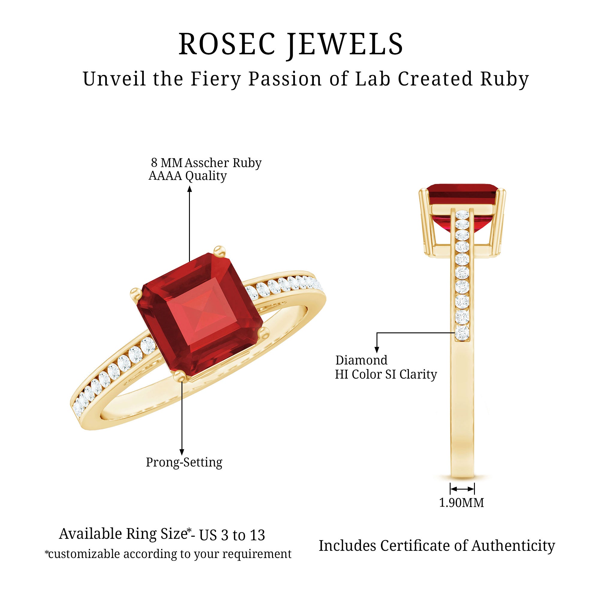 - Daily-wear durability: Ruby ranks 9 on the Mohs scale (excellent for engagement rings).