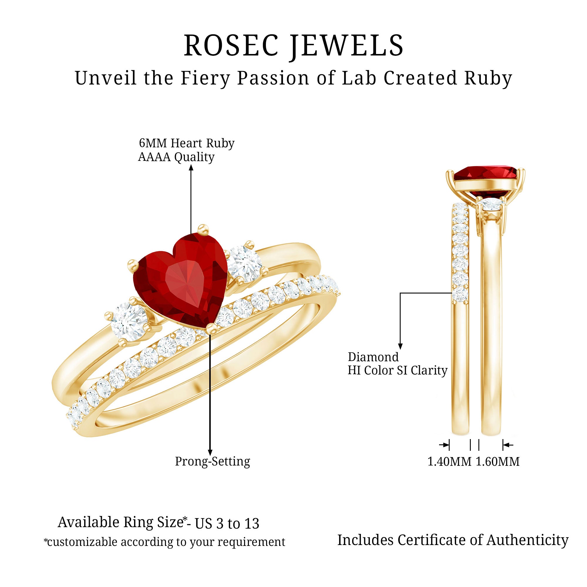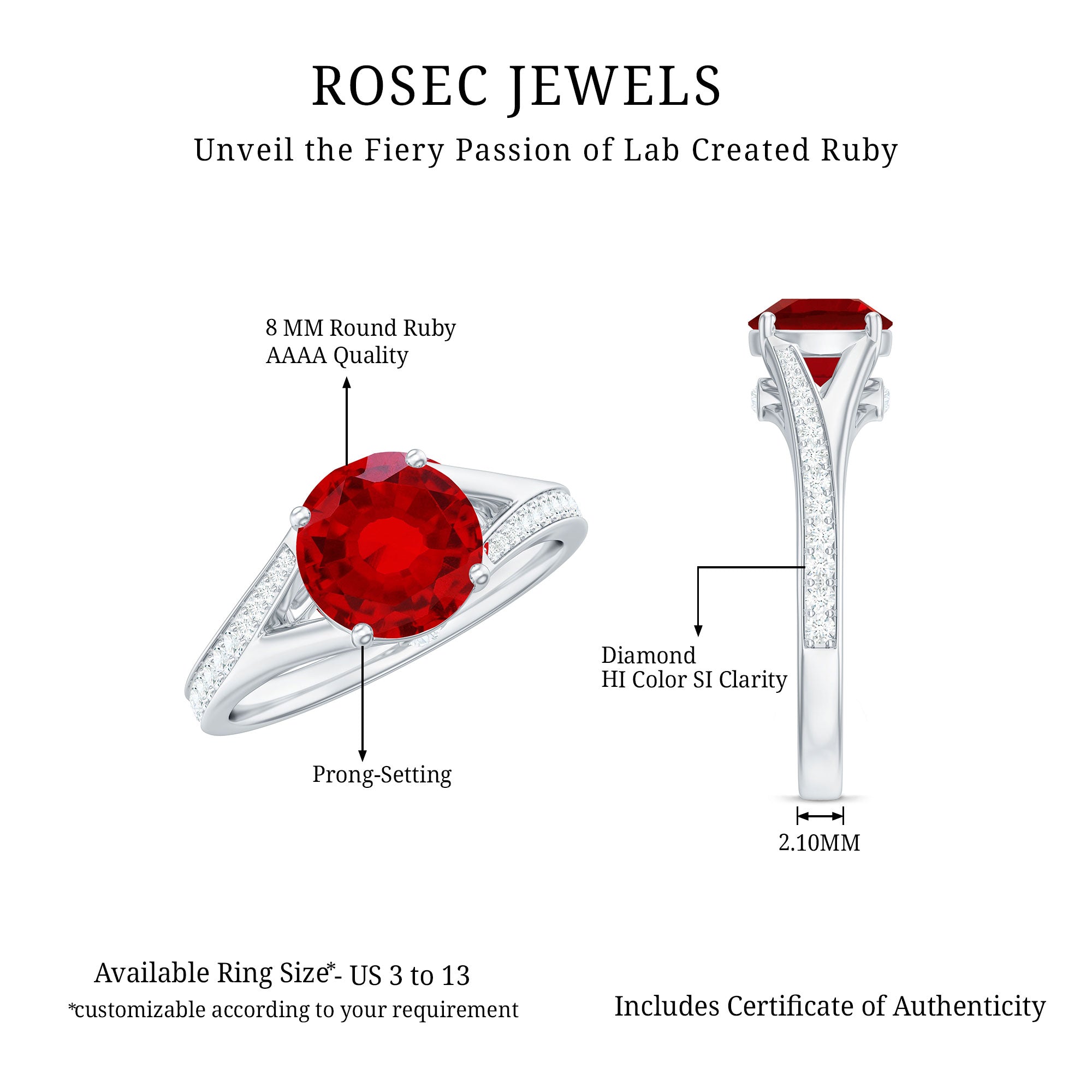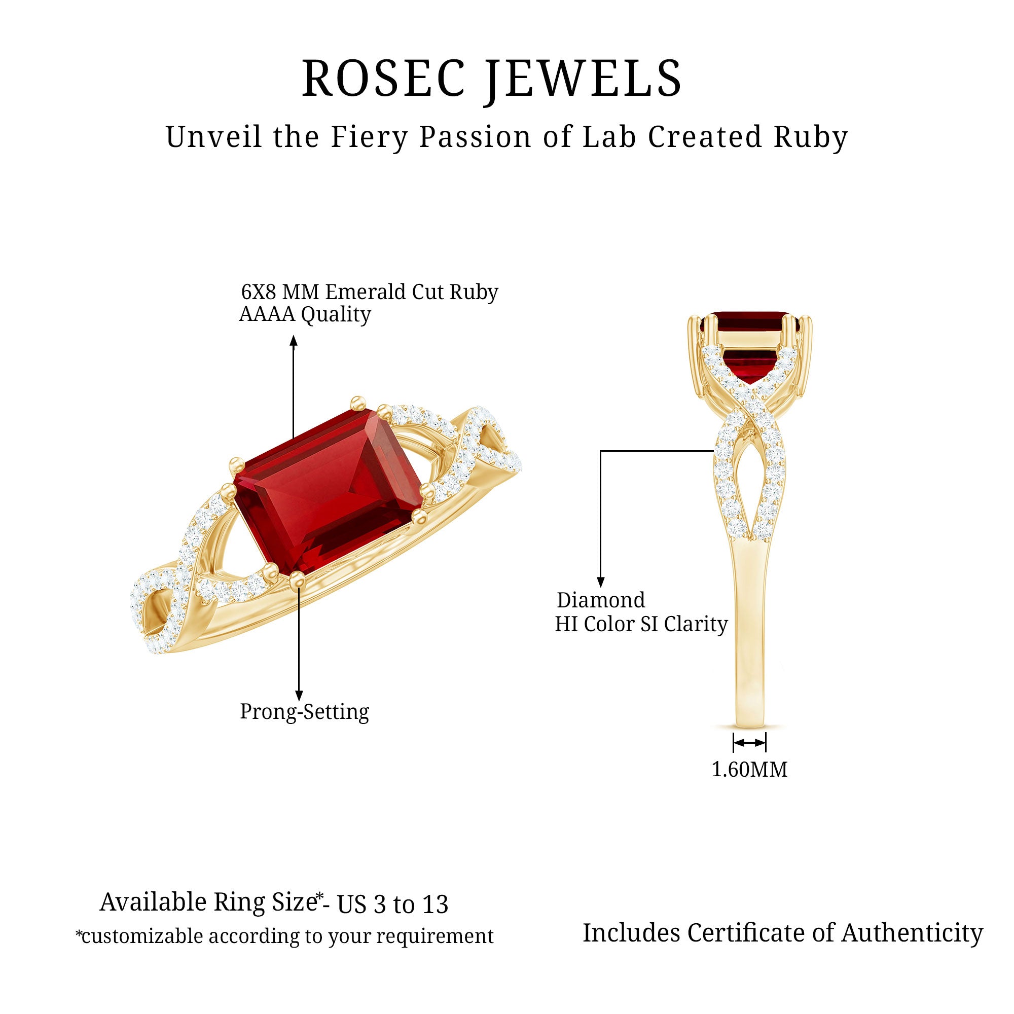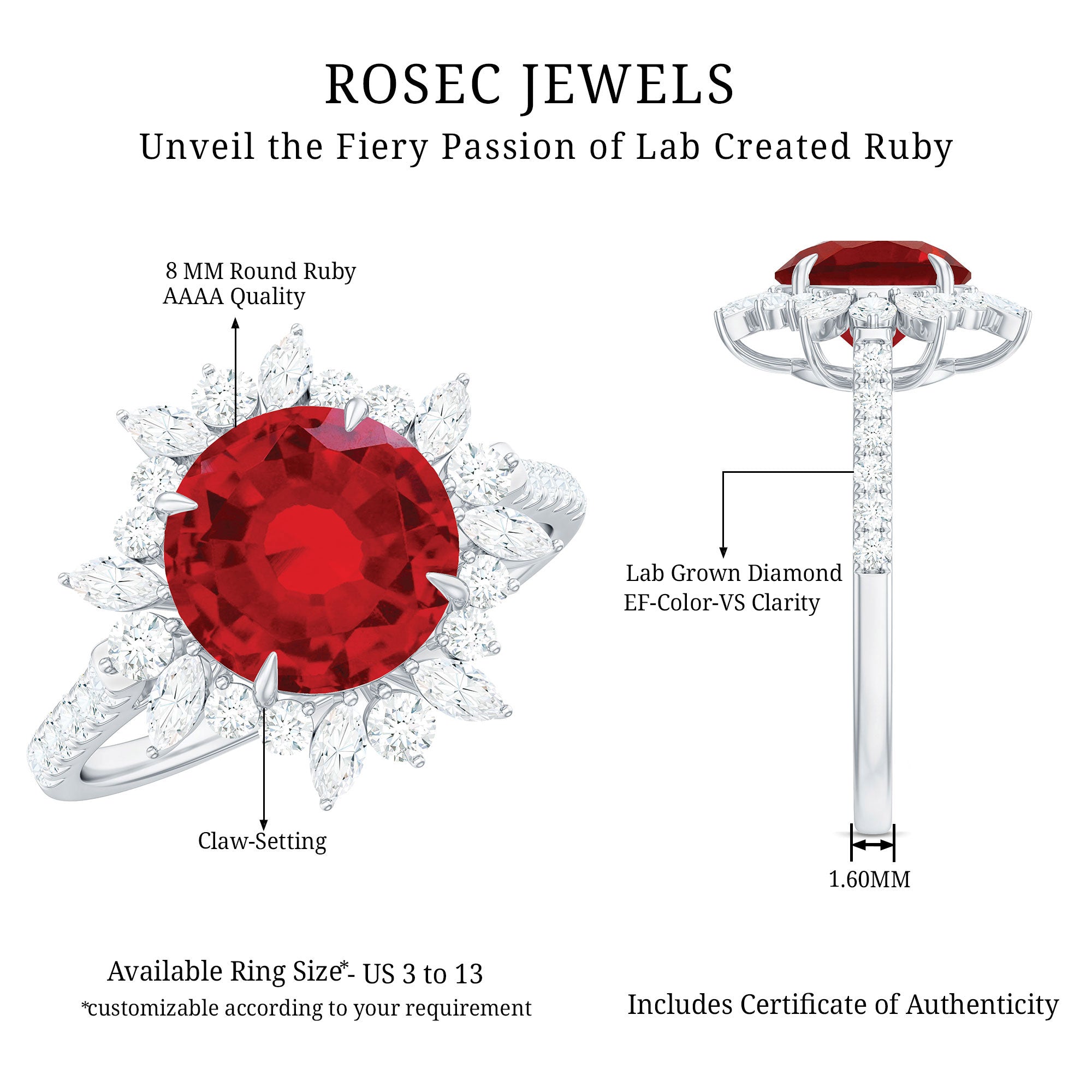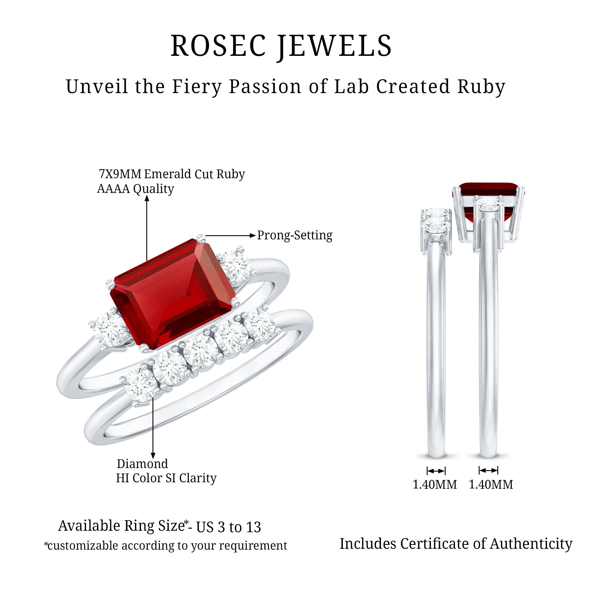 • Durable rings for everyday wear: Lab grown rubies are durable (9 on the Mohs scale), which ensures that your ring besides holding sentimental value is a good option for daily wear too.