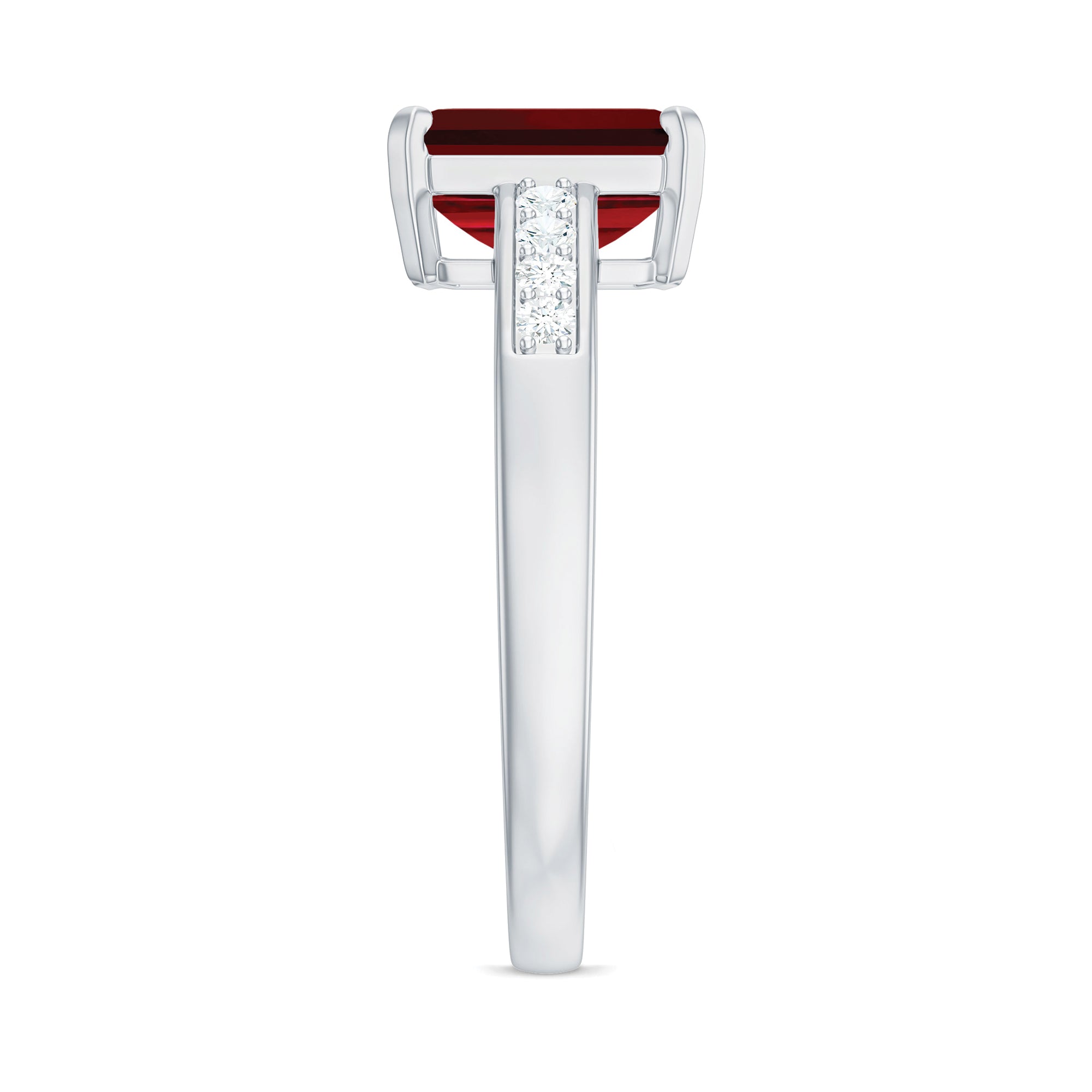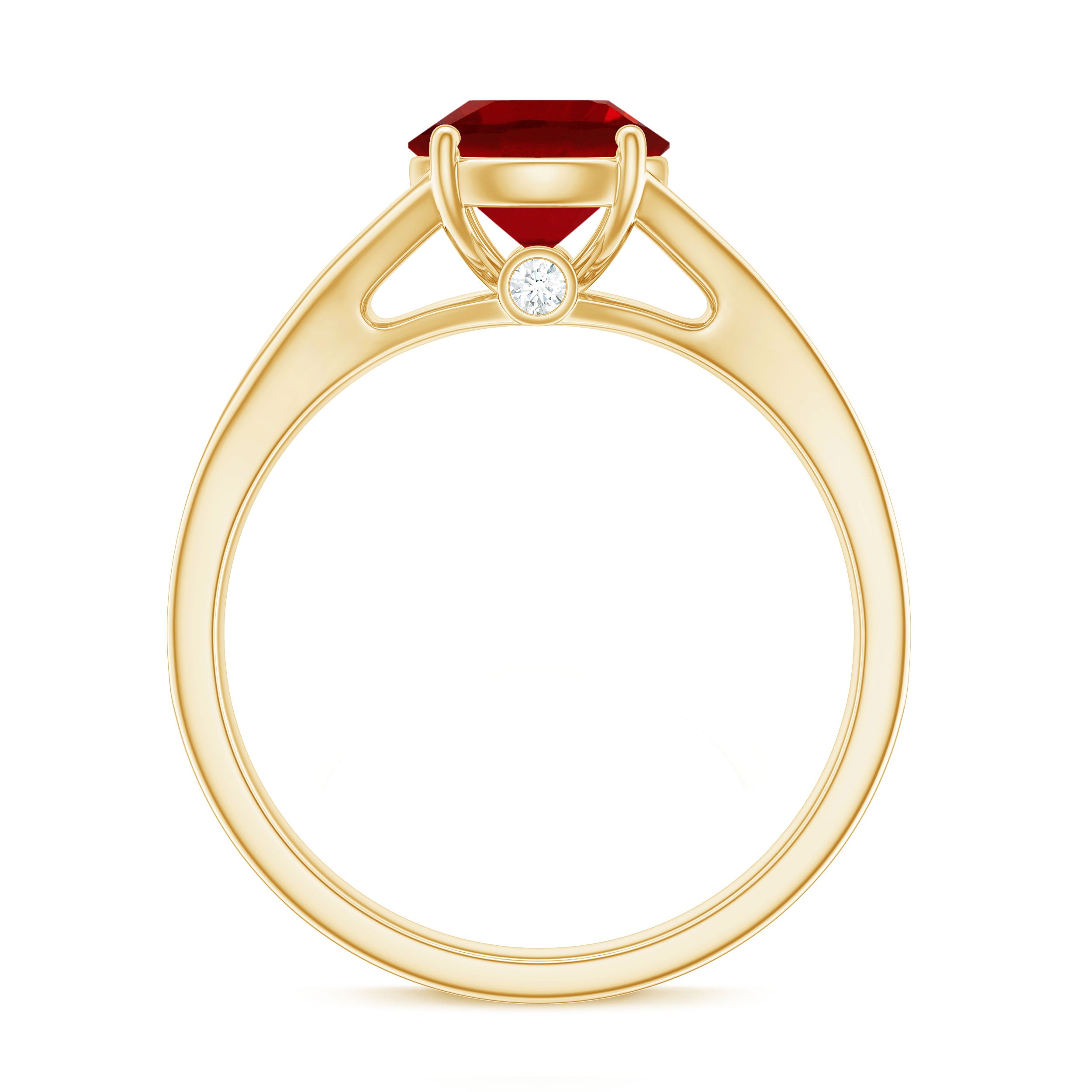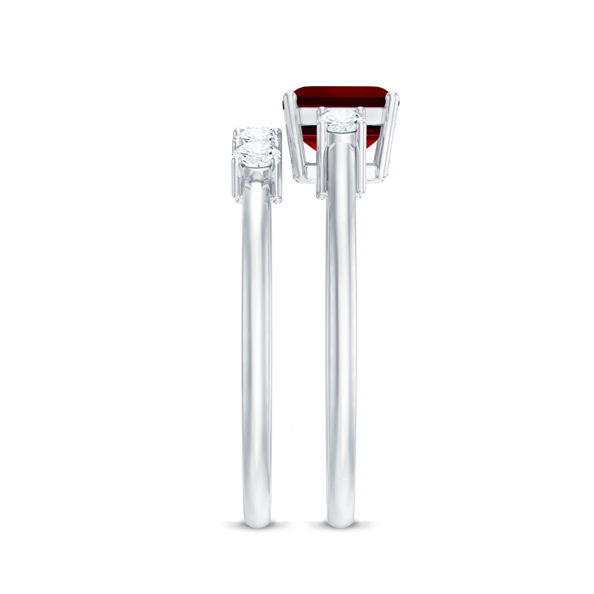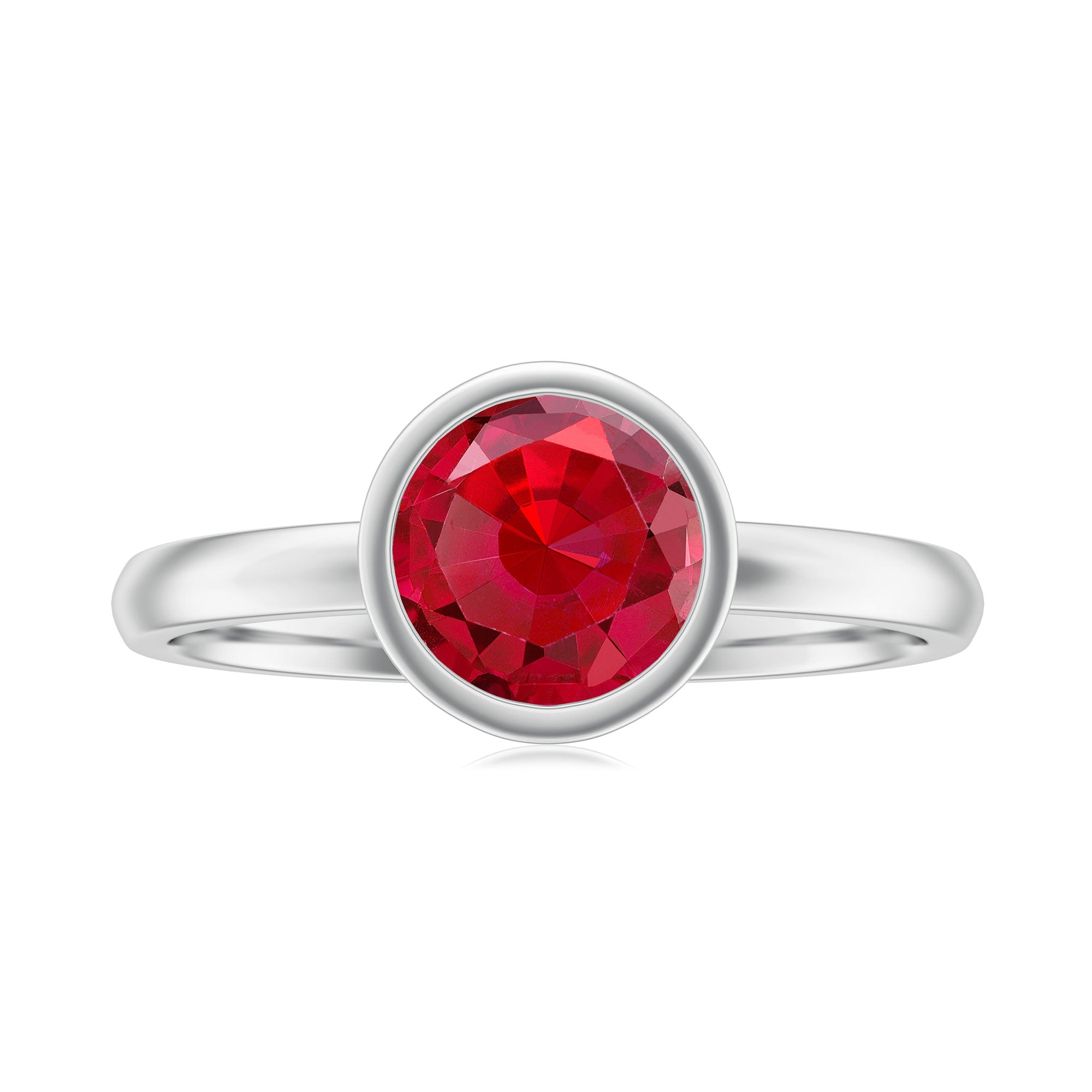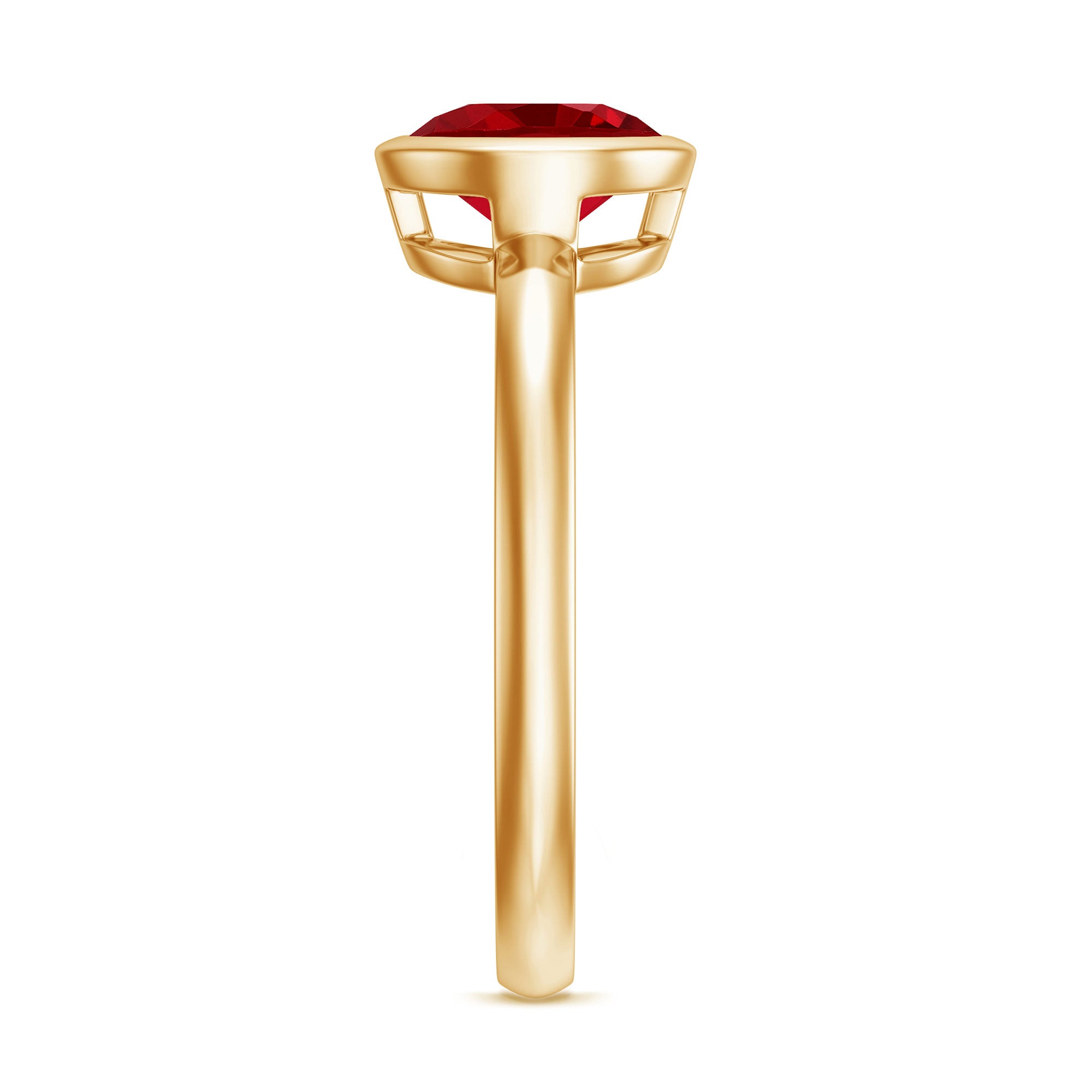 1. Solitaire Ruby Rings: Featuring a single stunning lab-grown ruby in the center in different shapes like classic round, oval to trending emerald and princess cut. The ruby gemstone is solely responsible for the beauty of the ring, no other stones or distractions, just pure, elegance of a solitaire.