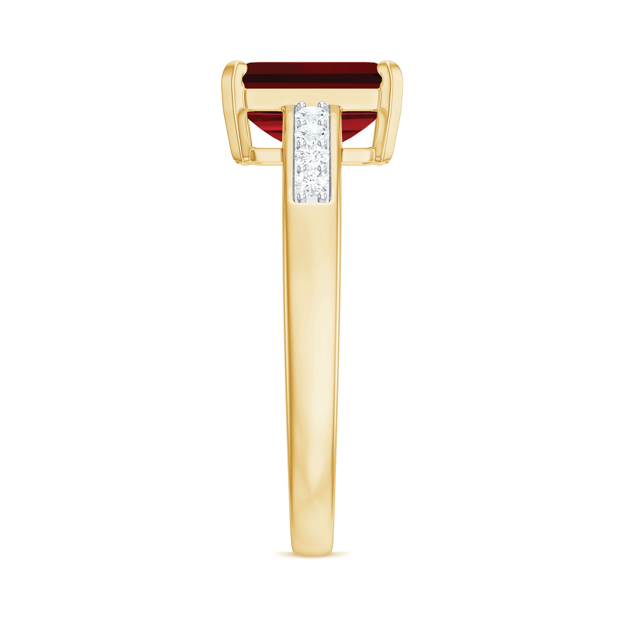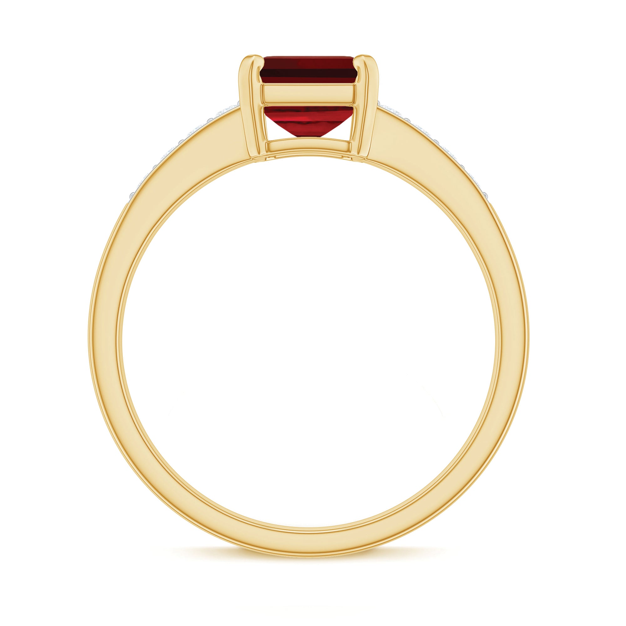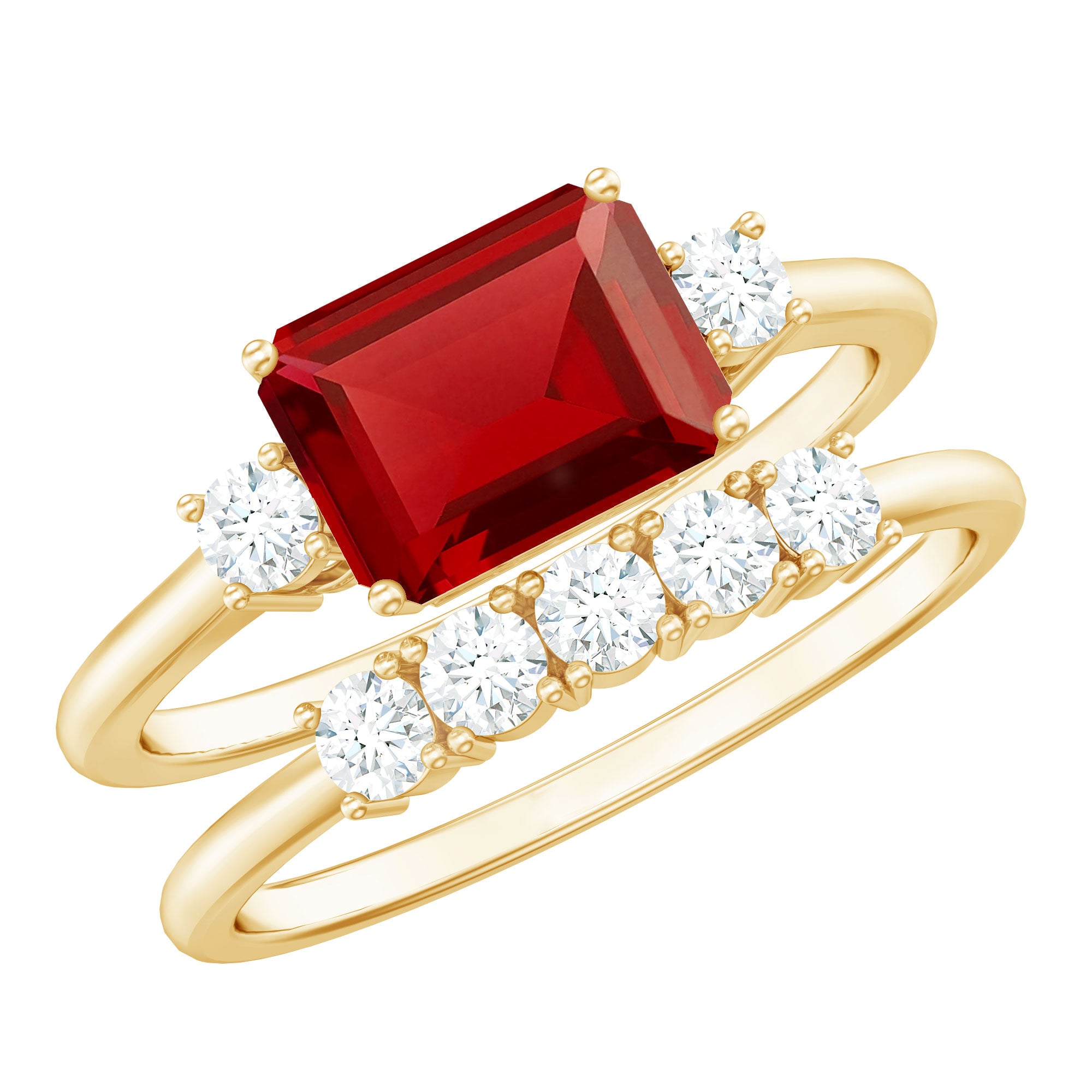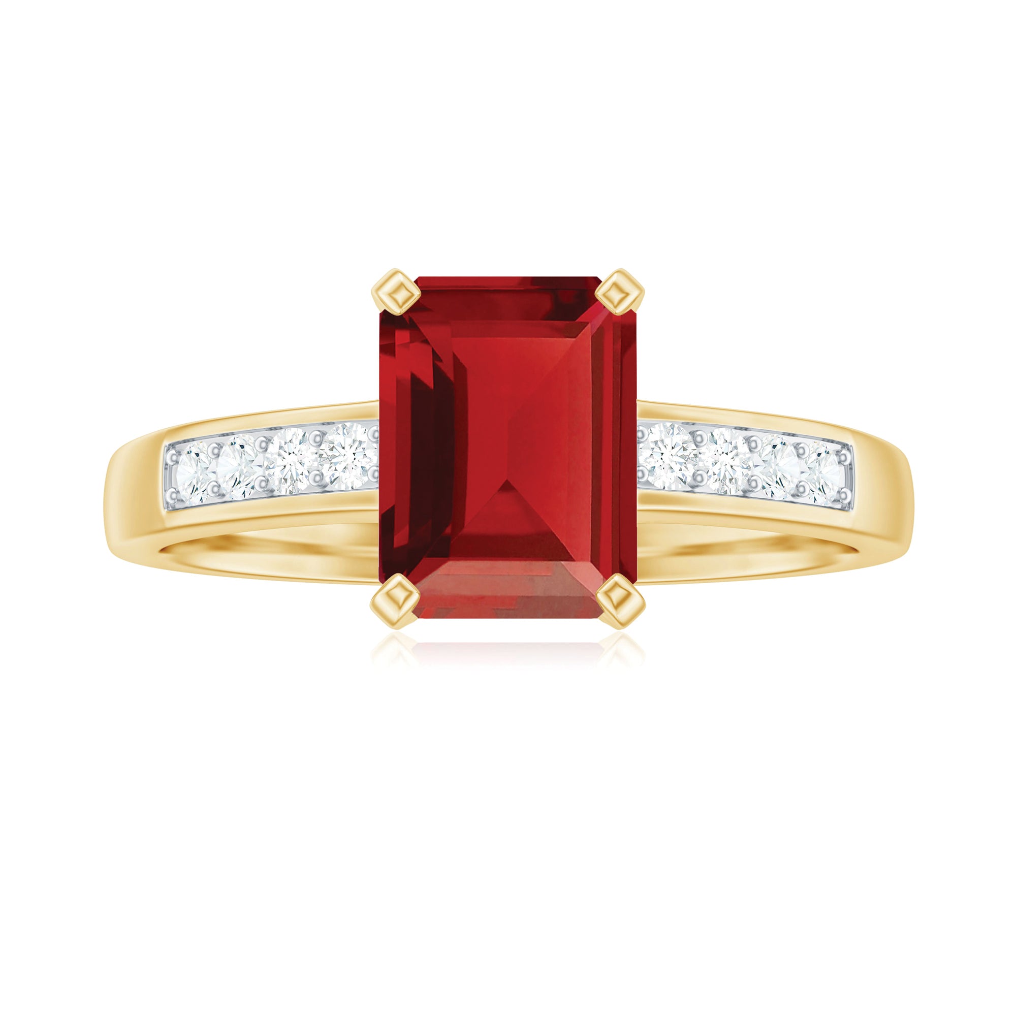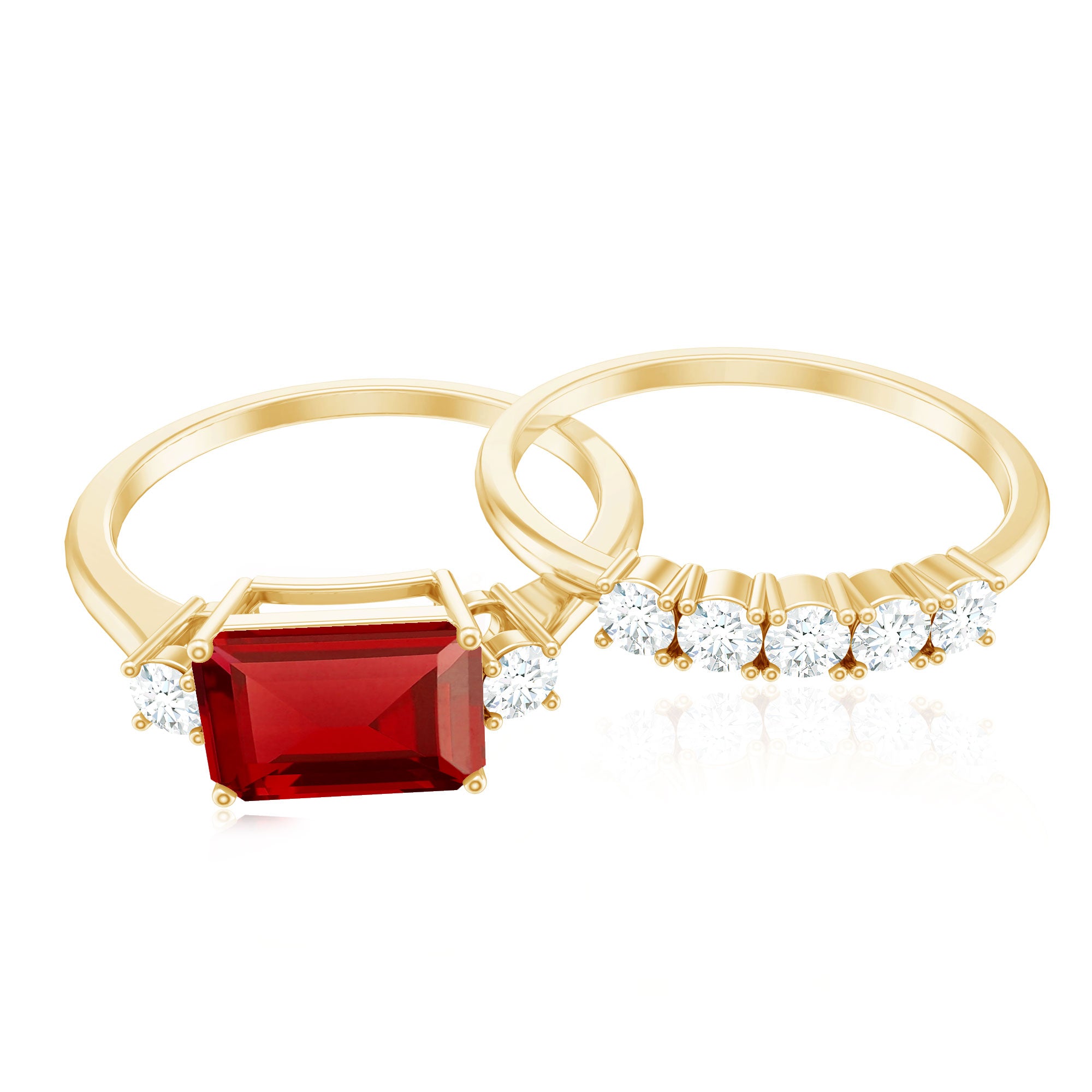 1. Solitaire Ruby Rings: Featuring a single stunning lab-grown ruby in the center in different shapes like classic round, oval to trending emerald and princess cut. The ruby gemstone is solely responsible for the beauty of the ring, no other stones or distractions, just pure, elegance of a solitaire.