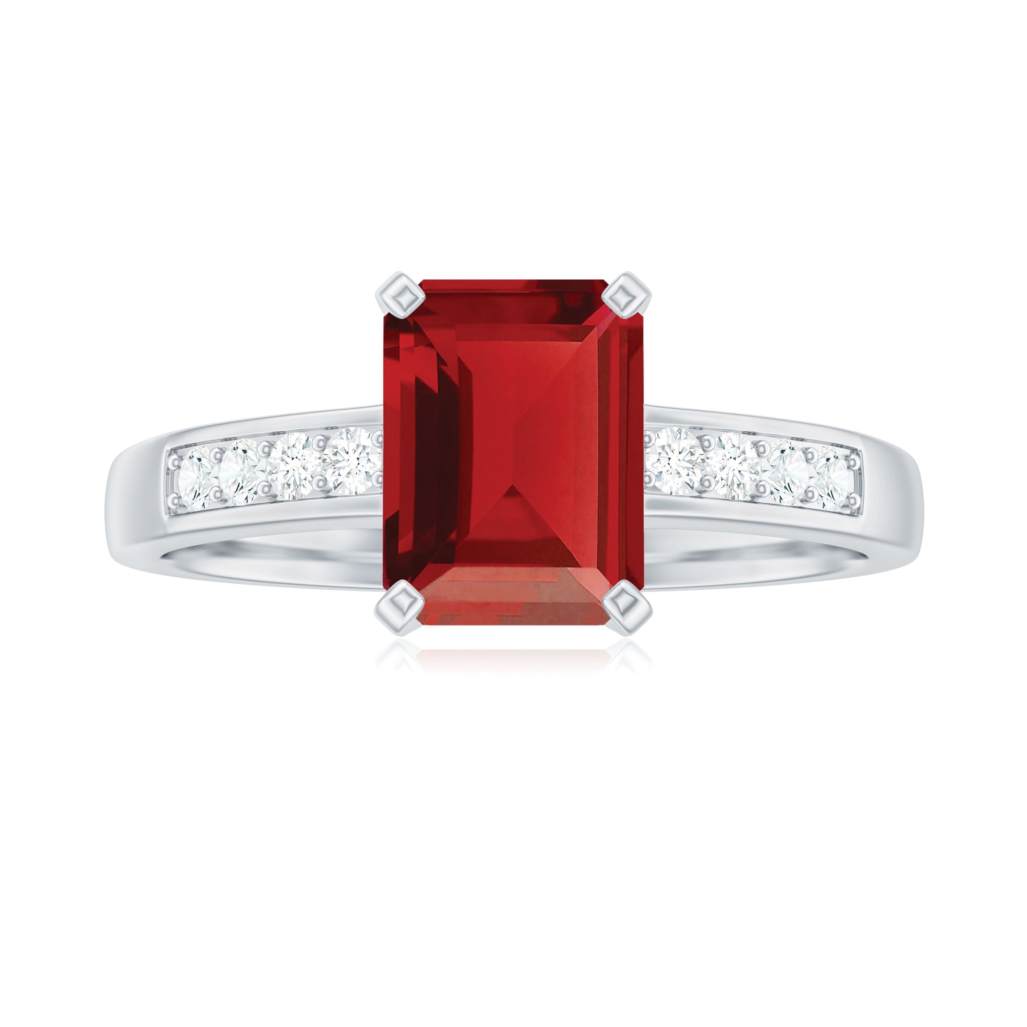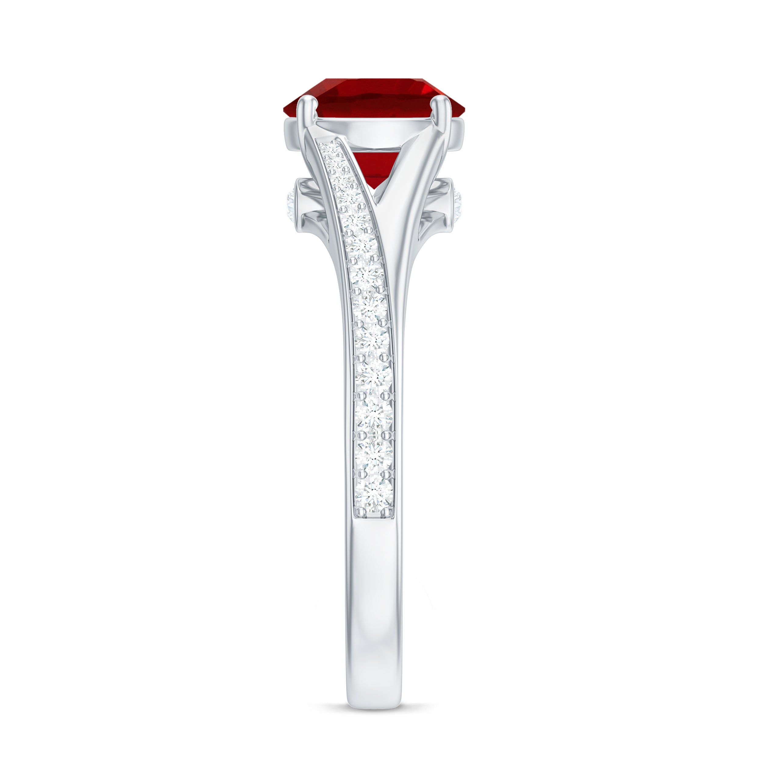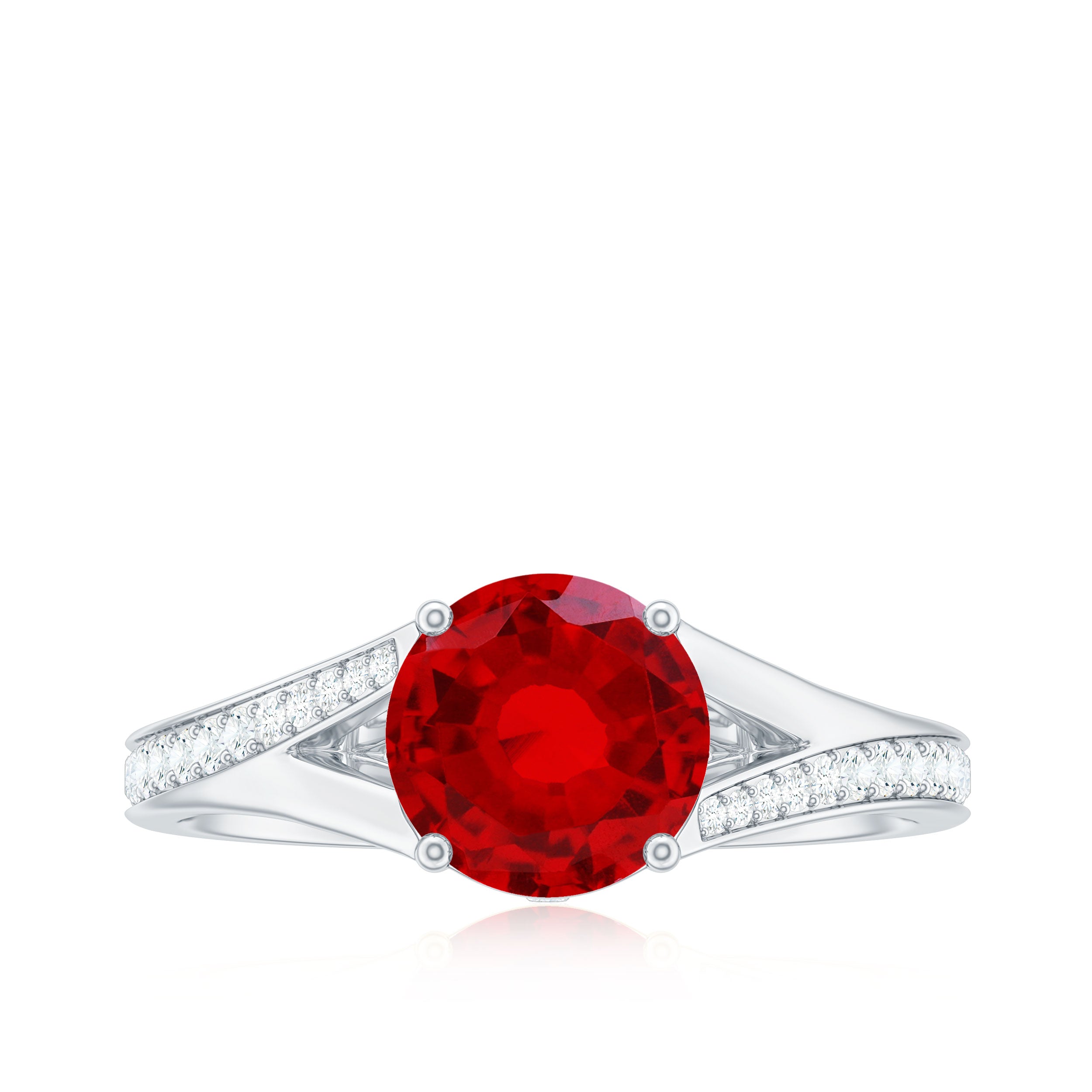 The vivid, deep red color is very popular for its rich, intense hue and clarity in lab ruby engagement rings.
