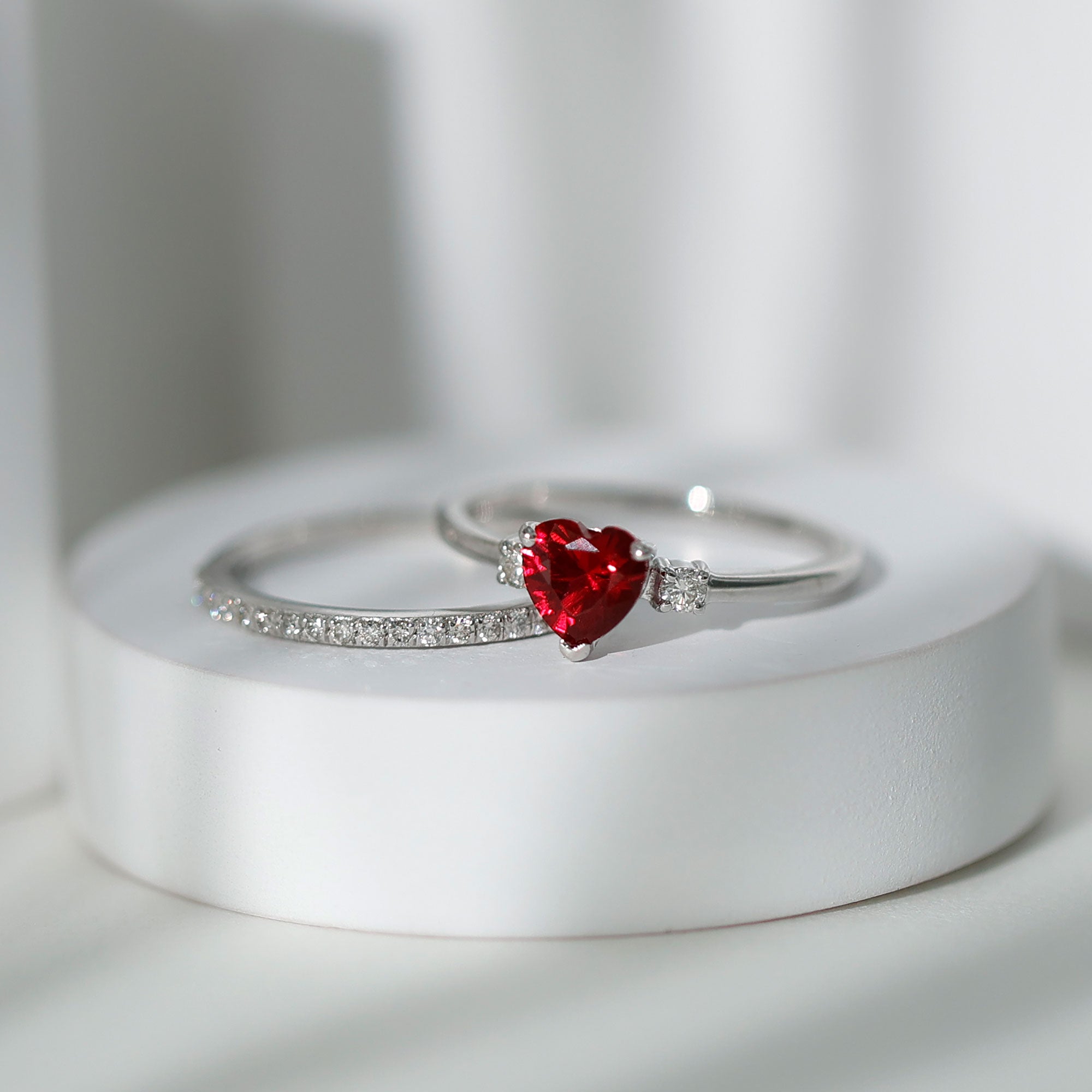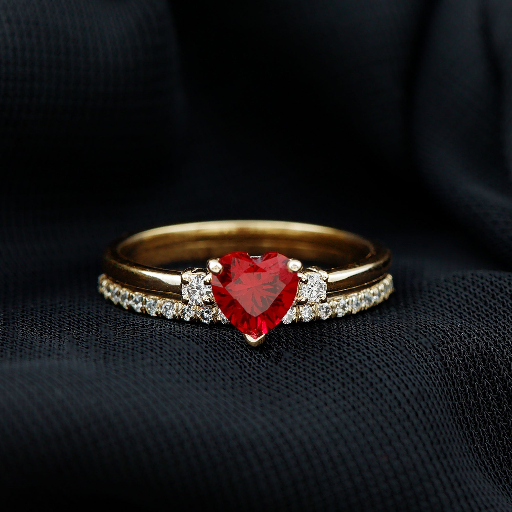 4. Heart Ruby Engagement Rings: Heart shaped ruby rings express your deep love and emotional connection. Crafted with prongs or protected by halo, your heart in ruby rings shines at its best with romance in every glance.