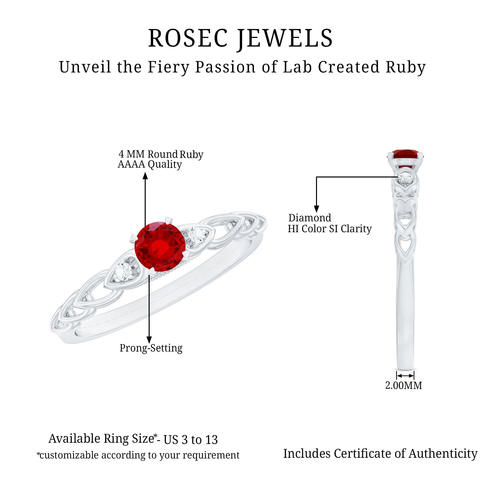 Vintage Inspired Rings: Capture the romance of bygone eras with intricate designs featuring lab-grown rubies. In the selection of vintage-style rings, you will find designs with milgrain detailing and filigree. These often include ancient flower motifs and geometric patterns. These features enhance the beauty of lab-grown rubies.