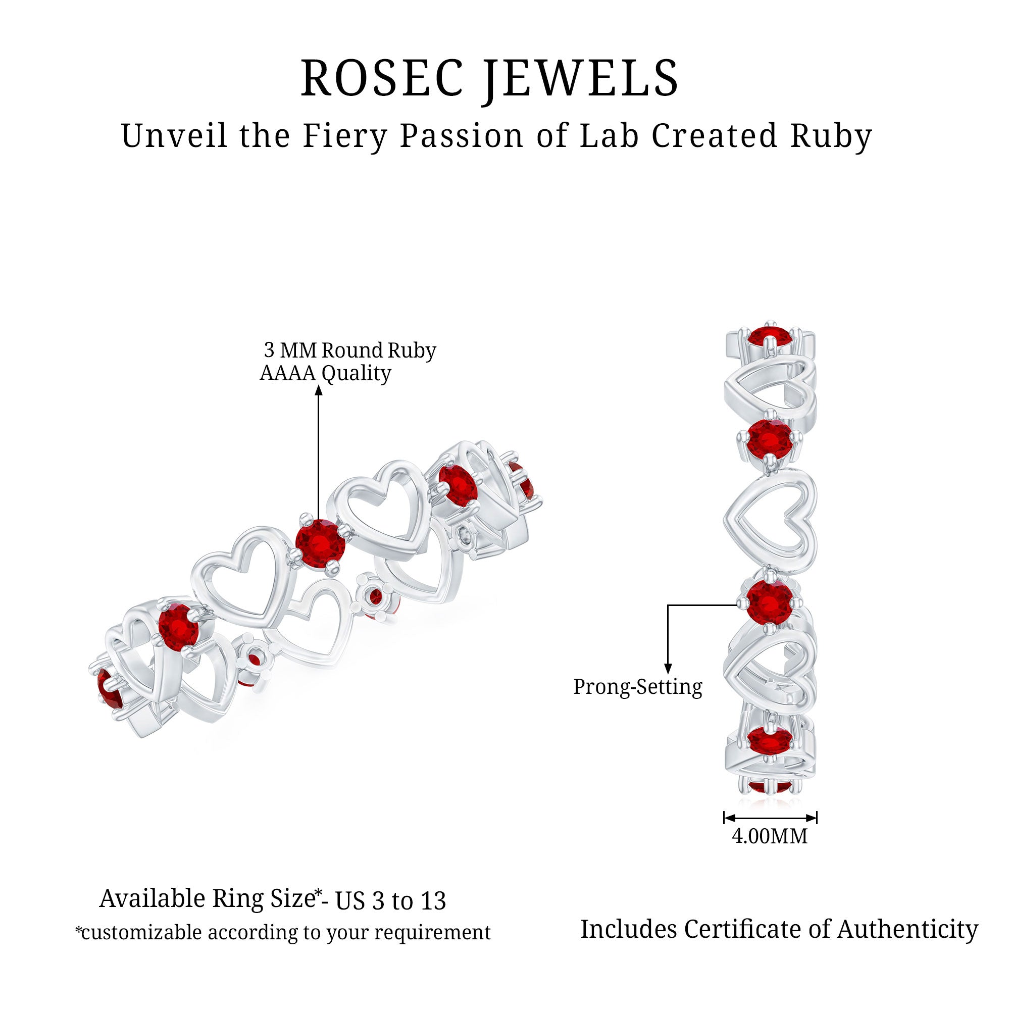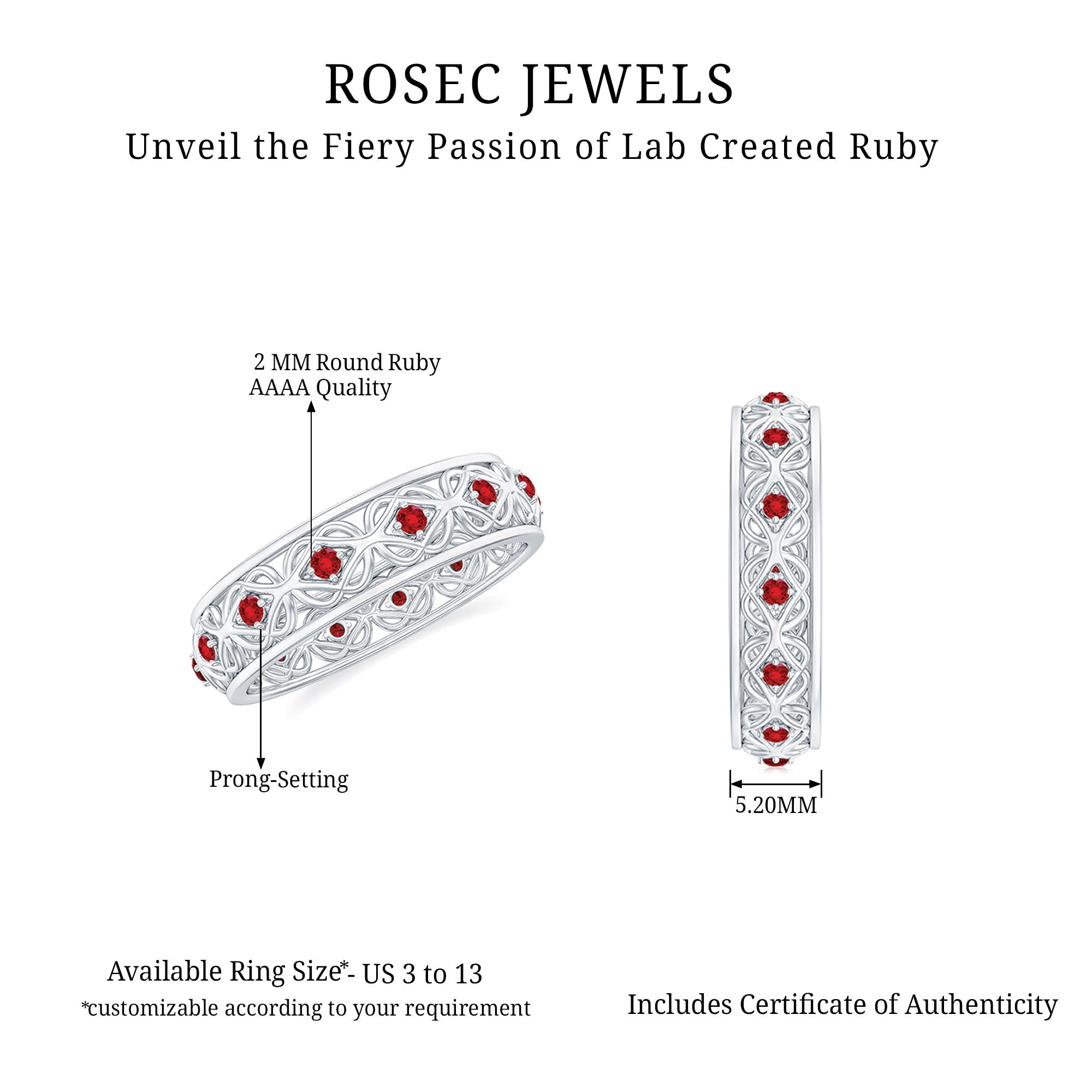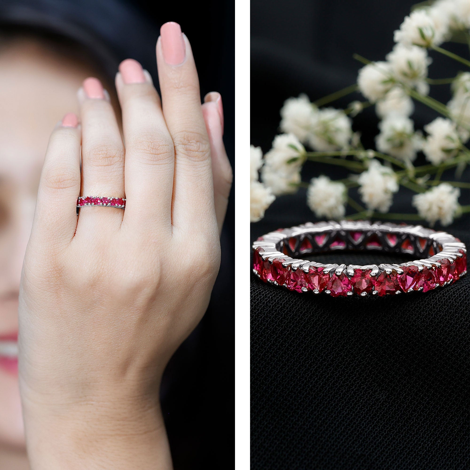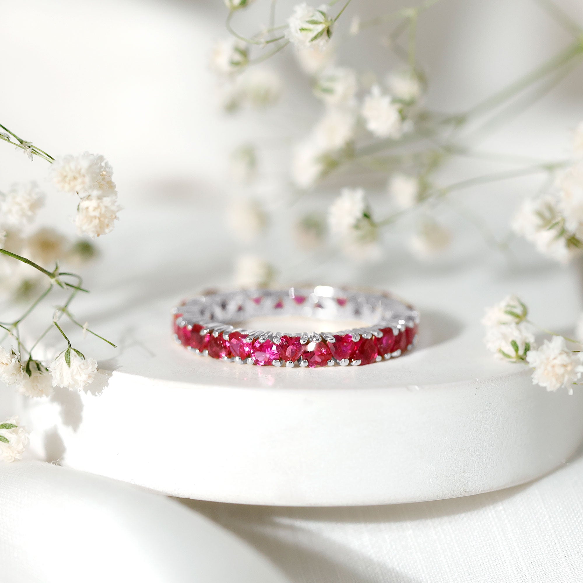 - Daily-wear durability: Ruby ranks 9 on the Mohs hardness scale.