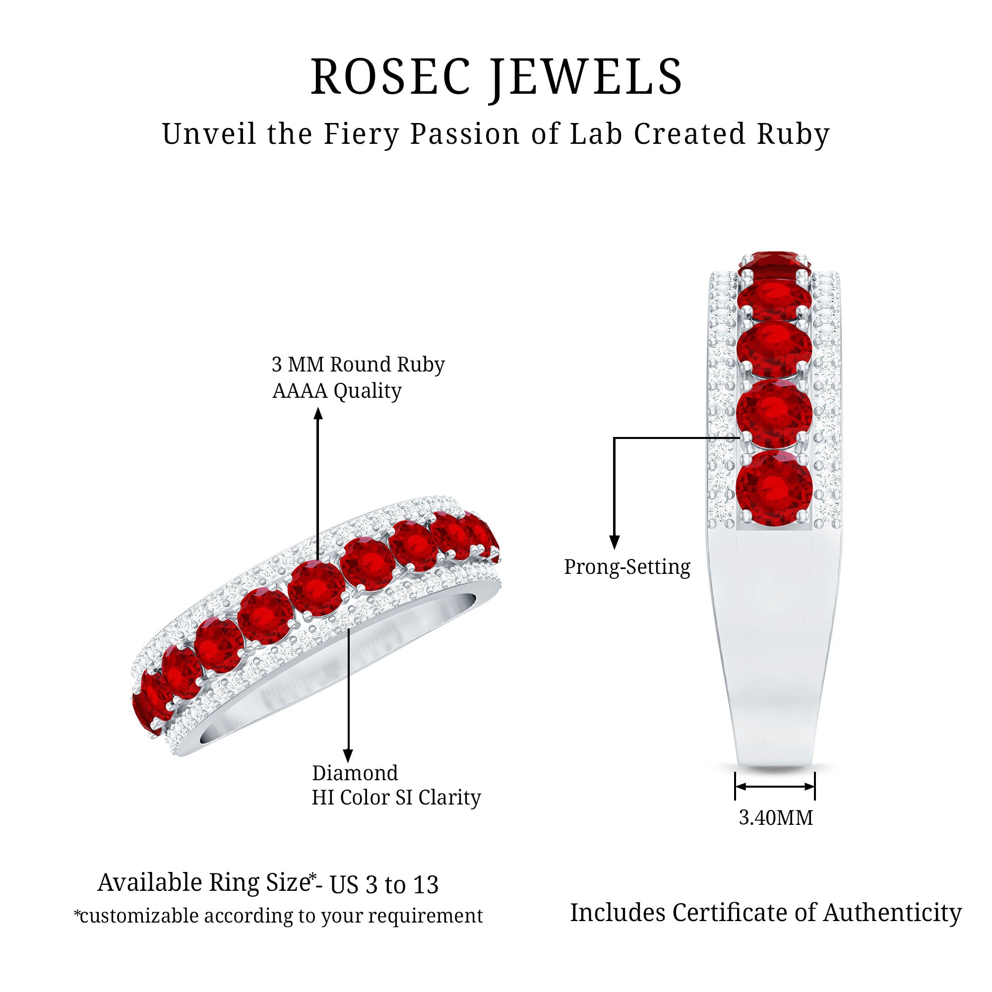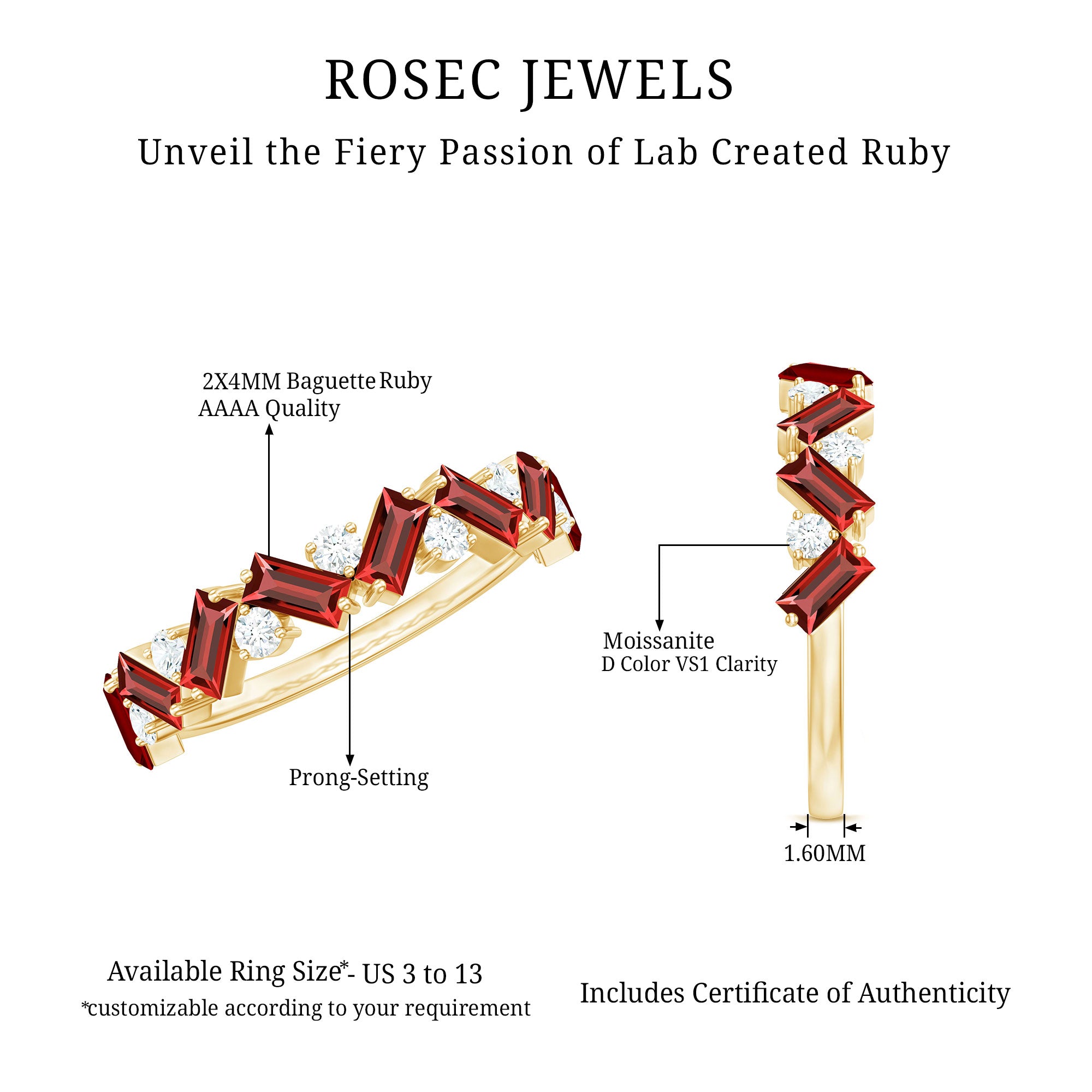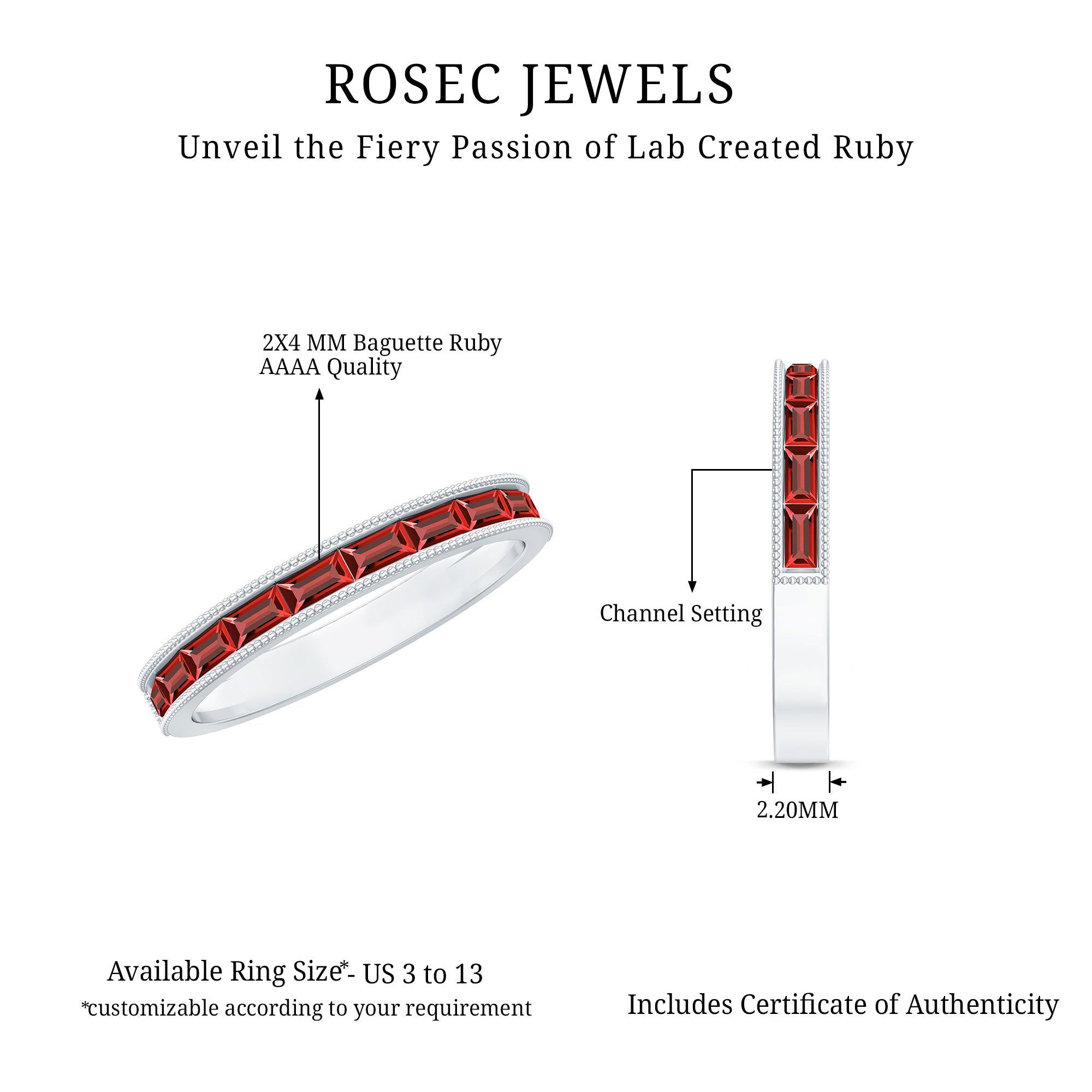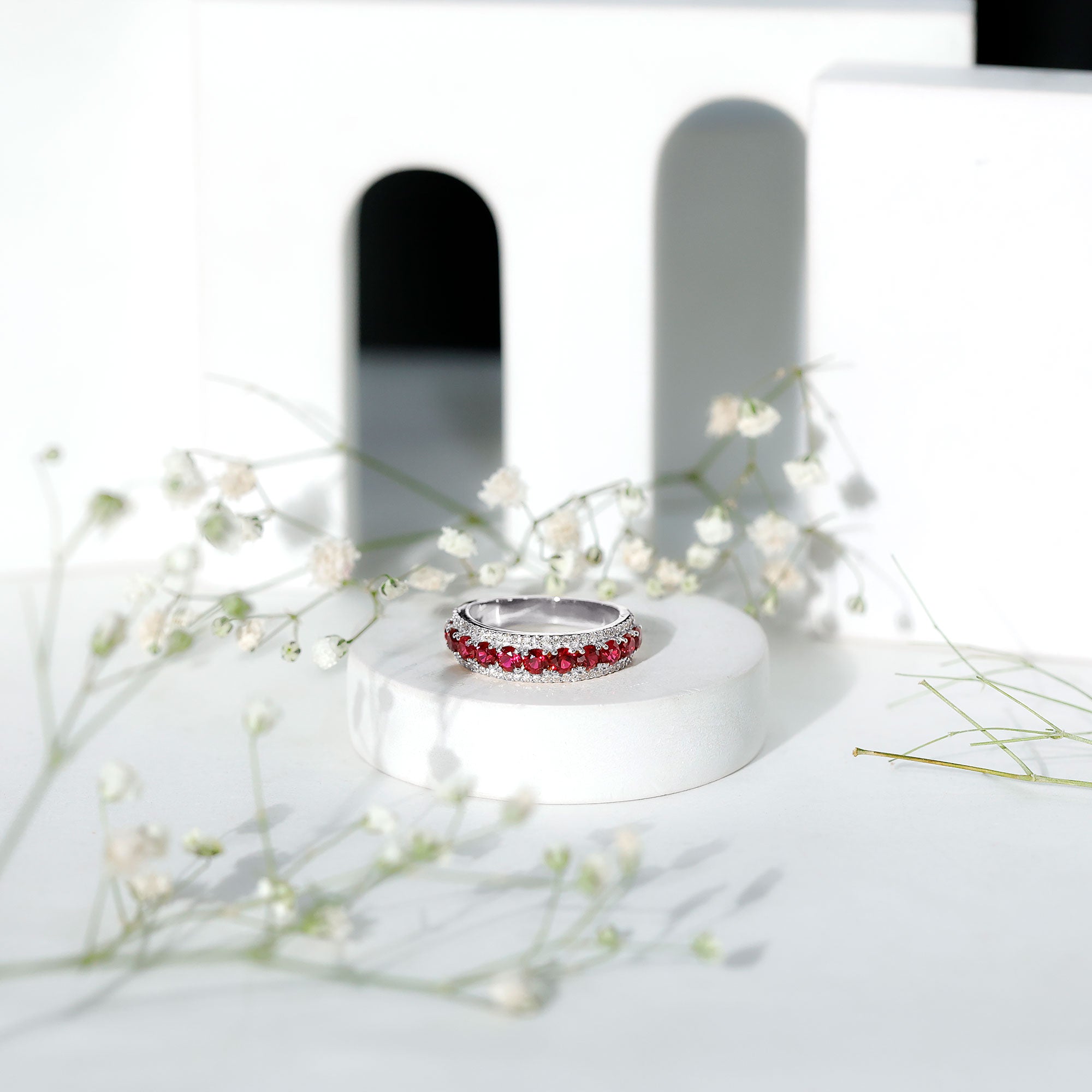 - Daily-wear durability: Ruby ranks 9 on the Mohs hardness scale.