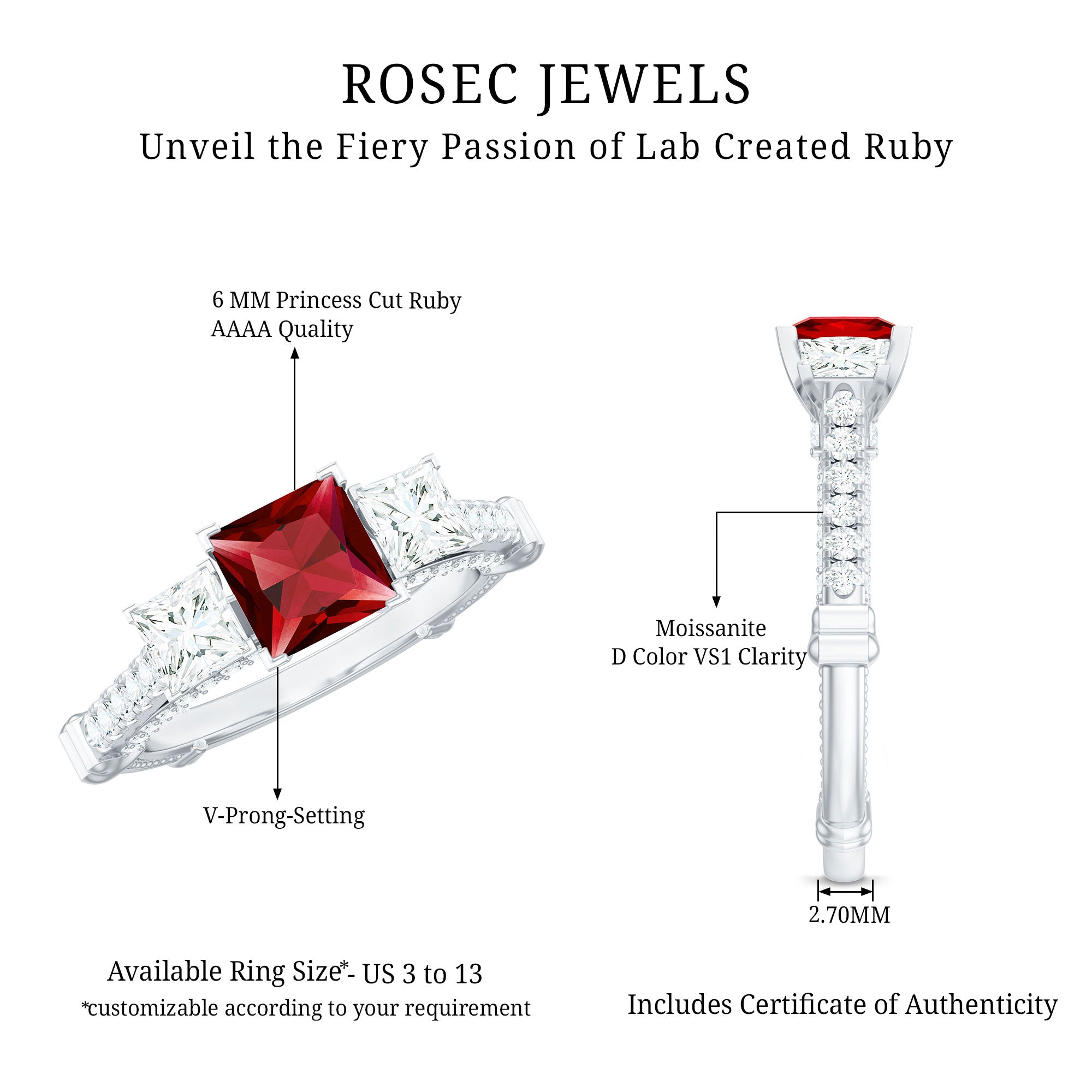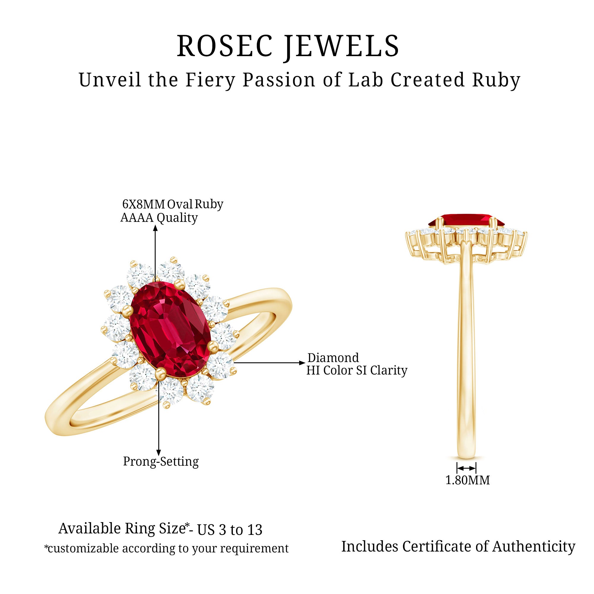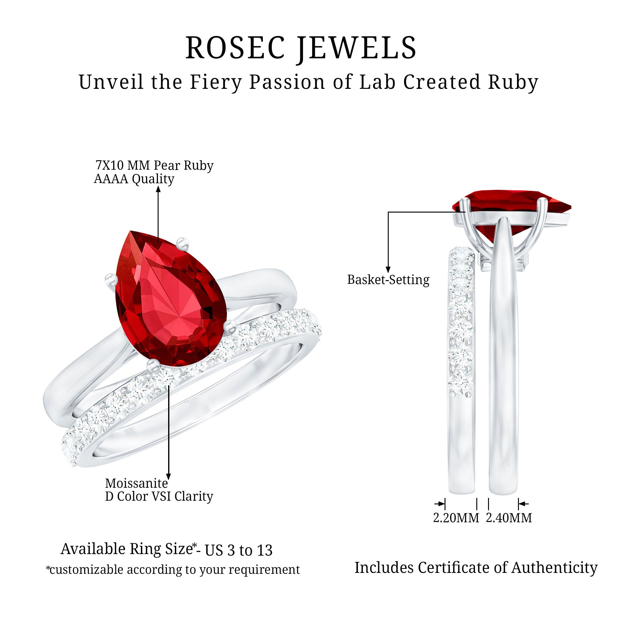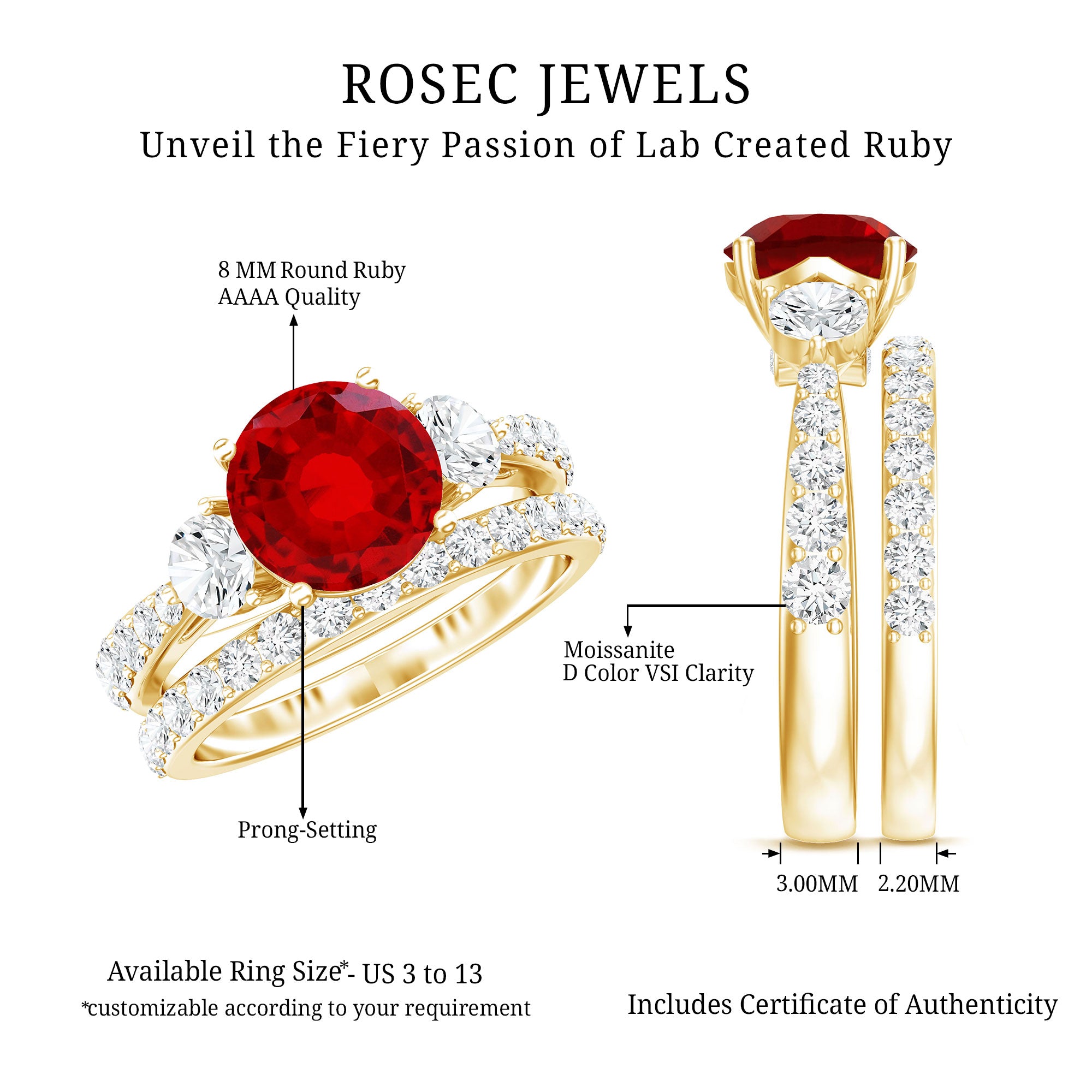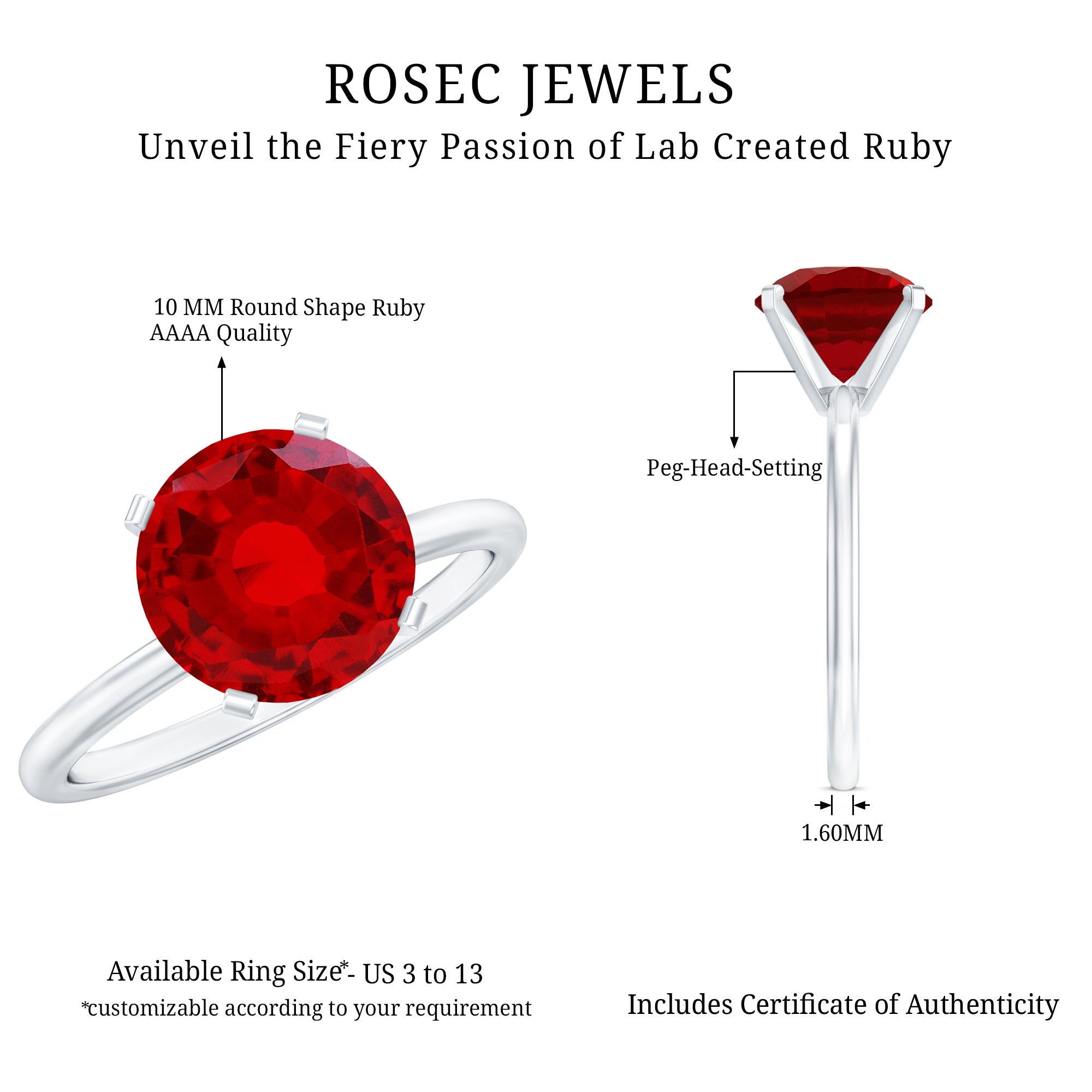 - Daily-wear durability: Ruby ranks 9 on the Mohs hardness scale.