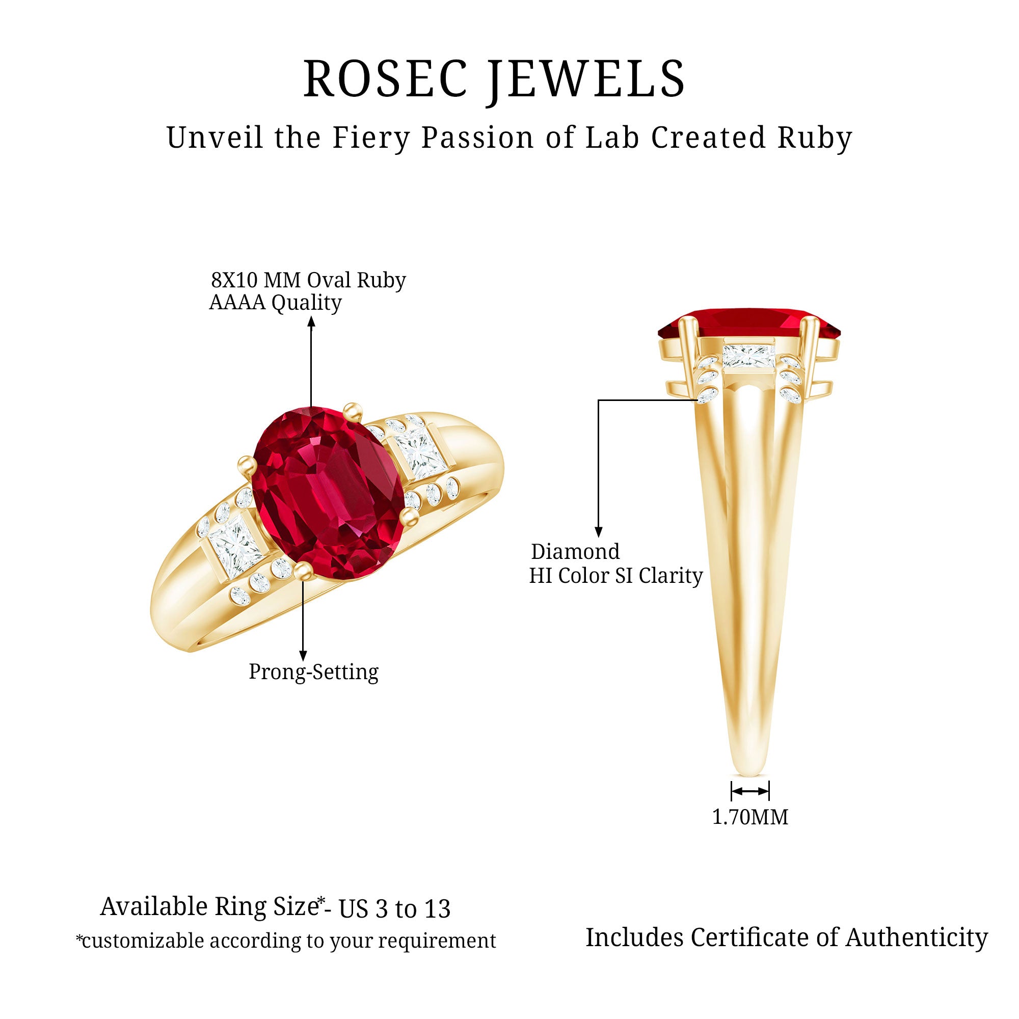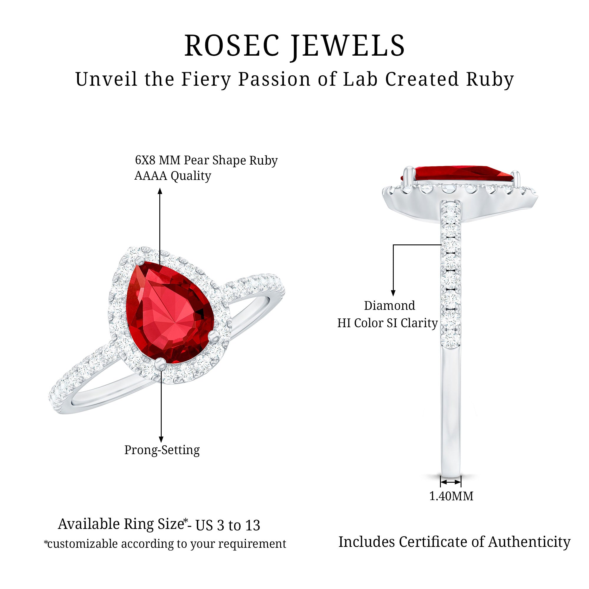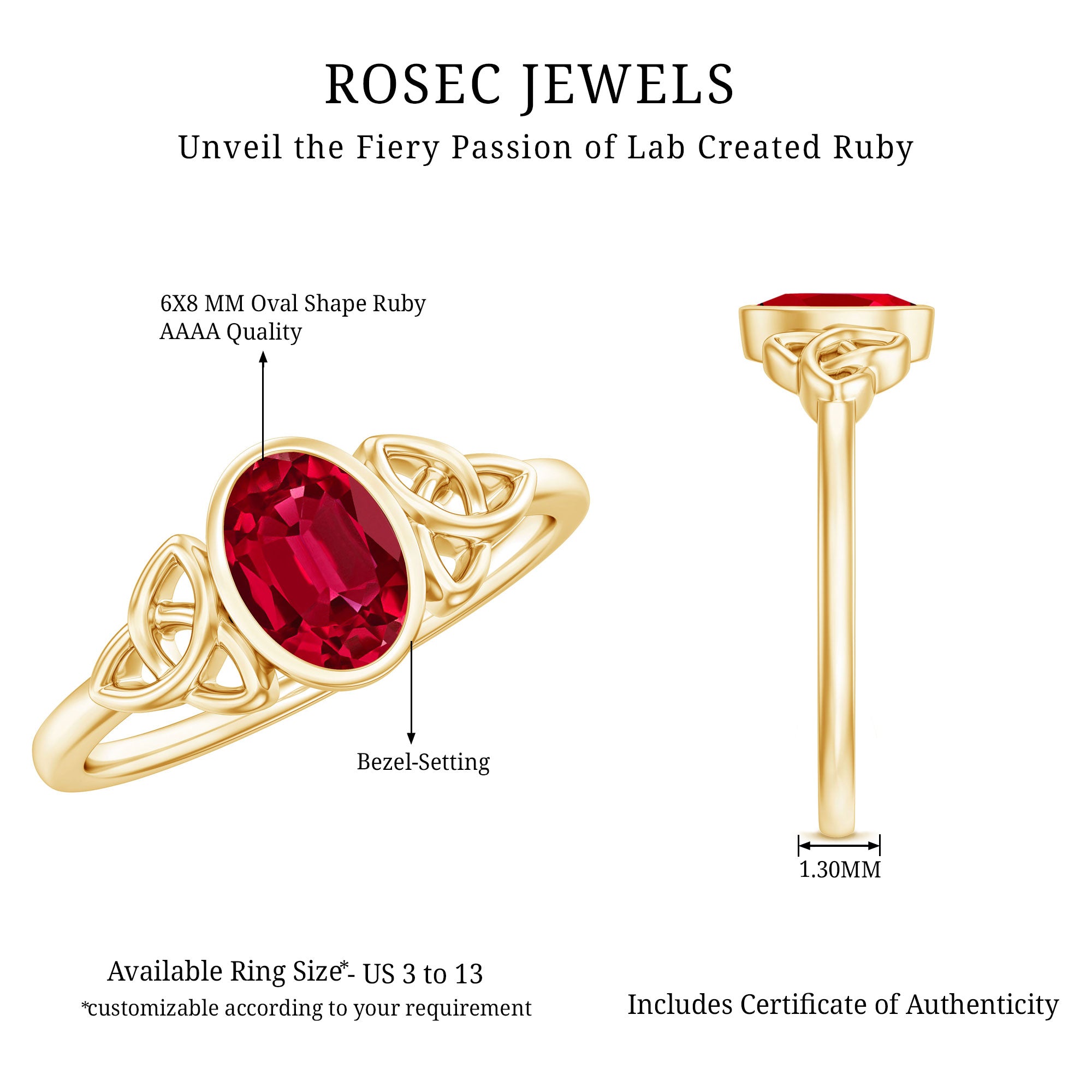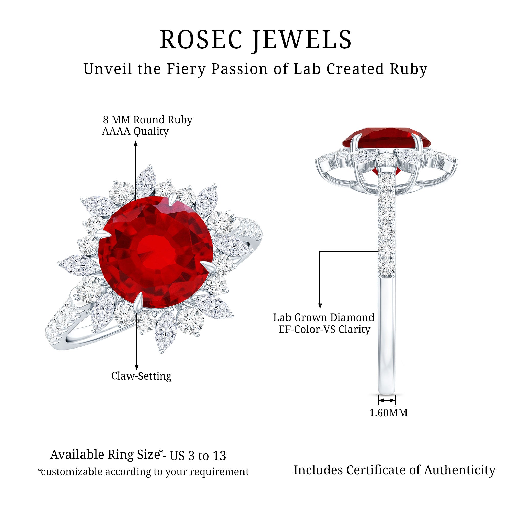- Daily-wear durability: Ruby ranks 9 on the Mohs hardness scale.