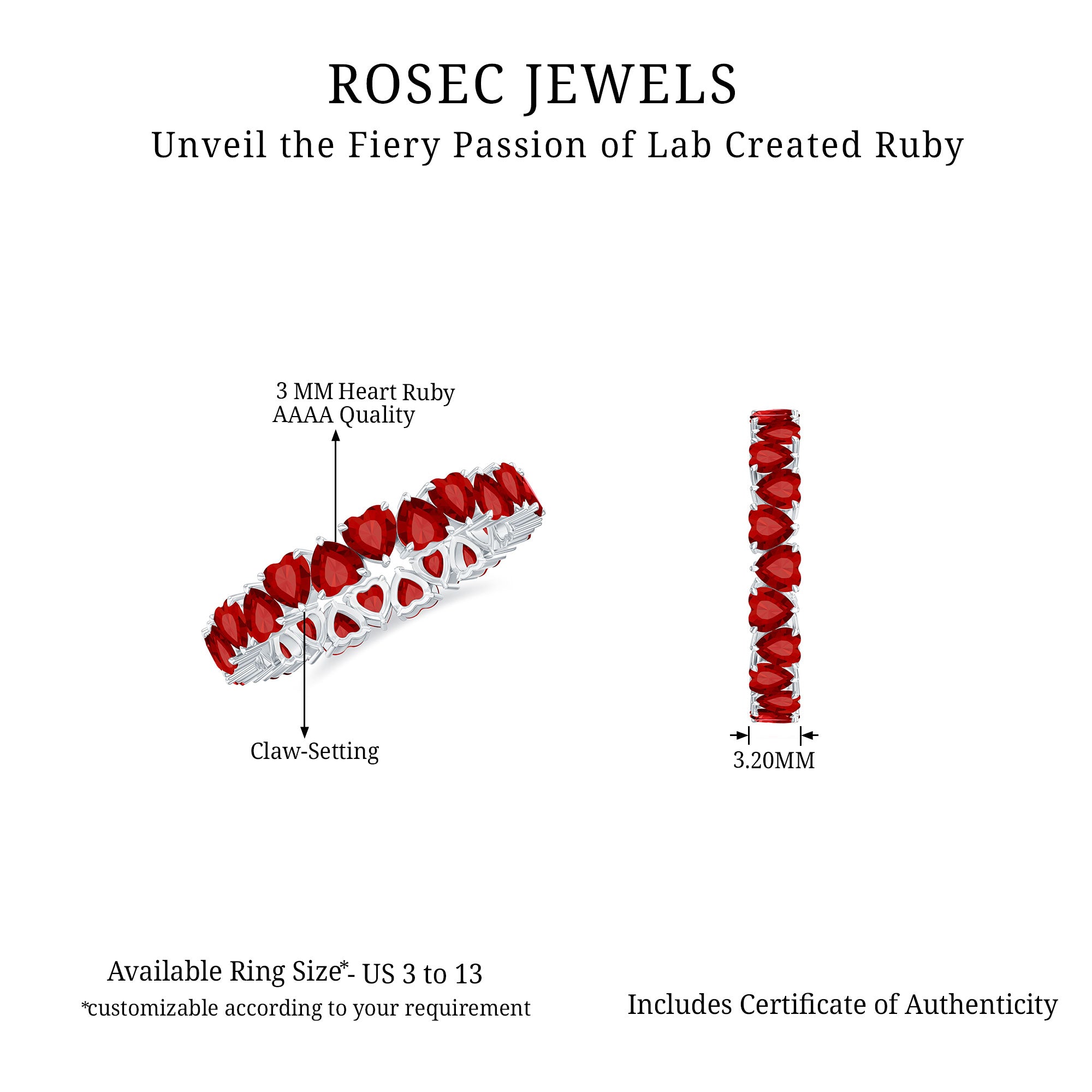 - Real ruby material: Lab-grown/lab-created ruby is true corundum with ruby color and shine.